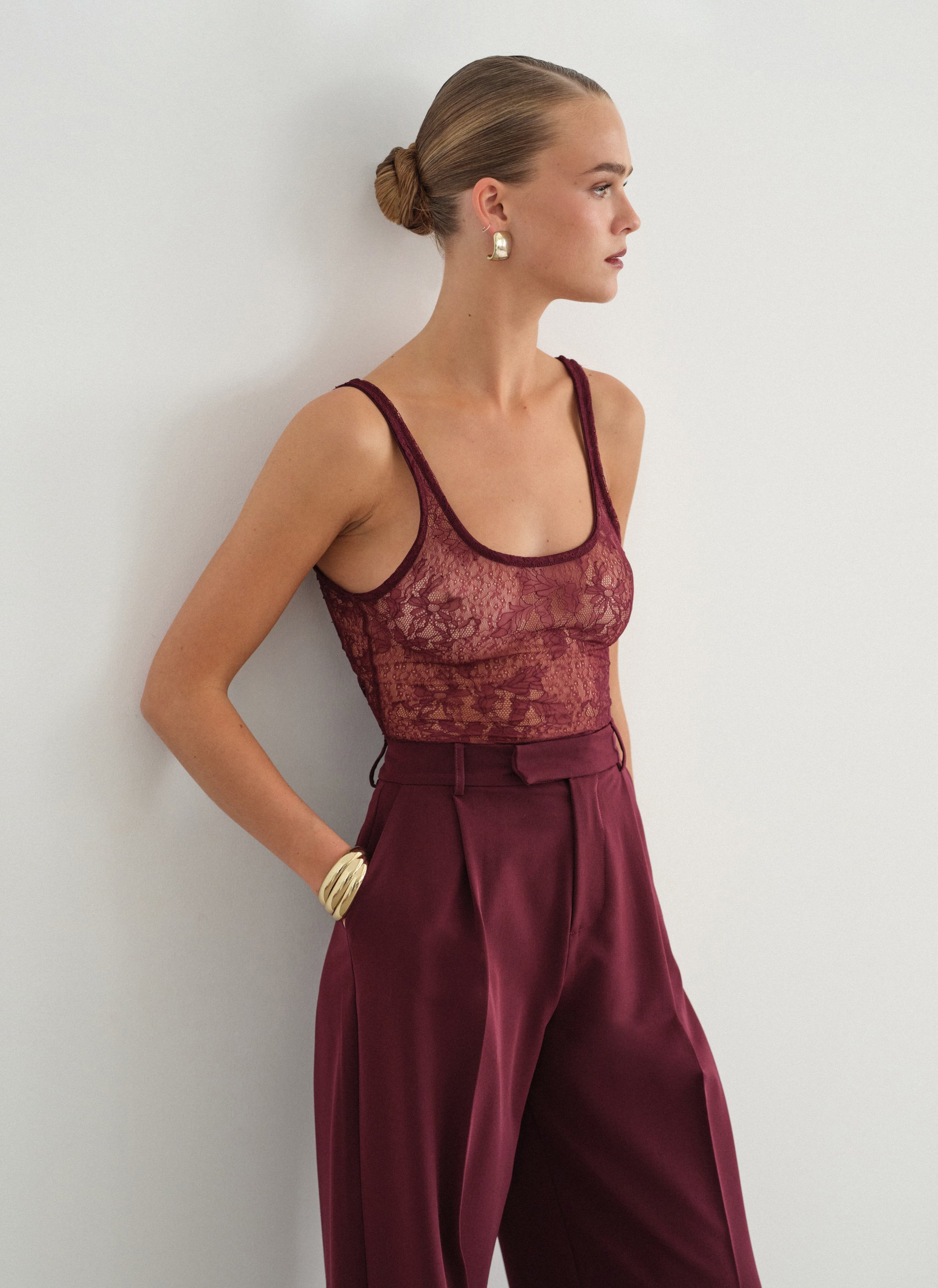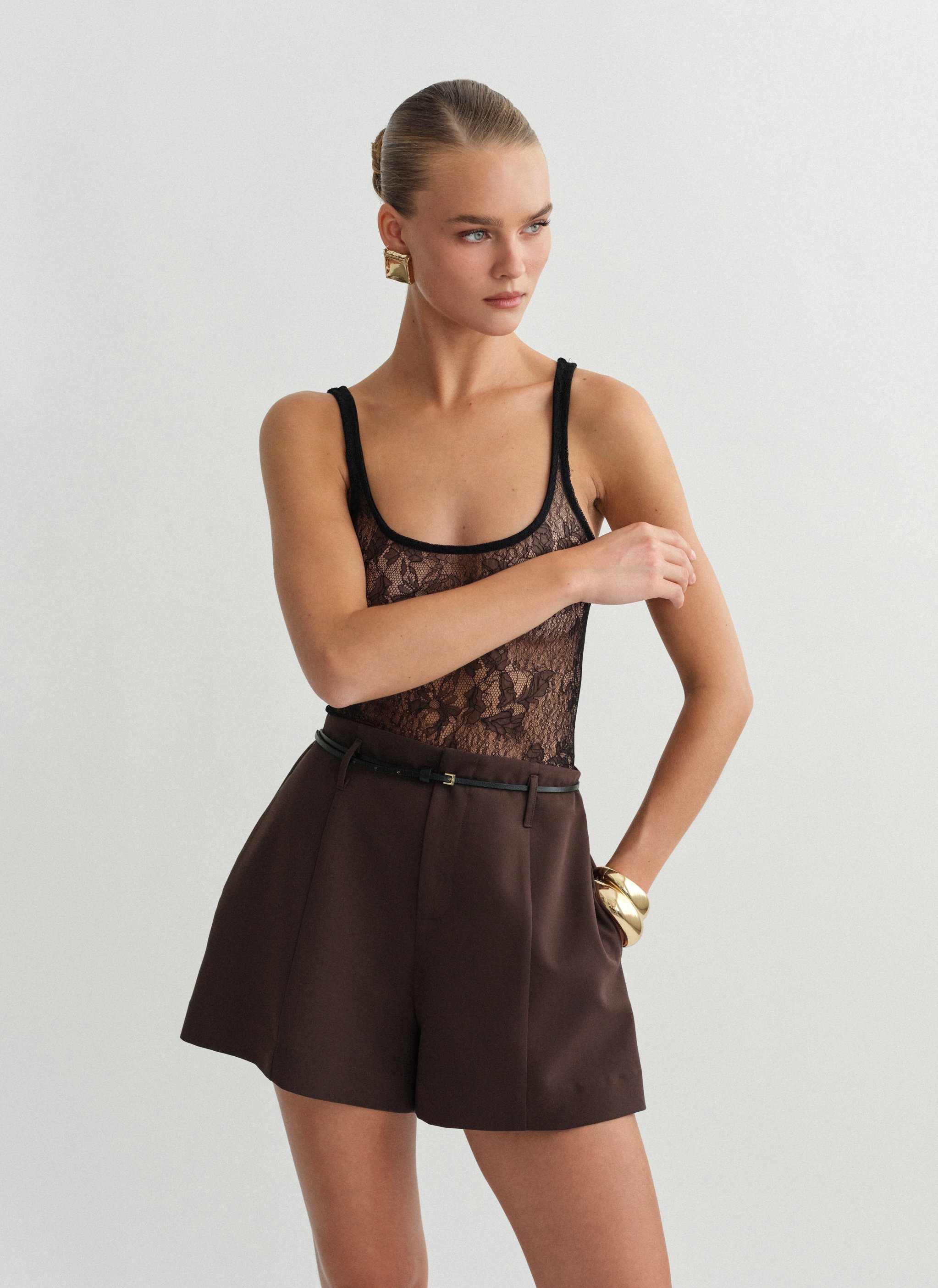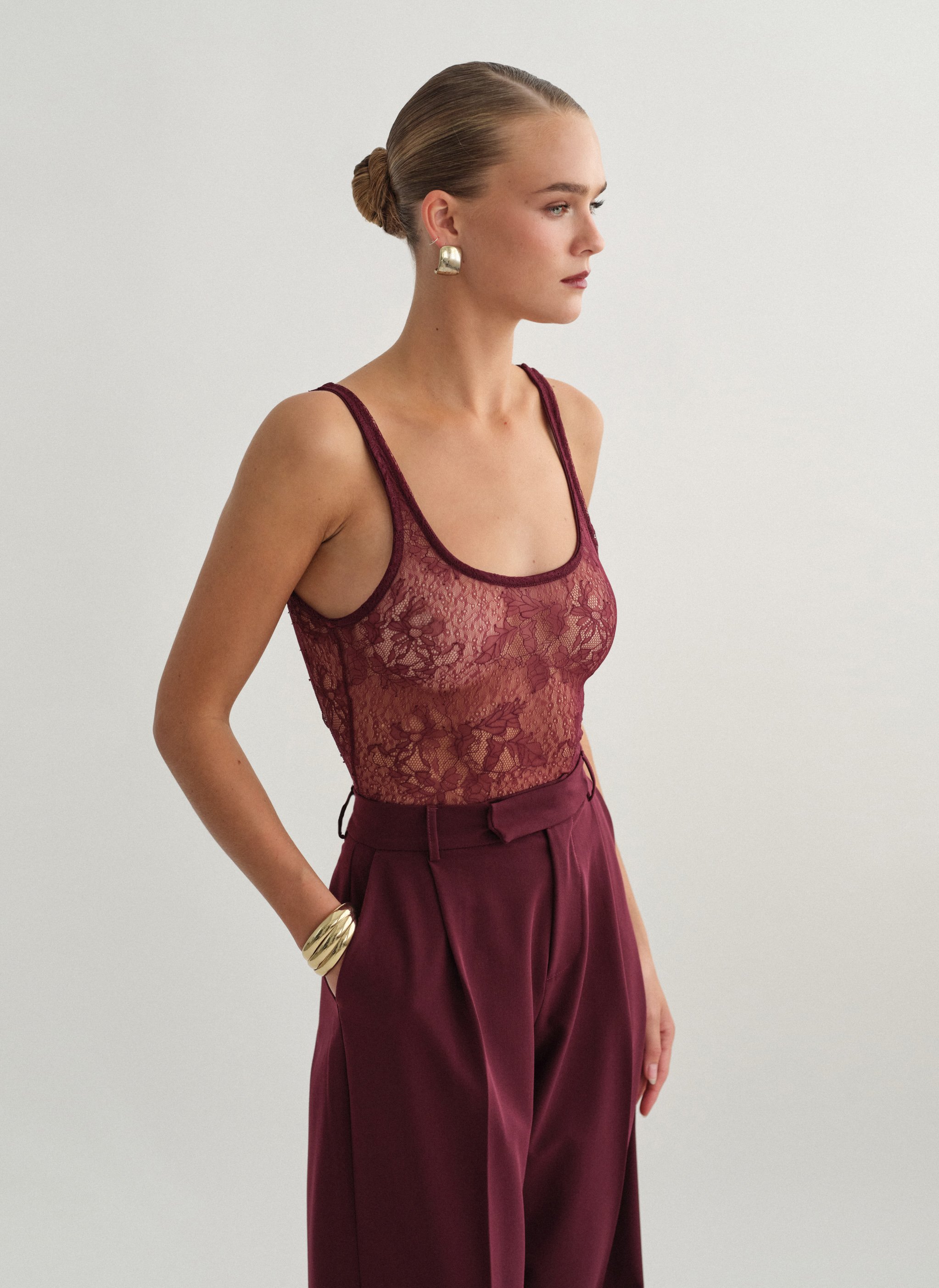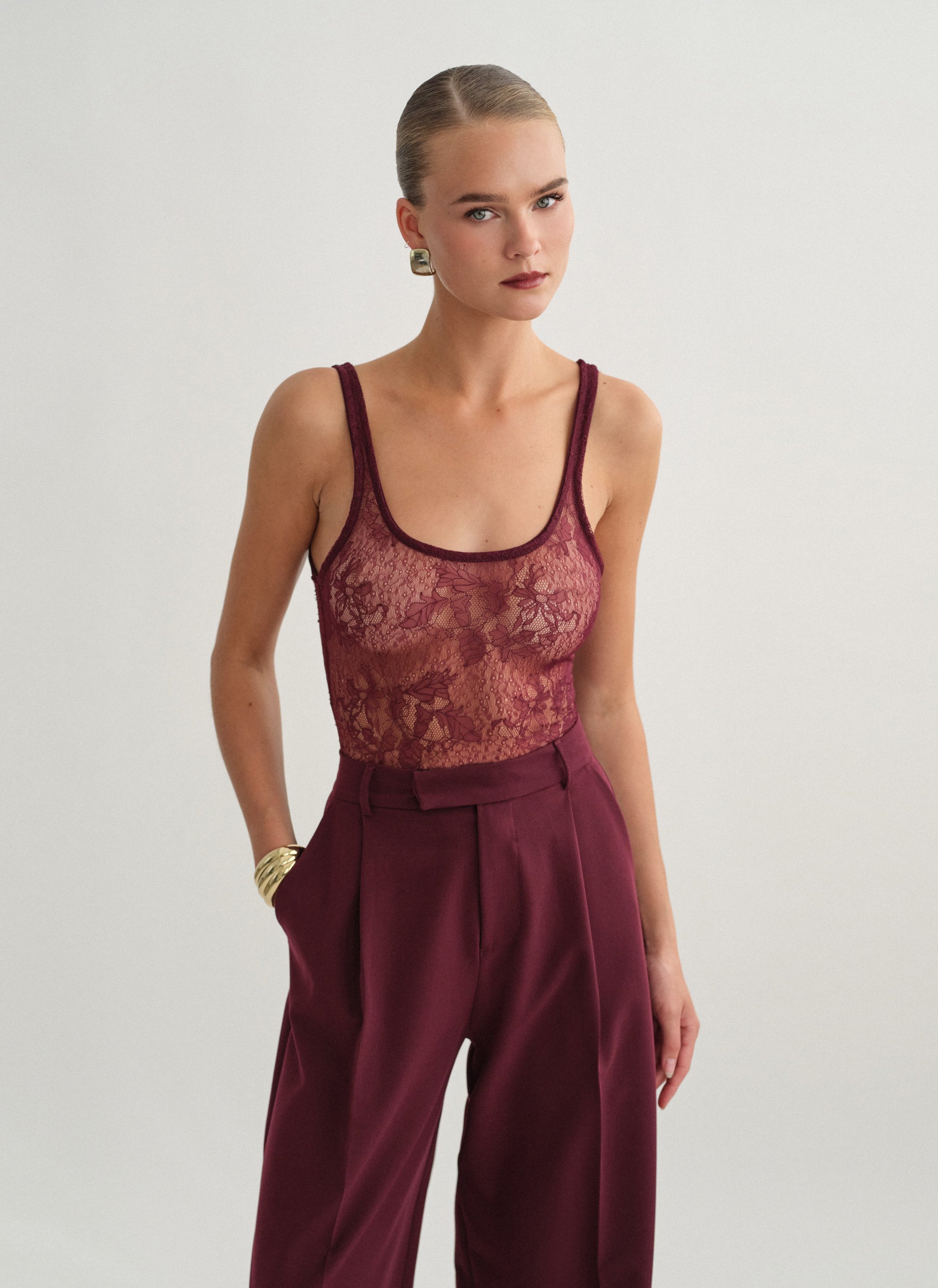 Ελαστική αμάνικη μπλούζα με δαντέλα και στρογγυλή λαιμόκοψη.