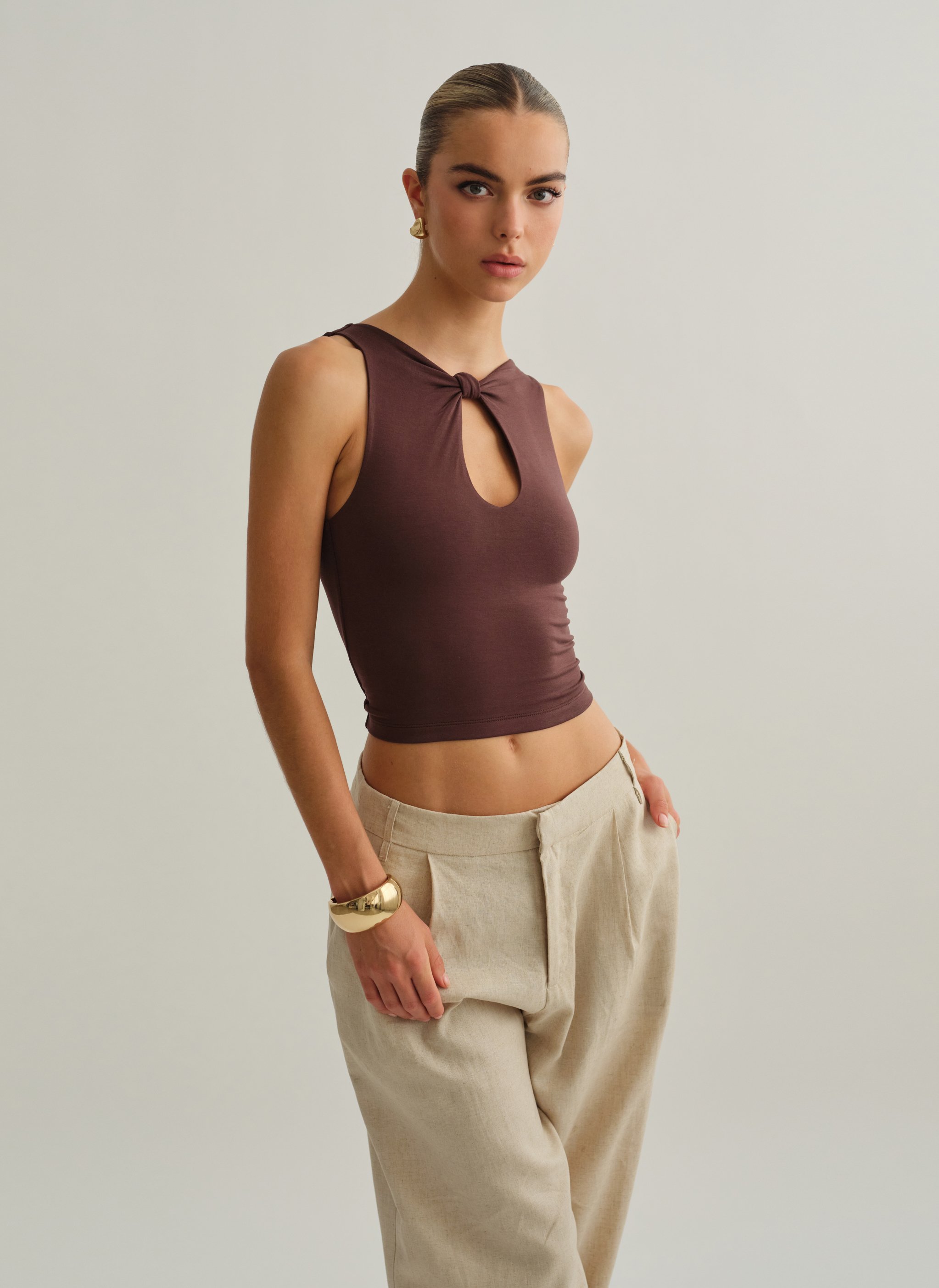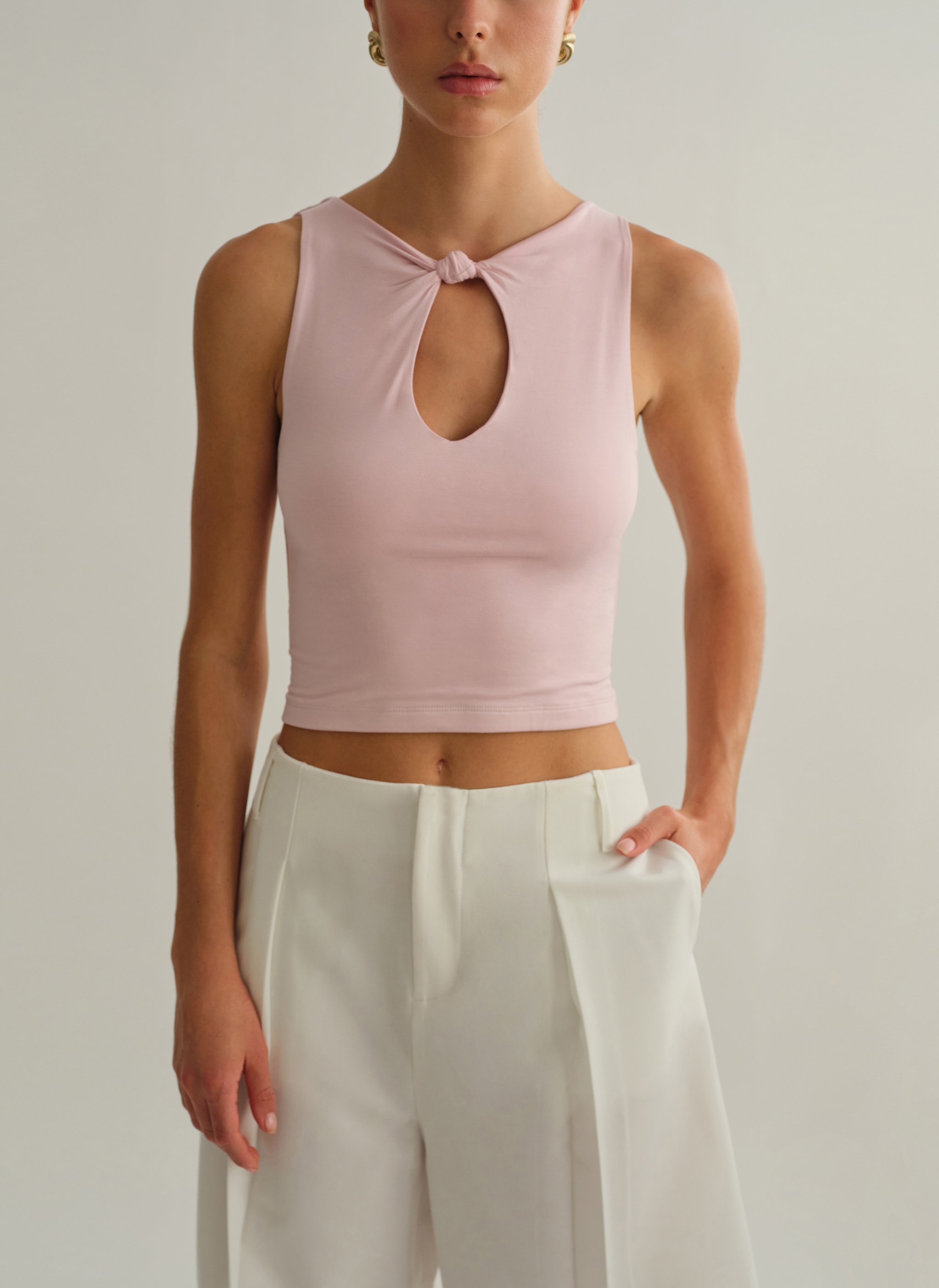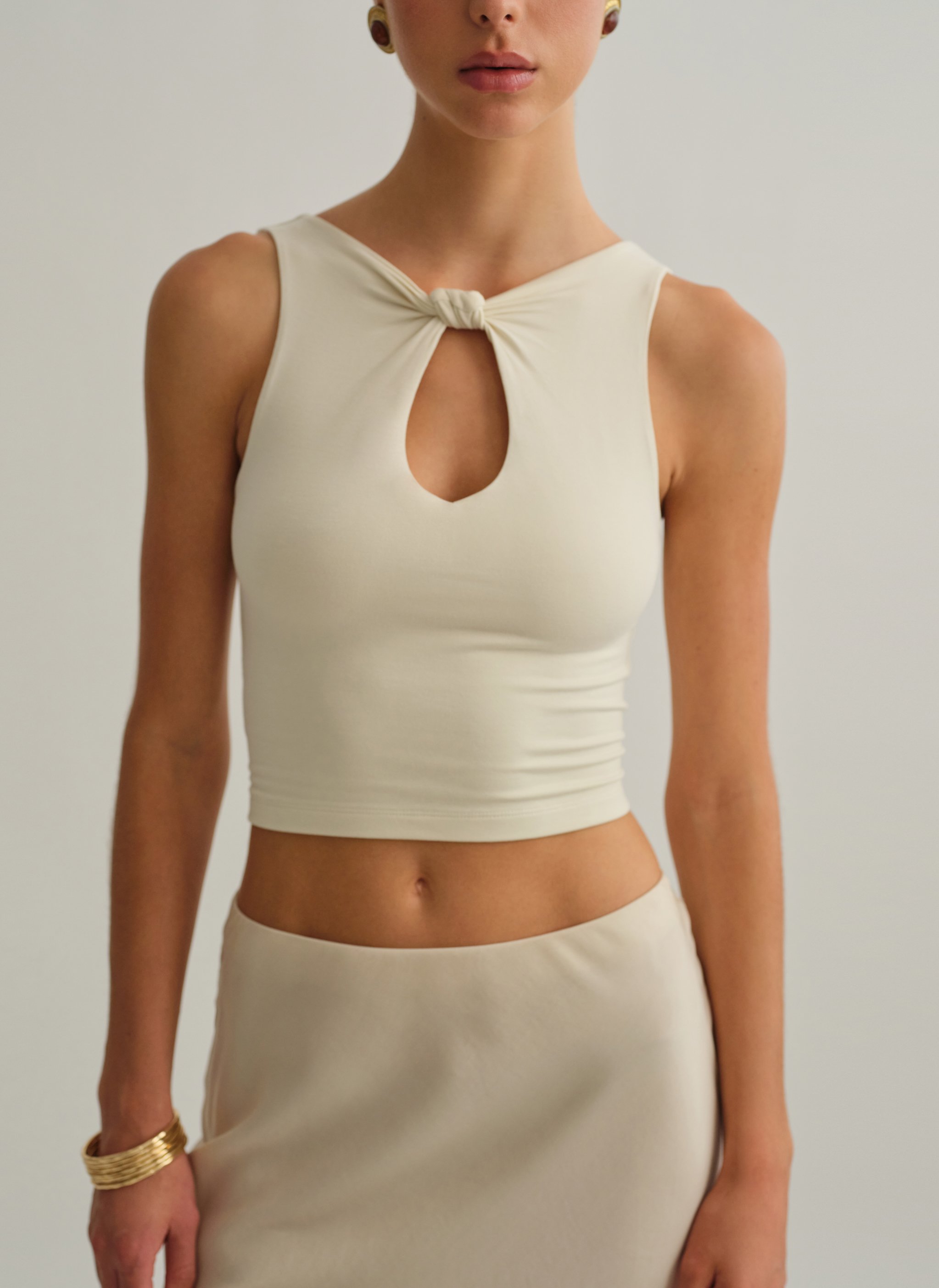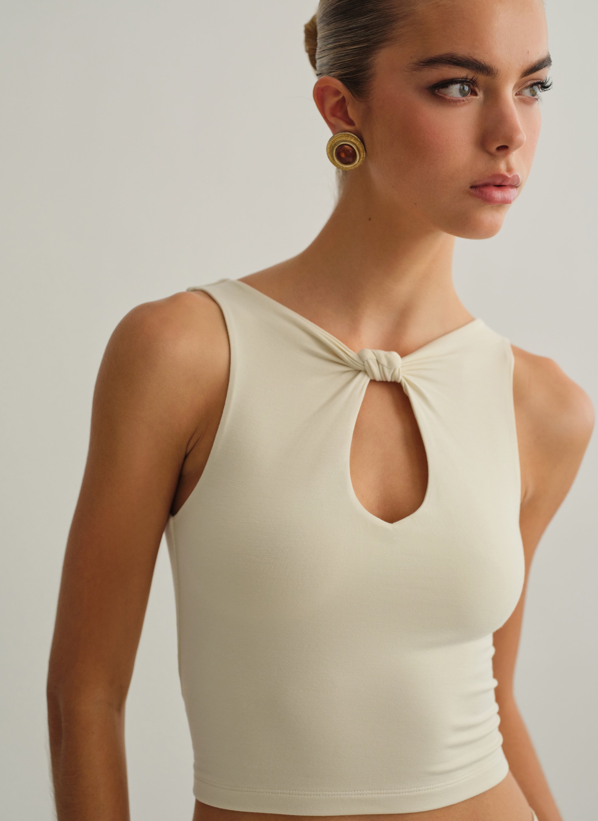 Ελαστική αμάνικη μπλούζα με κόμπο και άνοιγμα στο ντεκολτέ bamboo.