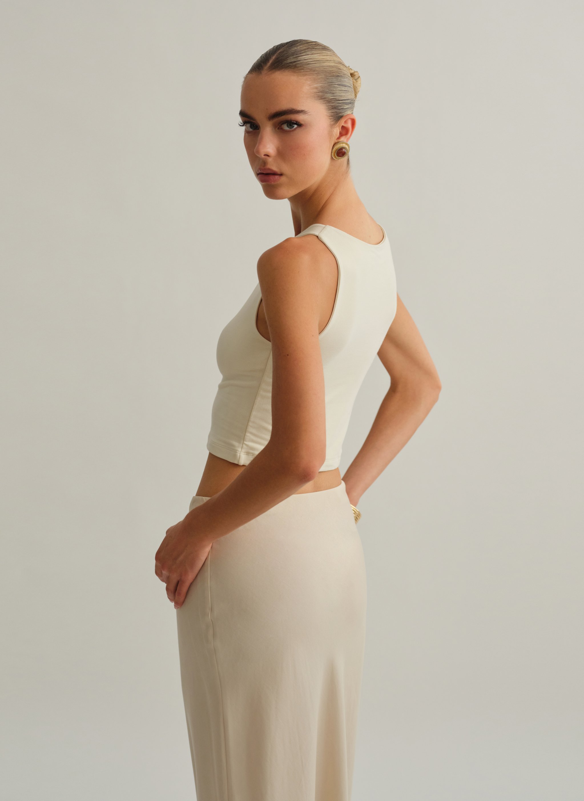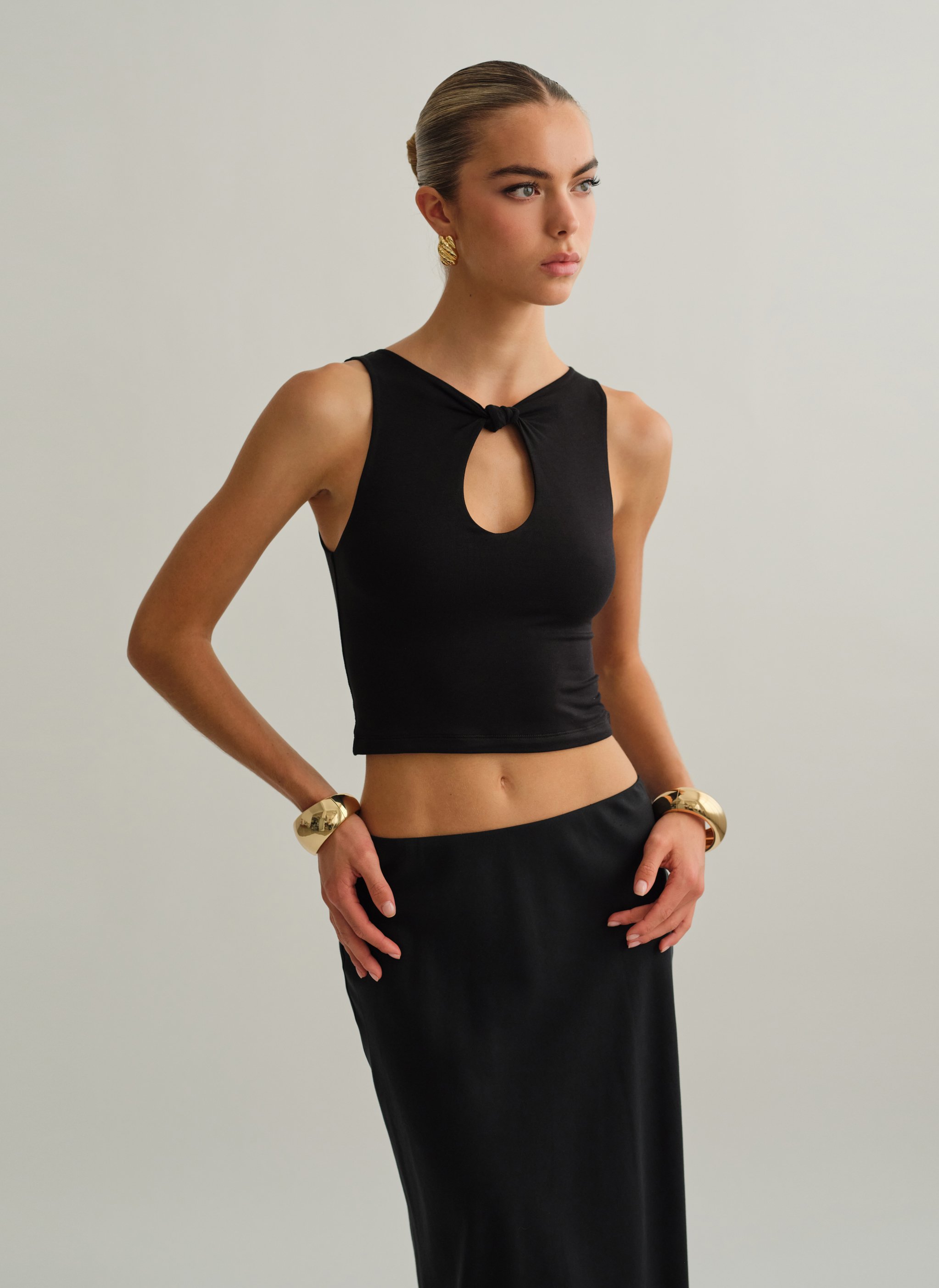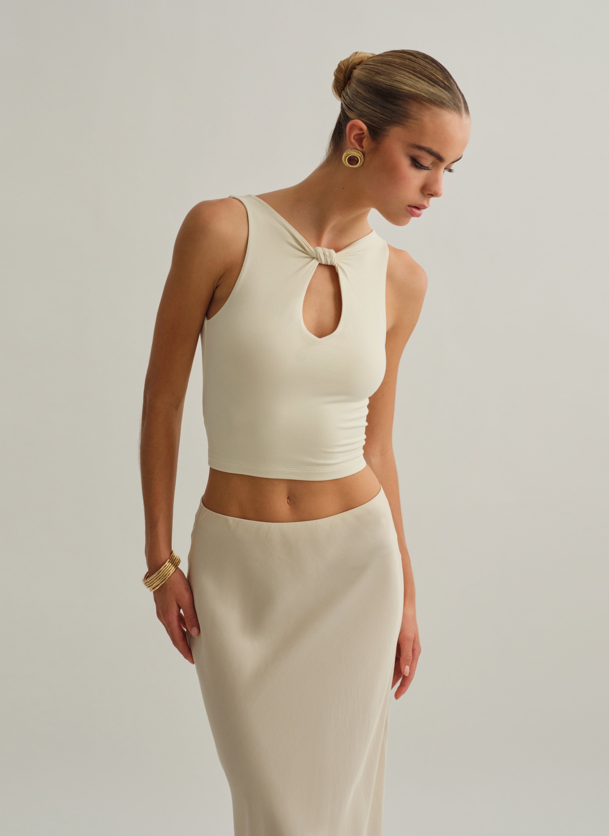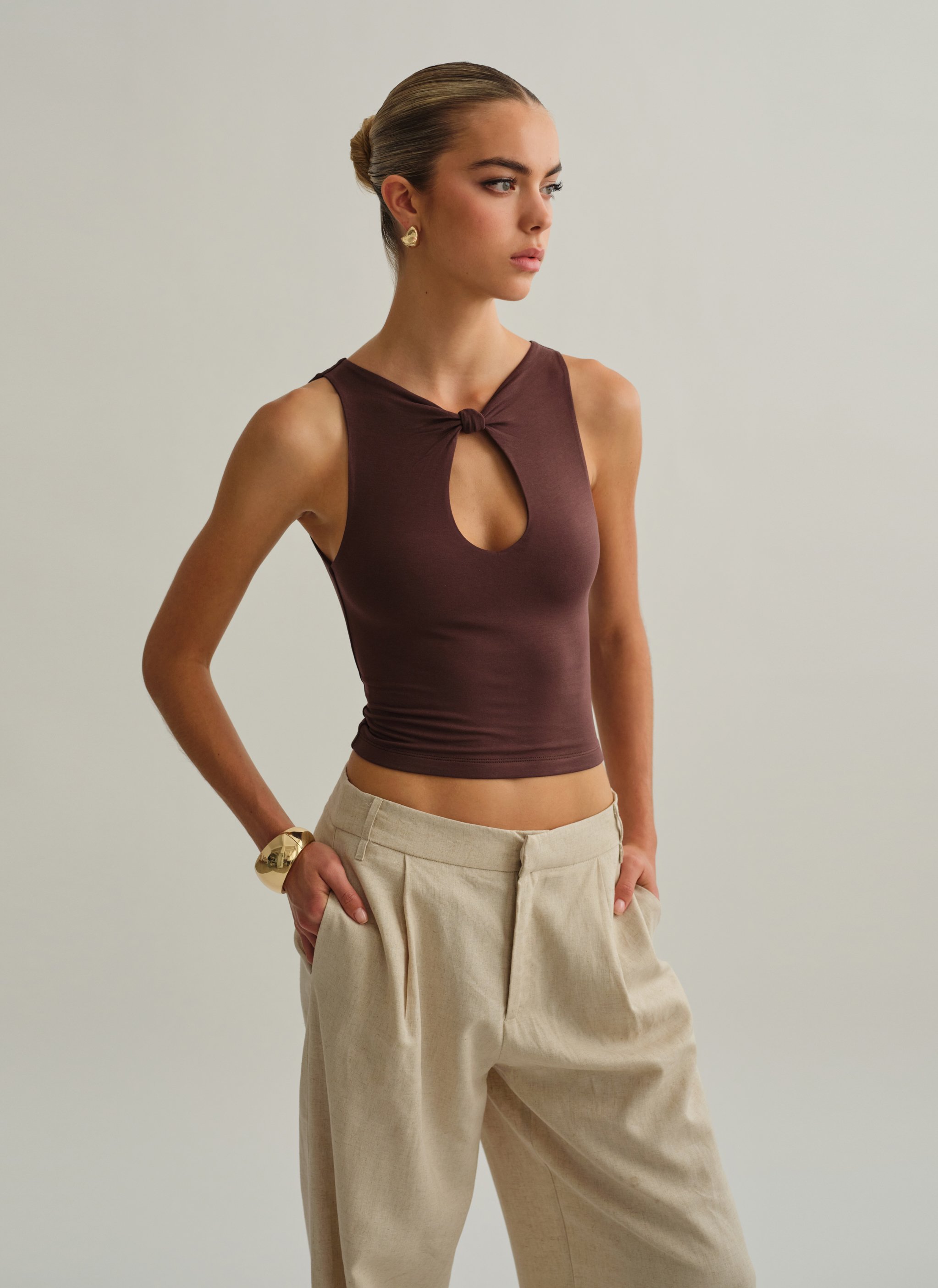 Ελαστική αμάνικη μπλούζα με κόμπο και άνοιγμα στο ντεκολτέ bamboo.