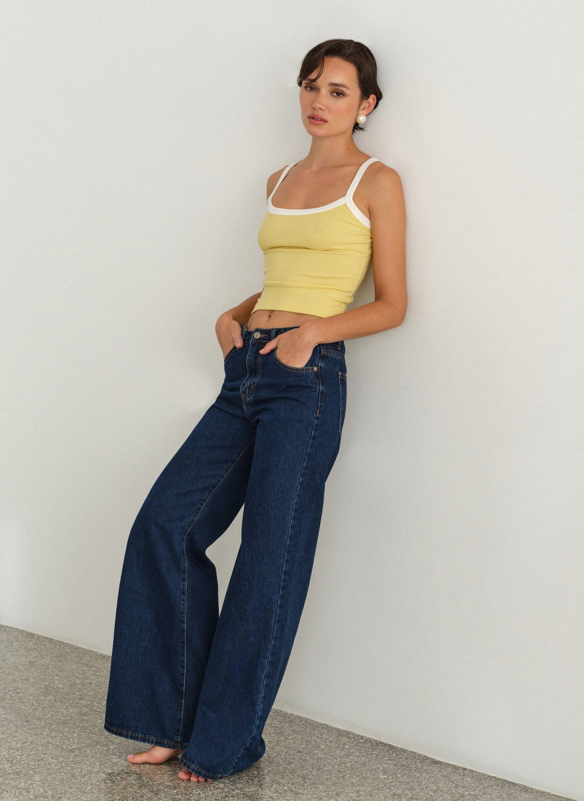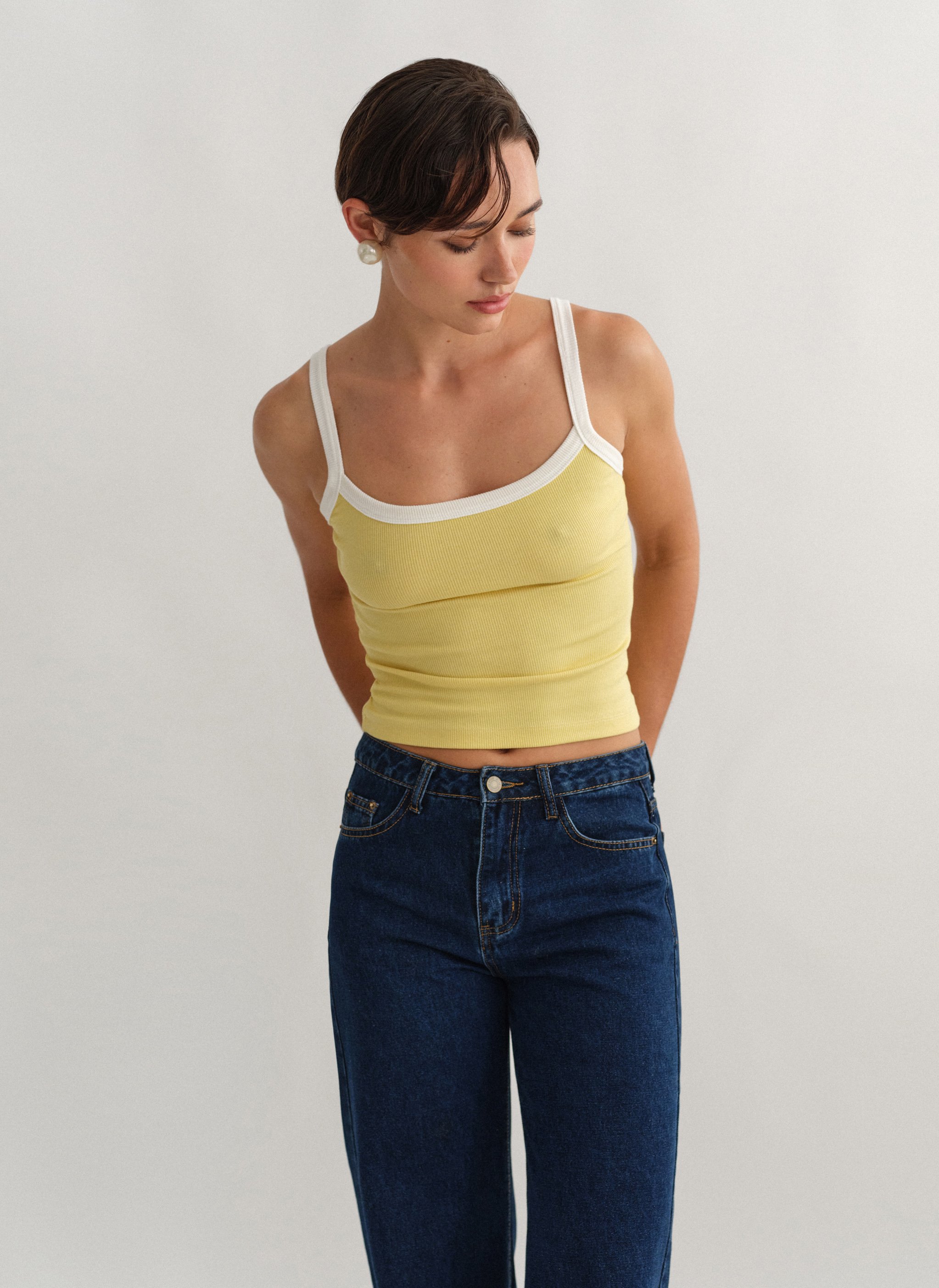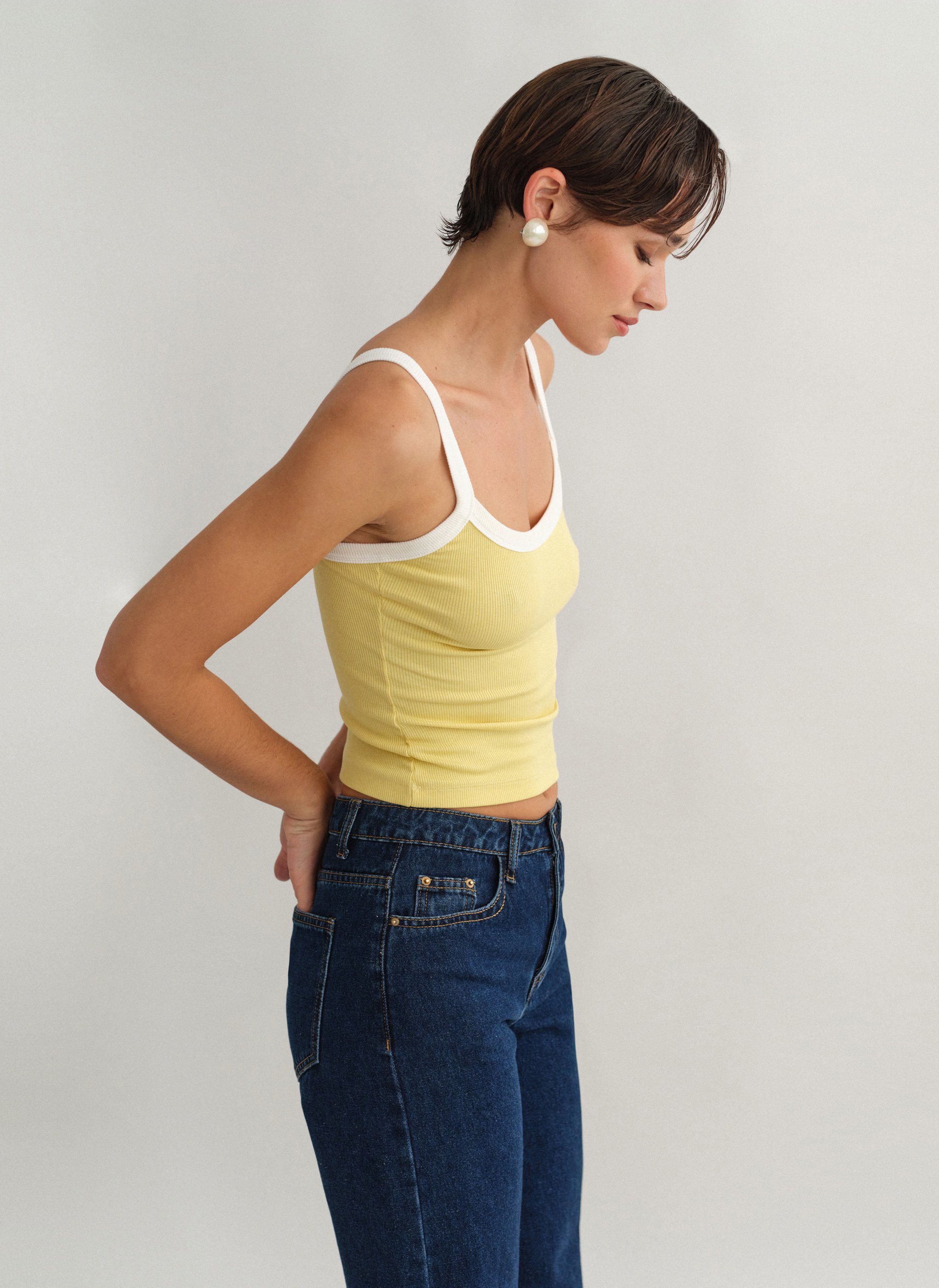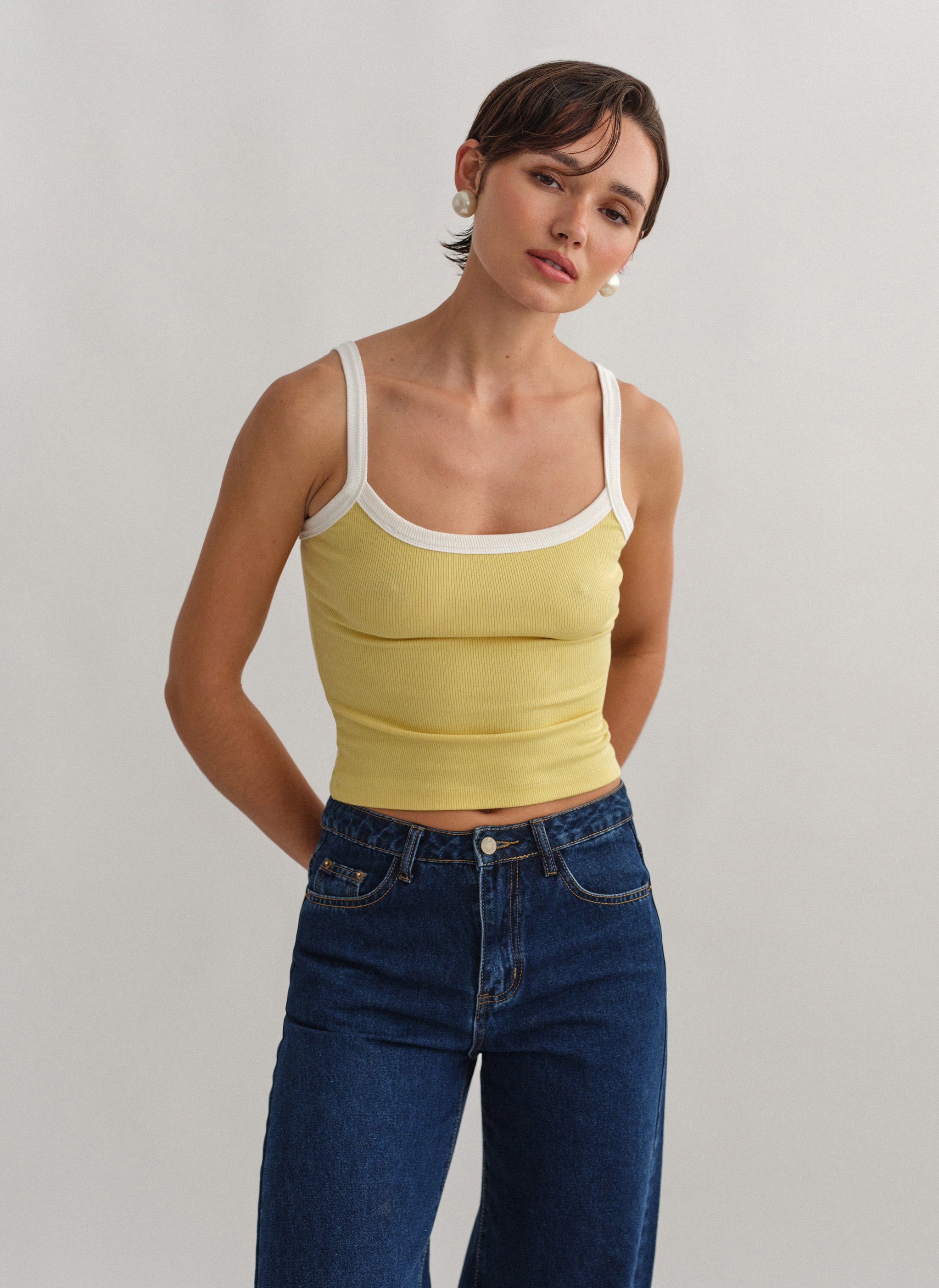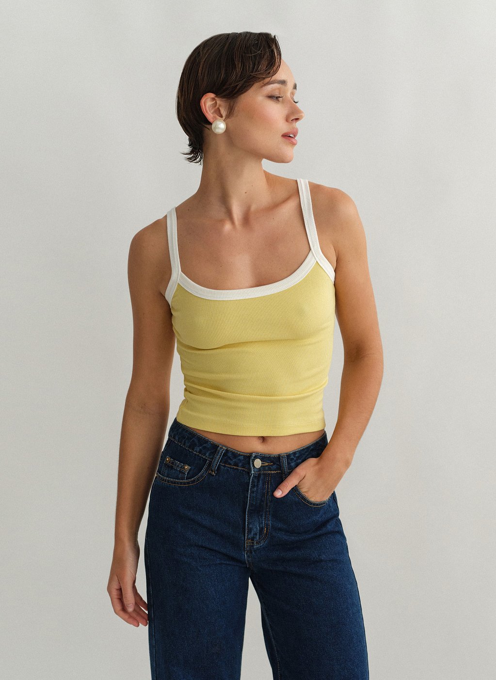 Ελαστική αμάνικη μπλούζα ριπ με χρωματική αντίθεση στην λαιμόκοψη.
