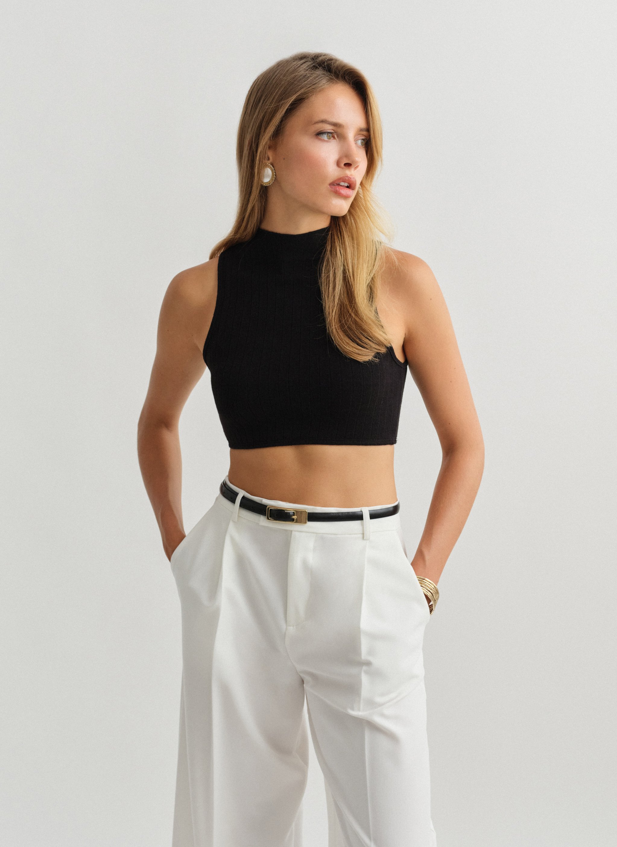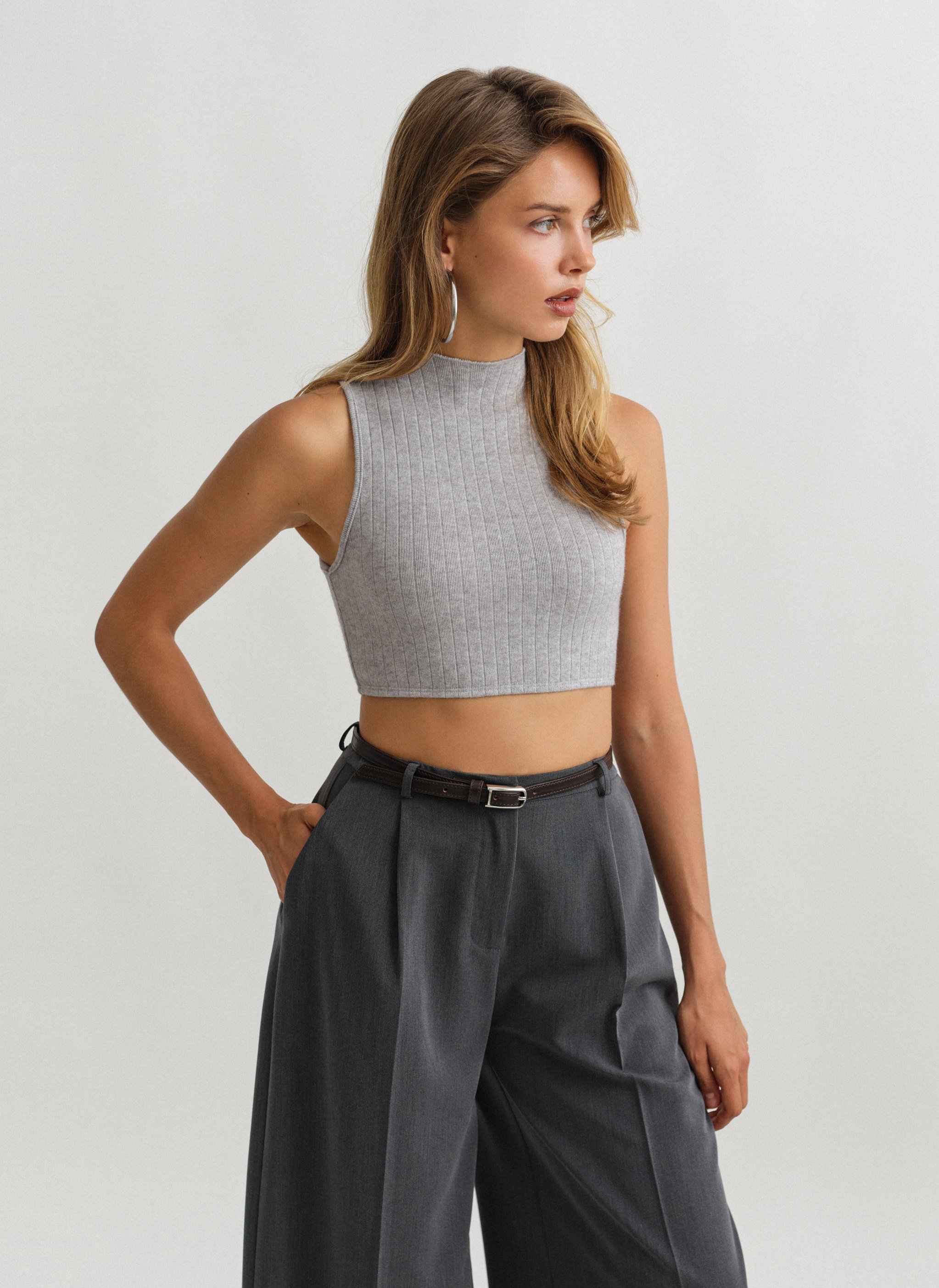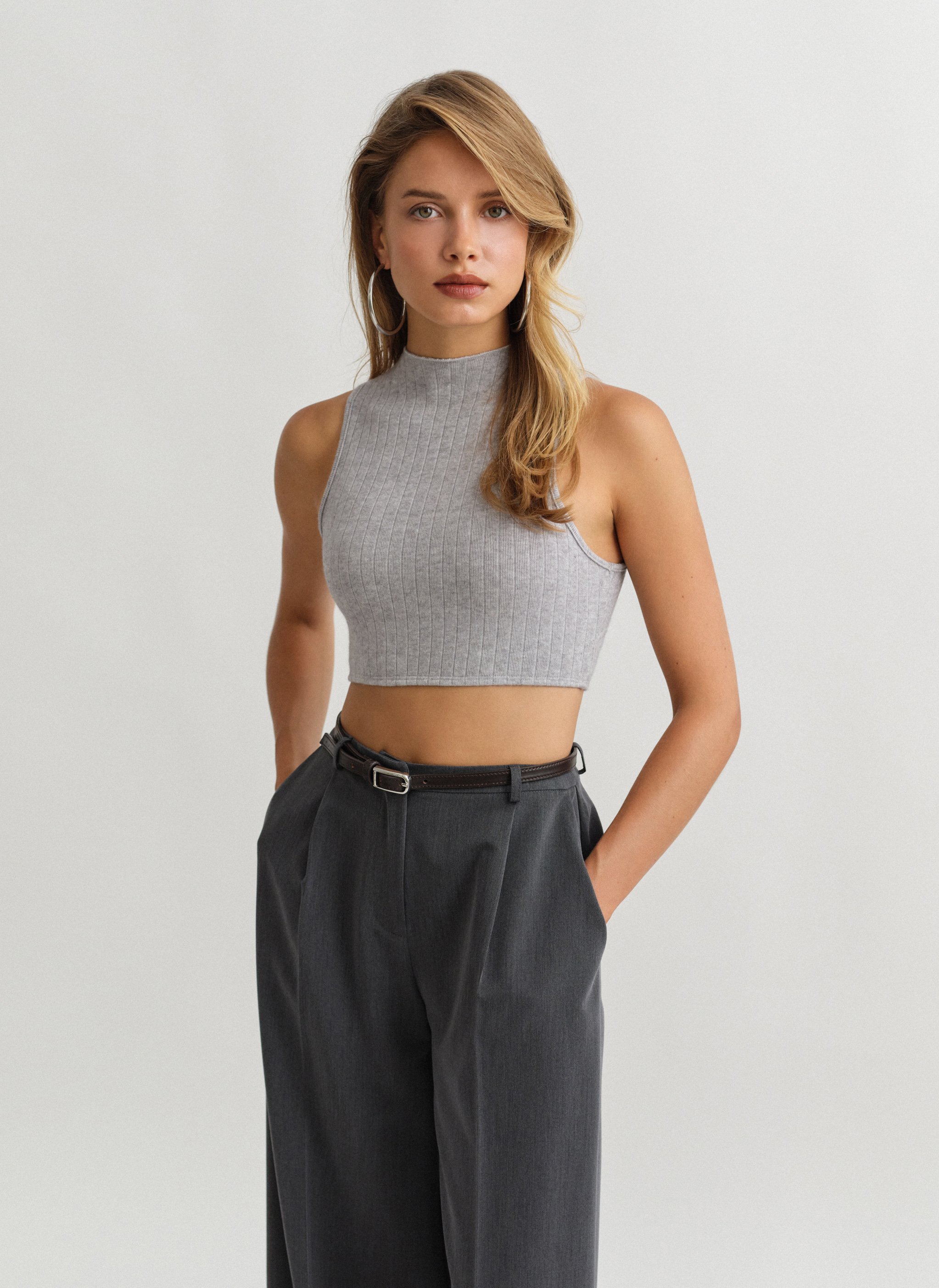 Αμάνικο ελαστικό πλεκτό ριπ crop τοπ με όρθιο γιακά.