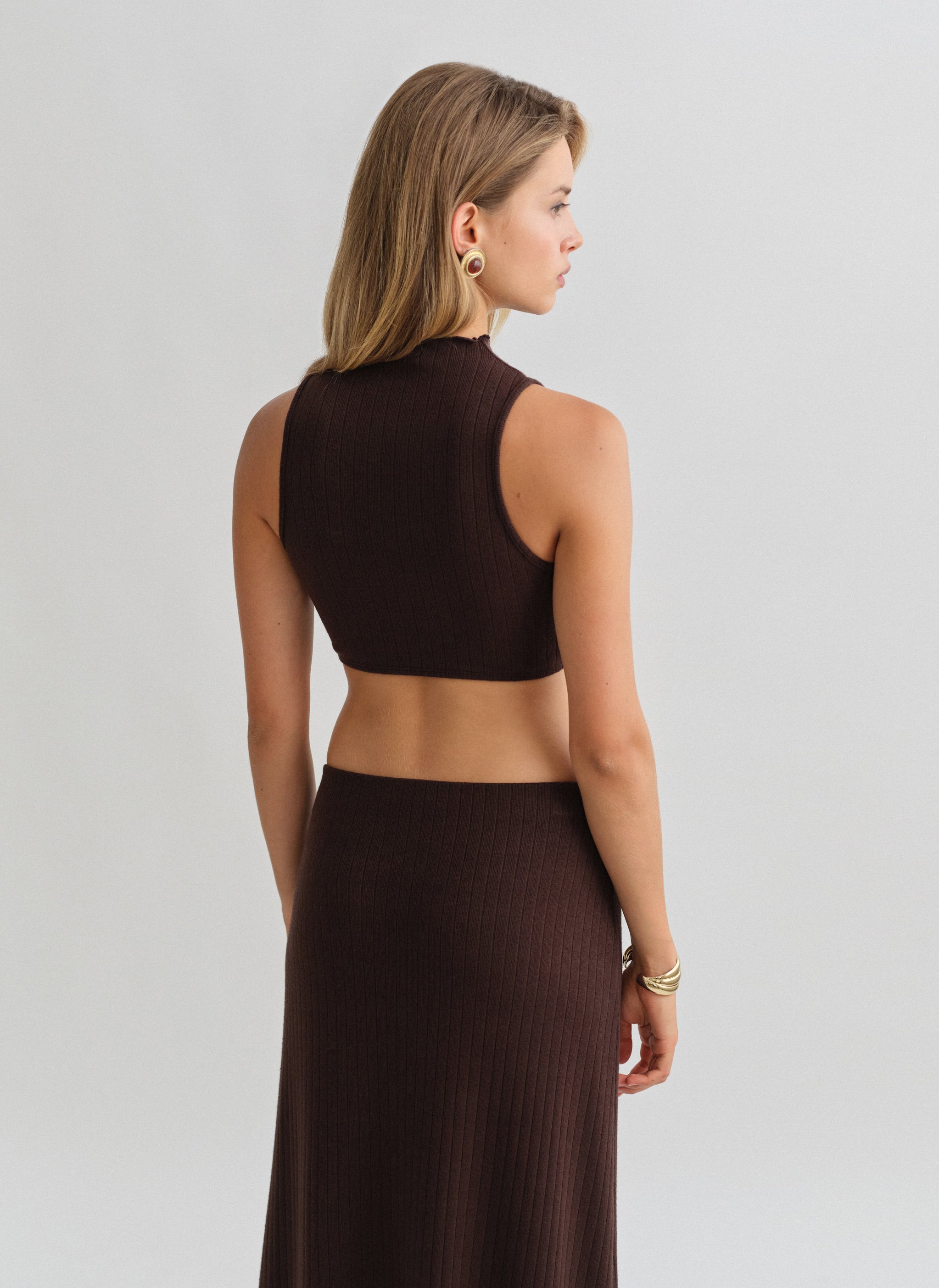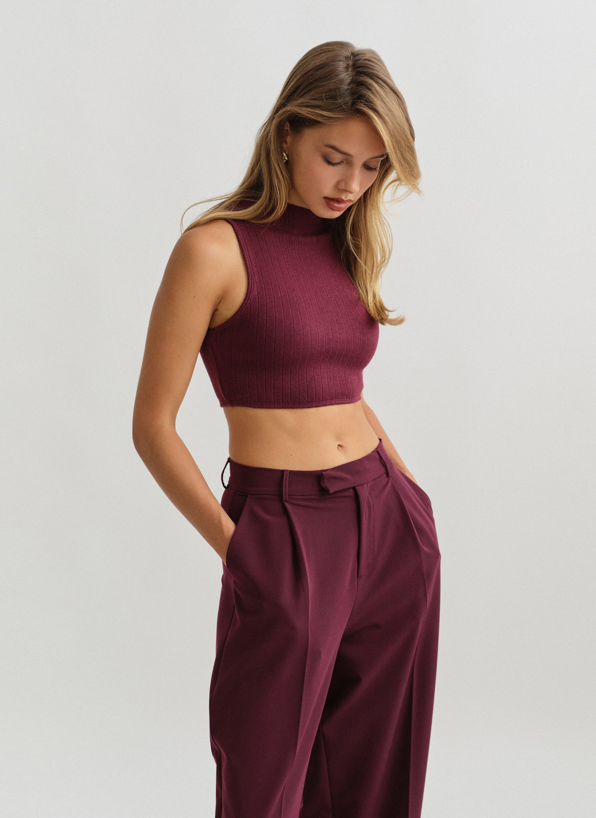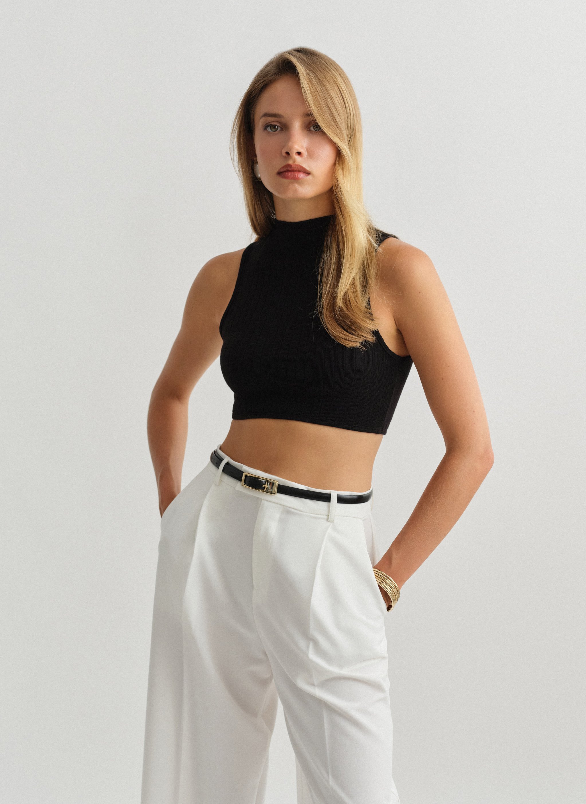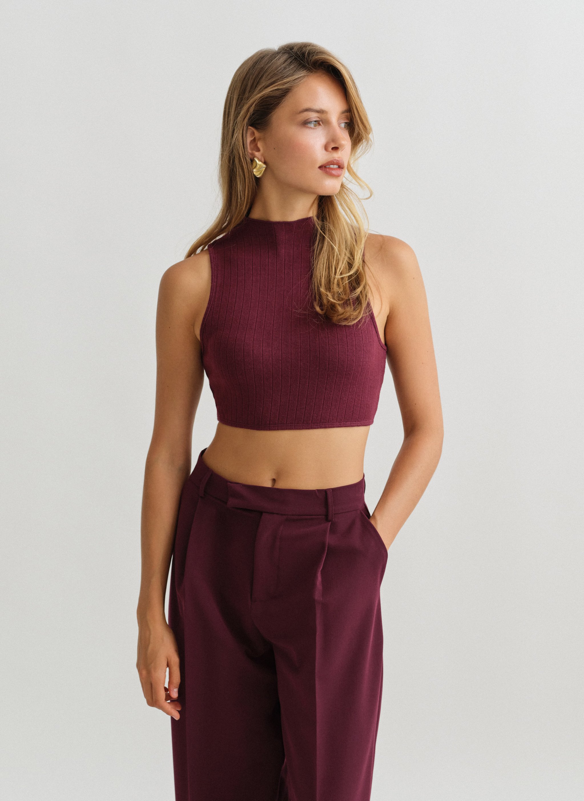 Αμάνικο ελαστικό πλεκτό ριπ crop τοπ με όρθιο γιακά.
