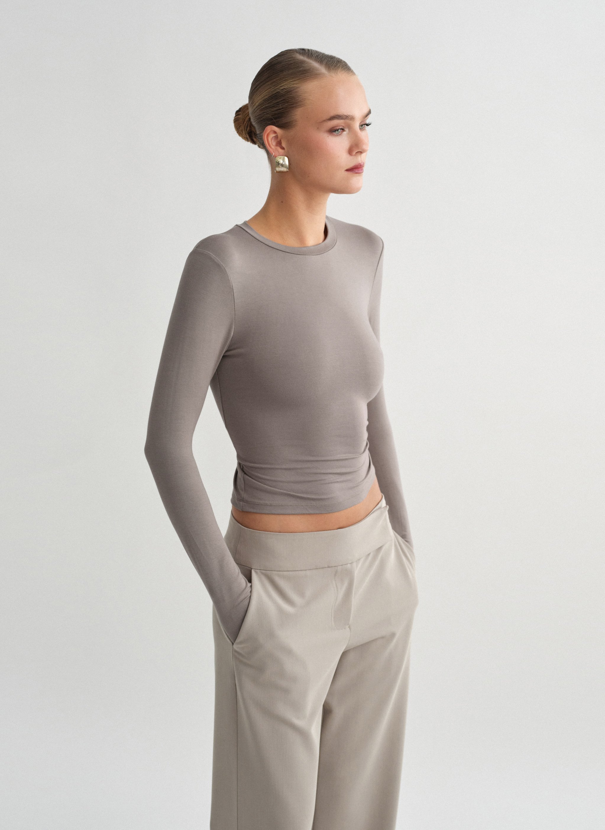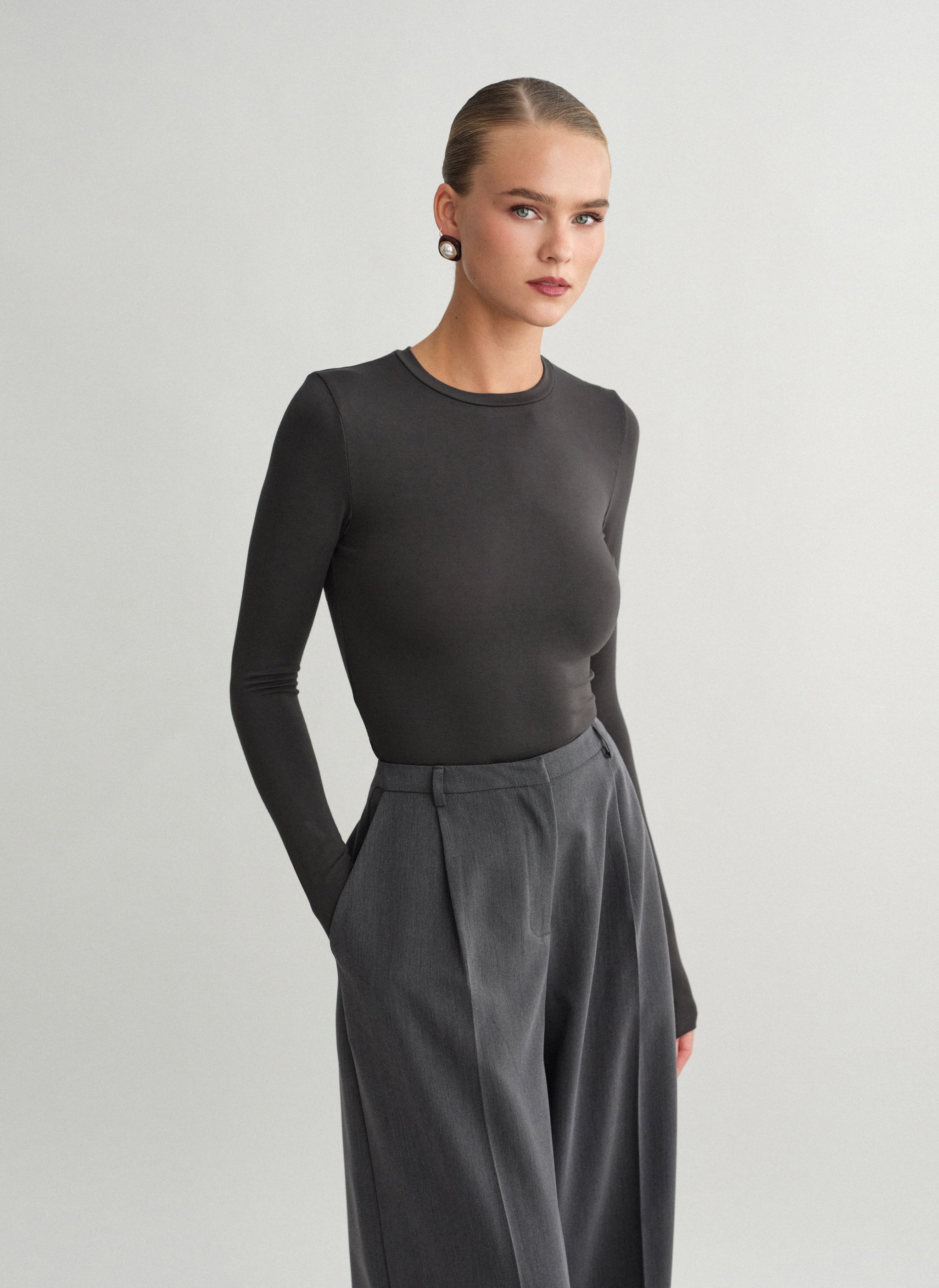 Basic μακρυμάνικο τοπ bamboo με στρογγυλή λαιμόκοψη
