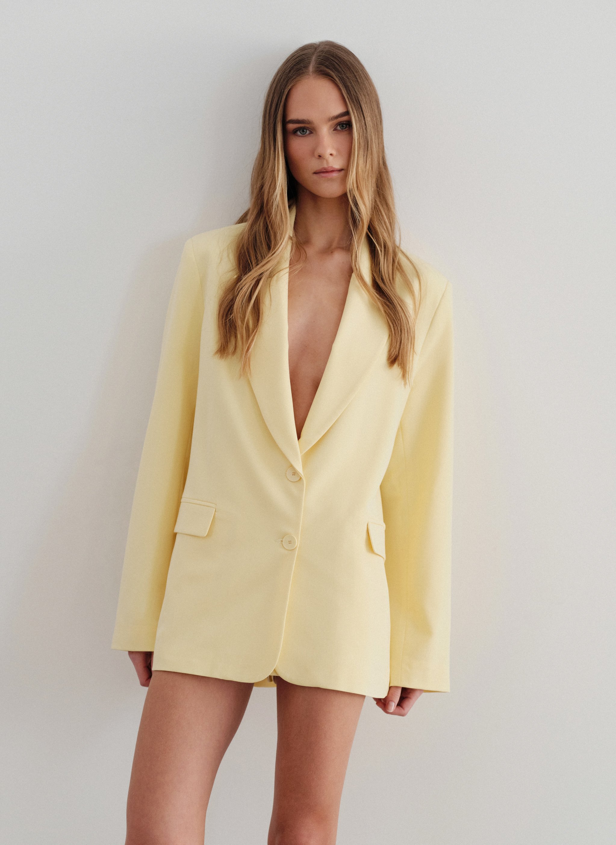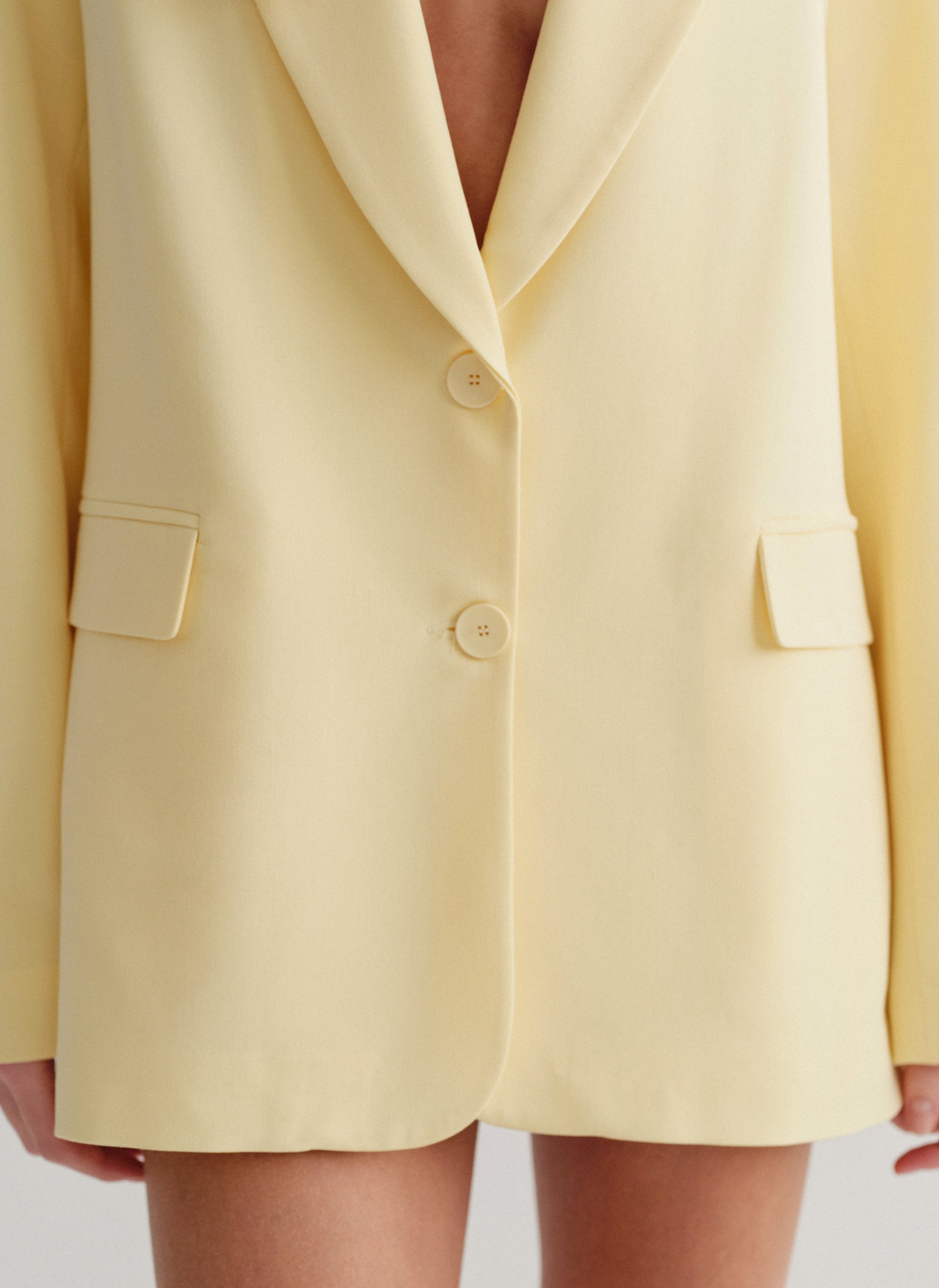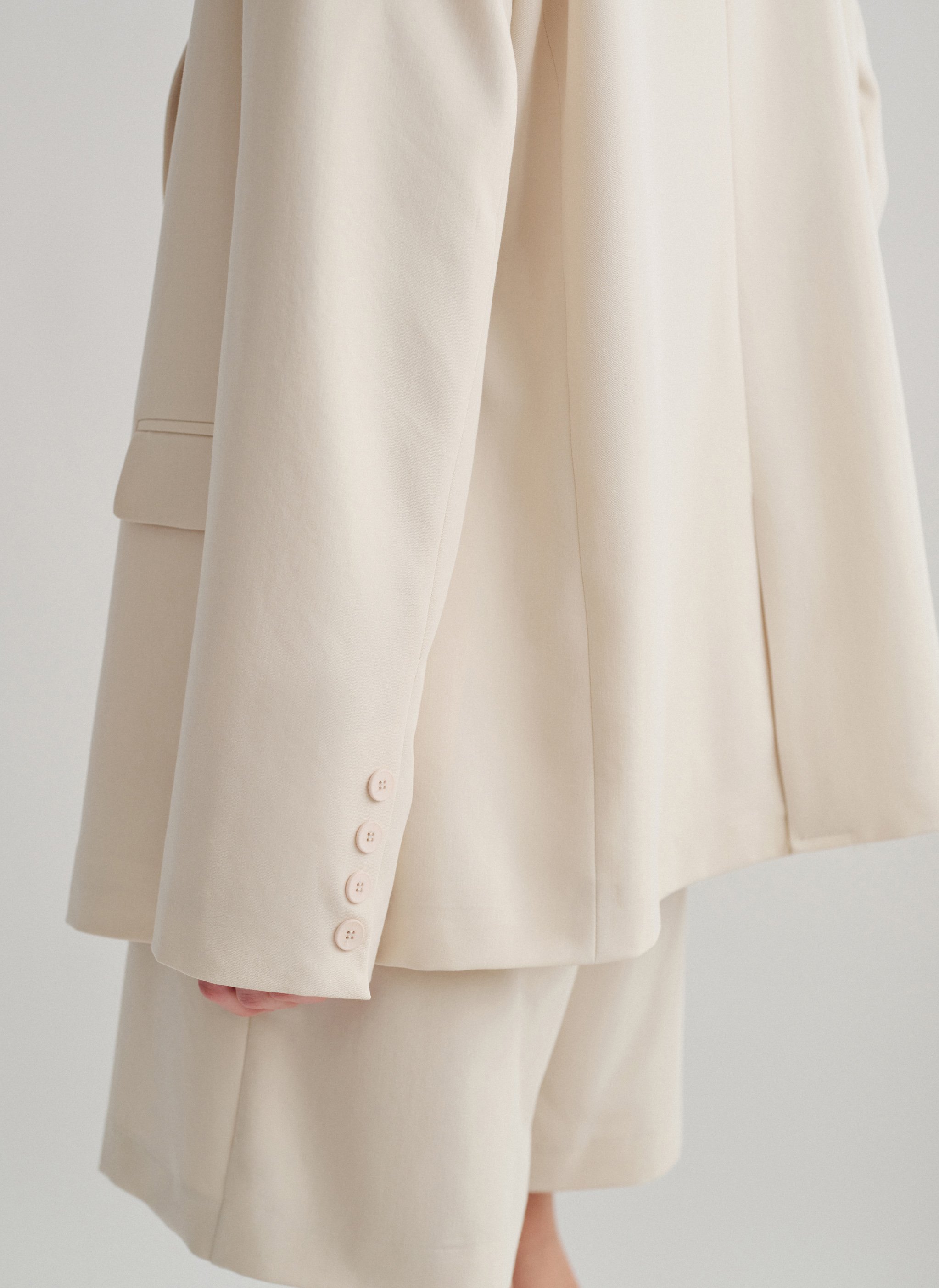 Το προϊόν διαθέτει ίσια γραμμή, με μακρύ μανίκι με τέσσερα κουμπιά, σκίσιμο στο πίσω μέρος, βάτες στους ώμους και φόδρα.