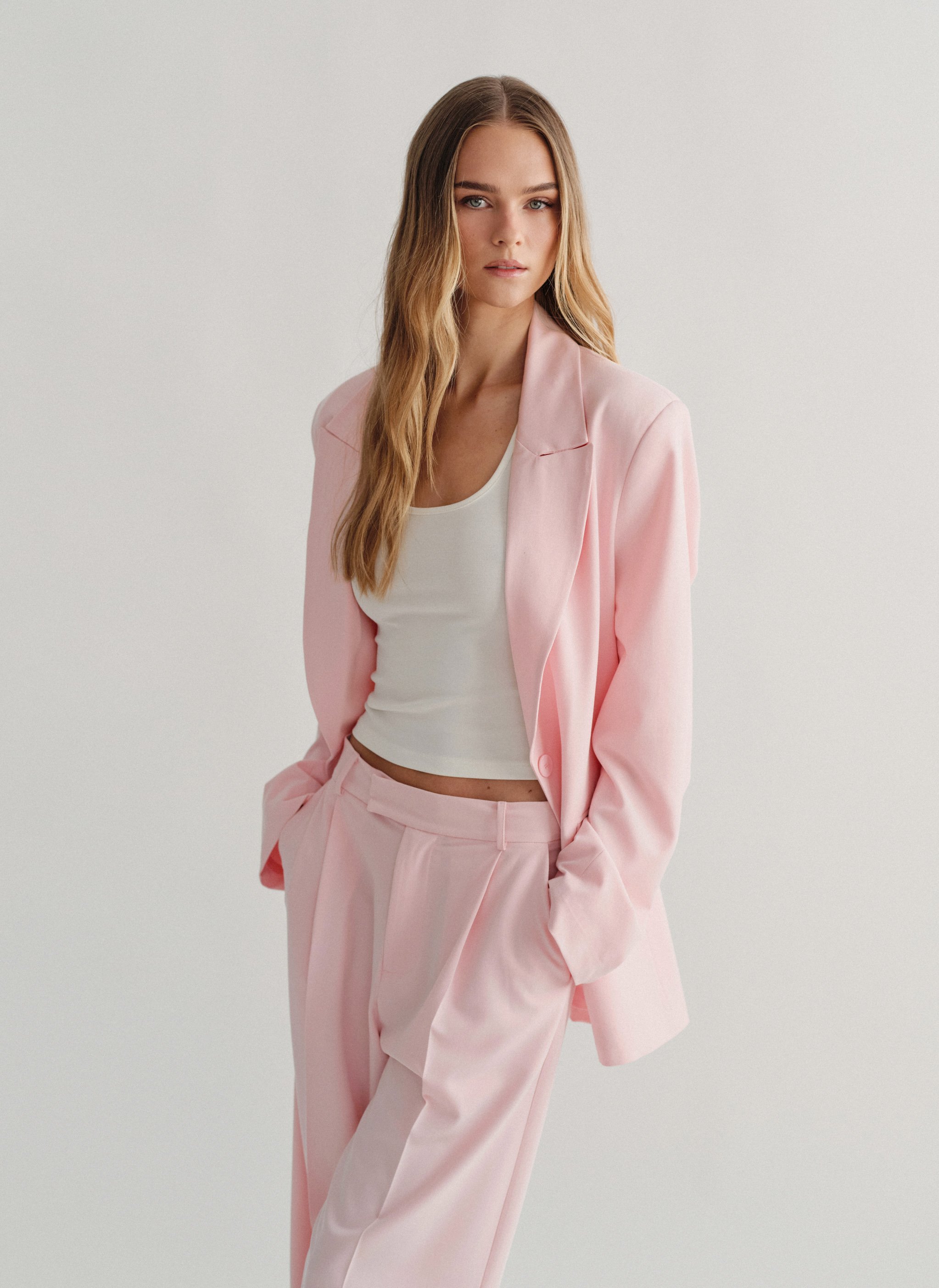 Basic oversized μπλέιζερ με τσέπες και κλείσιμο μπροστά με κουμπιά.
