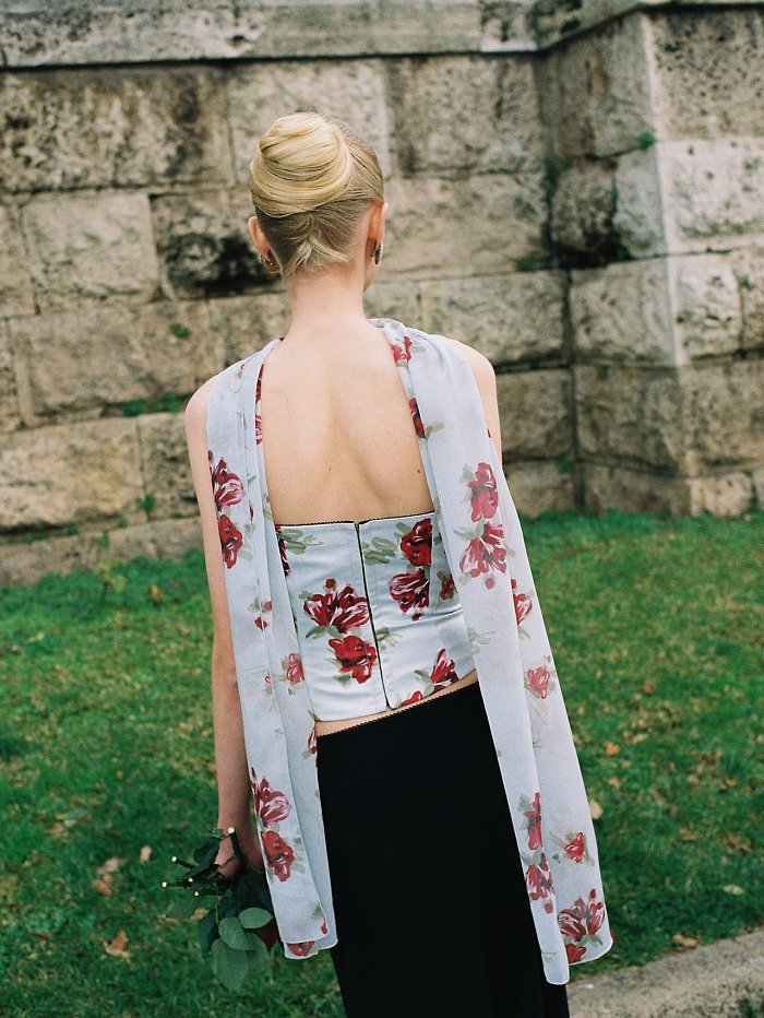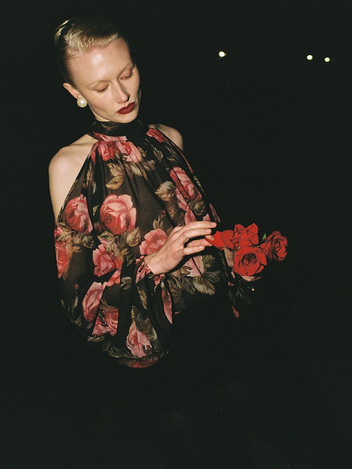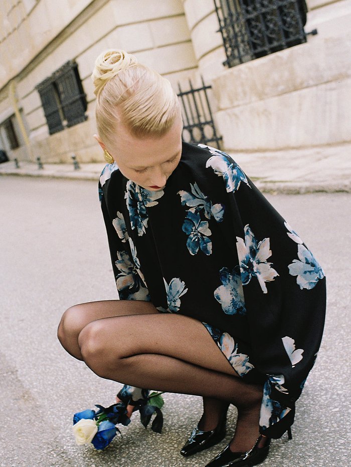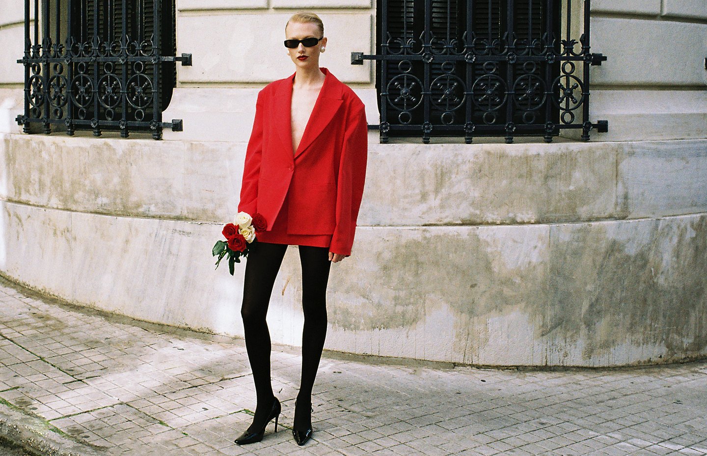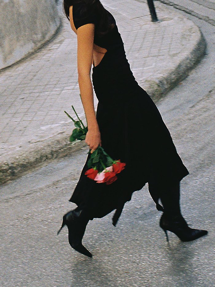 Άλλα στοιχεία του fashion story, ο αυστηρός, γαλλικός κότσος, τριαντάφυλλο στο χέρι και η απόλυτη απόχρωση σε κόκκινο κραγιόν, ισορροπώντας την κομψότητα και τη γοητεία. Ανάμεσα σε βλέμματα, γέλια και τον ήχο της πόλης, μια σύγχρονη ιστορία αγάπης αρχίζει.