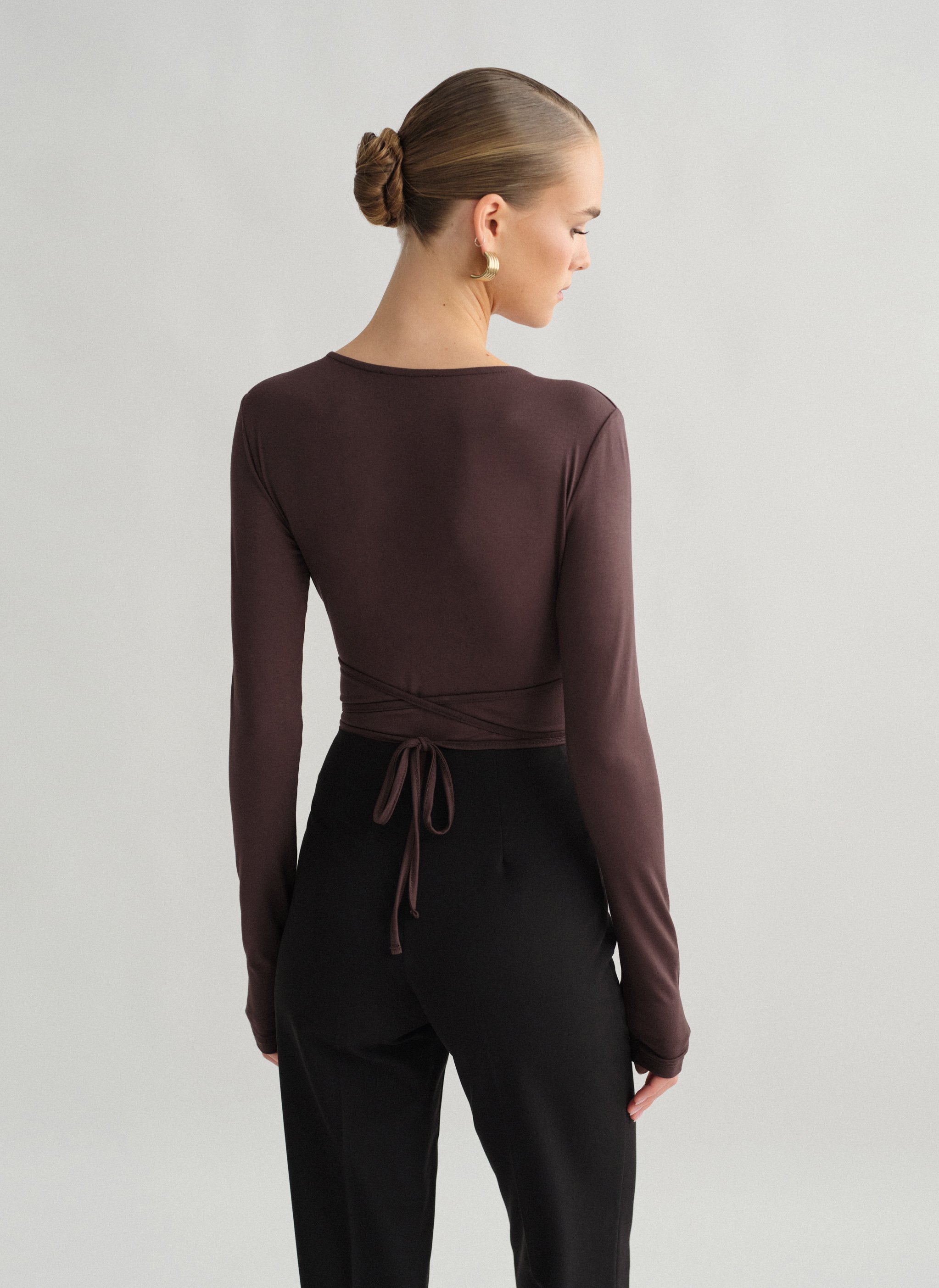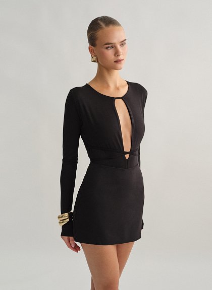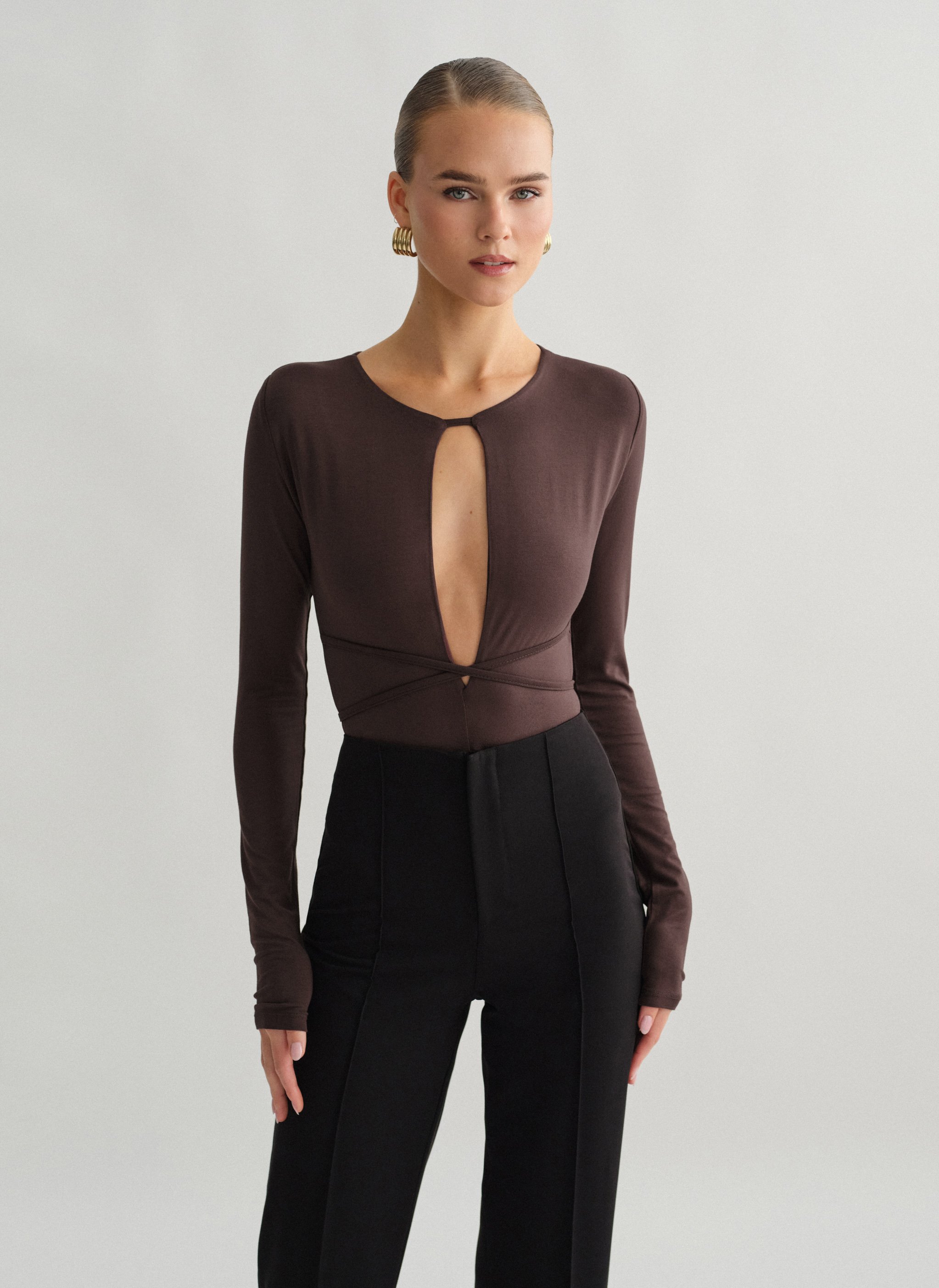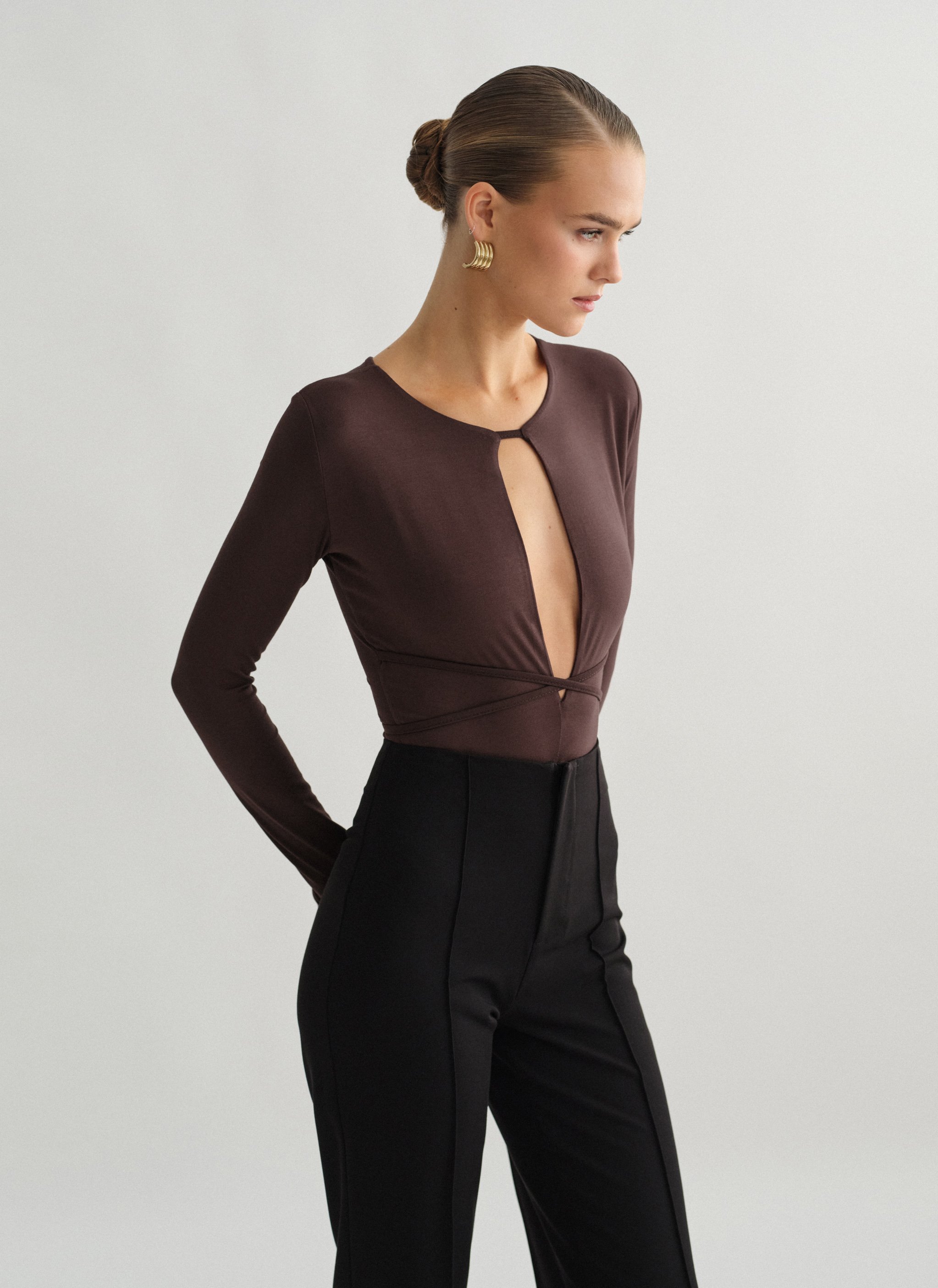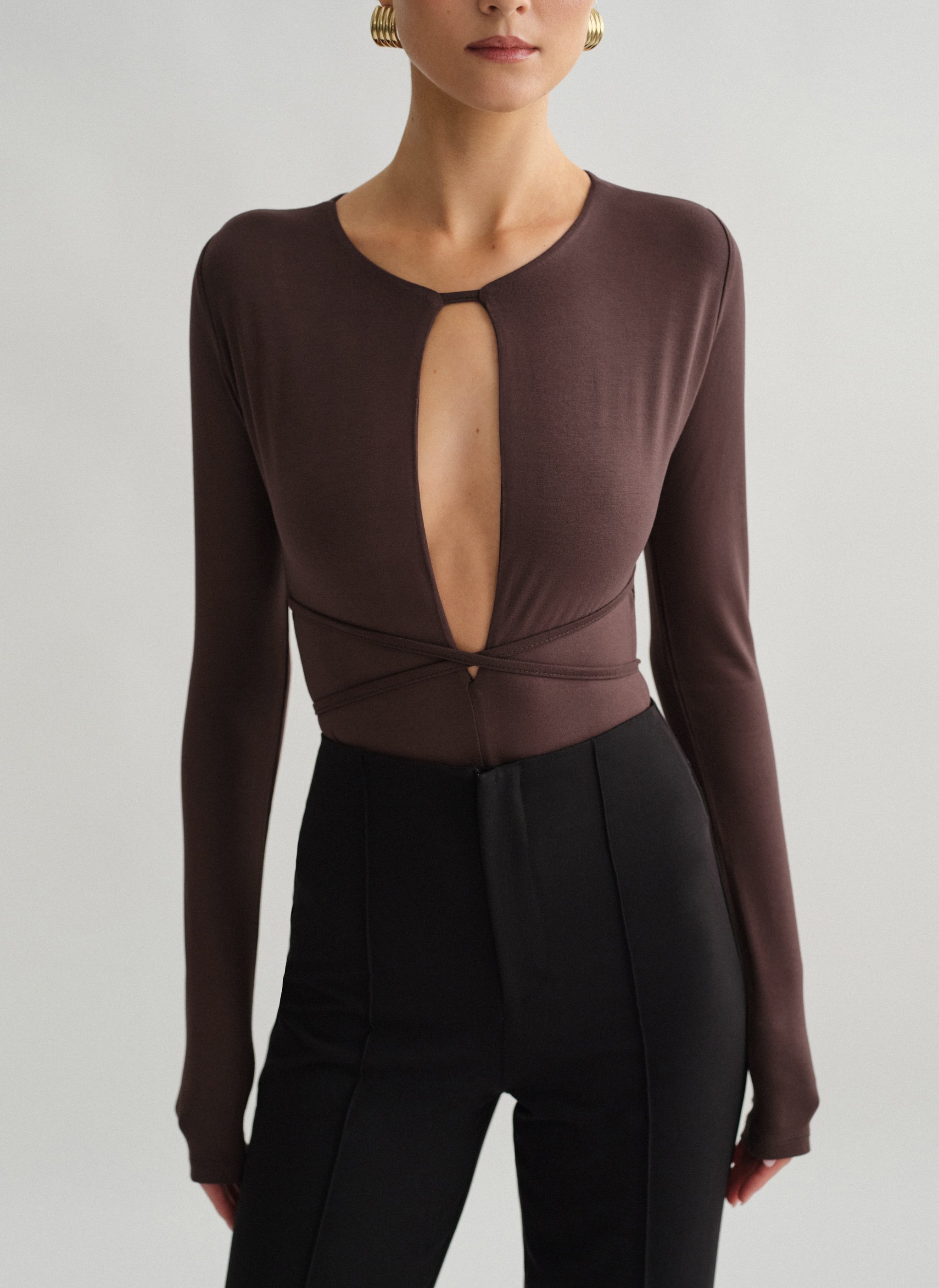 Ελαστικό μακρυμάνικο κορμάκι με cut-out λεπτομέρεια εμπρός bamboo.