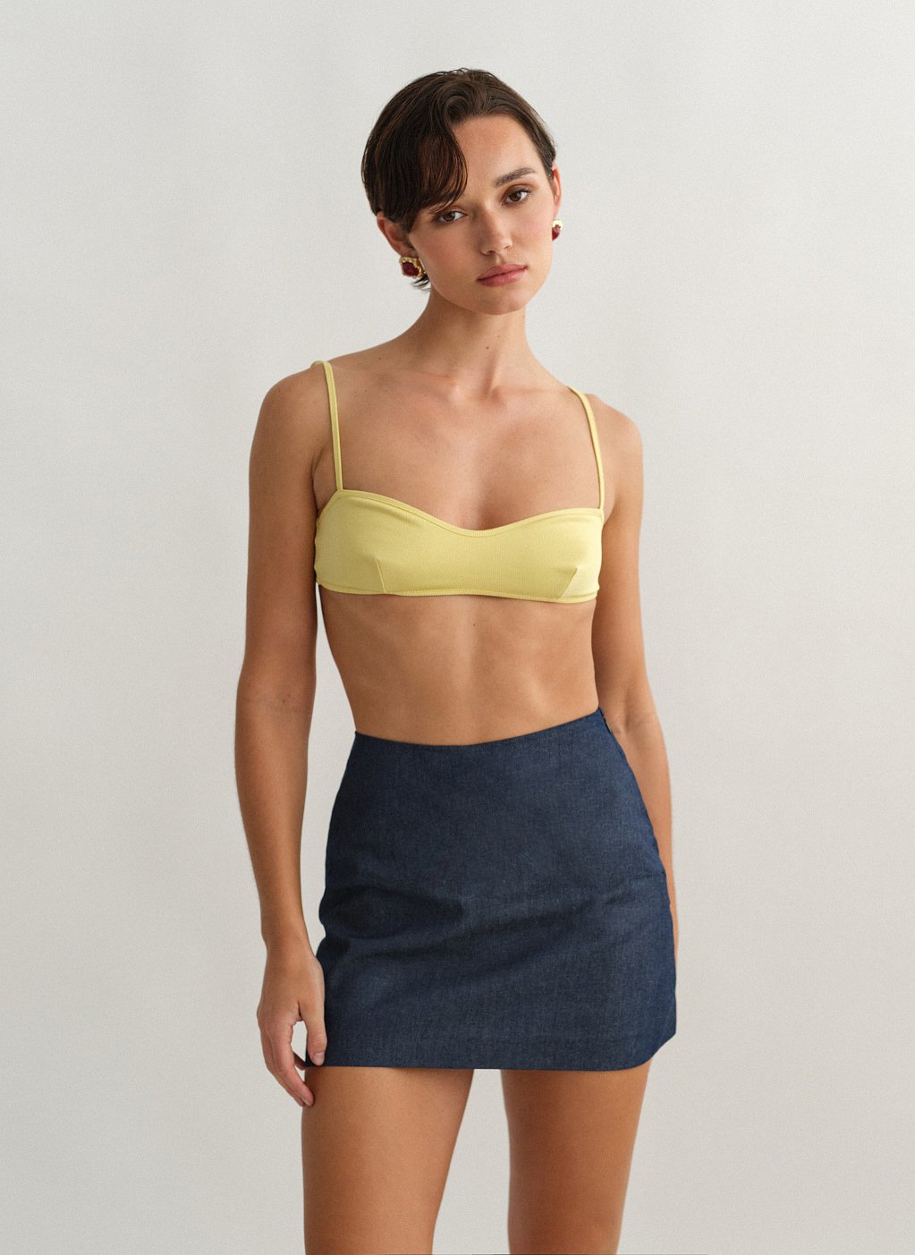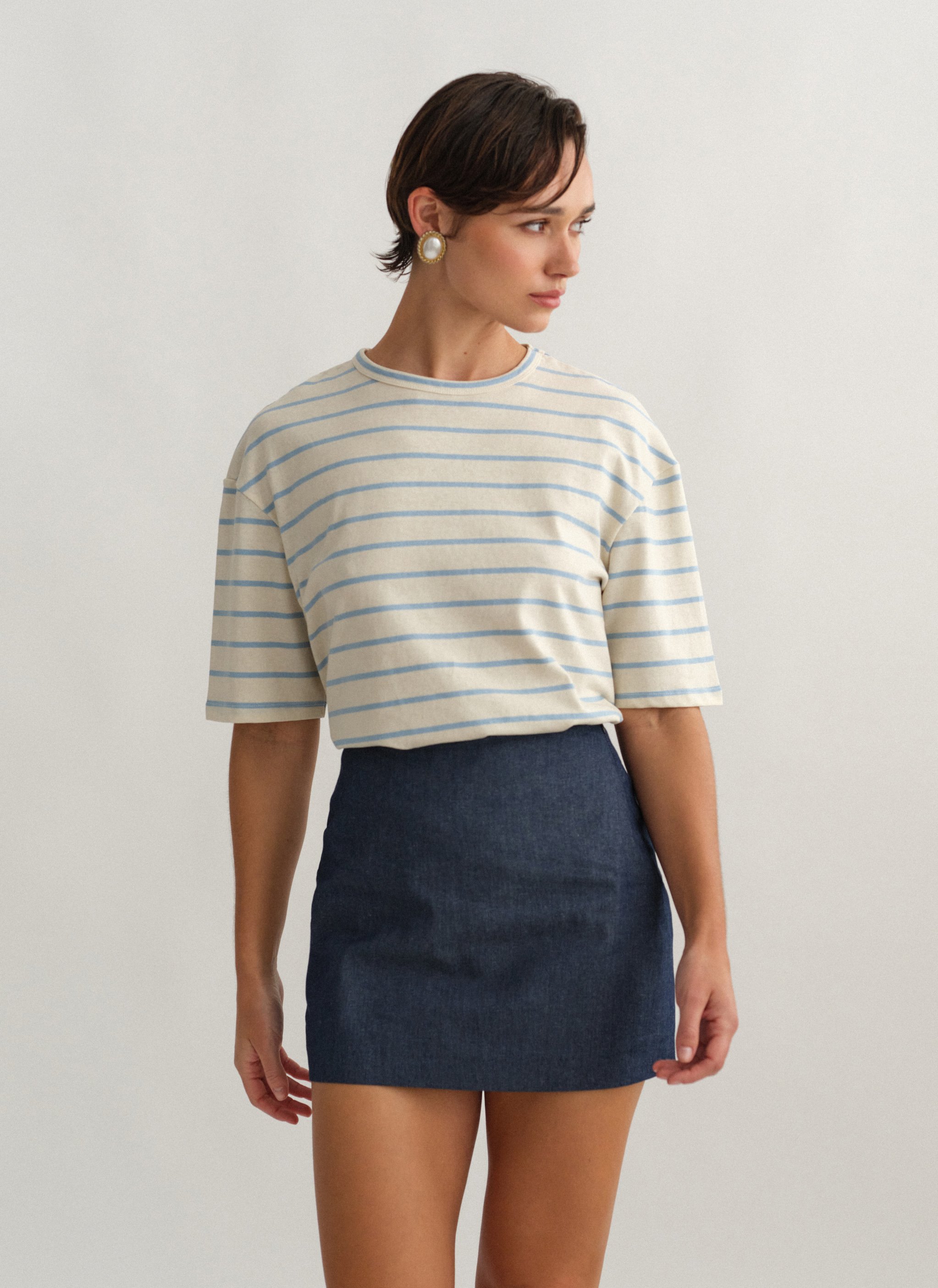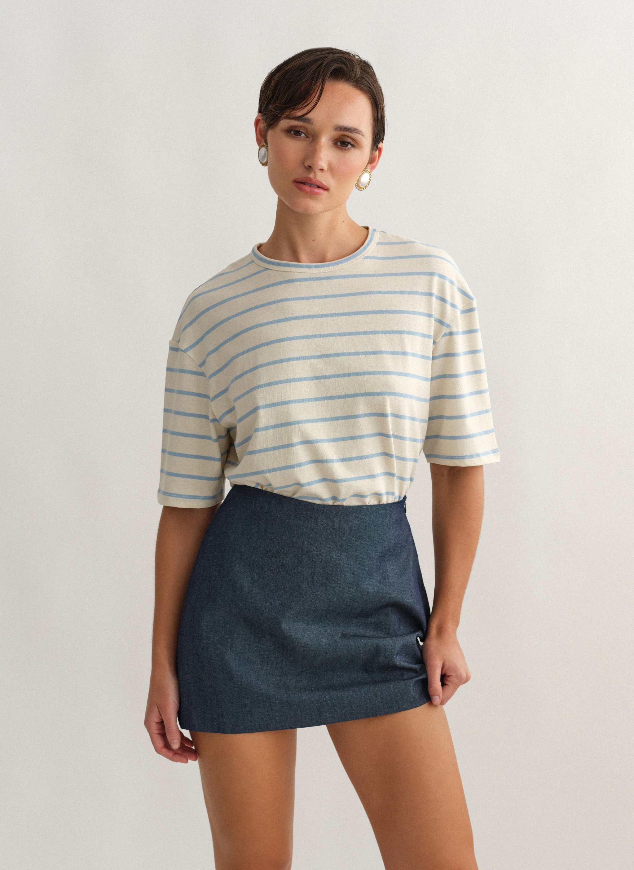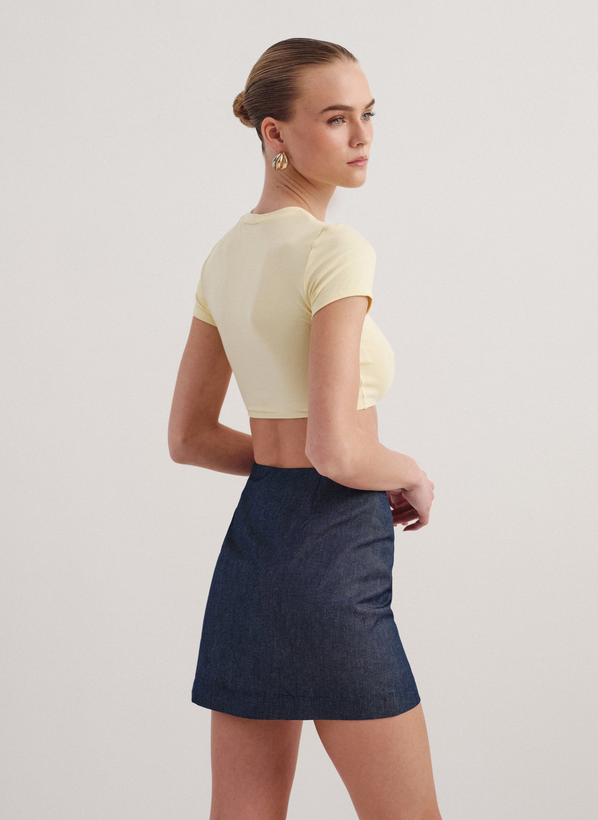 Ψηλόμεση denim παντελονόφουστα με κρυφό φερμουάρ στο πλάι.