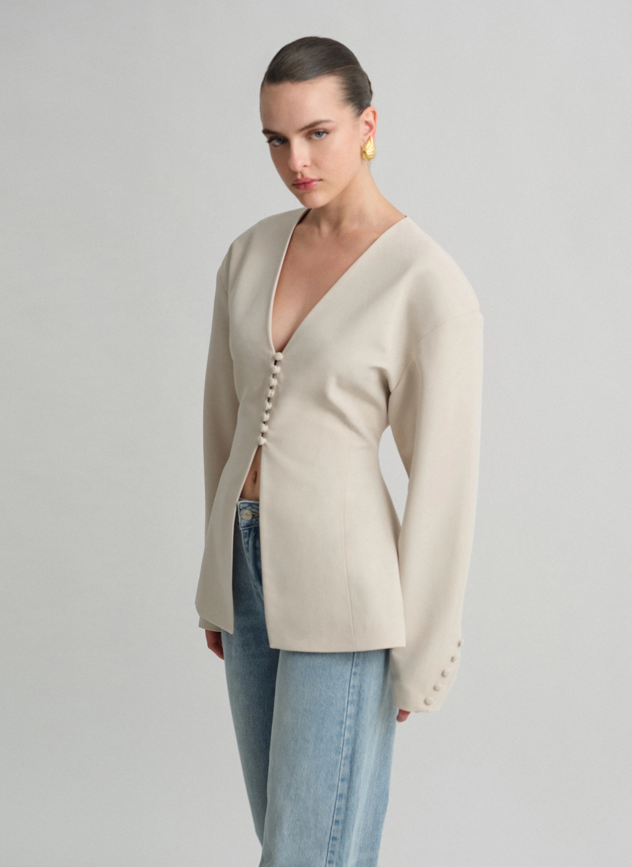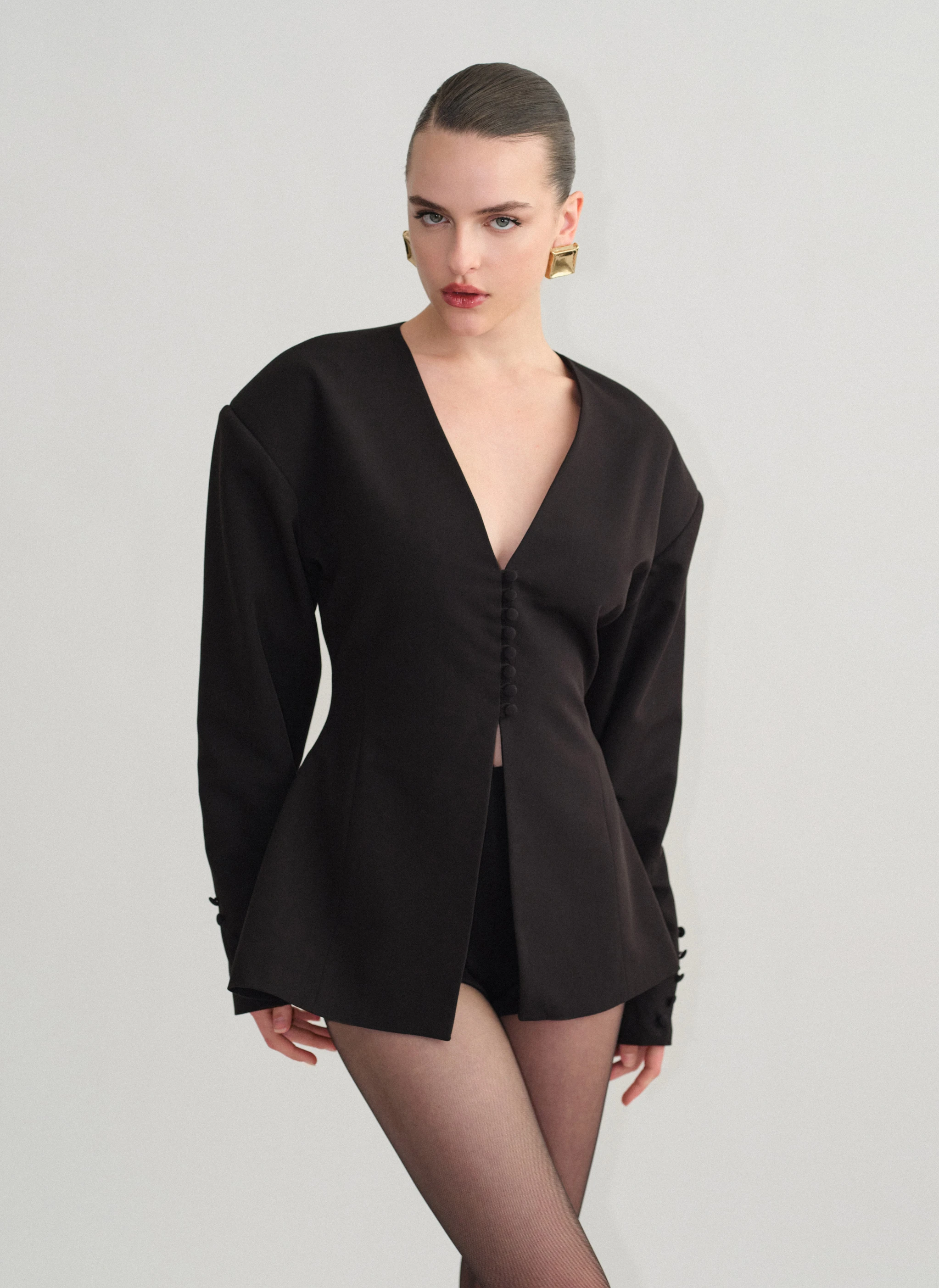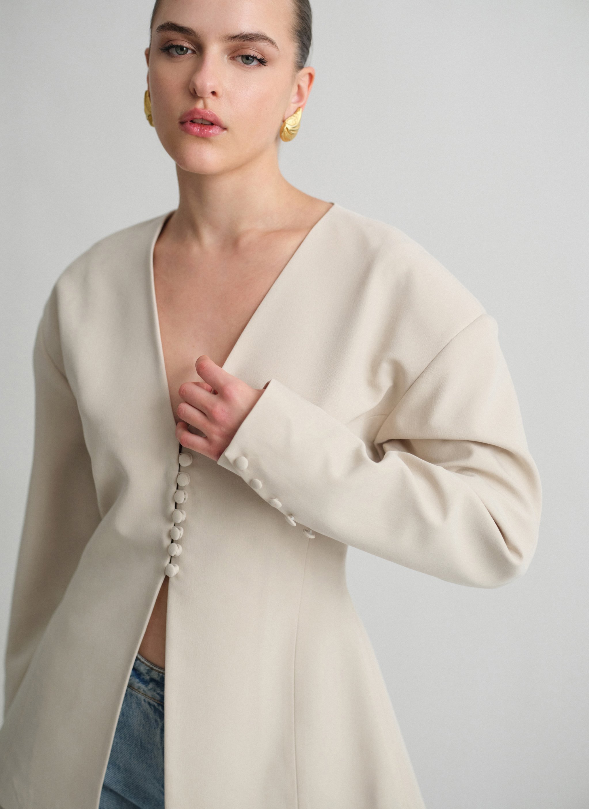 Fitted blazer with wide sleeves and front fastening with buttons of the same fabric.