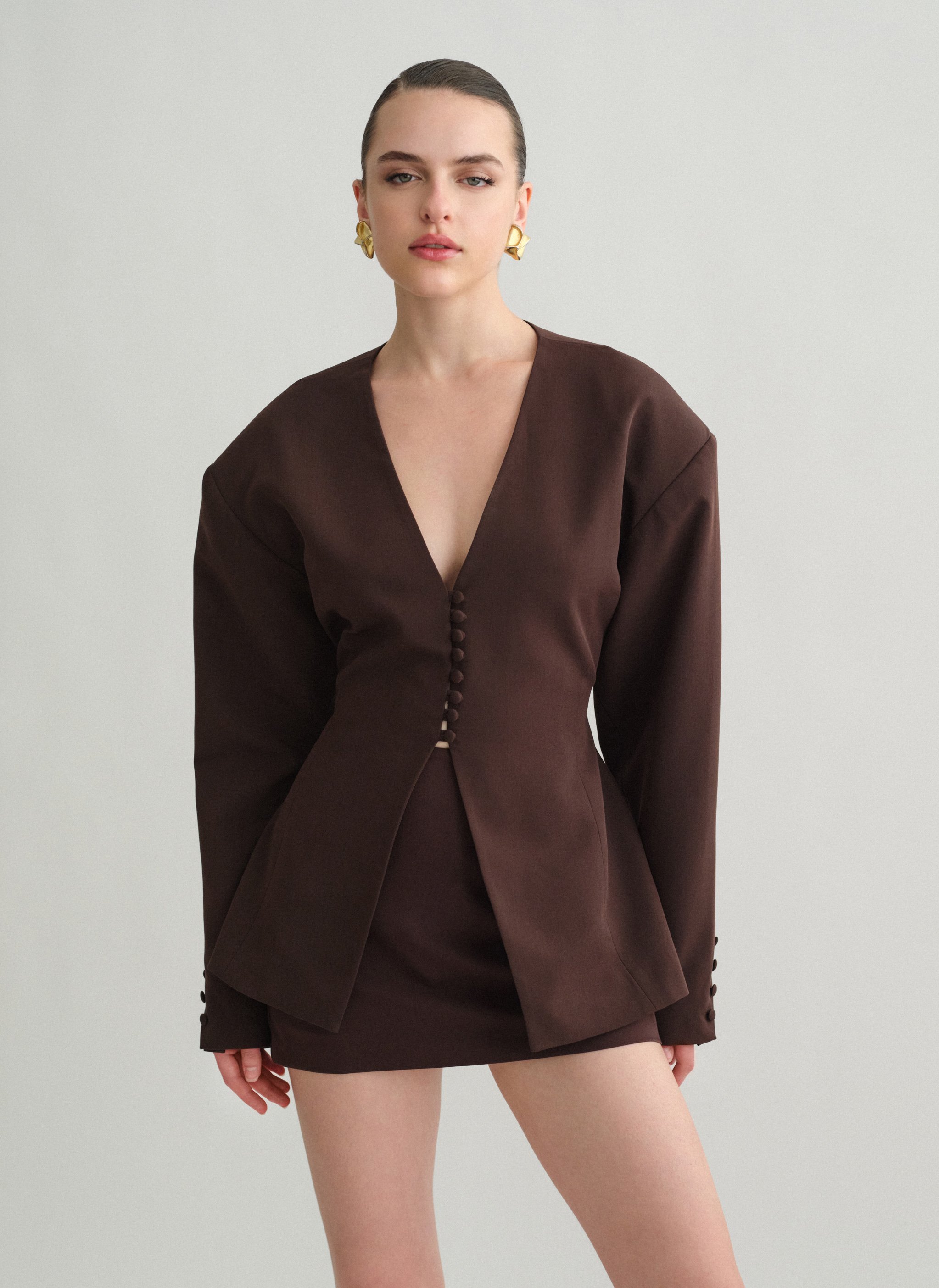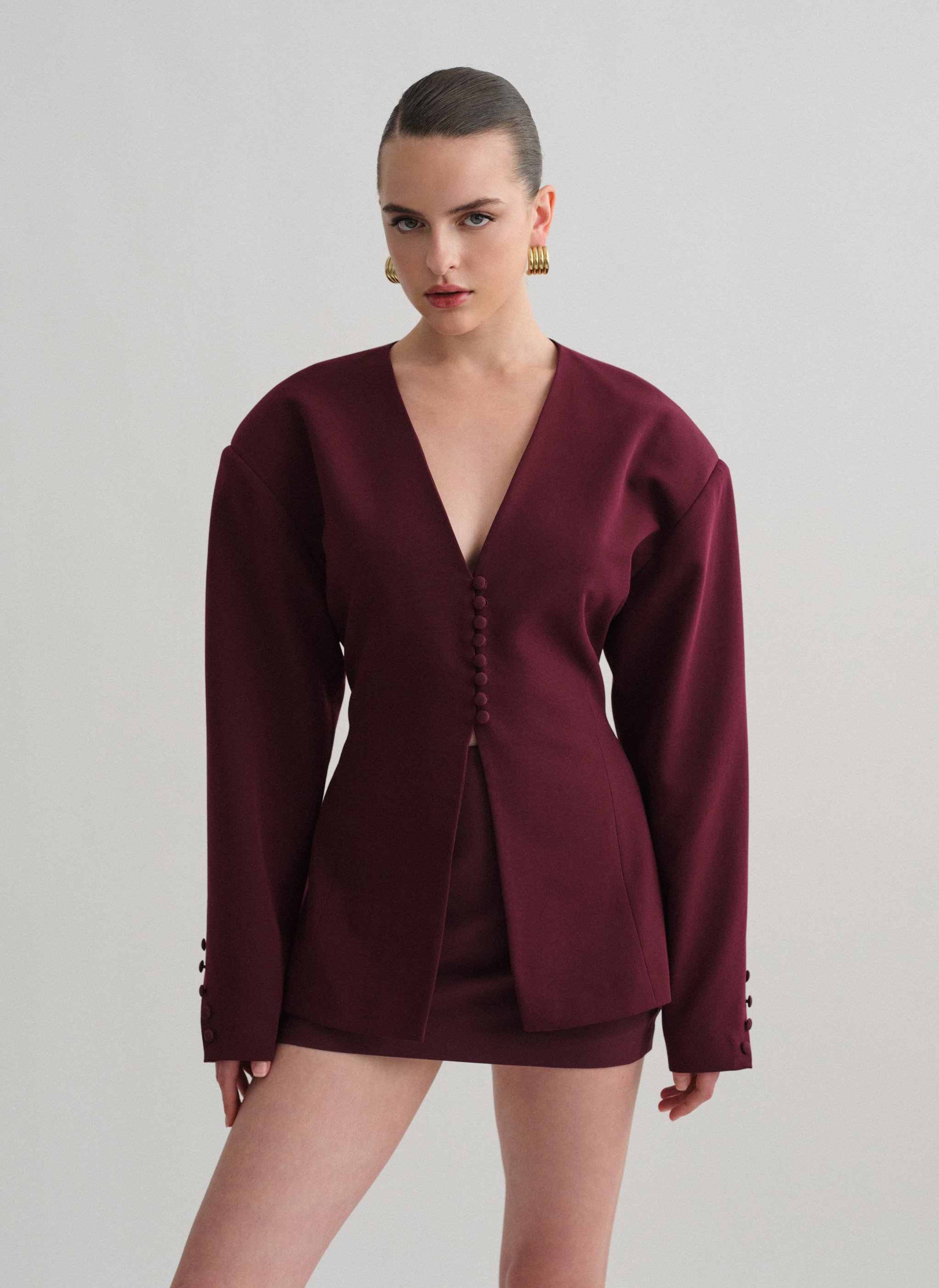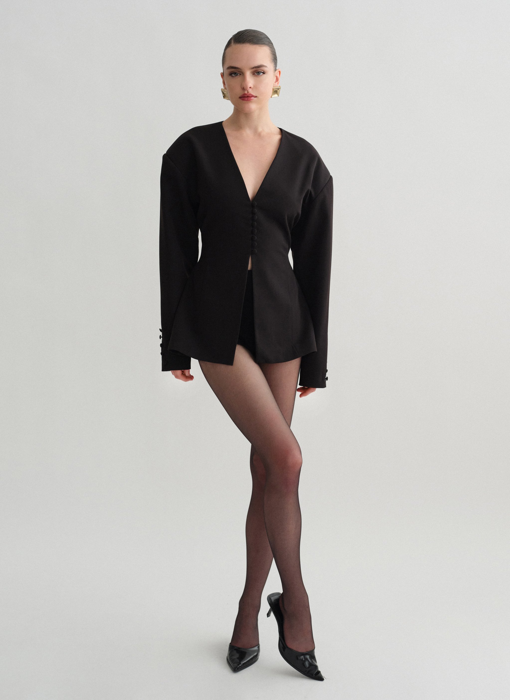 Fitted blazer with wide sleeves and front fastening with buttons of the same fabric.