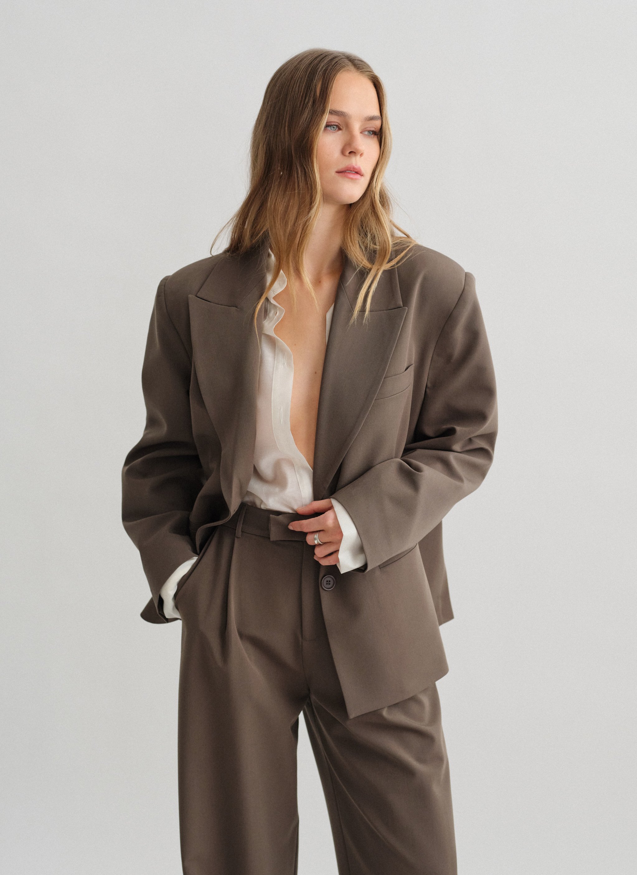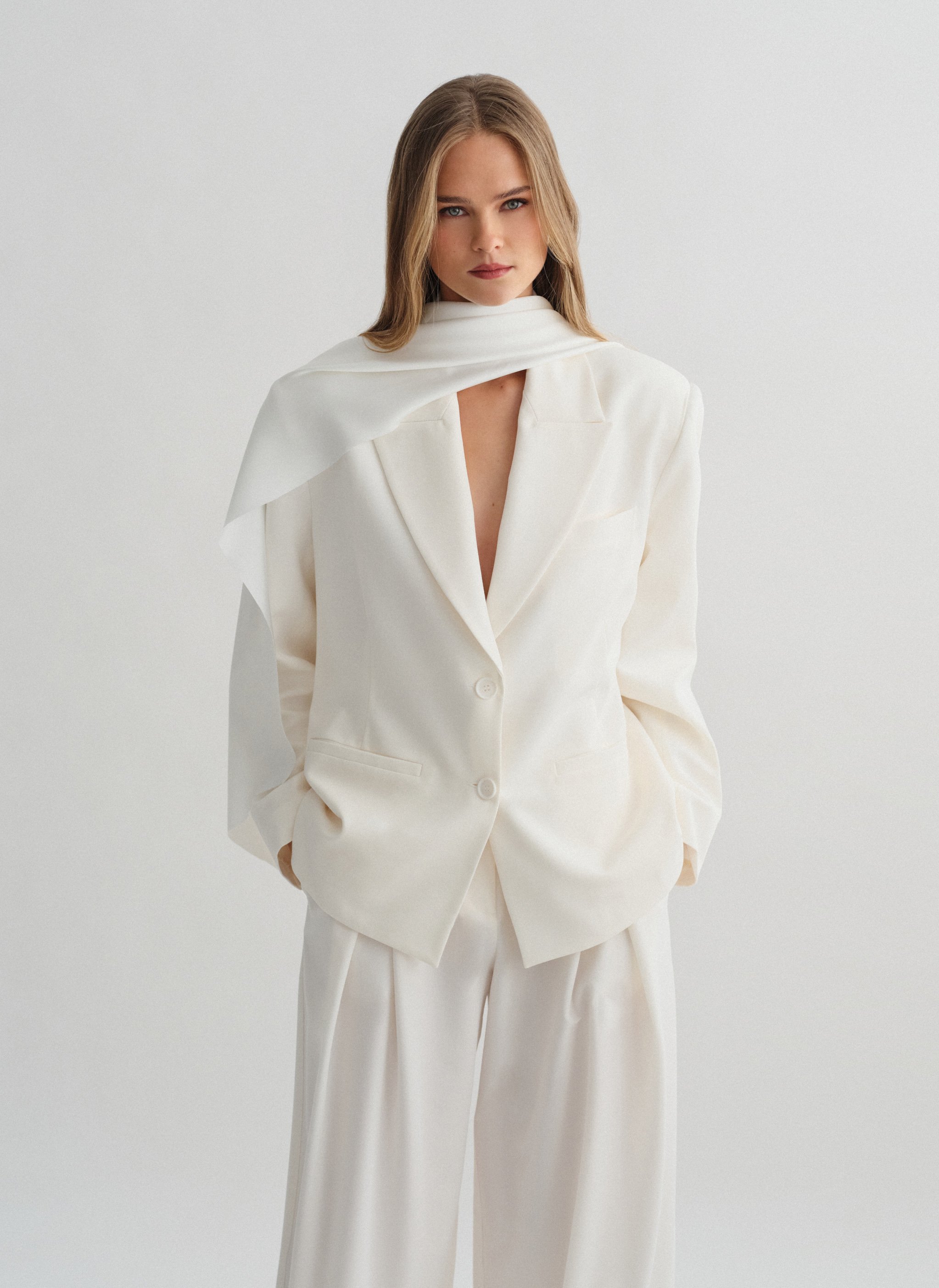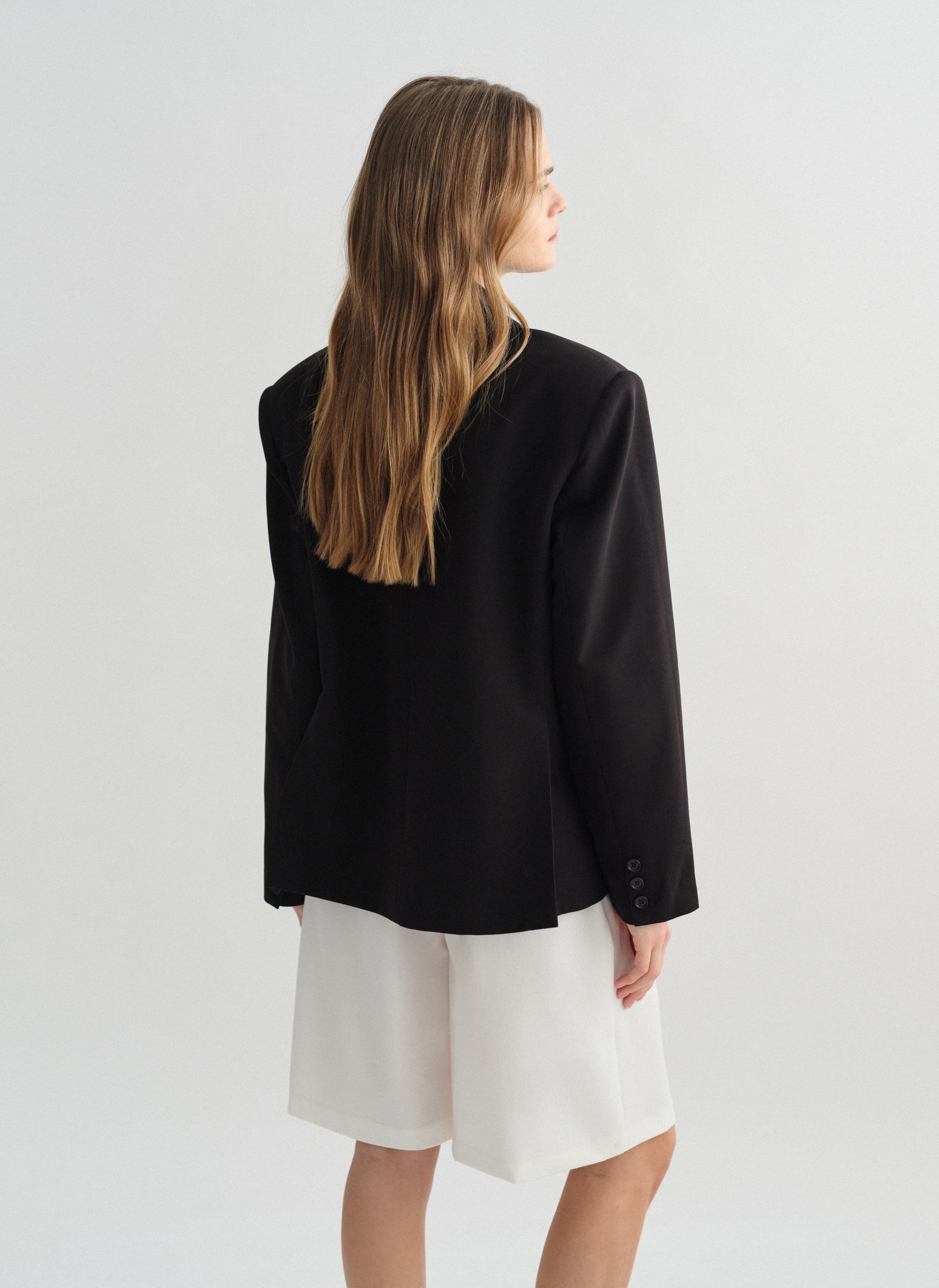 The product features straight line, with long sleeves with three buttons on the cuffs, double back slit, shoulder pads and lining.