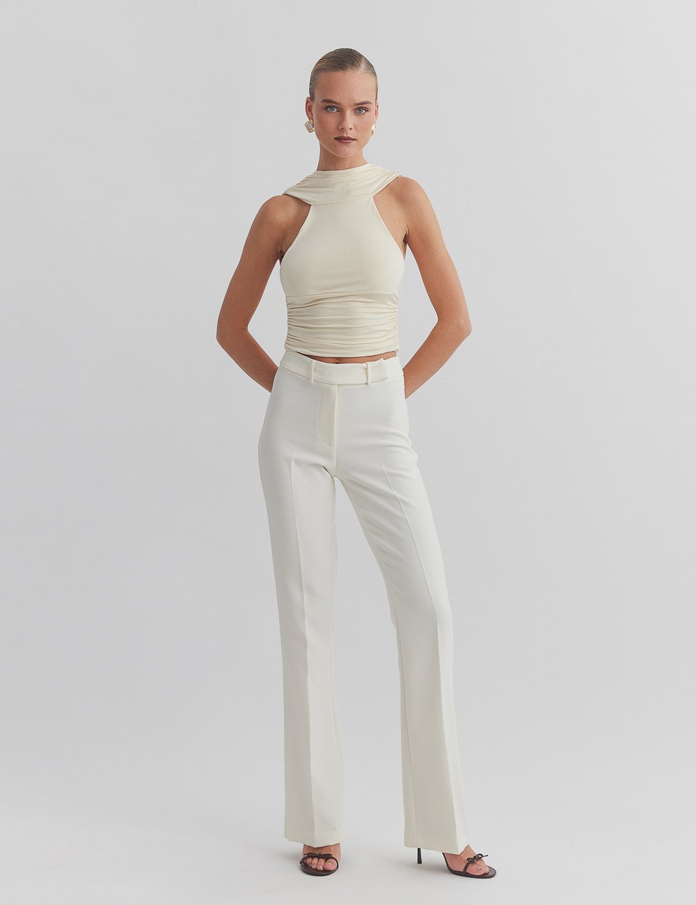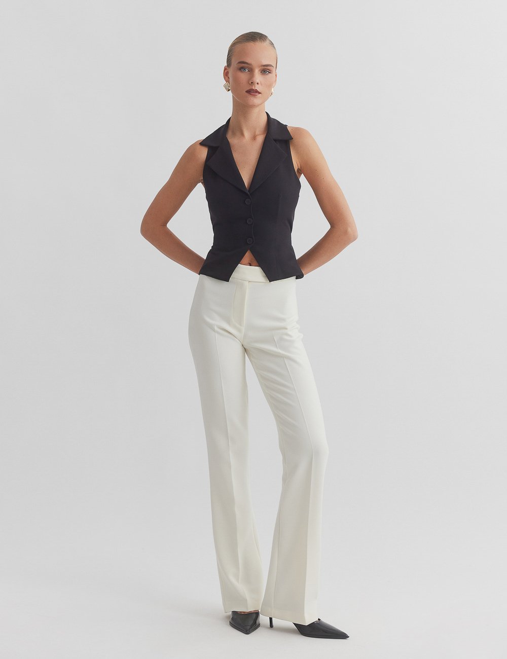 The product features regular fit, with belt loops, back false welt pockets and zipper and invisible button and hook-and-eye fastening.