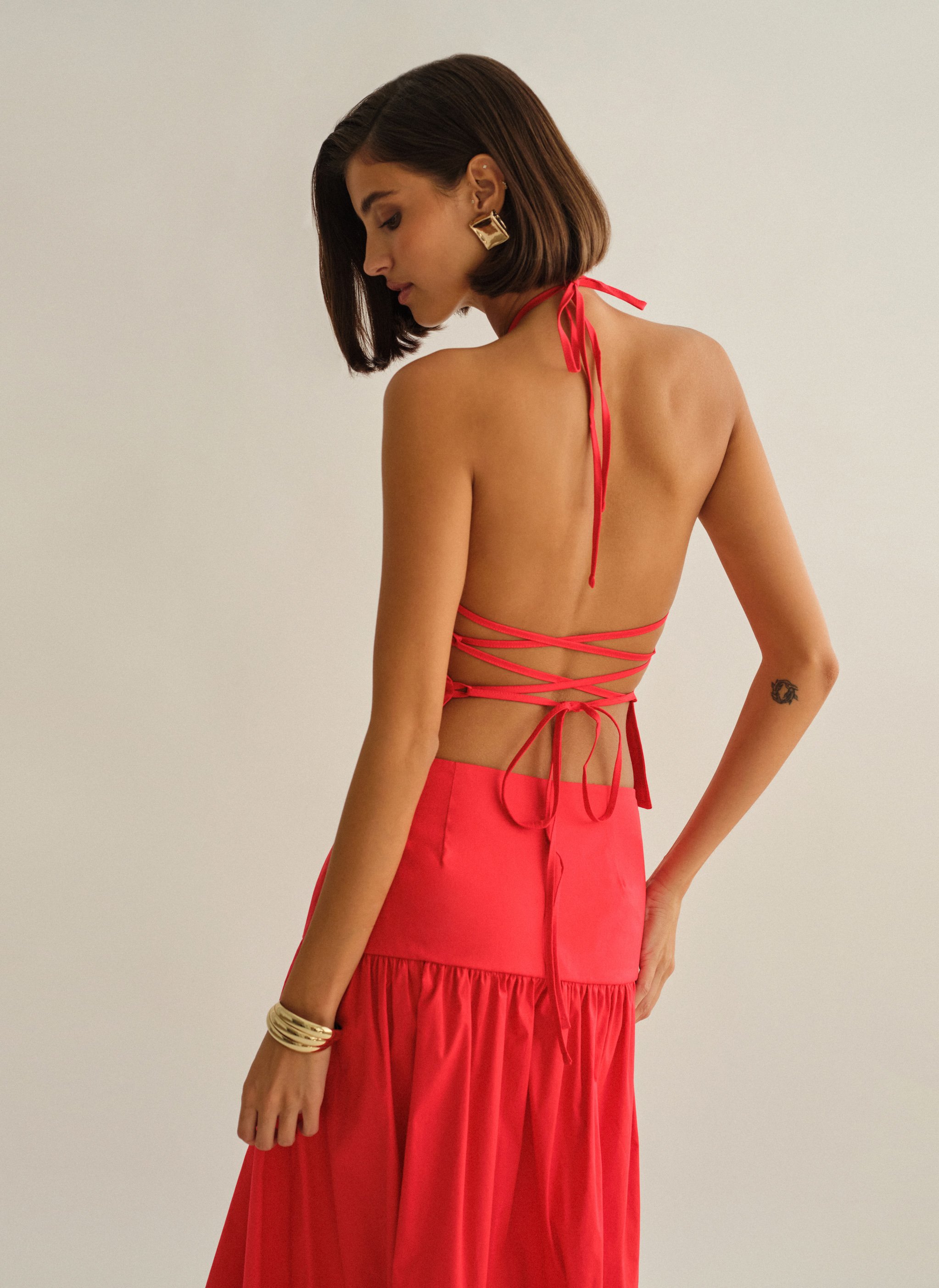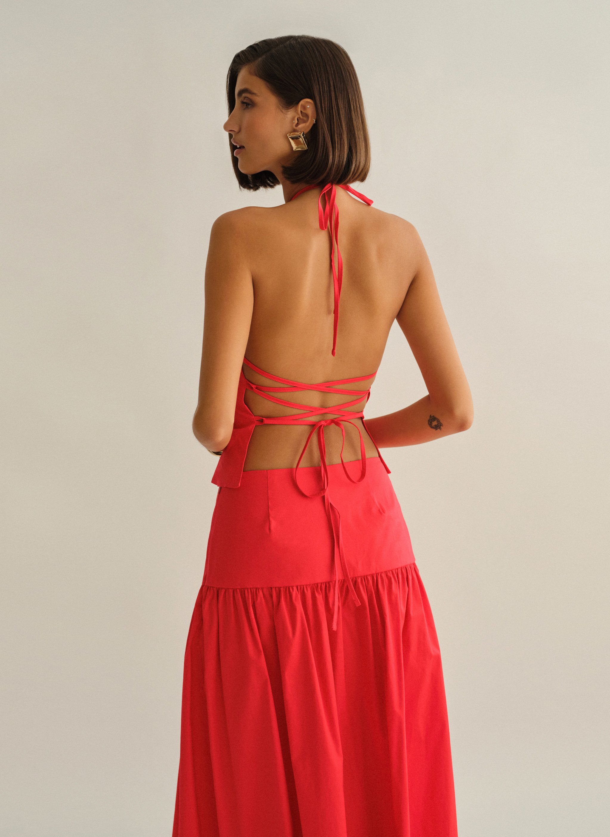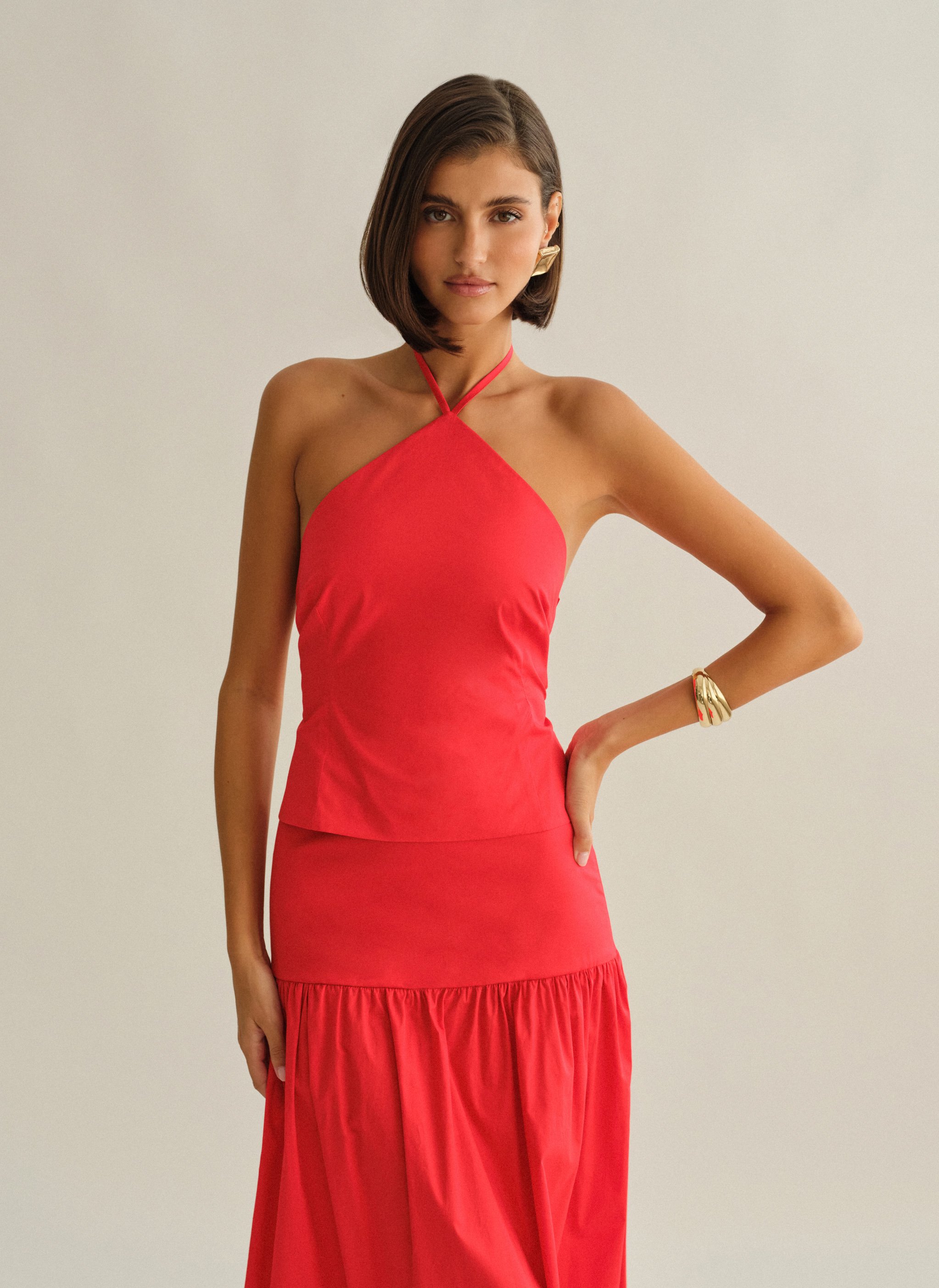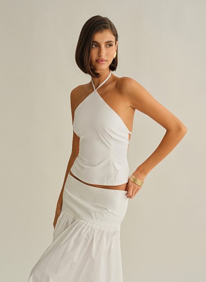 Halter ελαστικό τοπ ποπλίνα με χιαστί δέσιμο στην πλάτη.