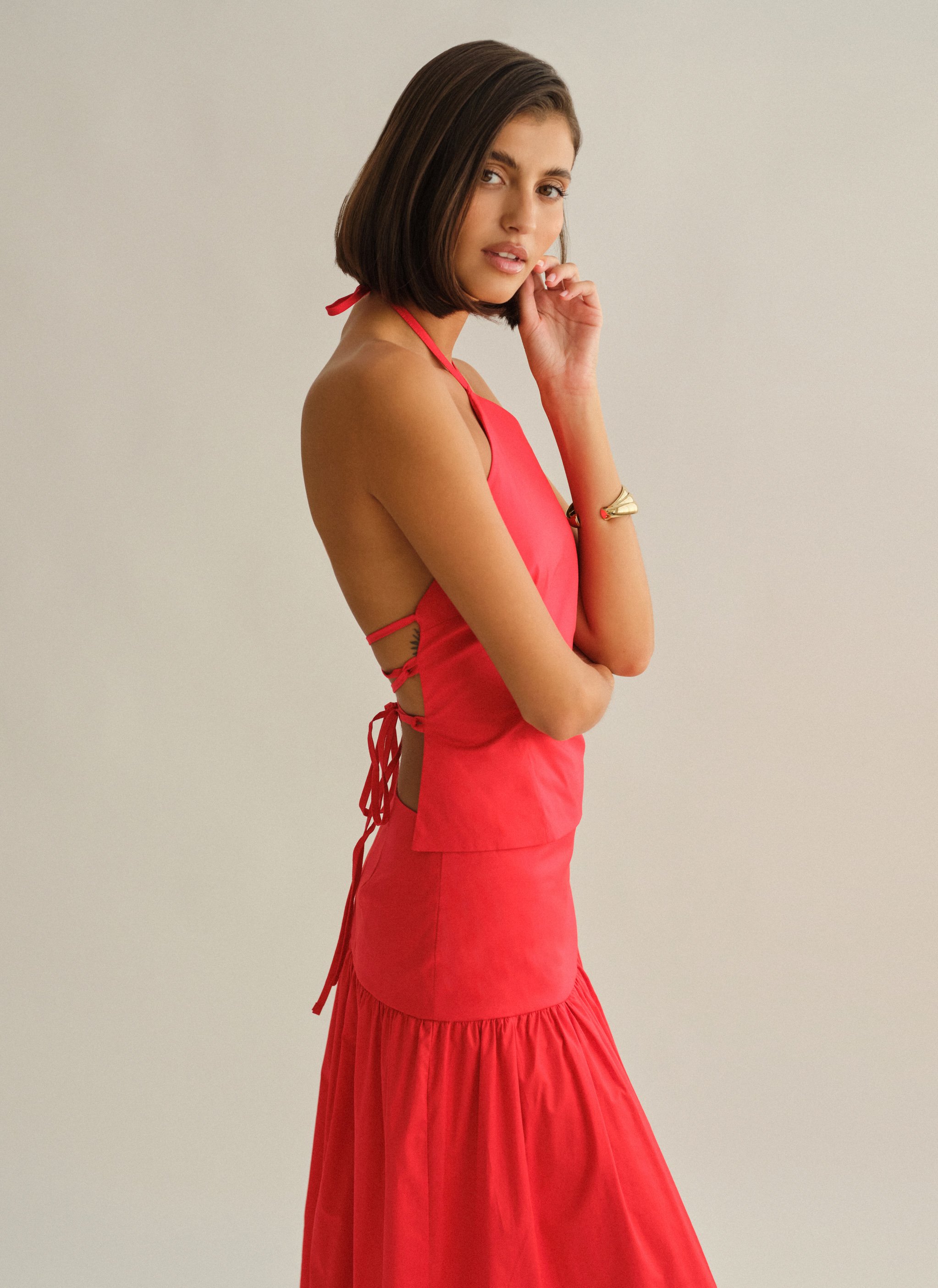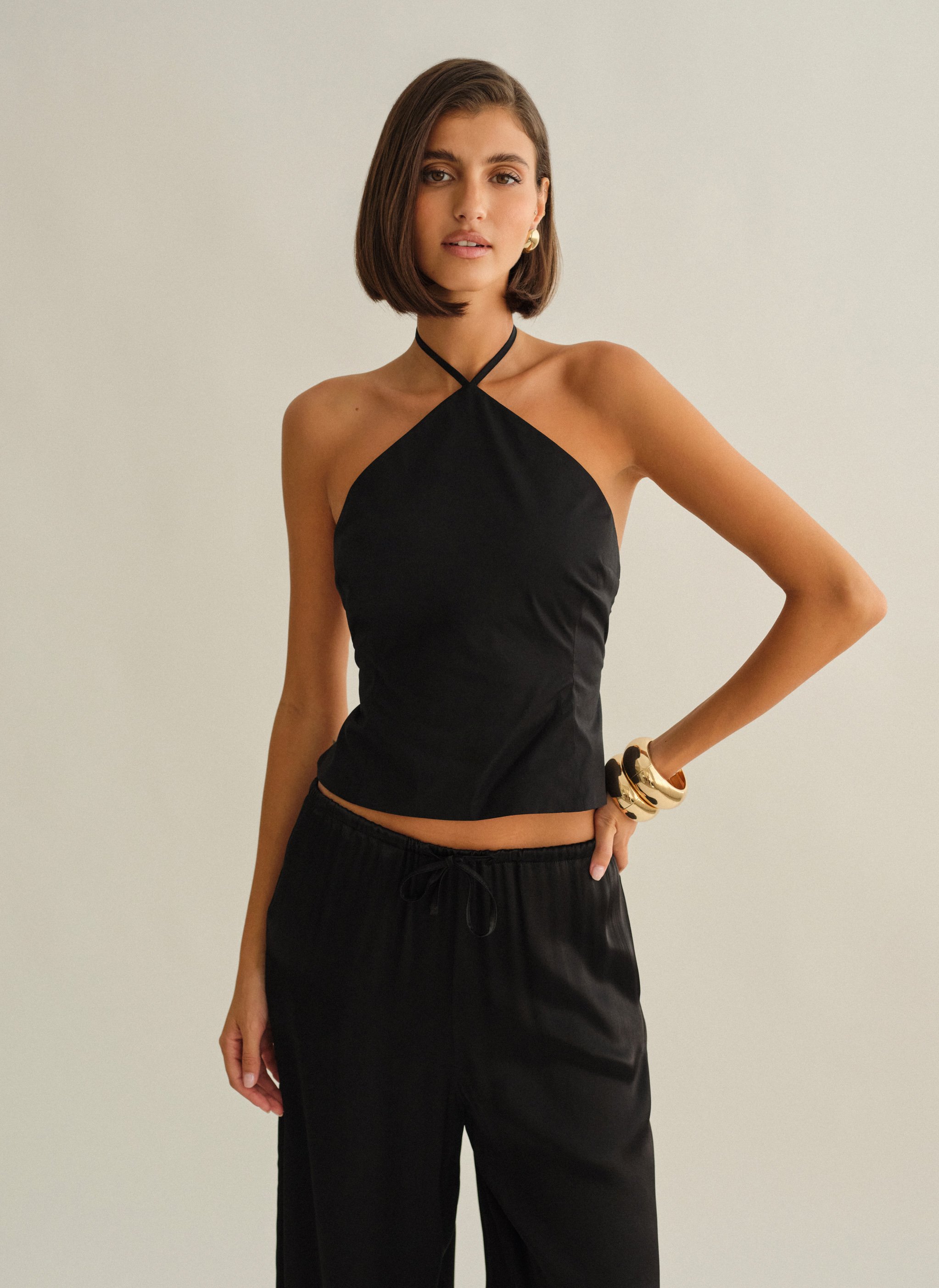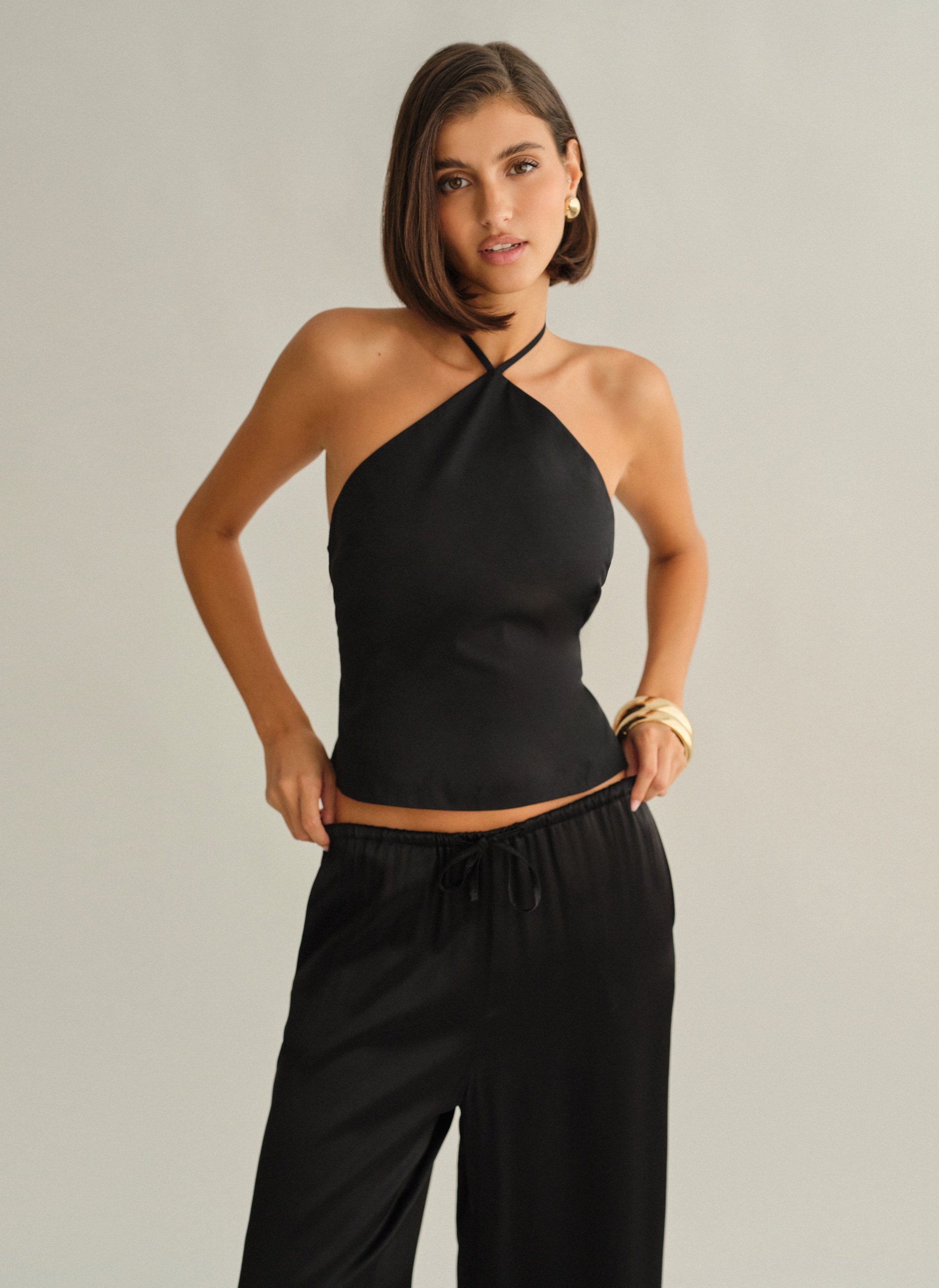 Halter ελαστικό τοπ ποπλίνα με χιαστί δέσιμο στην πλάτη.