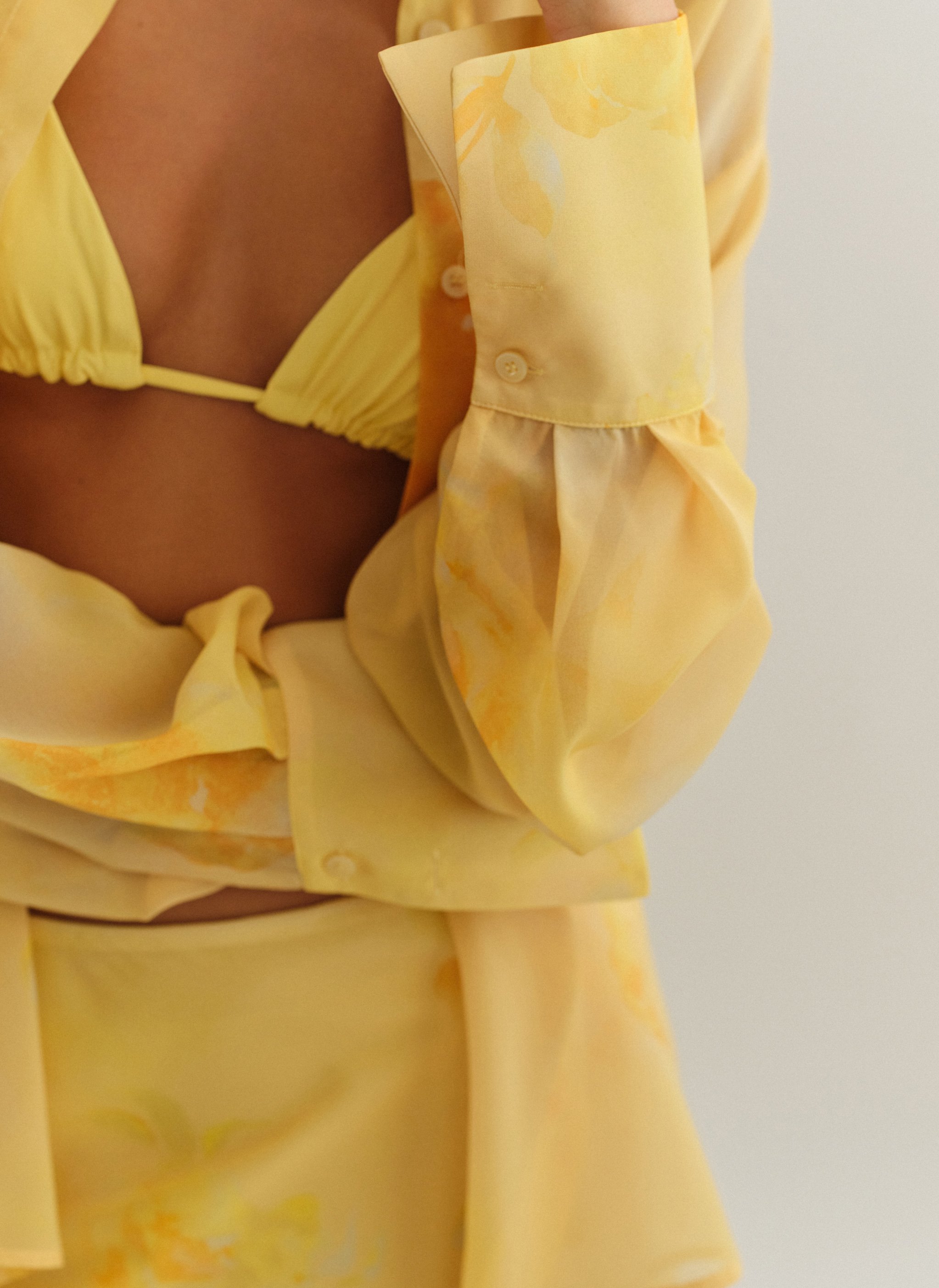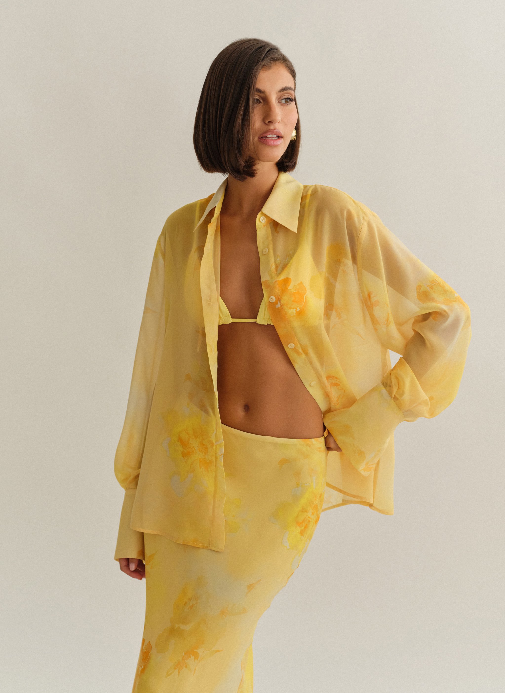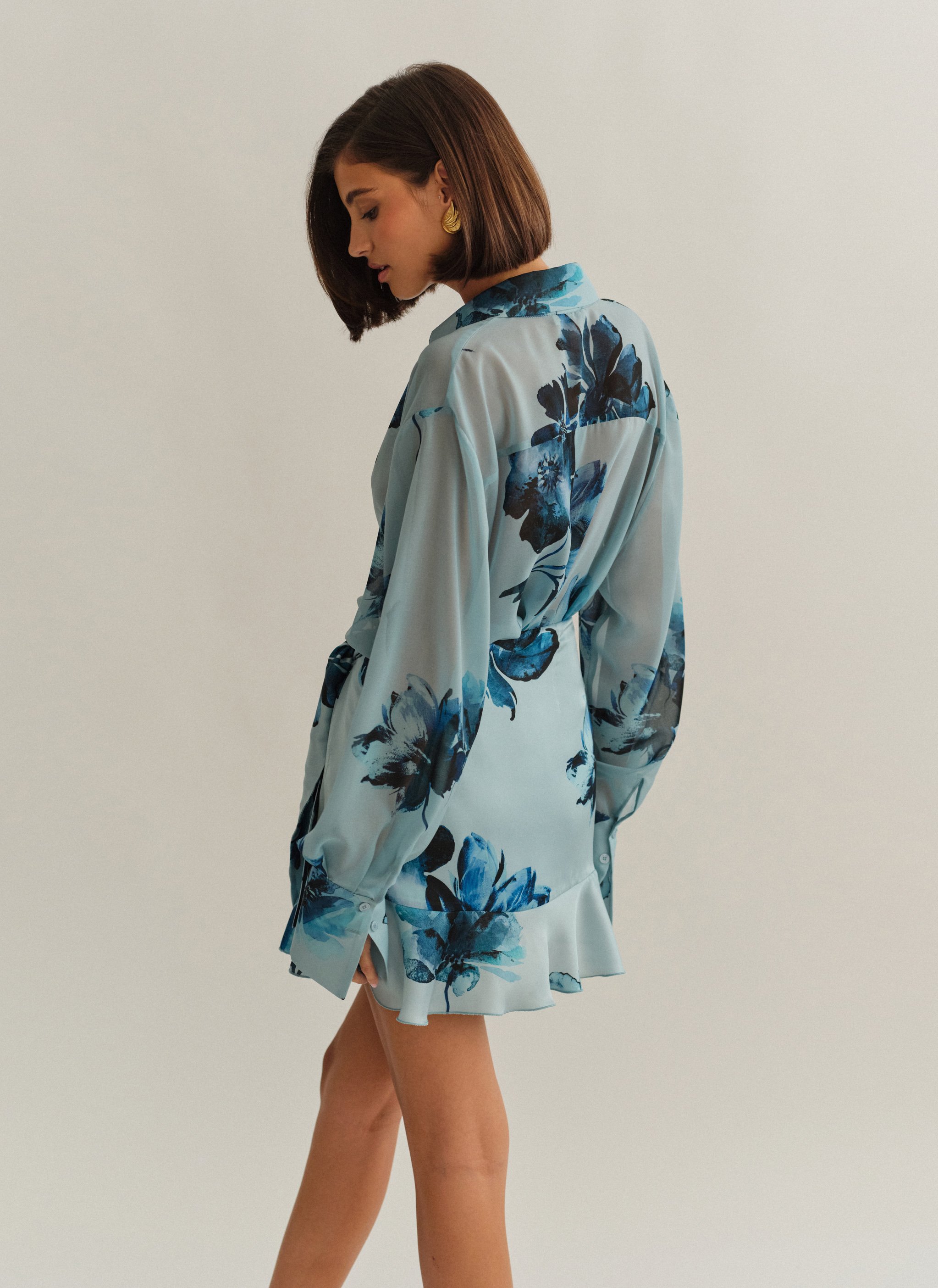 Oversized ημιδιάφανο εμπριμέ πουκάμισο με φαρδιά μανσέτα.
