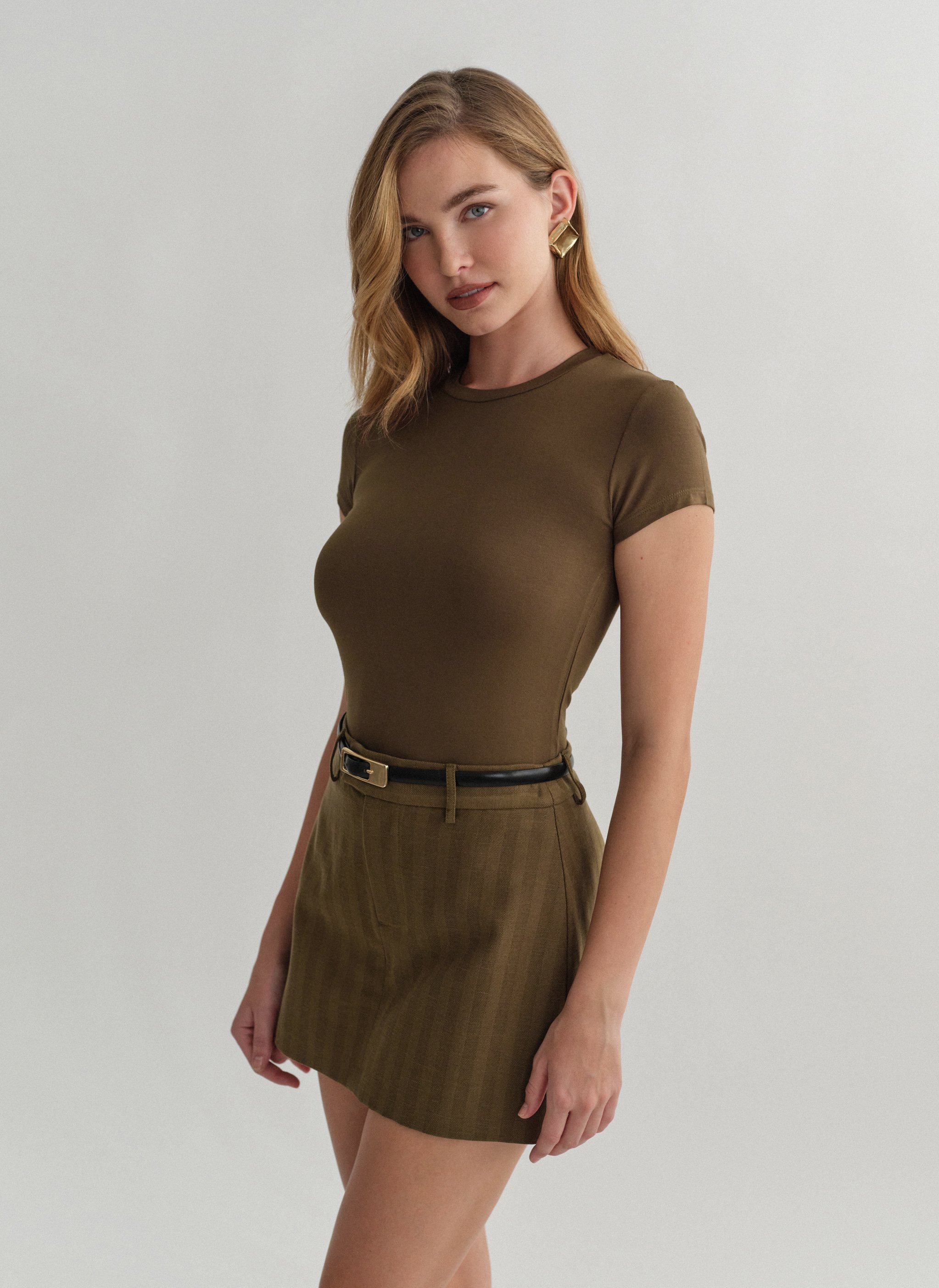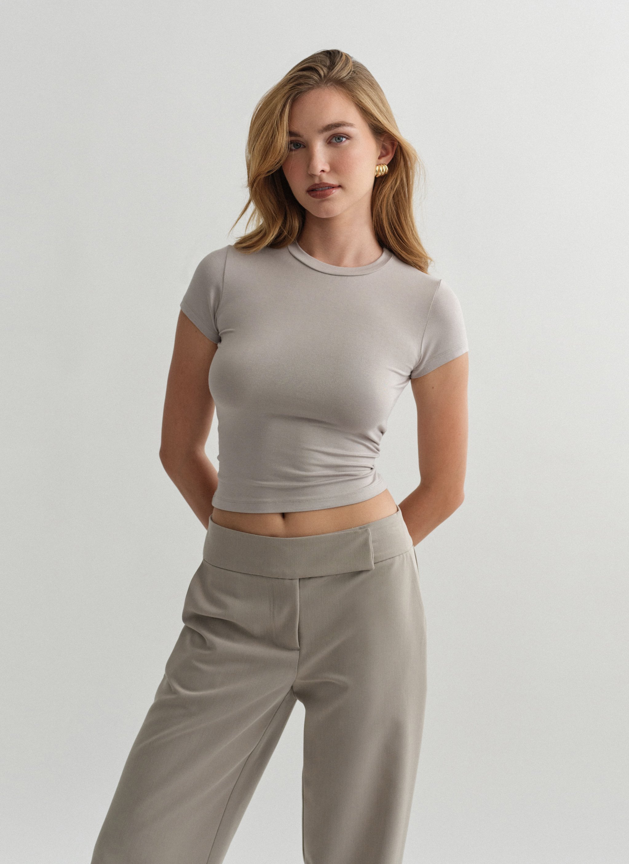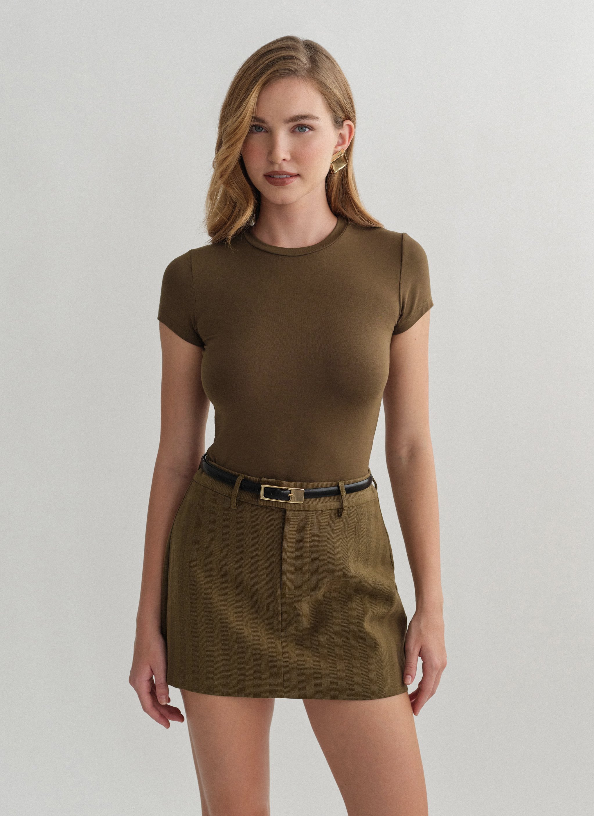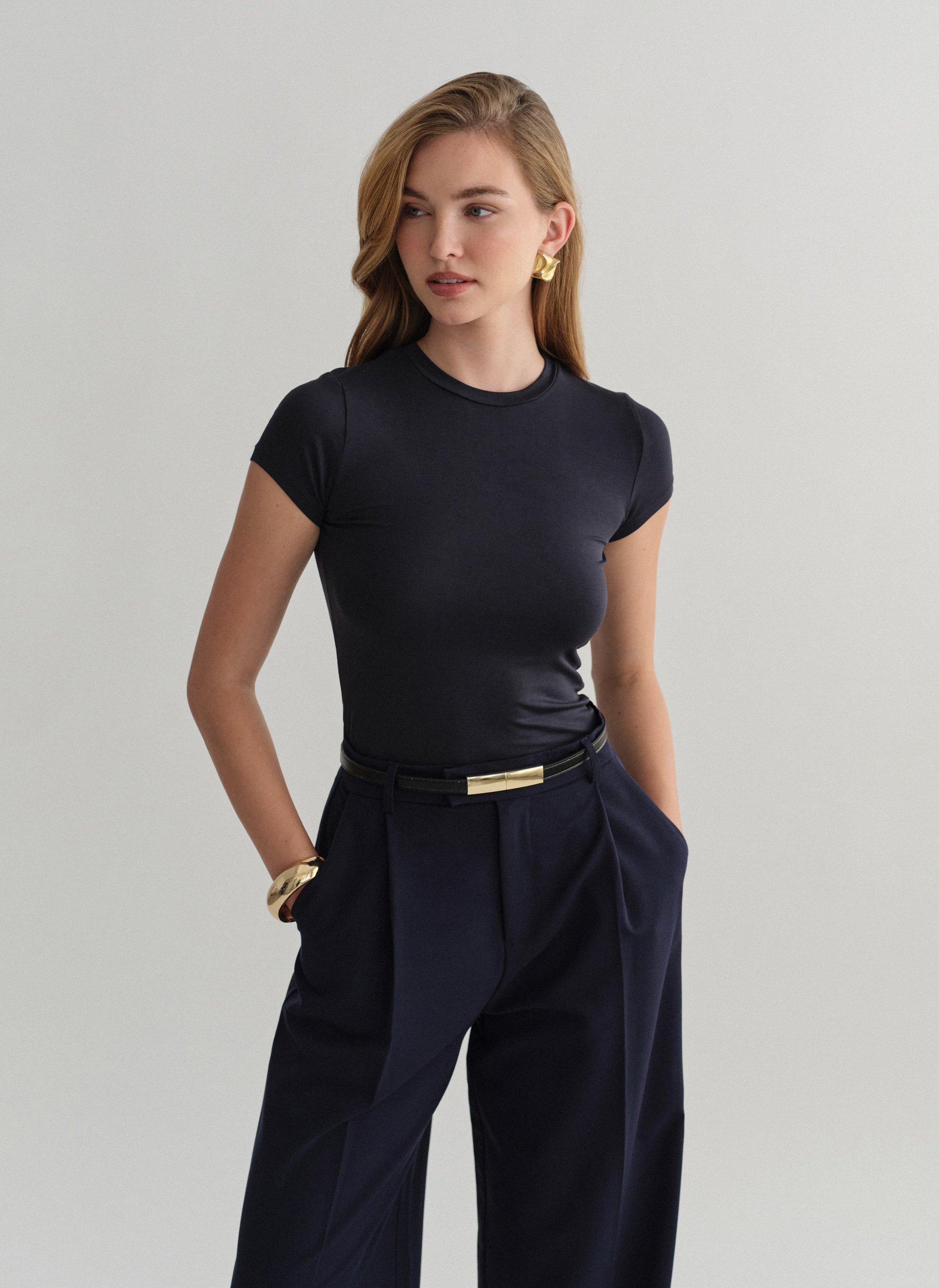 Ελαστικό κοντομάνικο basic τοπ bamboo με στρογγυλή λαιμόκοψη.