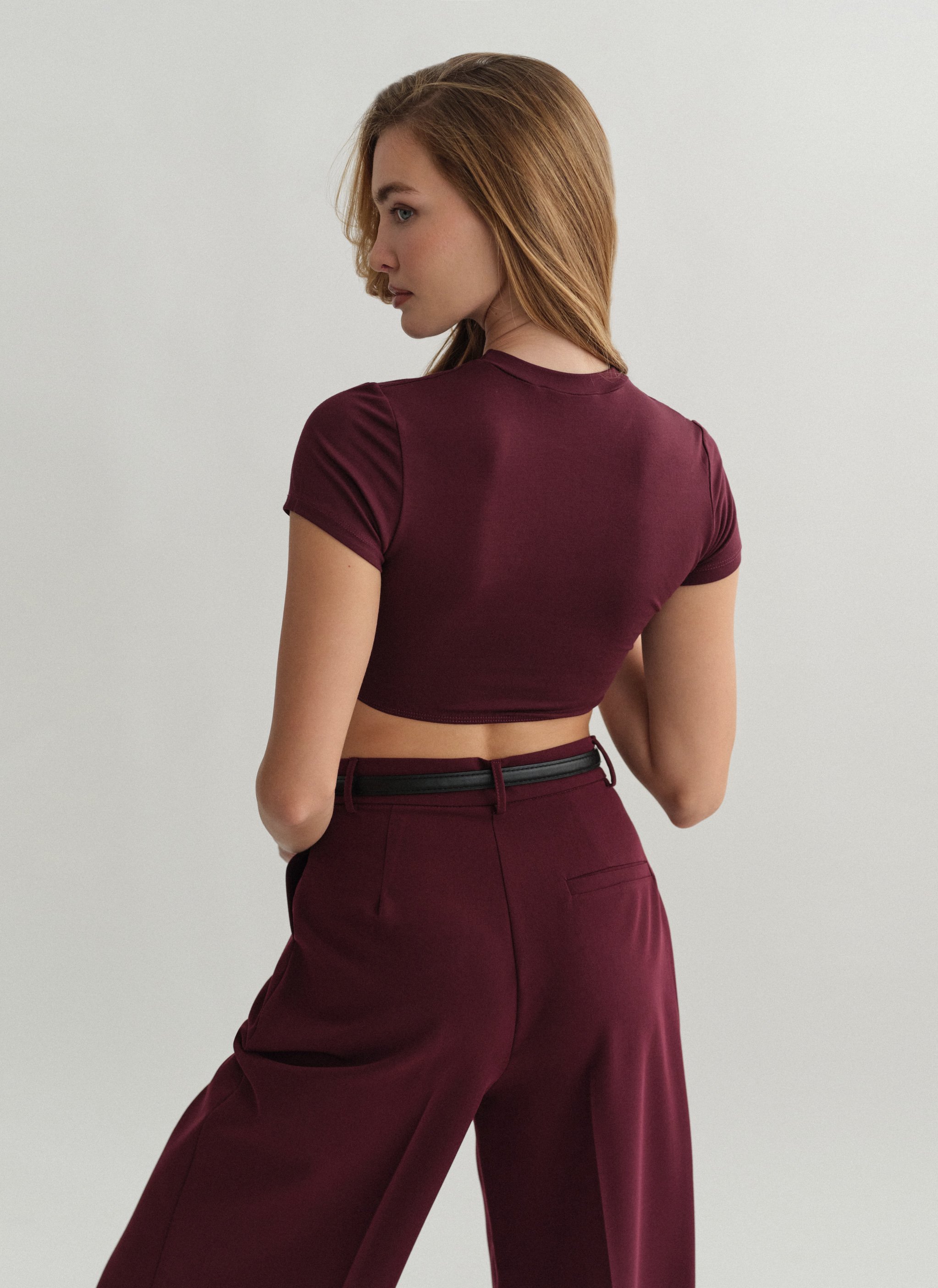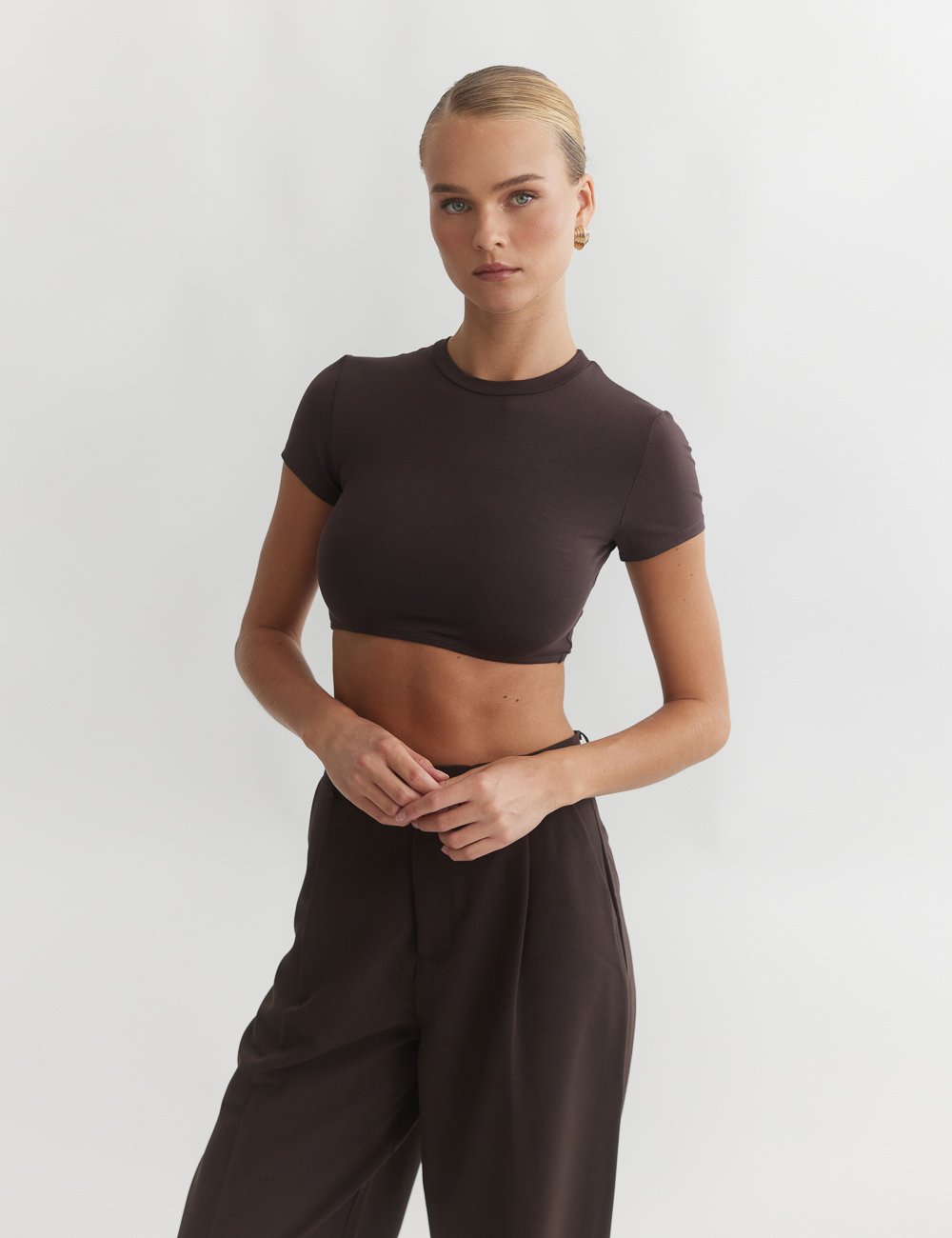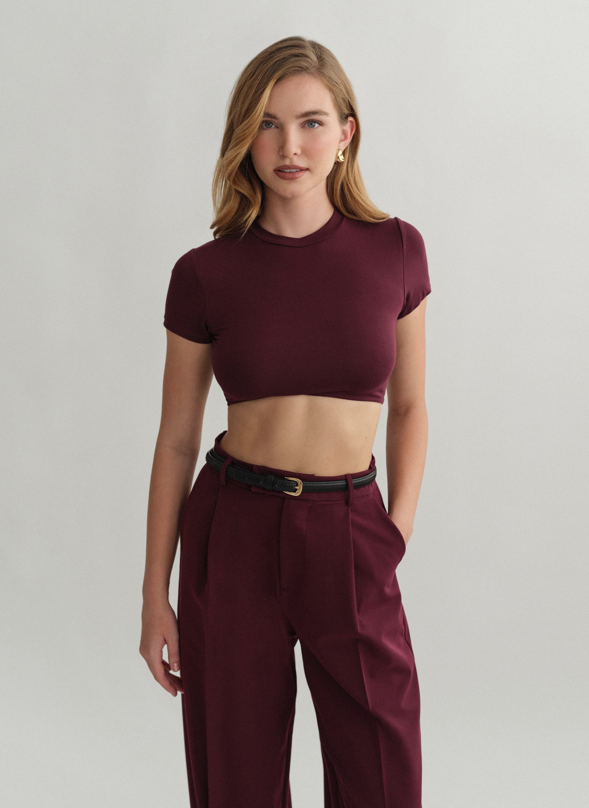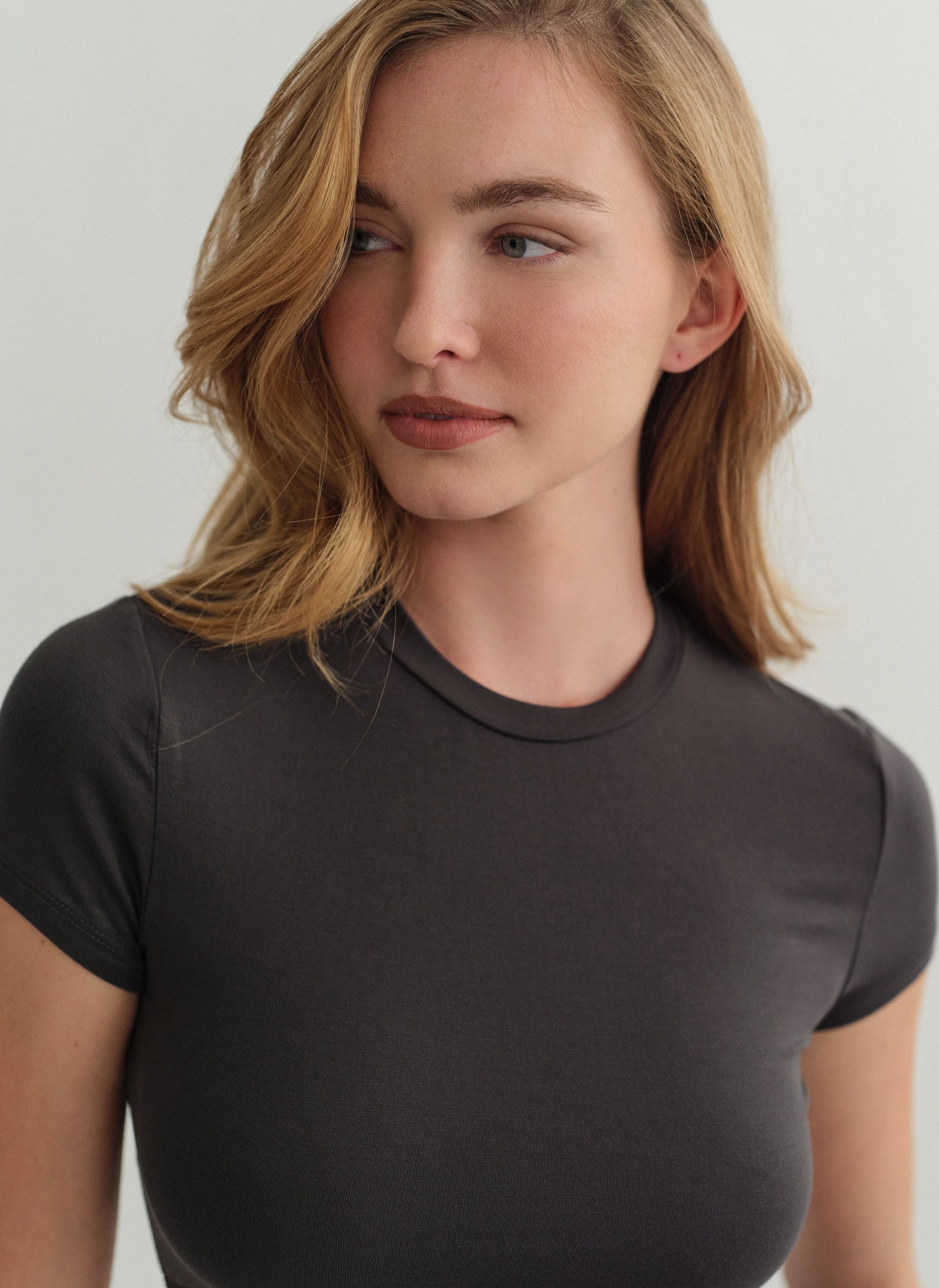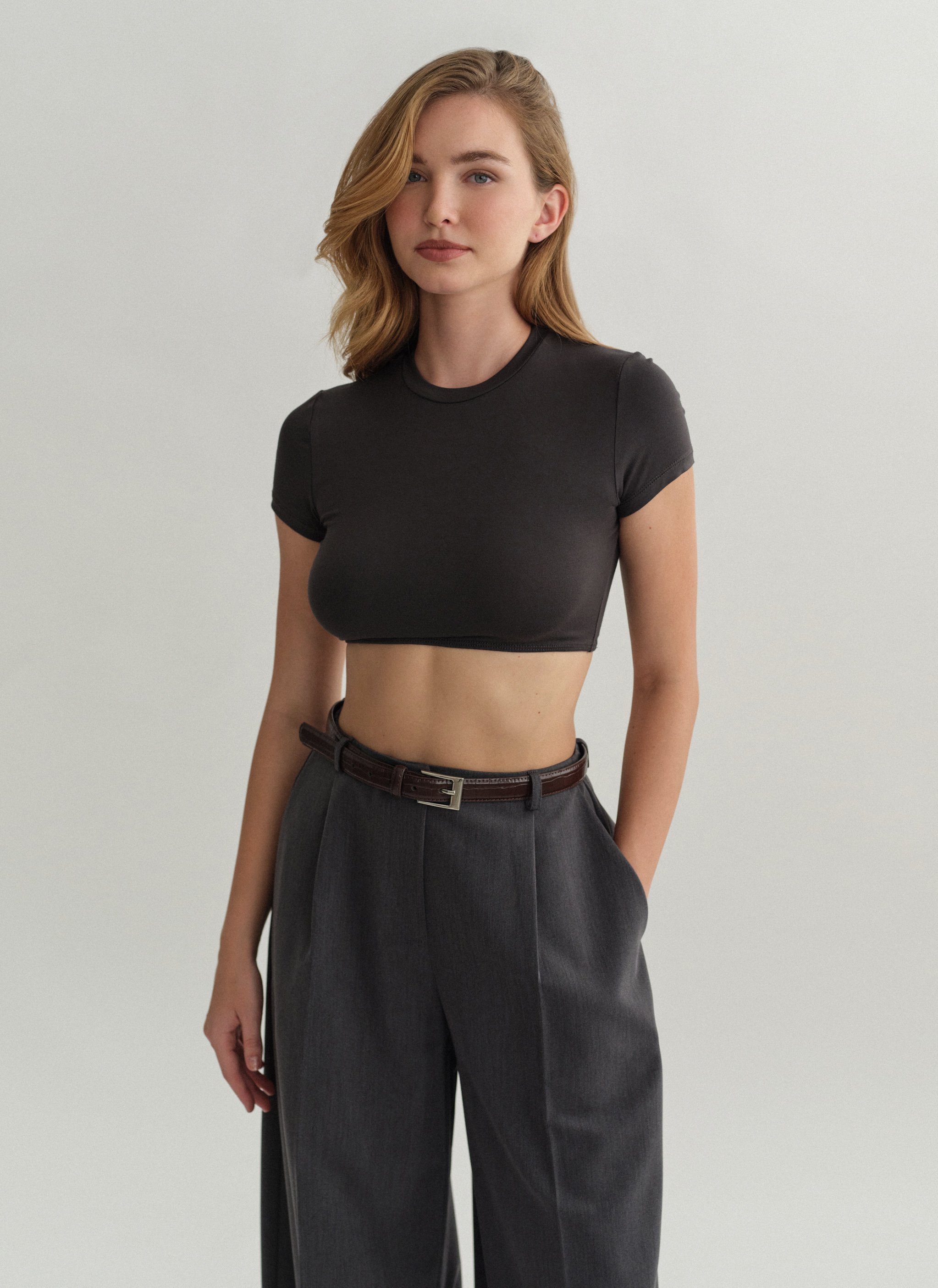 Ελαστικό κοντομάνικο crop τοπ με λάστιχο bamboo