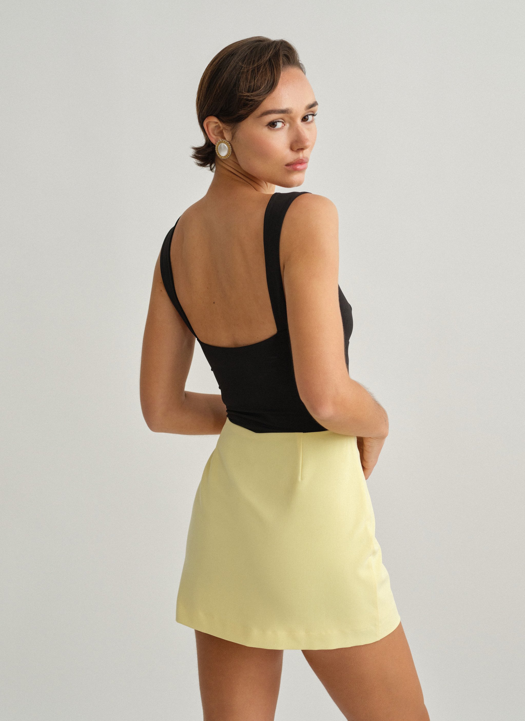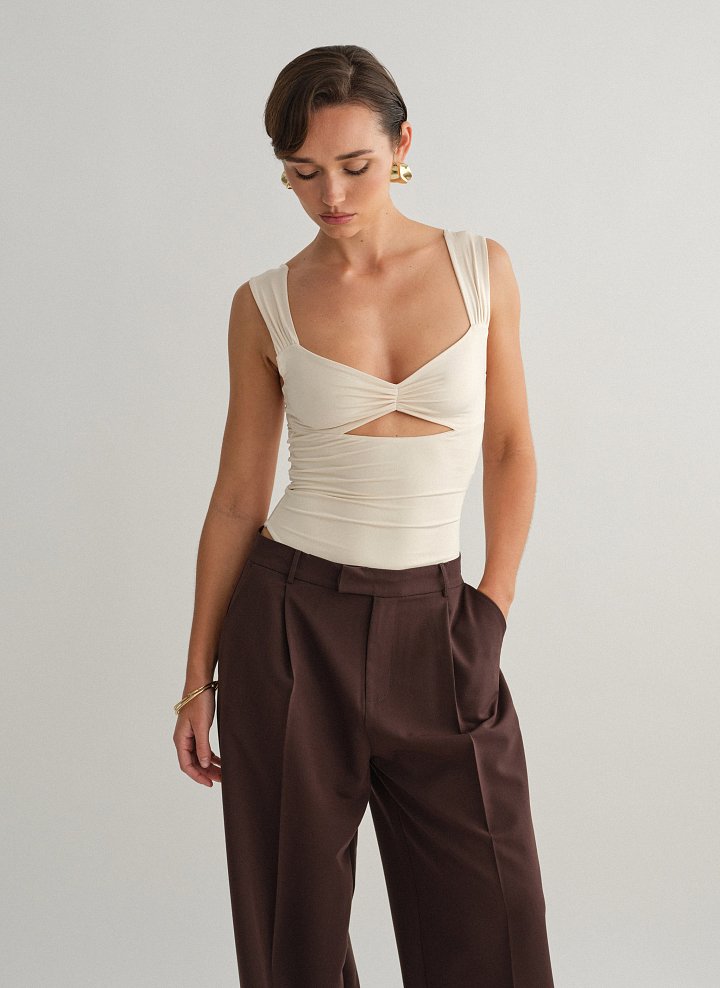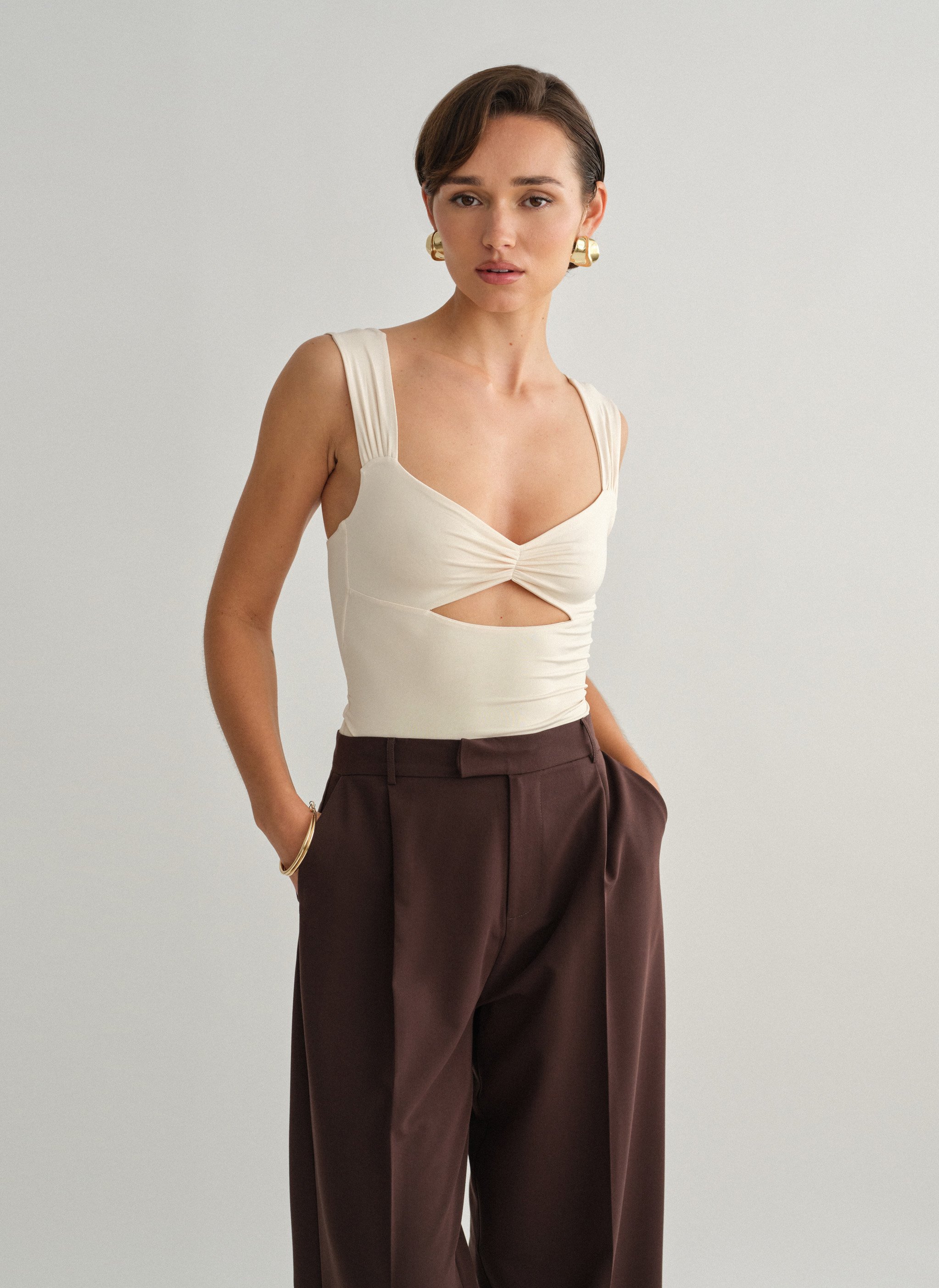 Ελαστικό κορμάκι cut-out με σούρες στο ντεκολτέ και φαρδιές τιράντες.
