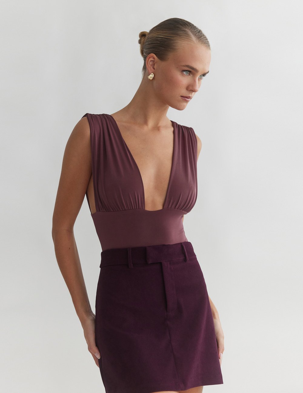 Ελαστικό κορμάκι με φαρδιές τιράντες και χαμηλό ντεκολτέ.