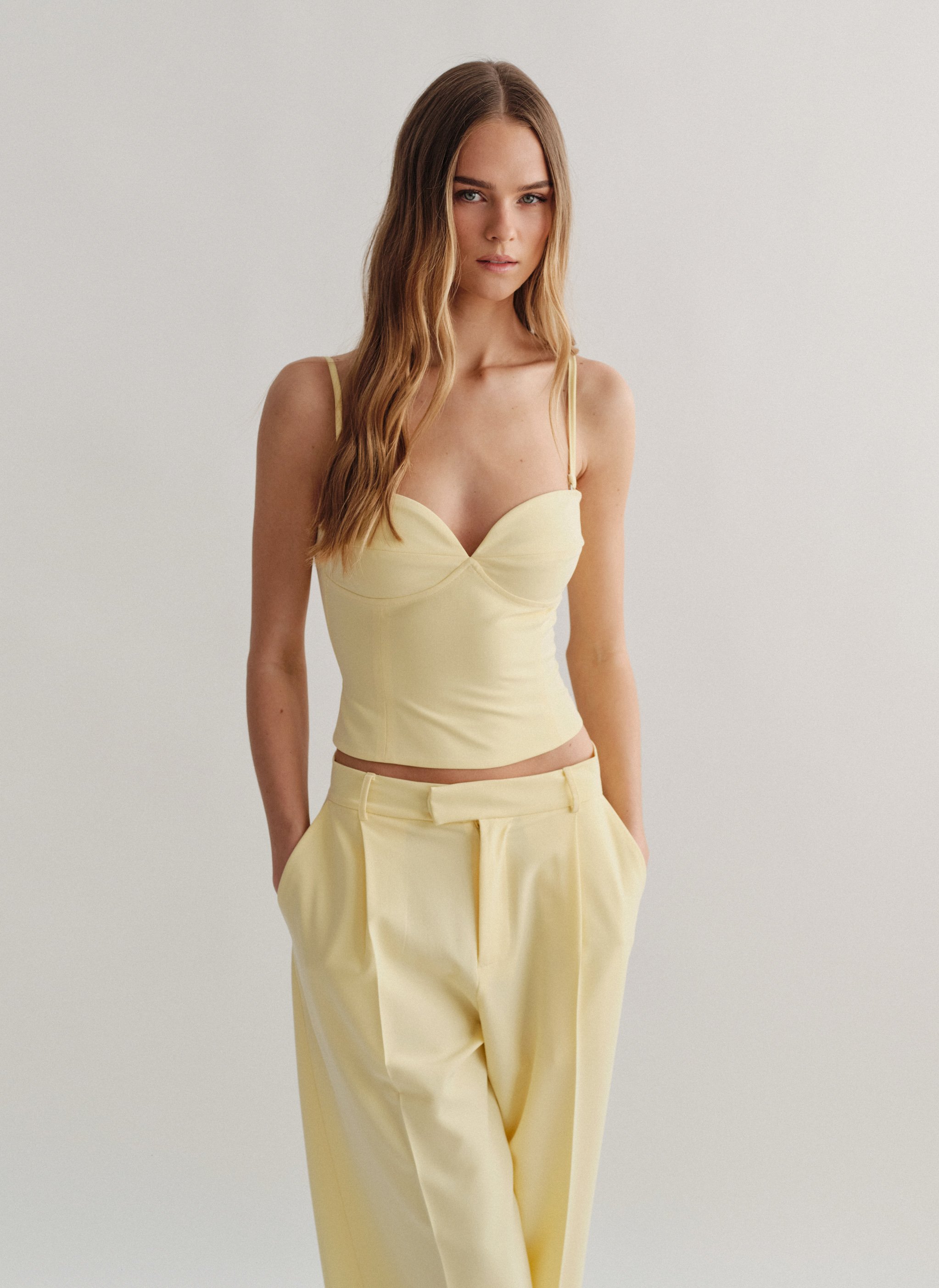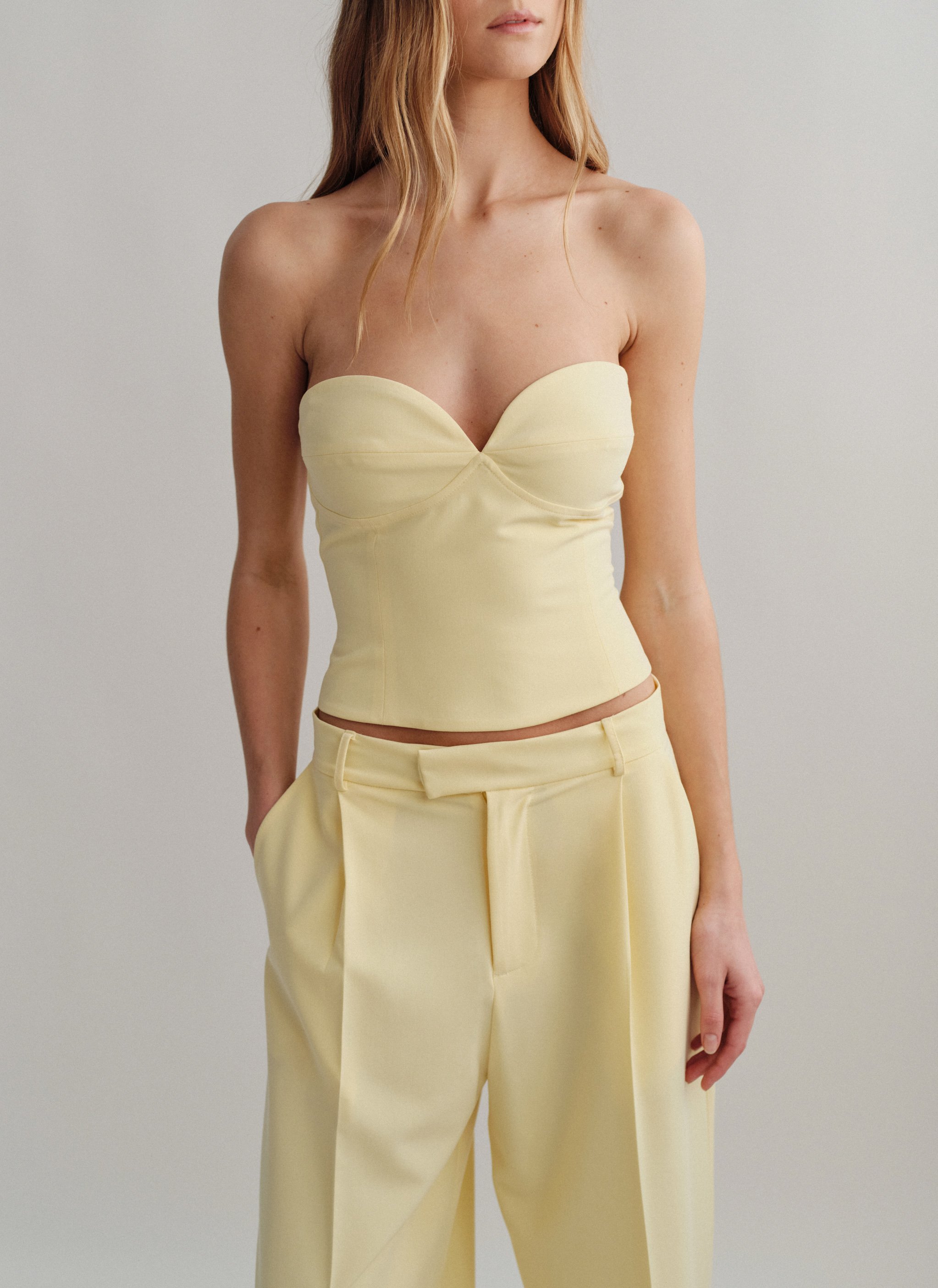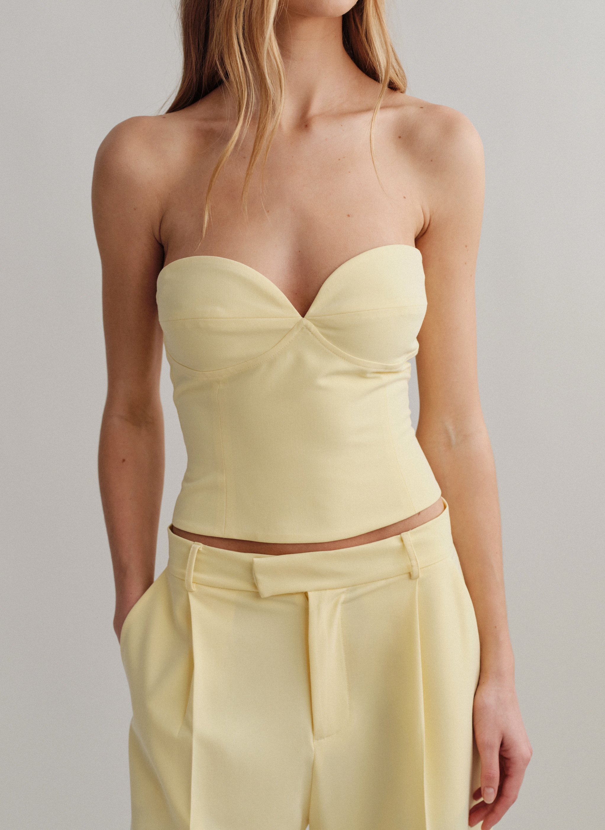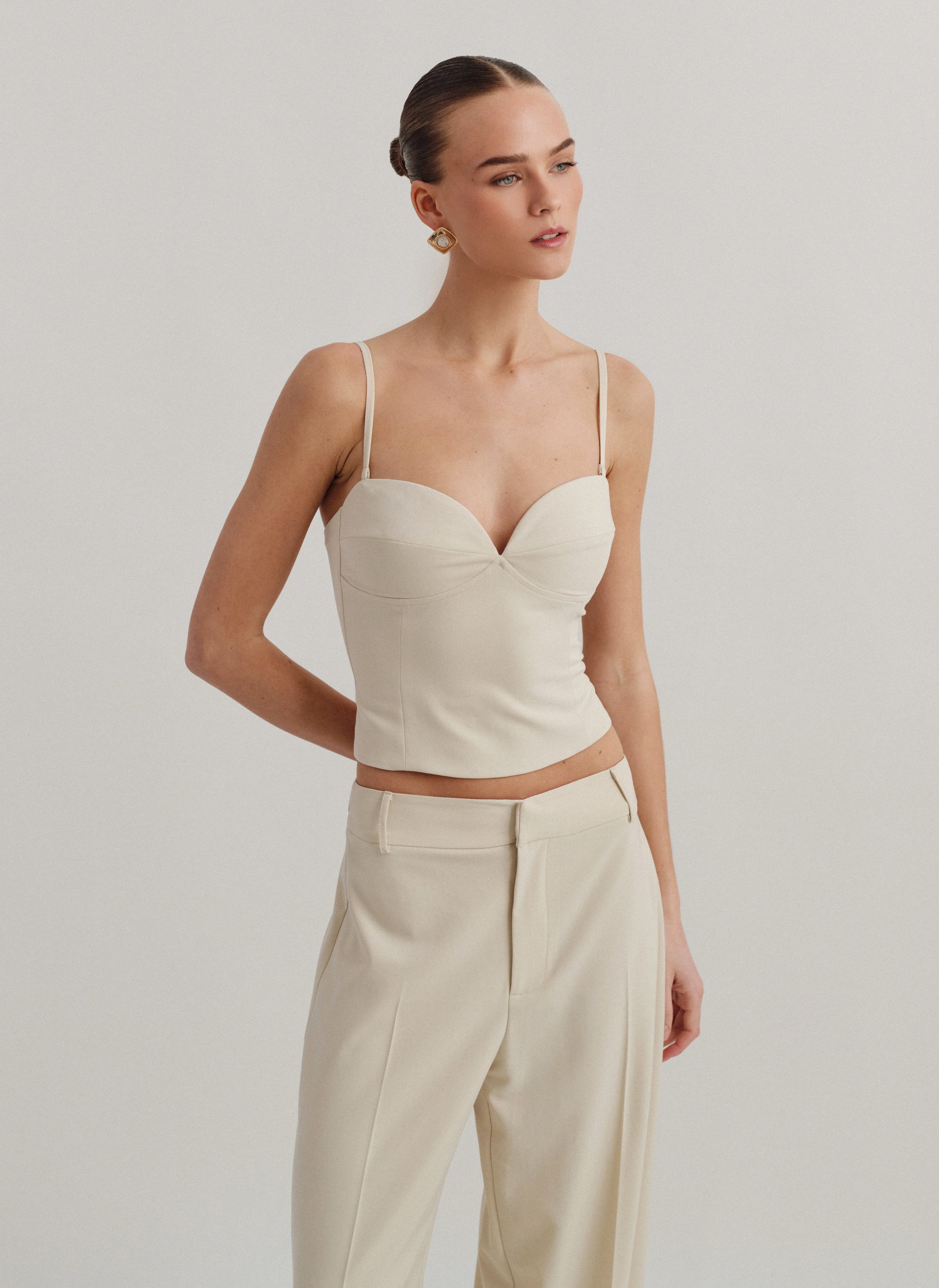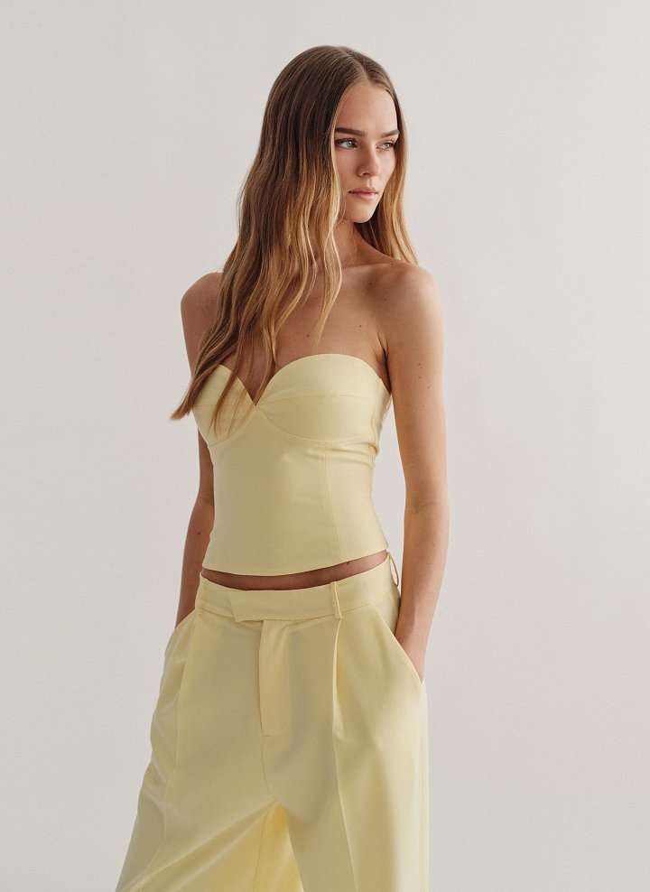 Κορσέ τοπ με αποσπώμενες τιράντες και κλείσιμο στο πίσω μέρος με κόπιτσες.