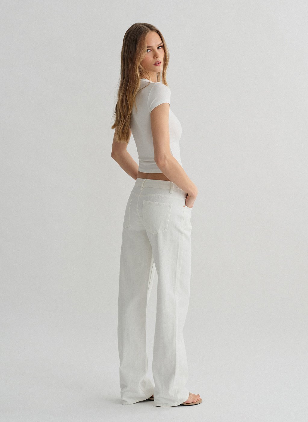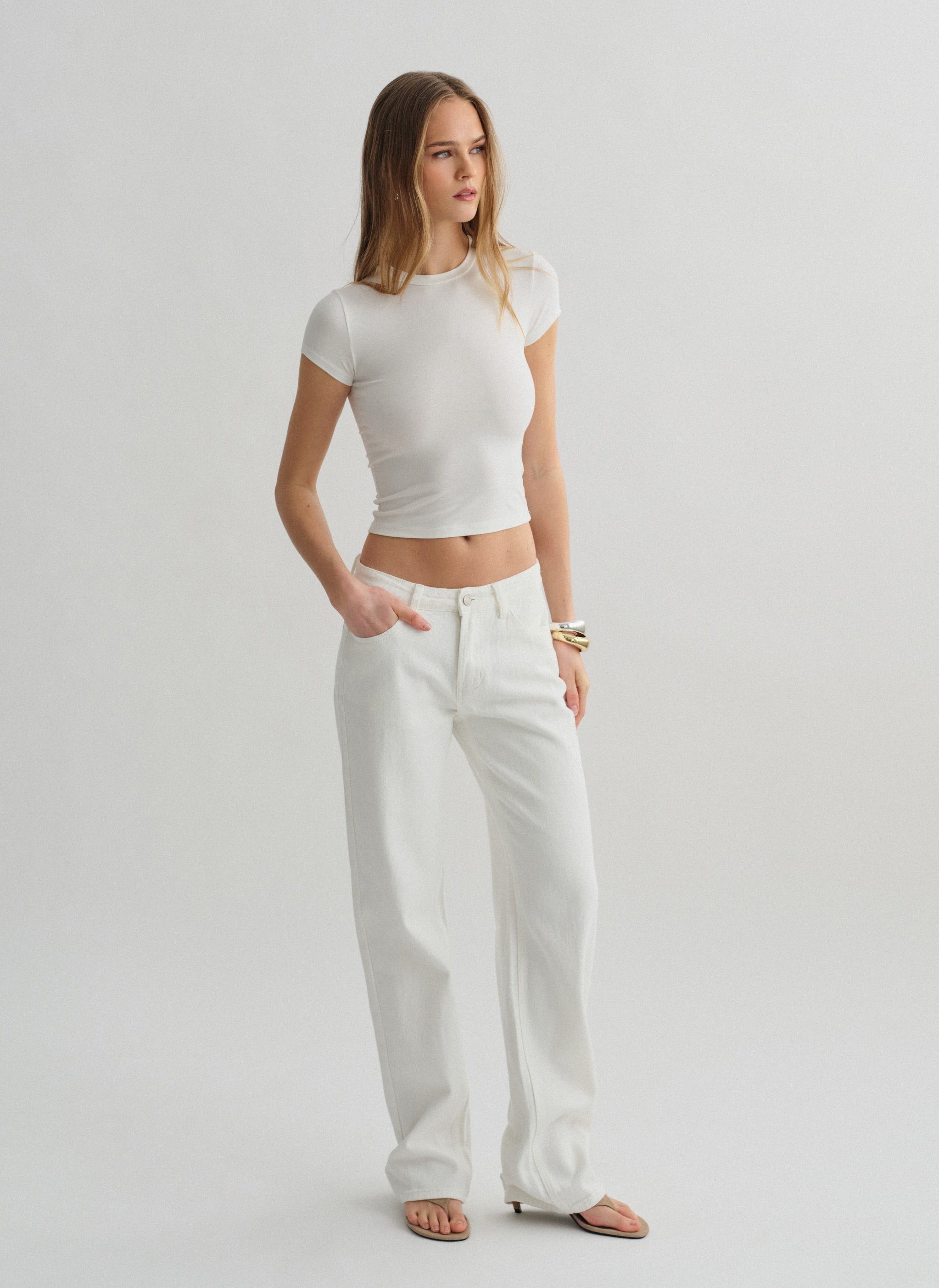 Λευκό mid-rise τζιν με ίσιο μπατζάκι.