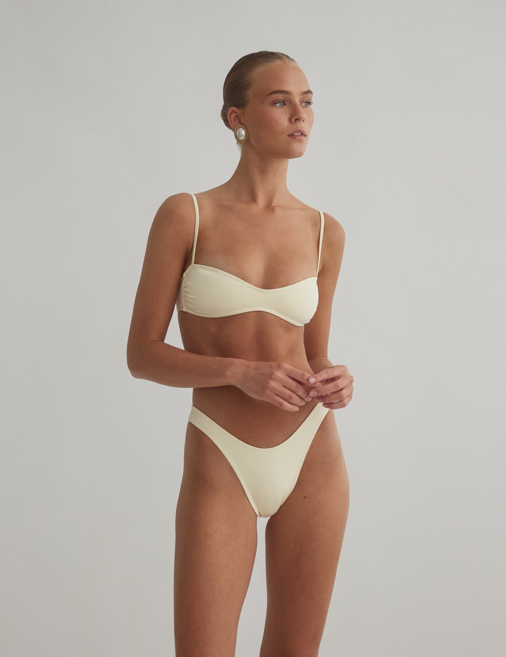 Μπικίνι, με πάνω μέρος τύπου μπουστάκι με ρυθμιζόμενα λεπτά τιραντάκια. Κάτω μέρος με παρτή εφαρμογή. Πωλείται ως σετ