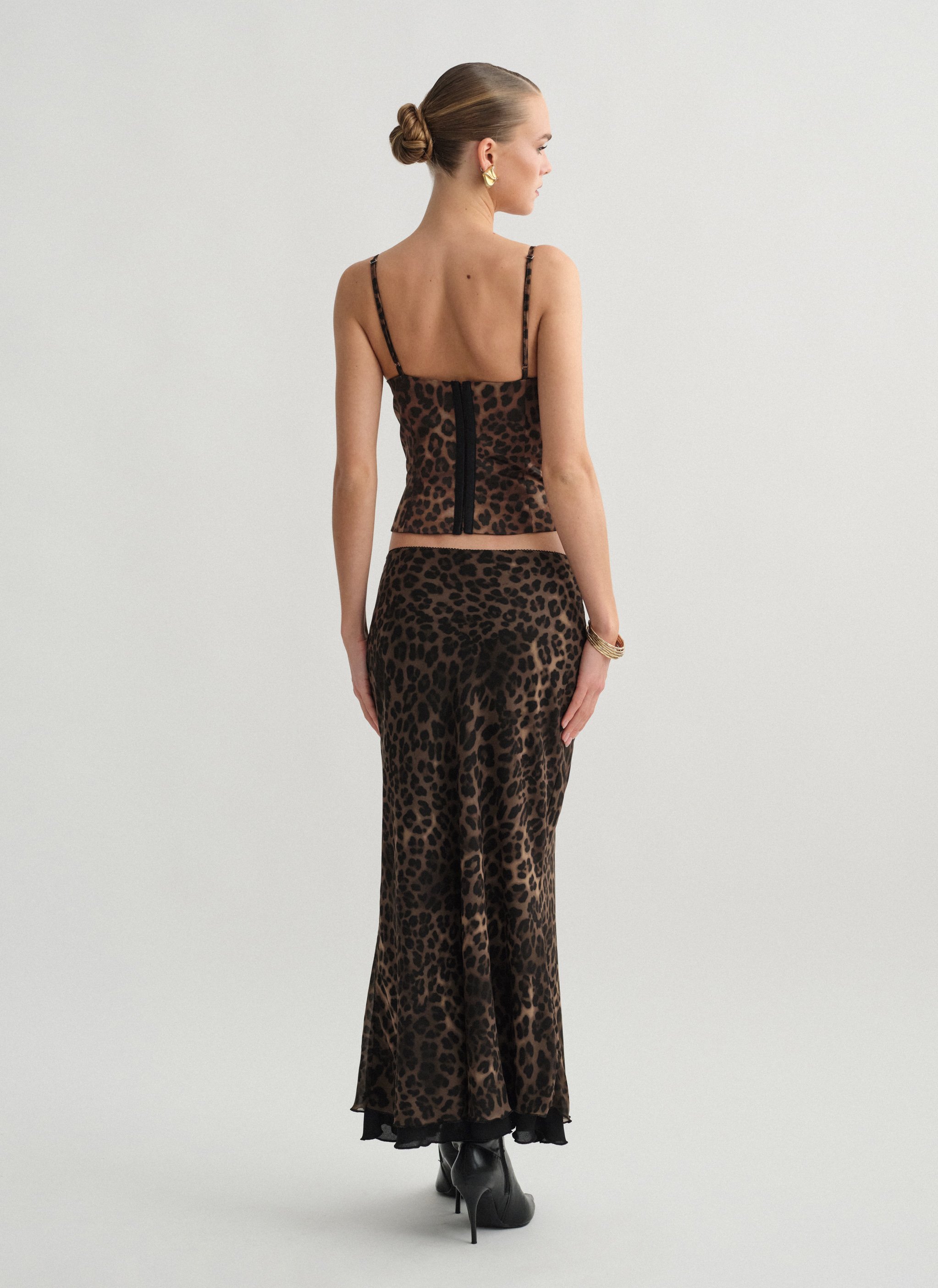 Ημιδιάφανη μακριά φούστα με τύπωμα και λάστιχο στη μέση.