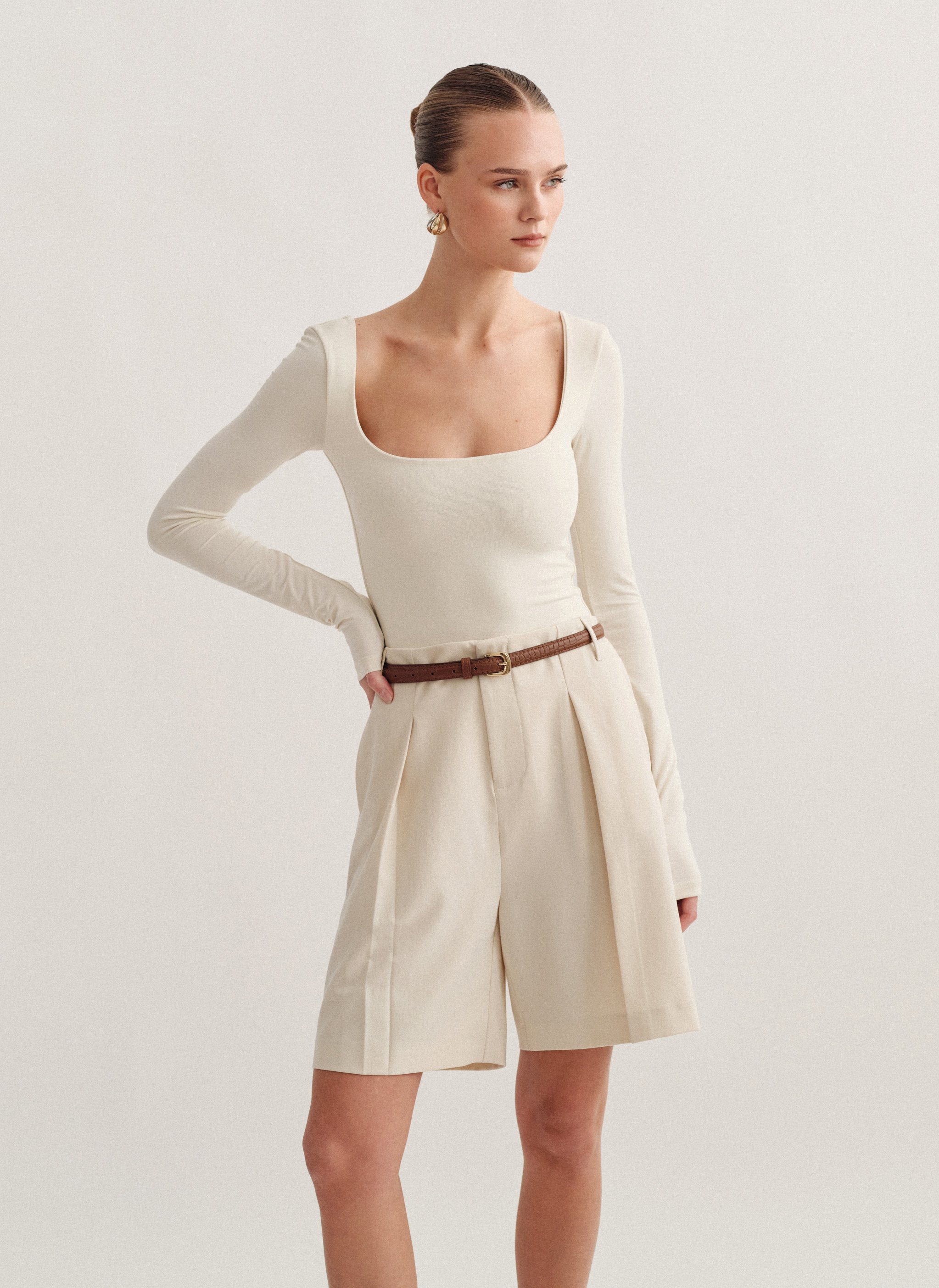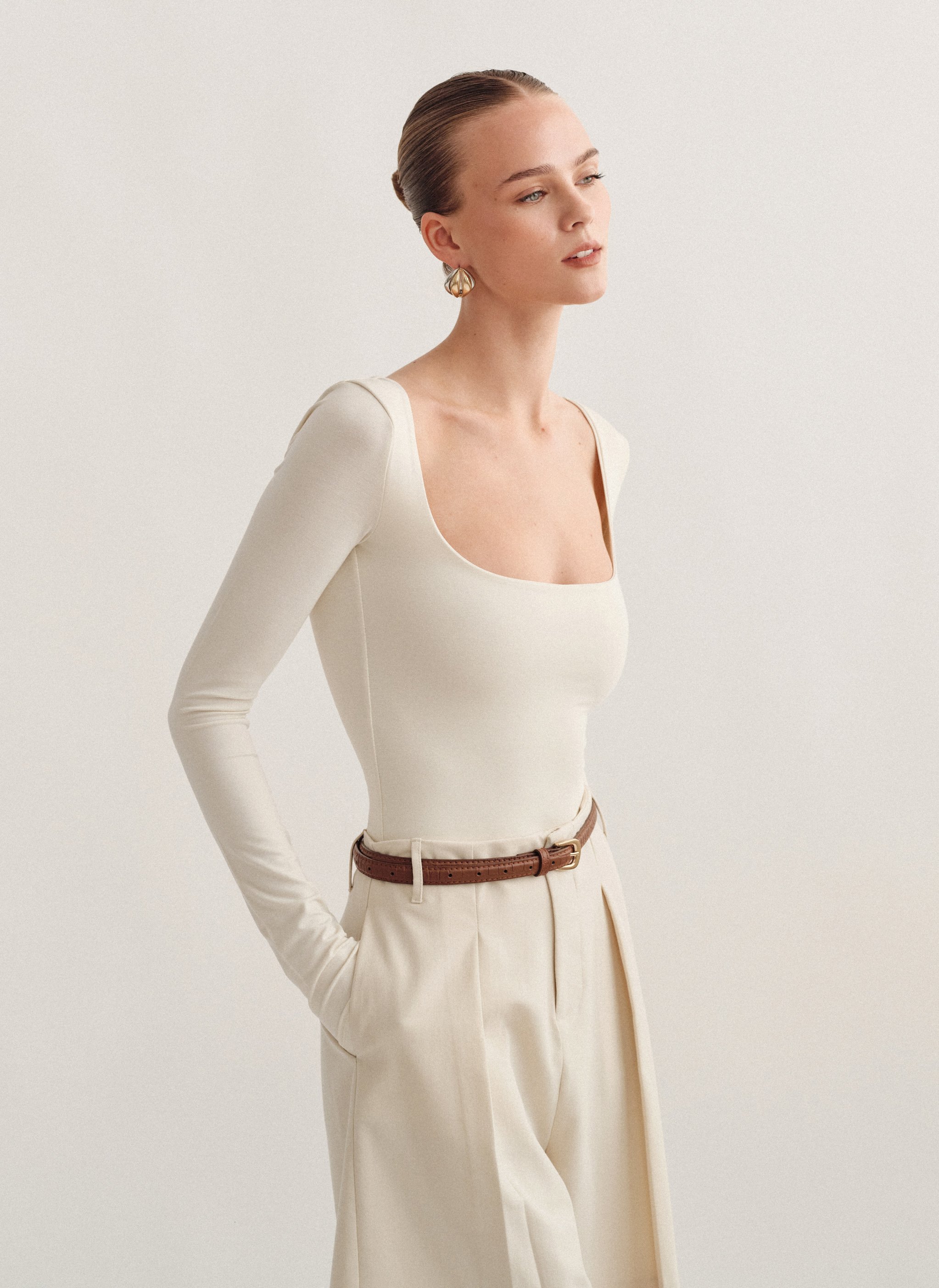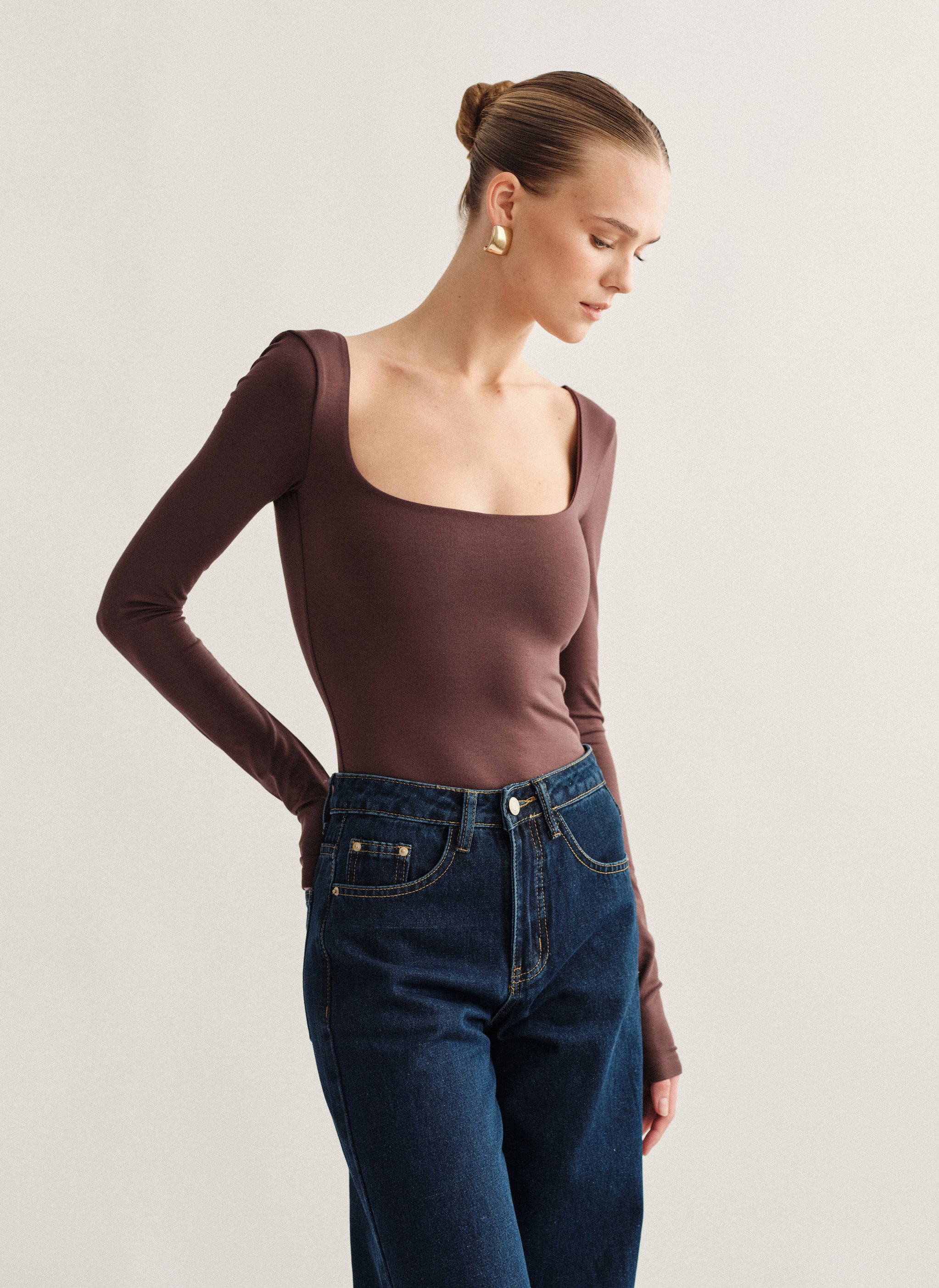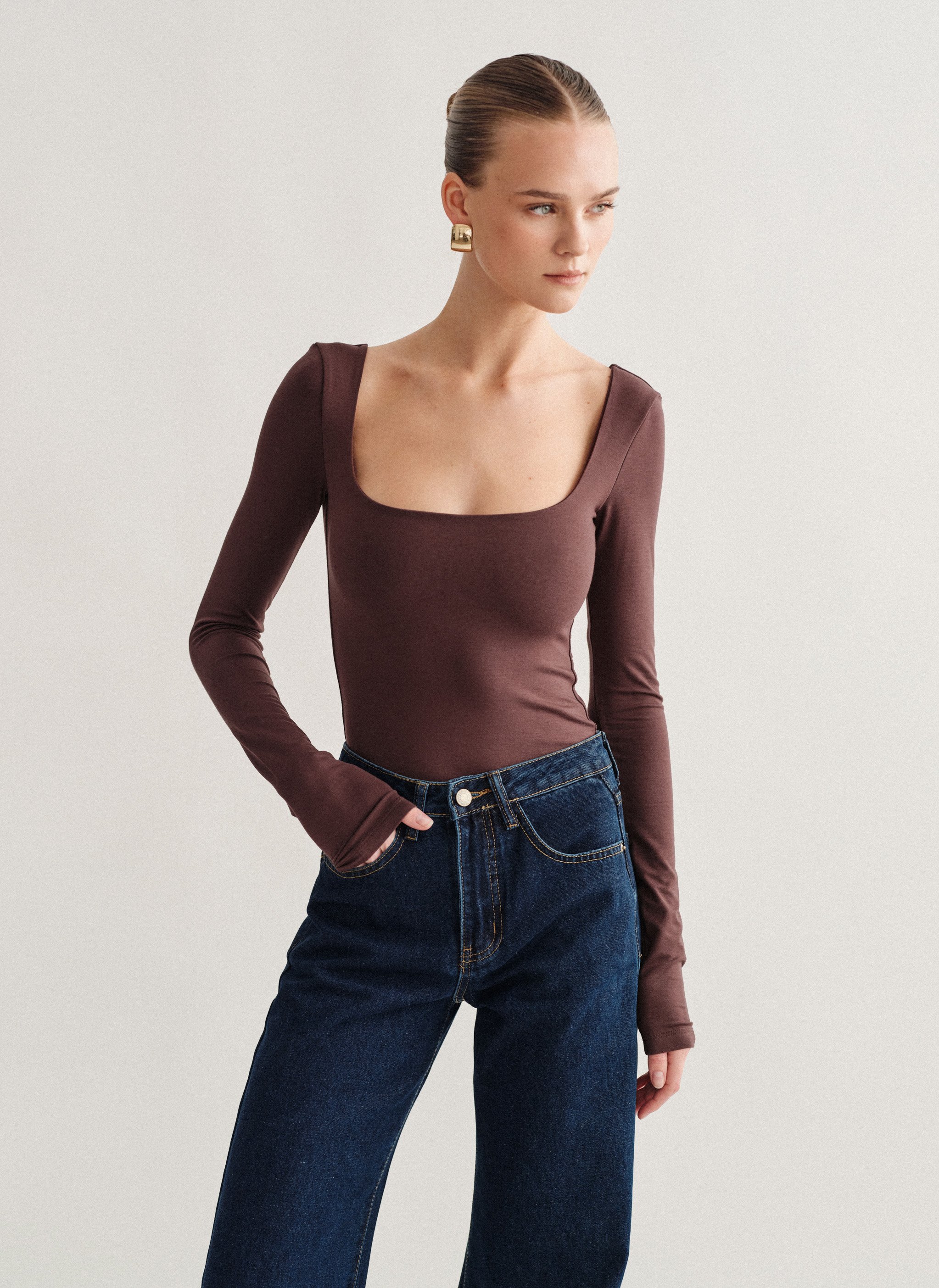 Ελαστικό μακρυμάνικο κορμάκι bamboo με στρογγυλή λαιμόκοψη.