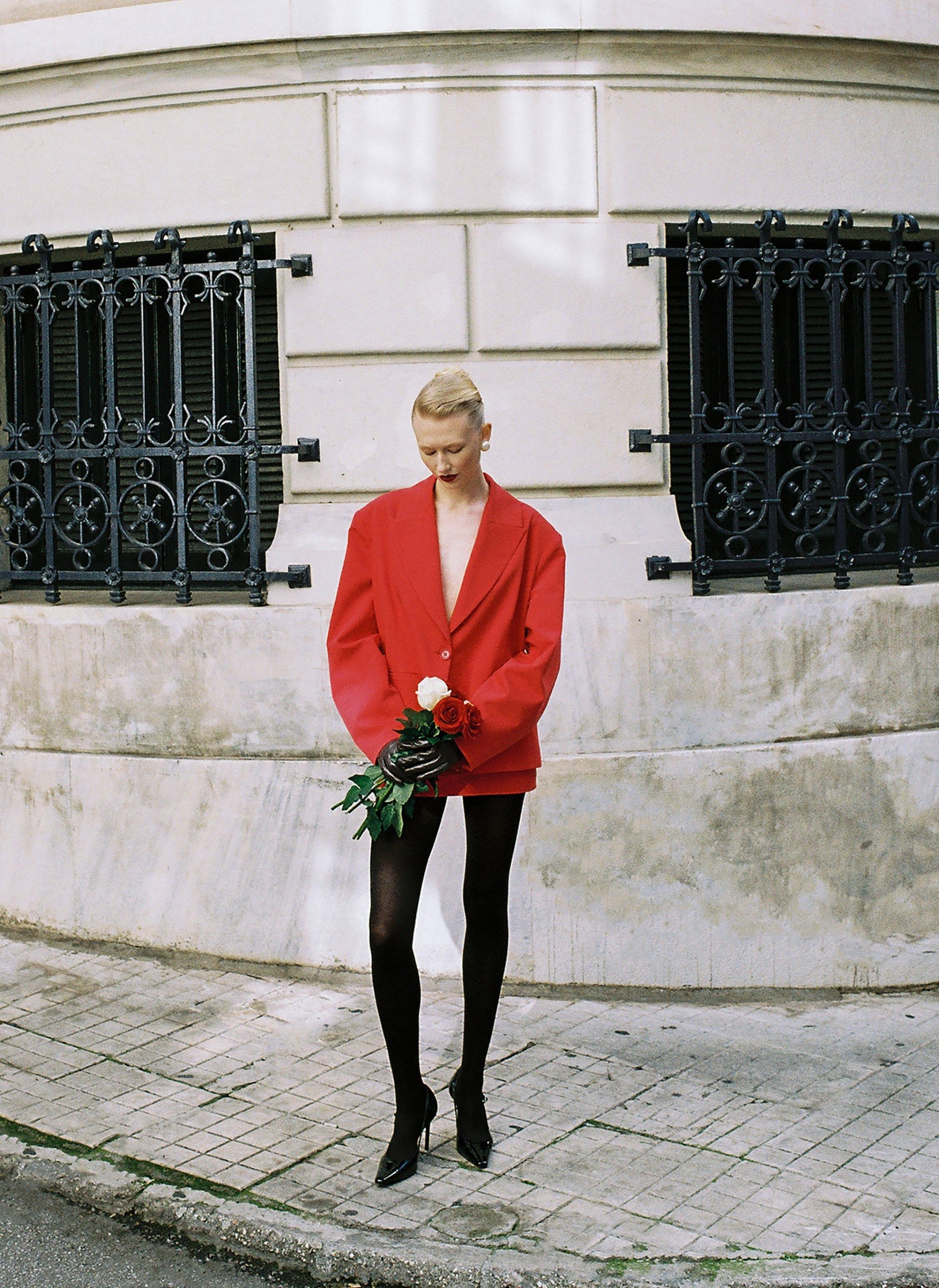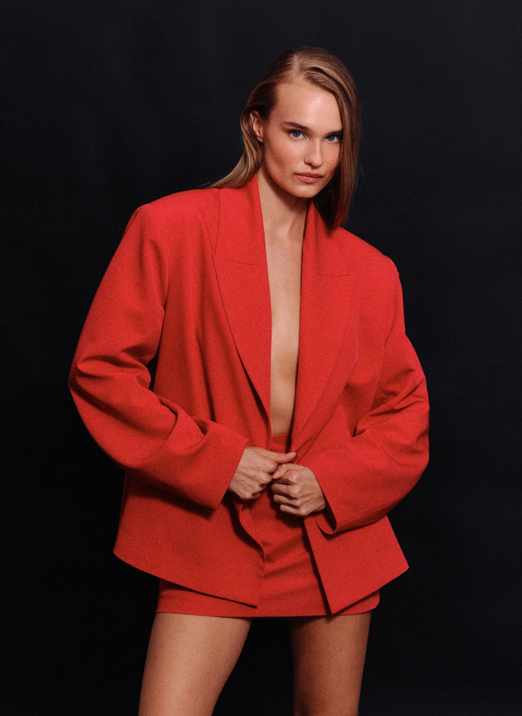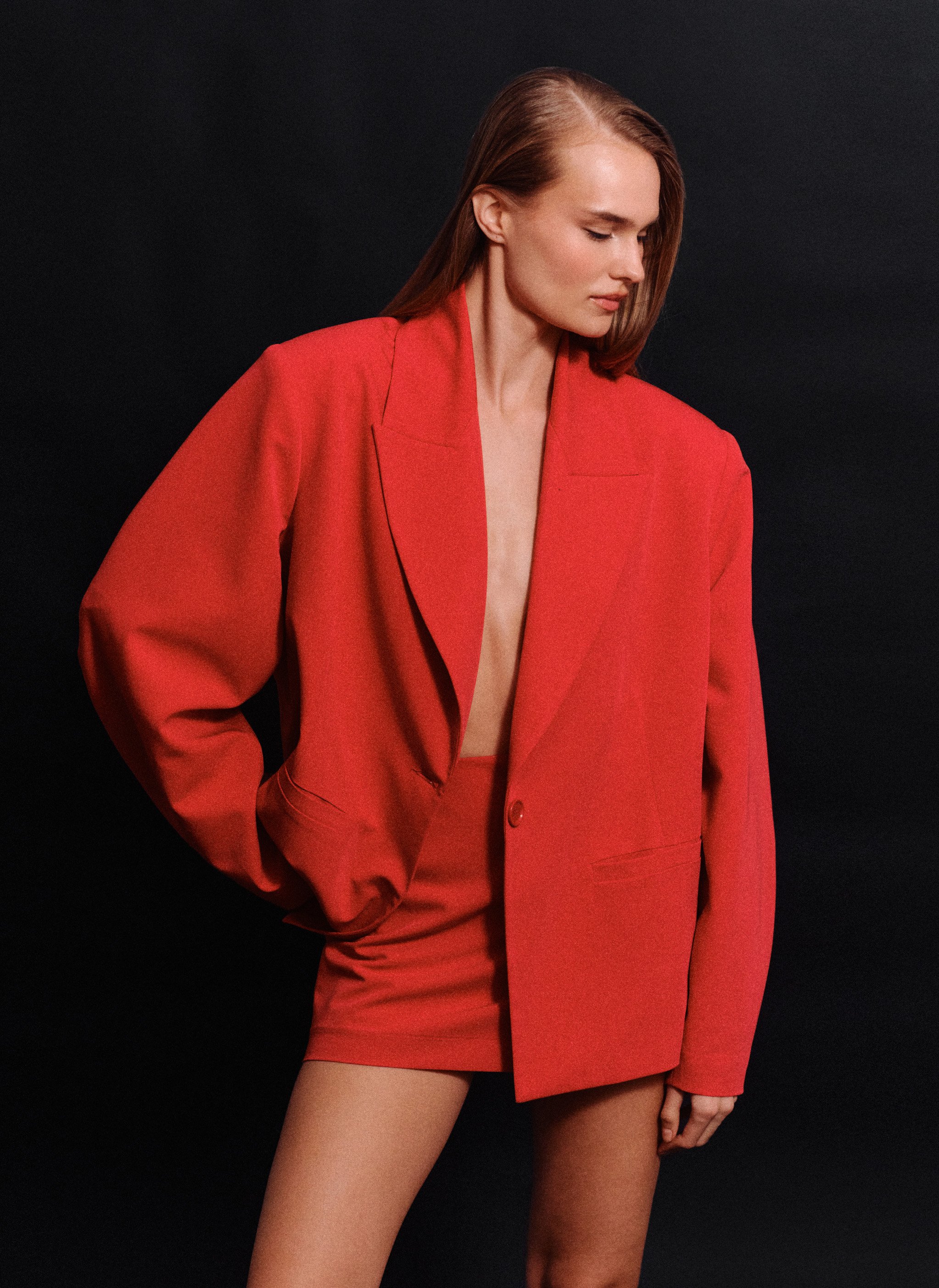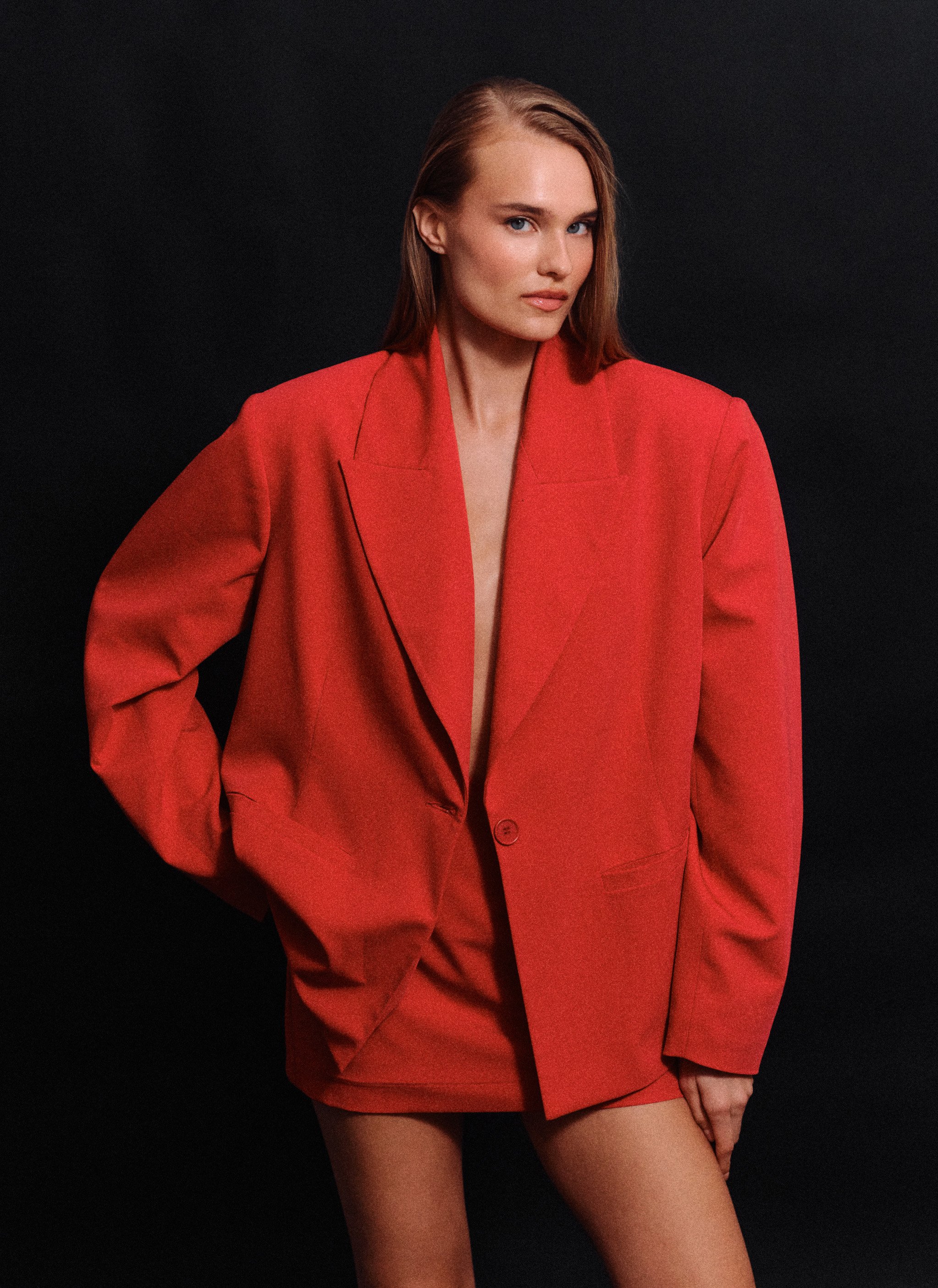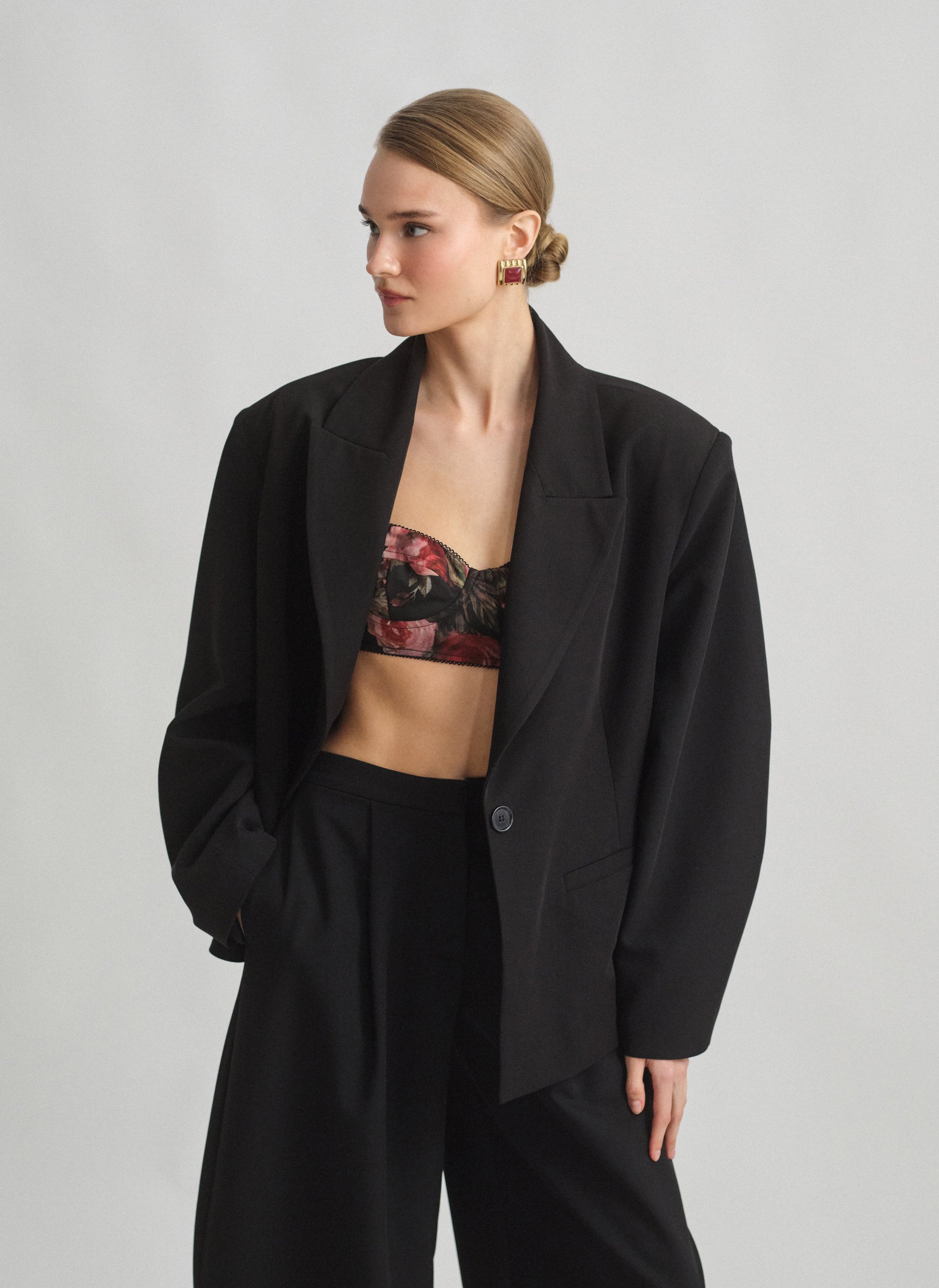 Oversized μπλέιζερ με κλείσιμο μπροστά με κουμπί.