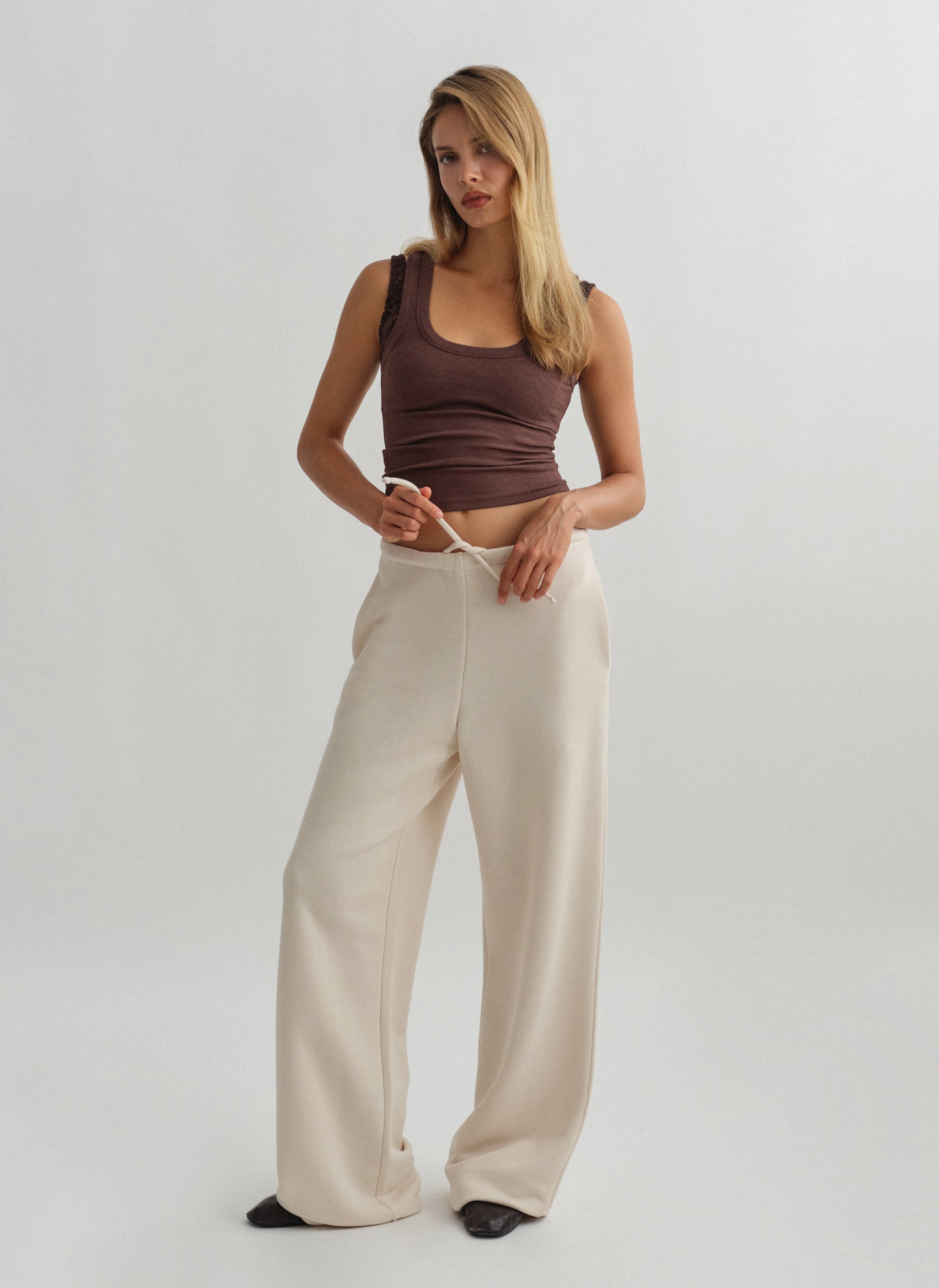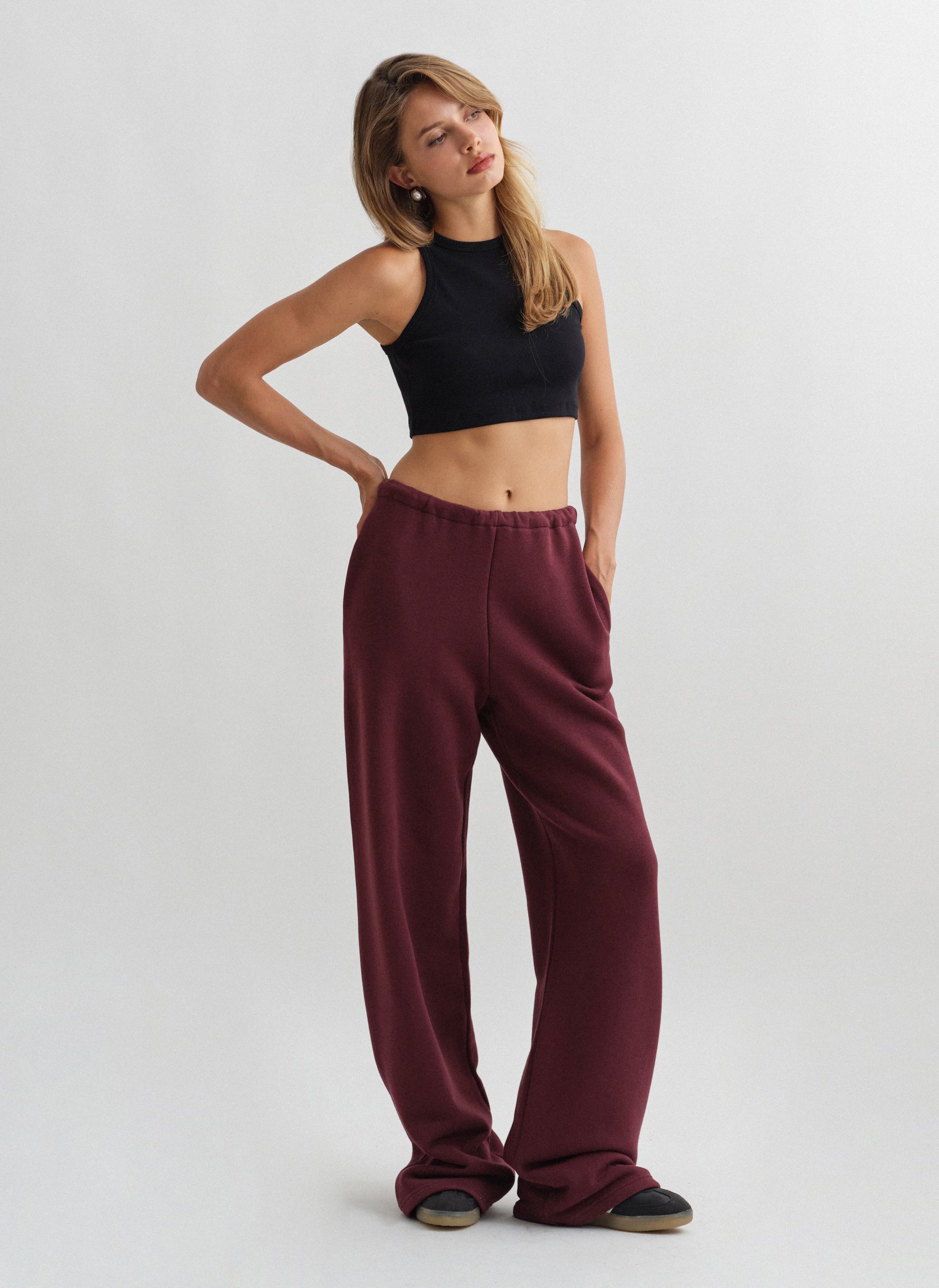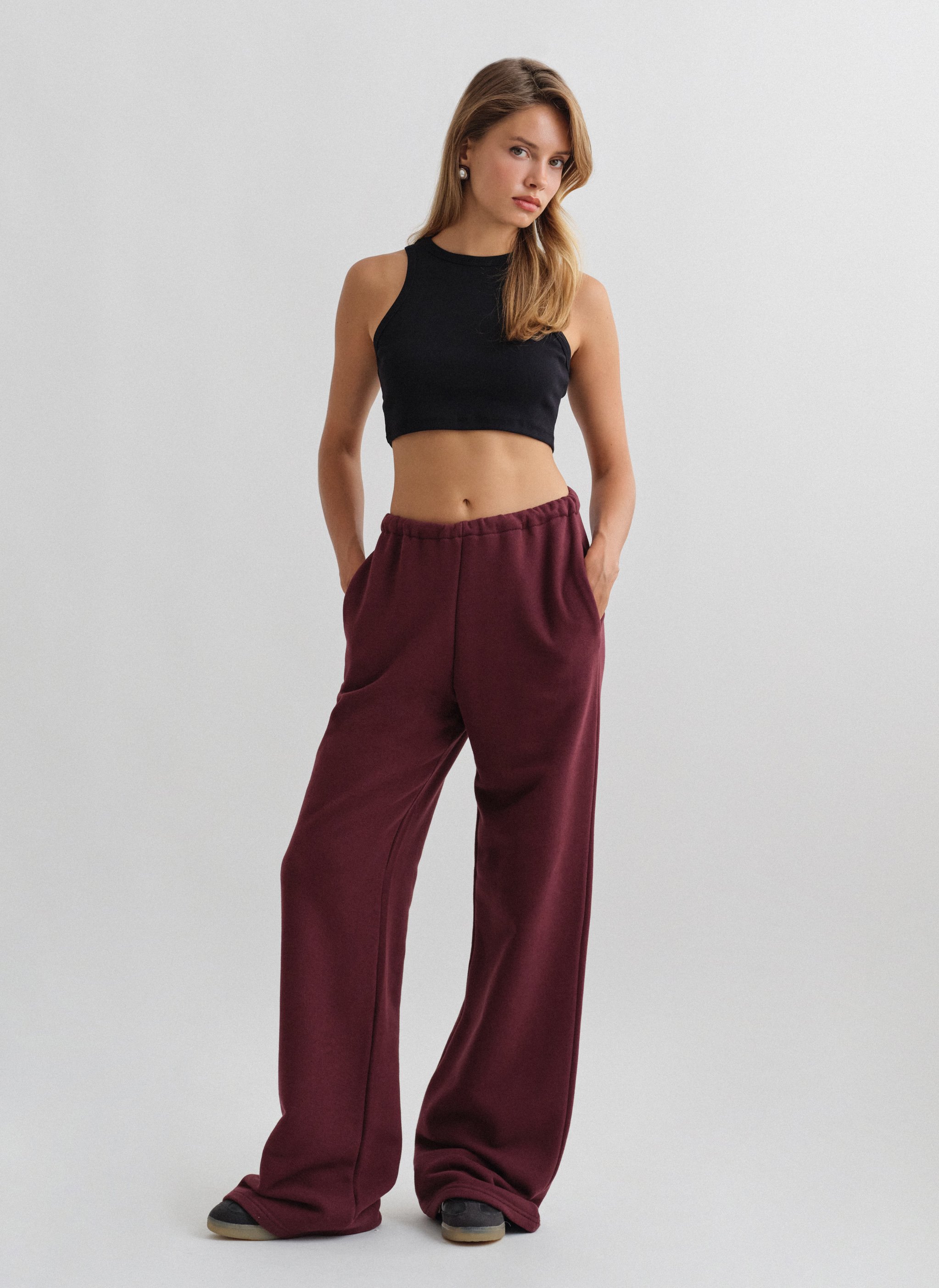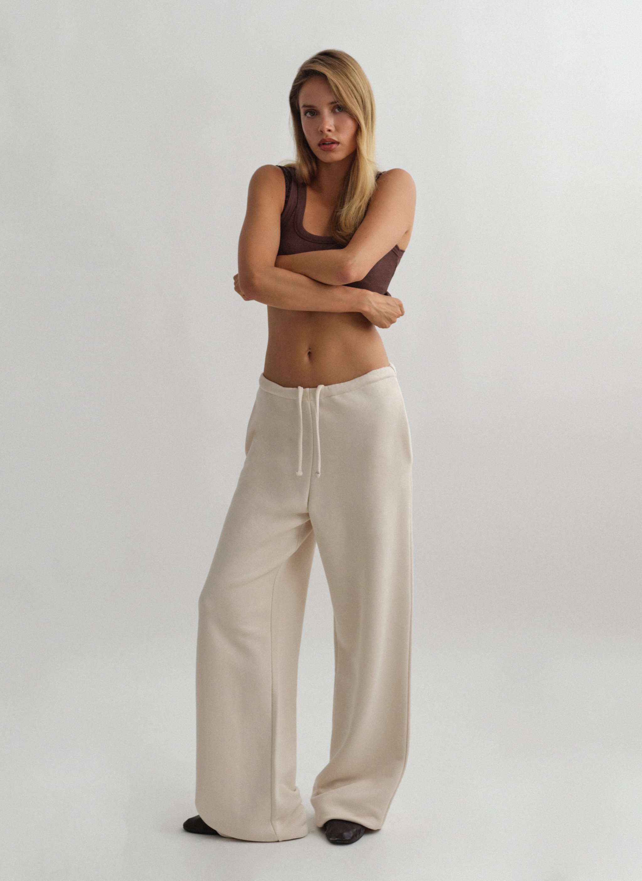 Ελαστικό παντελόνι φόρμας με κορδόνι στη μέση και ριχτό μπατζάκι.