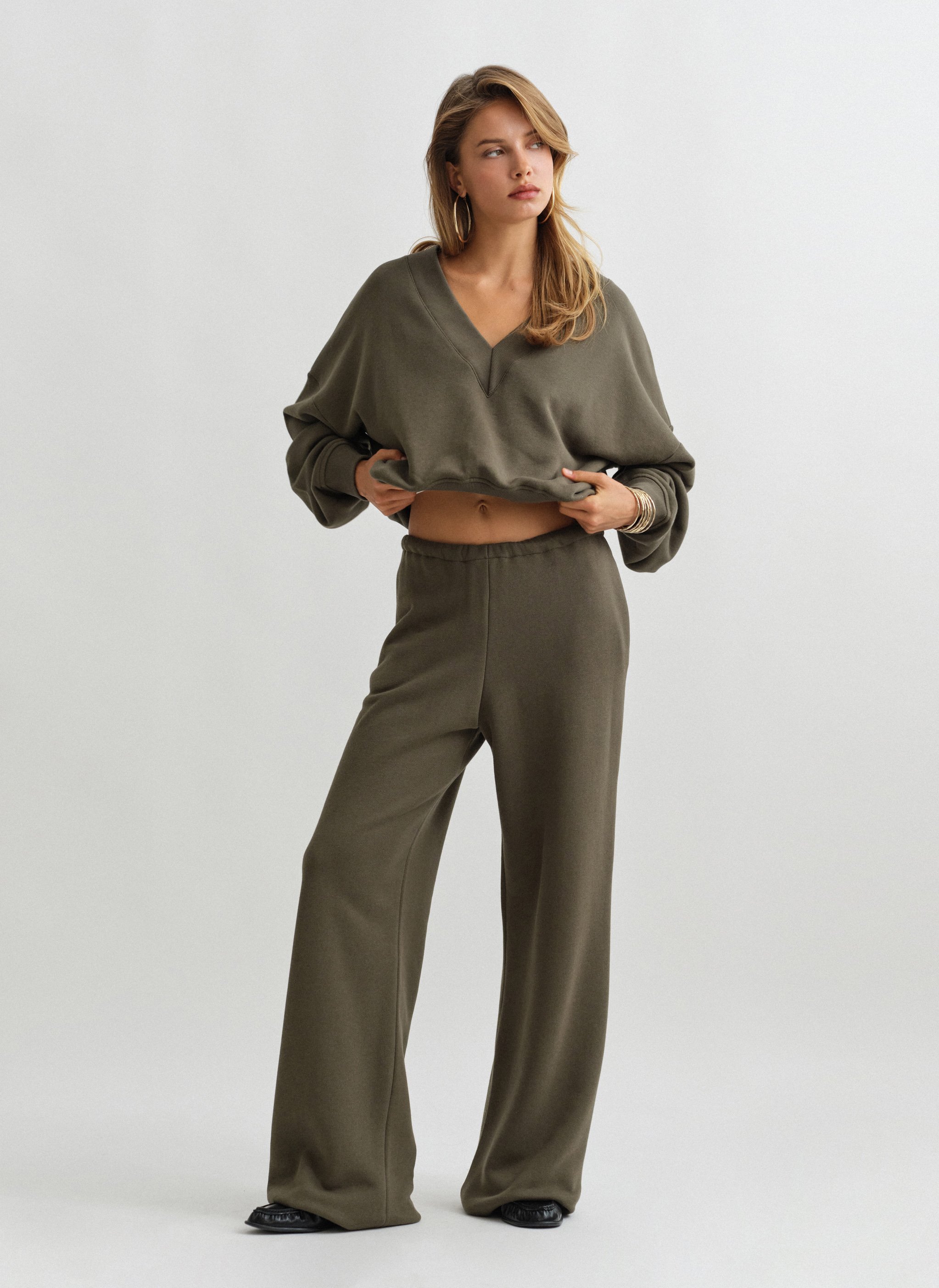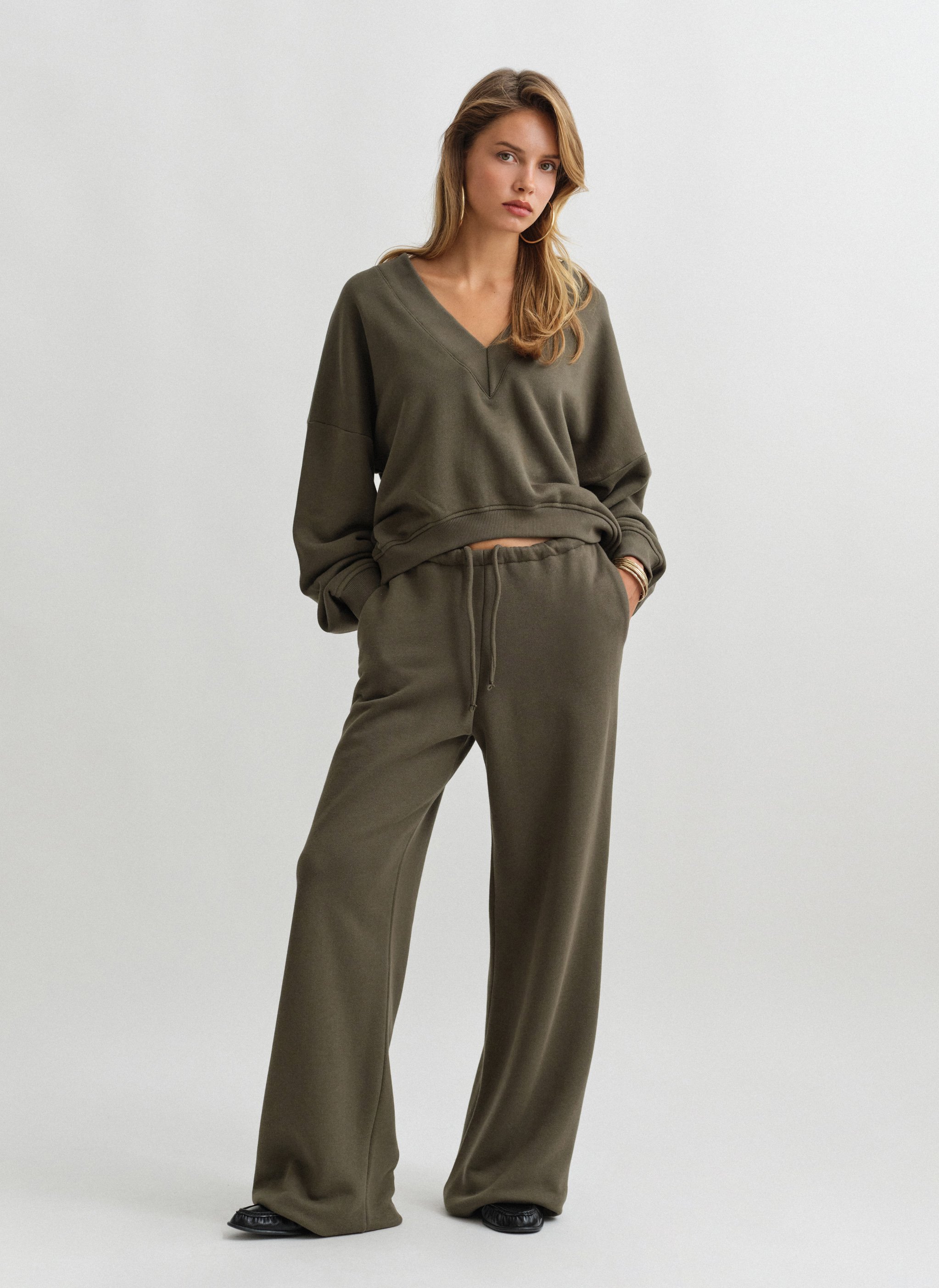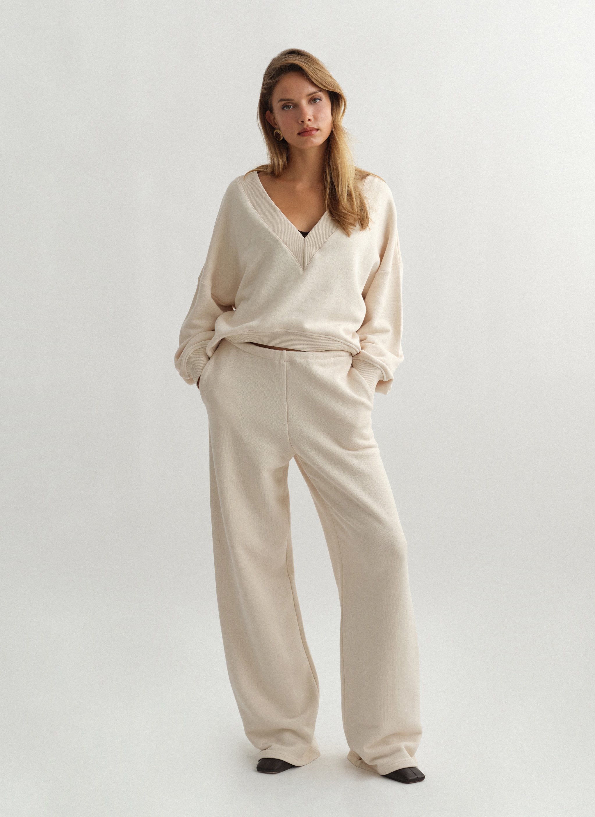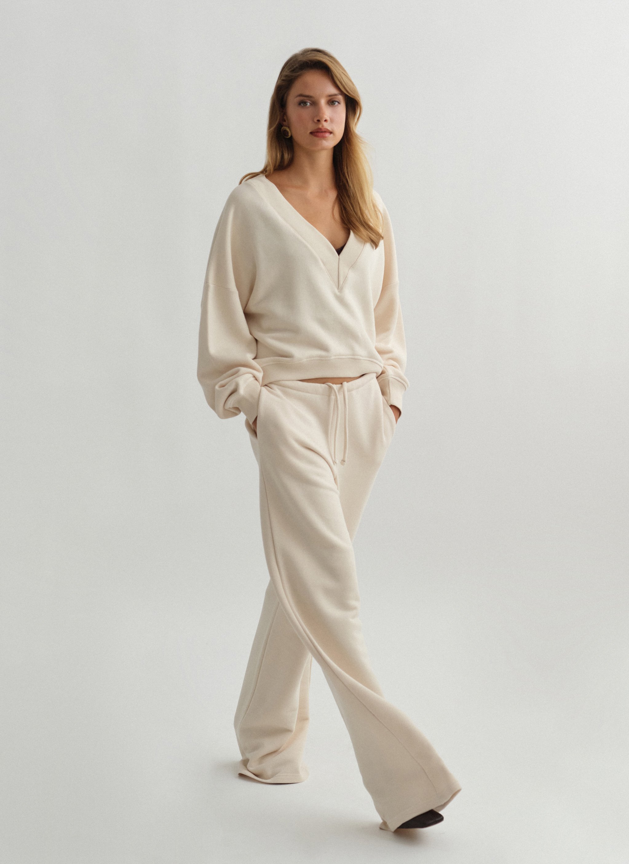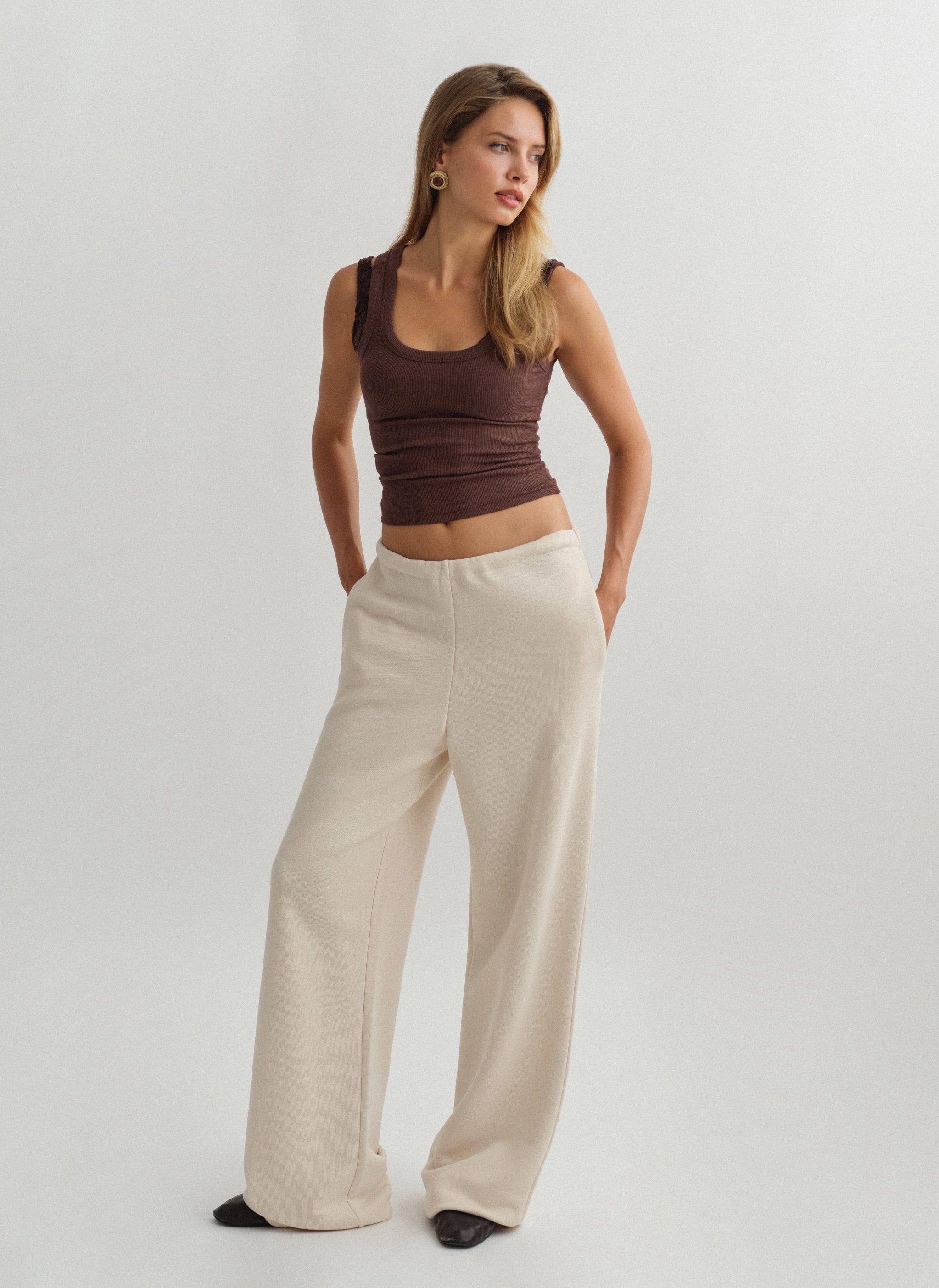 Ελαστικό παντελόνι φόρμας με κορδόνι στη μέση και ριχτό μπατζάκι.