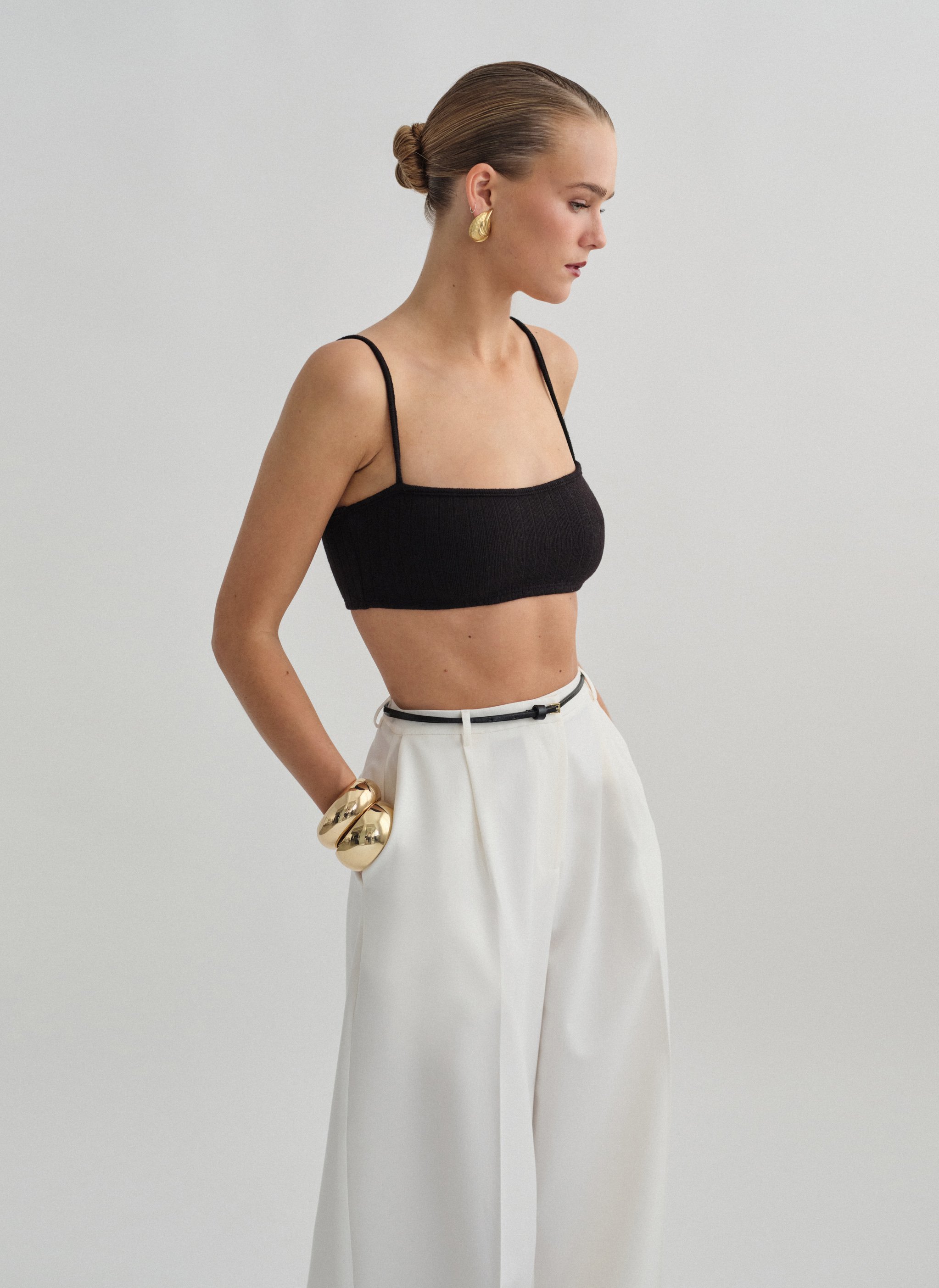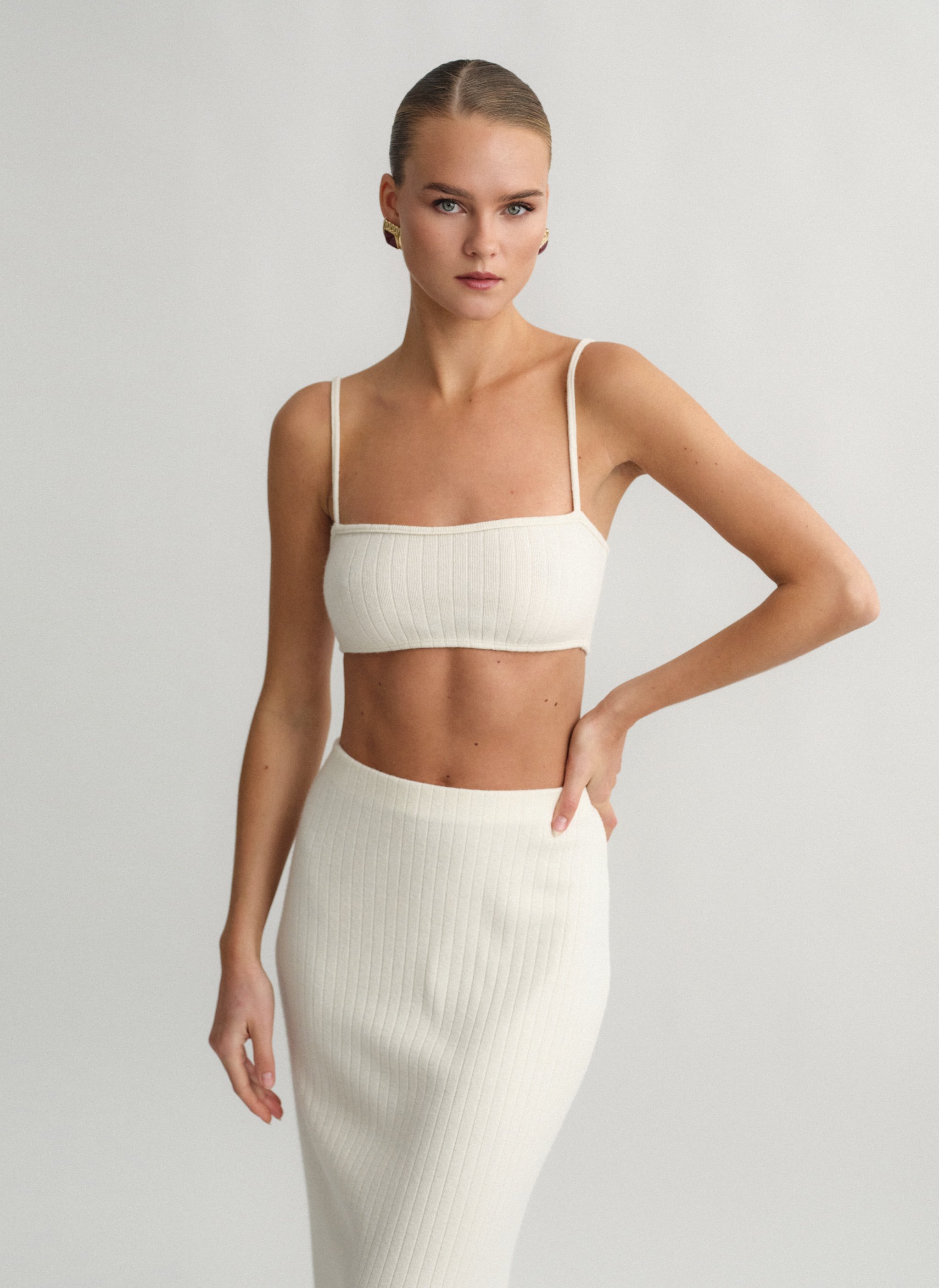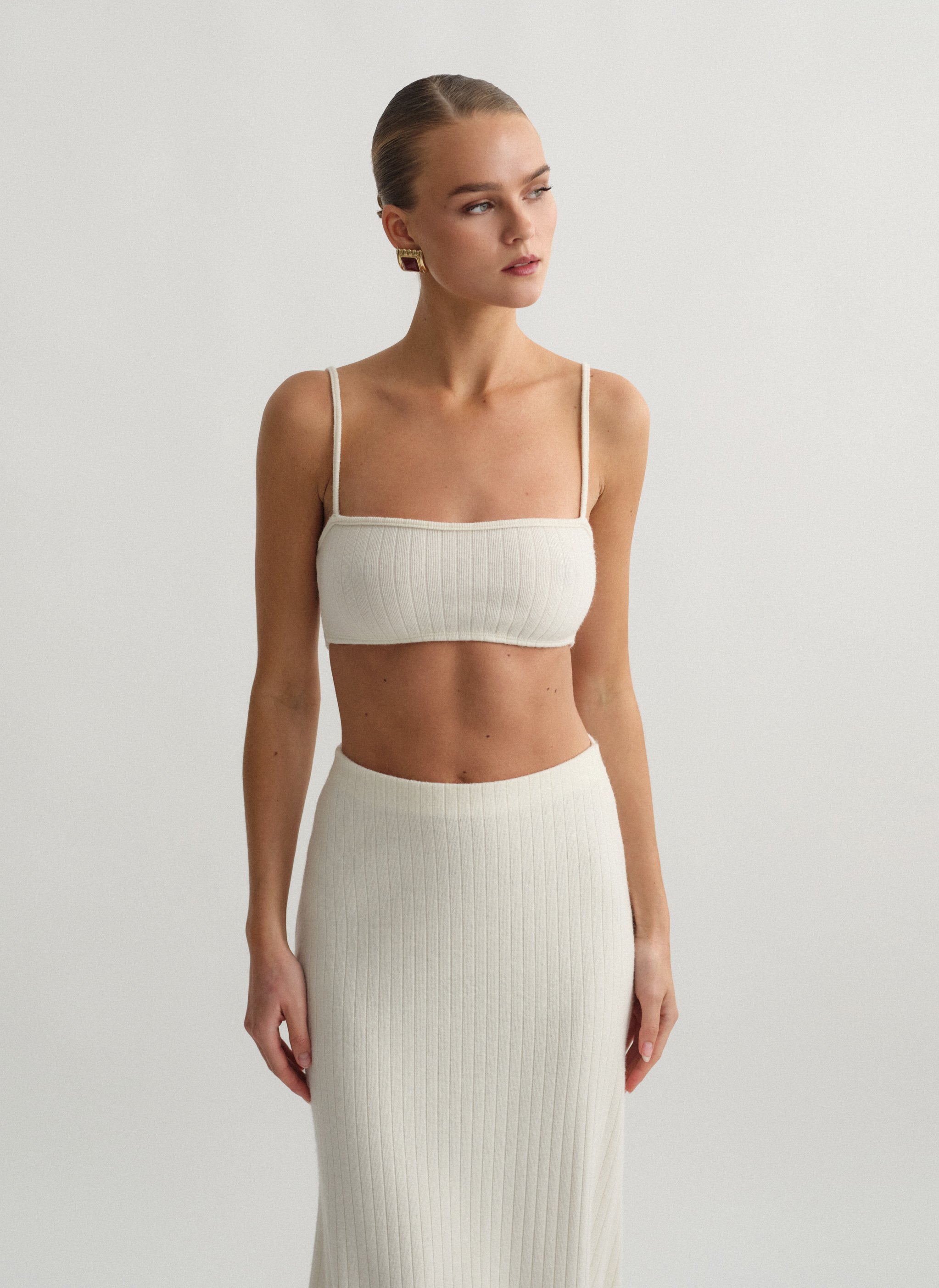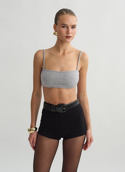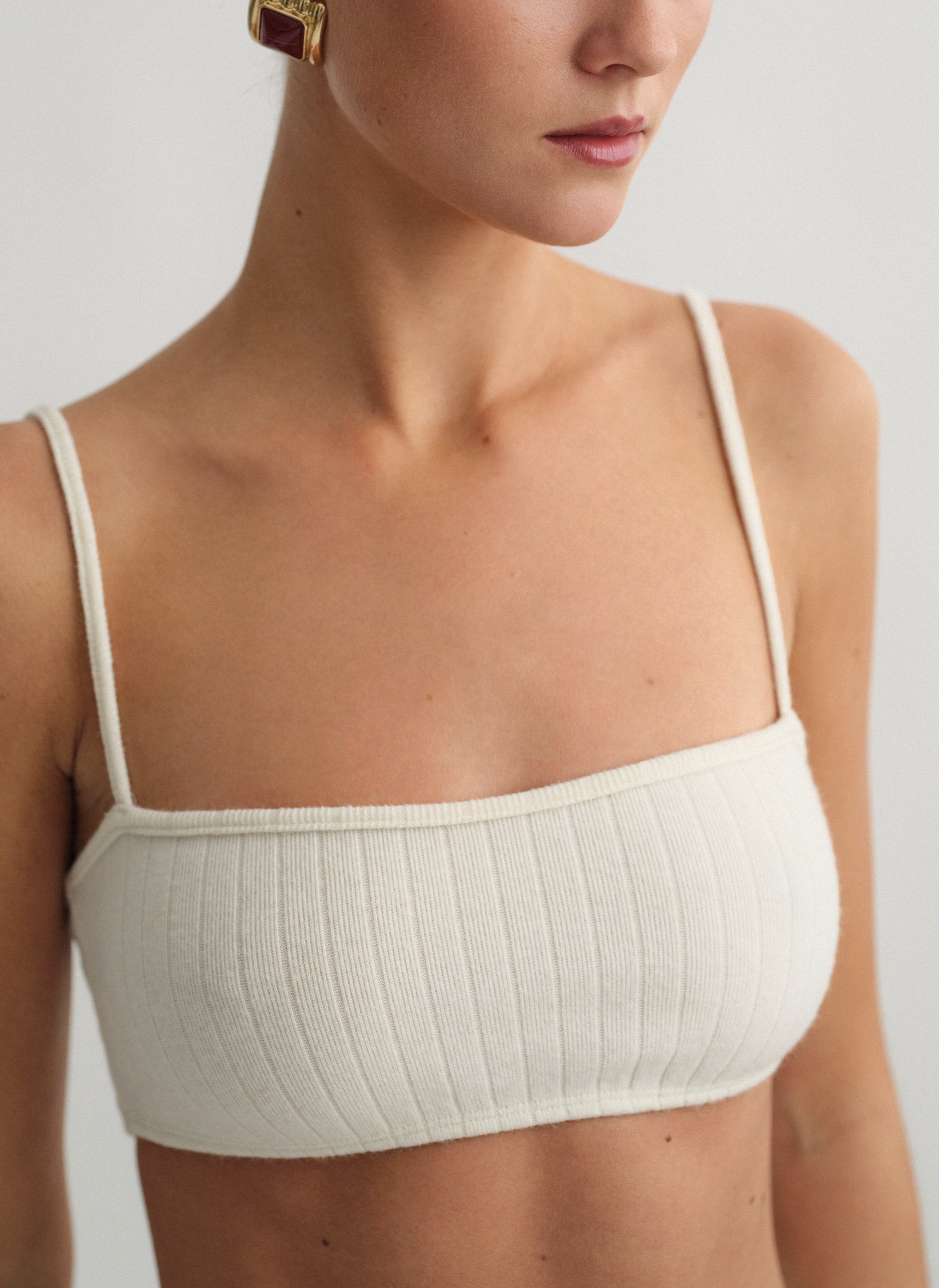 Ελαστικό πλεκτό ριπ crop τοπ με λεπτά τιραντάκια.