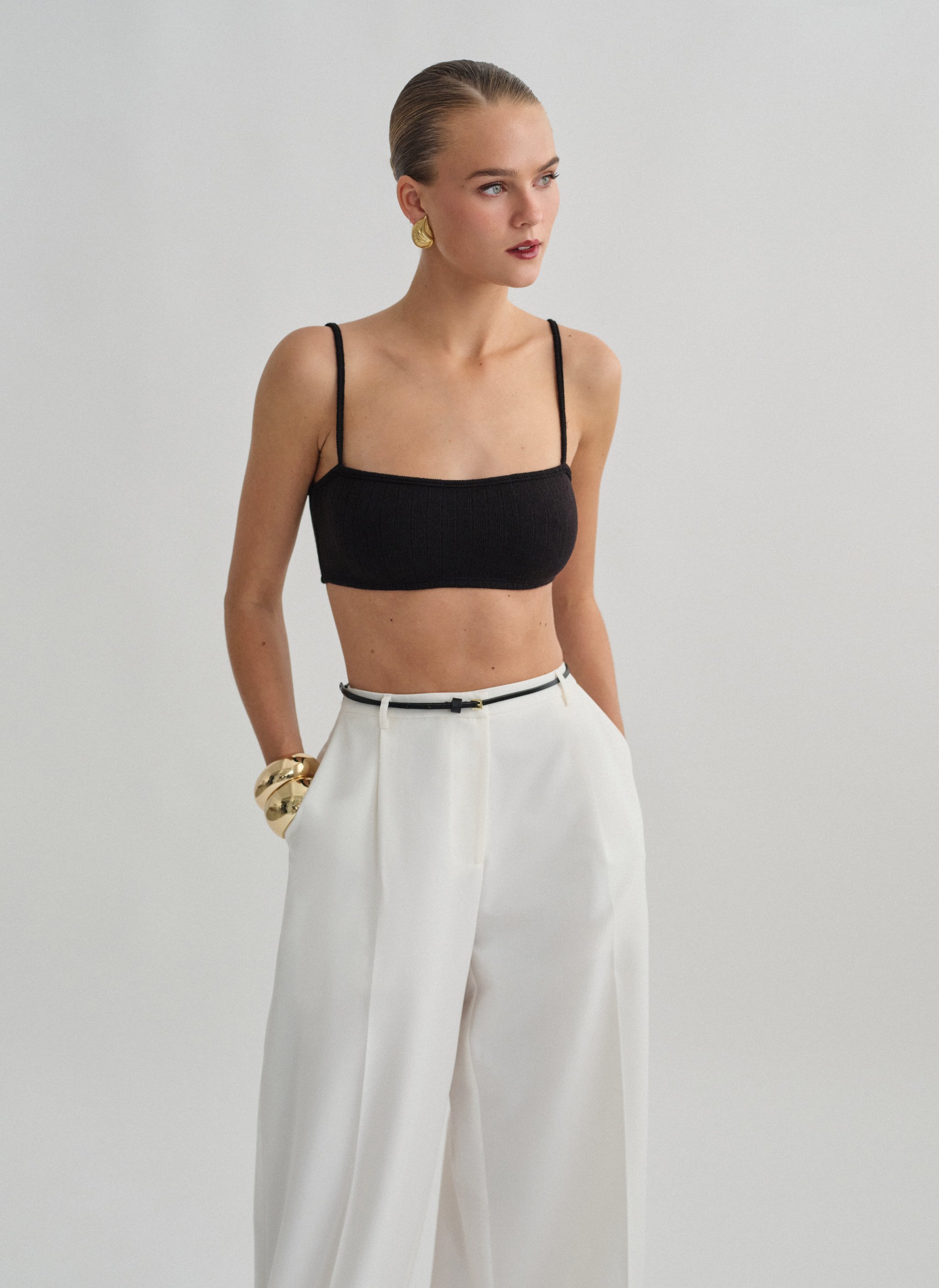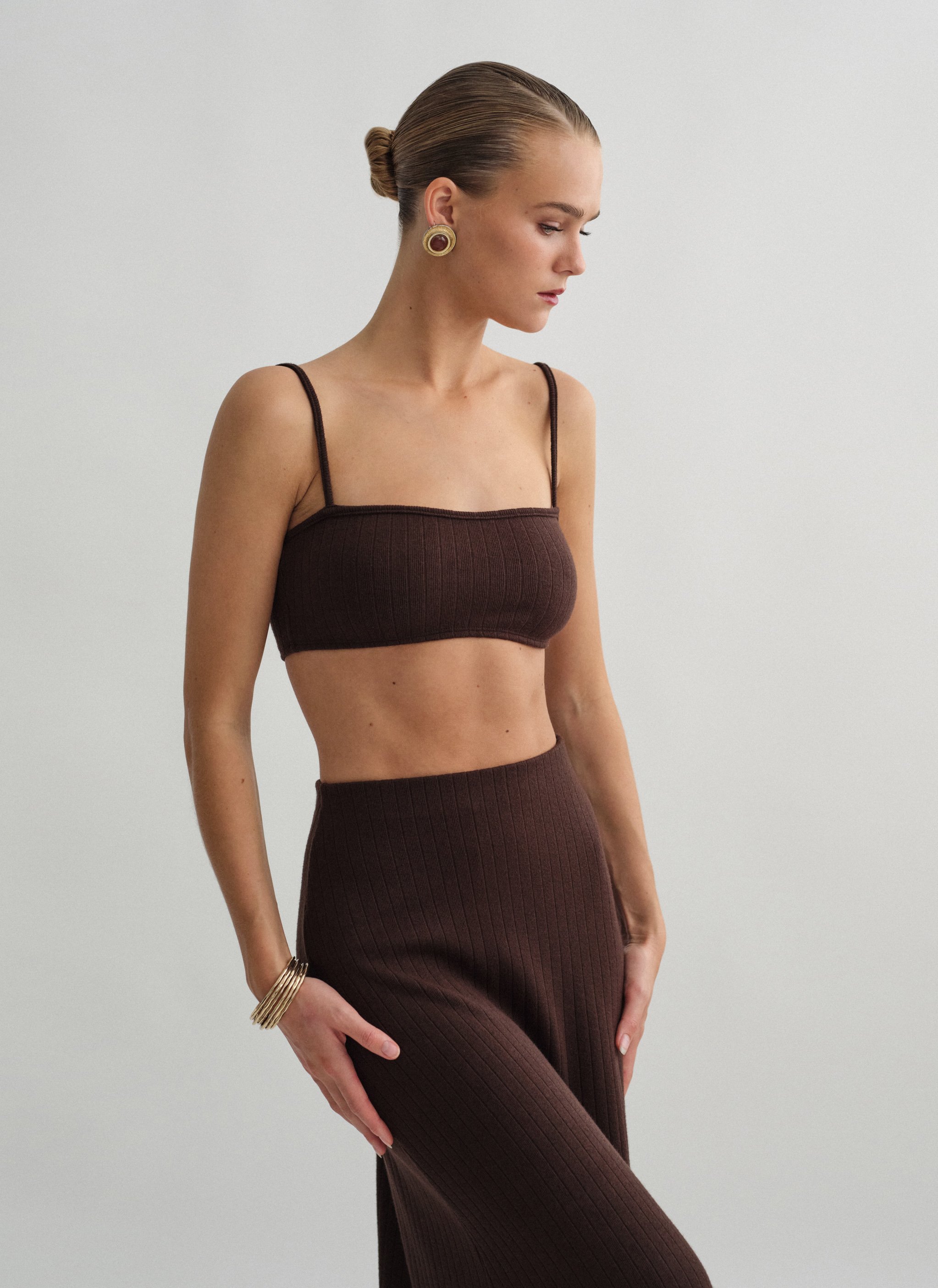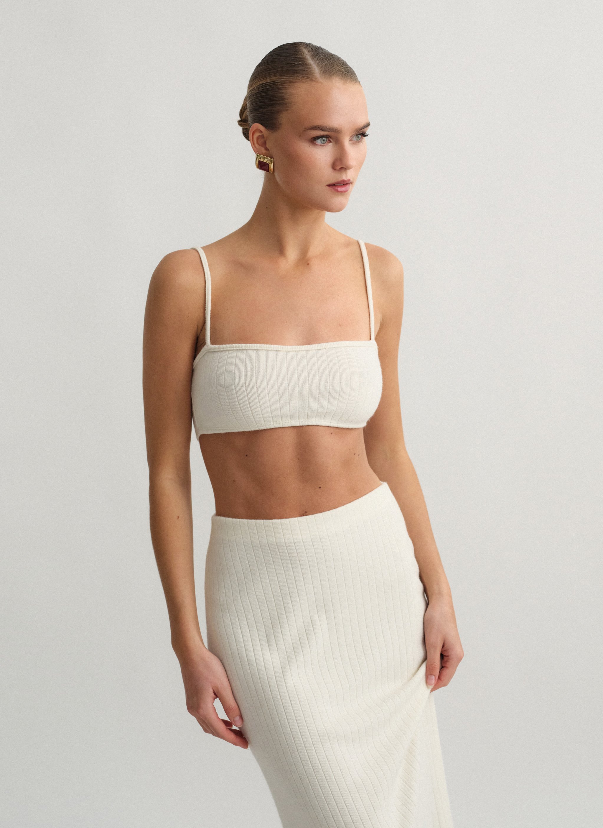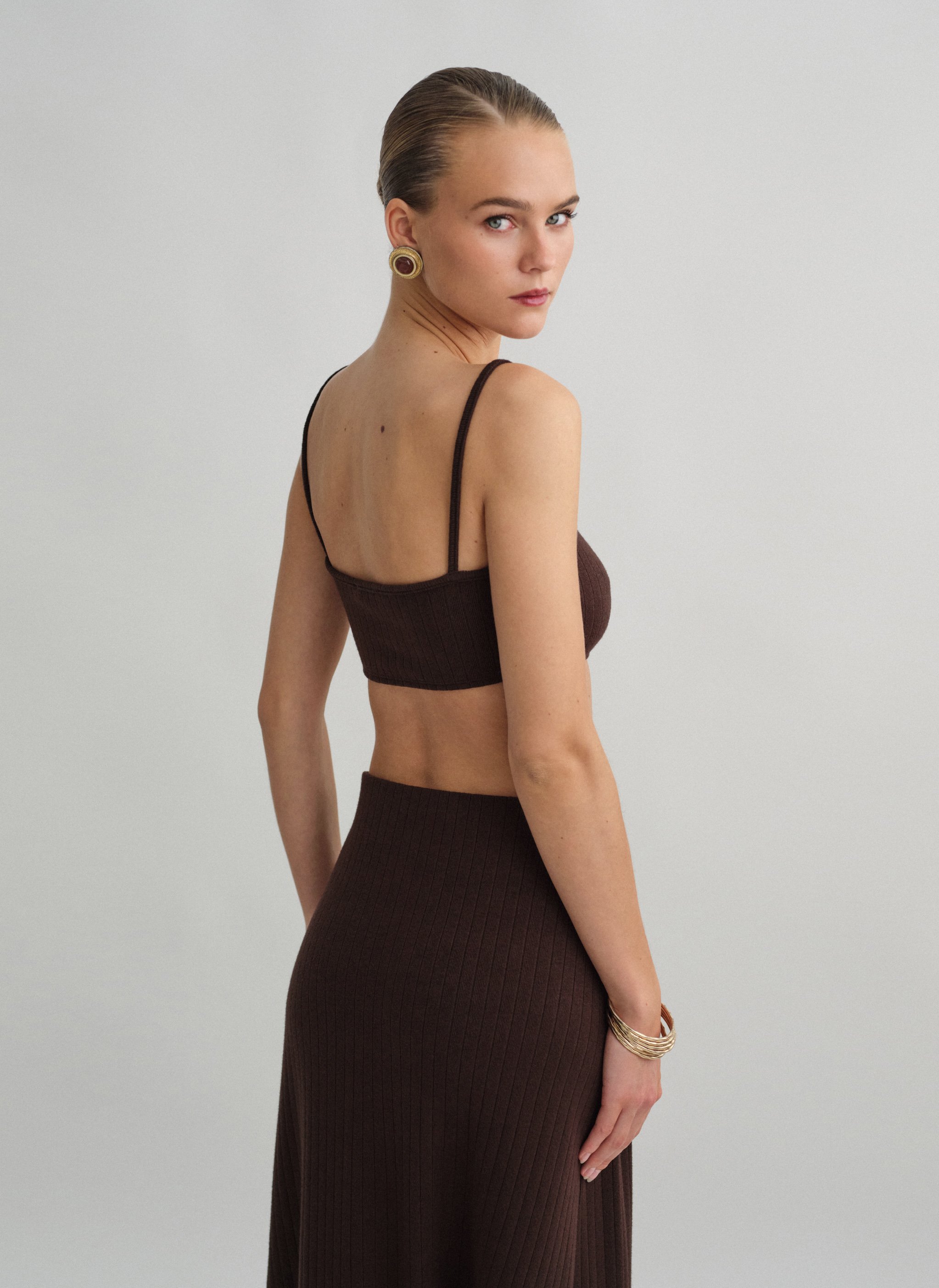 Ελαστικό πλεκτό ριπ crop τοπ με λεπτά τιραντάκια.