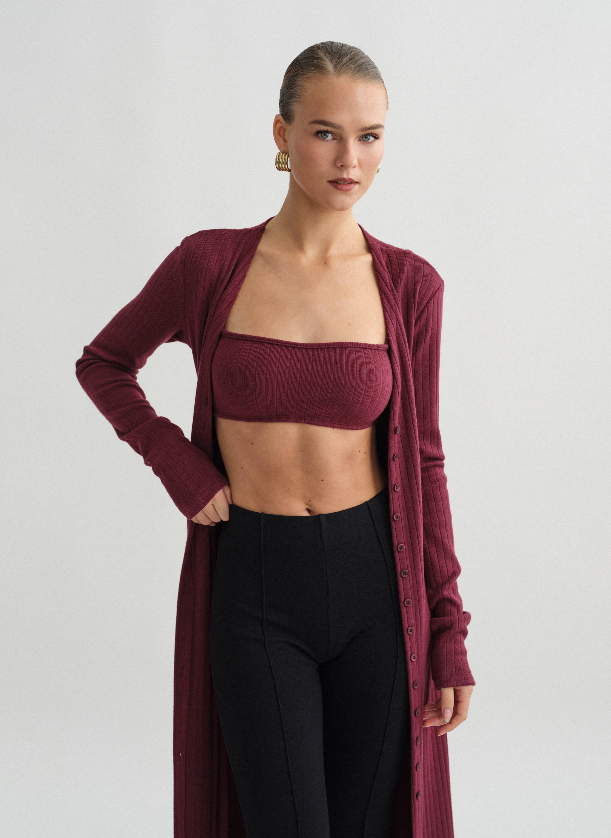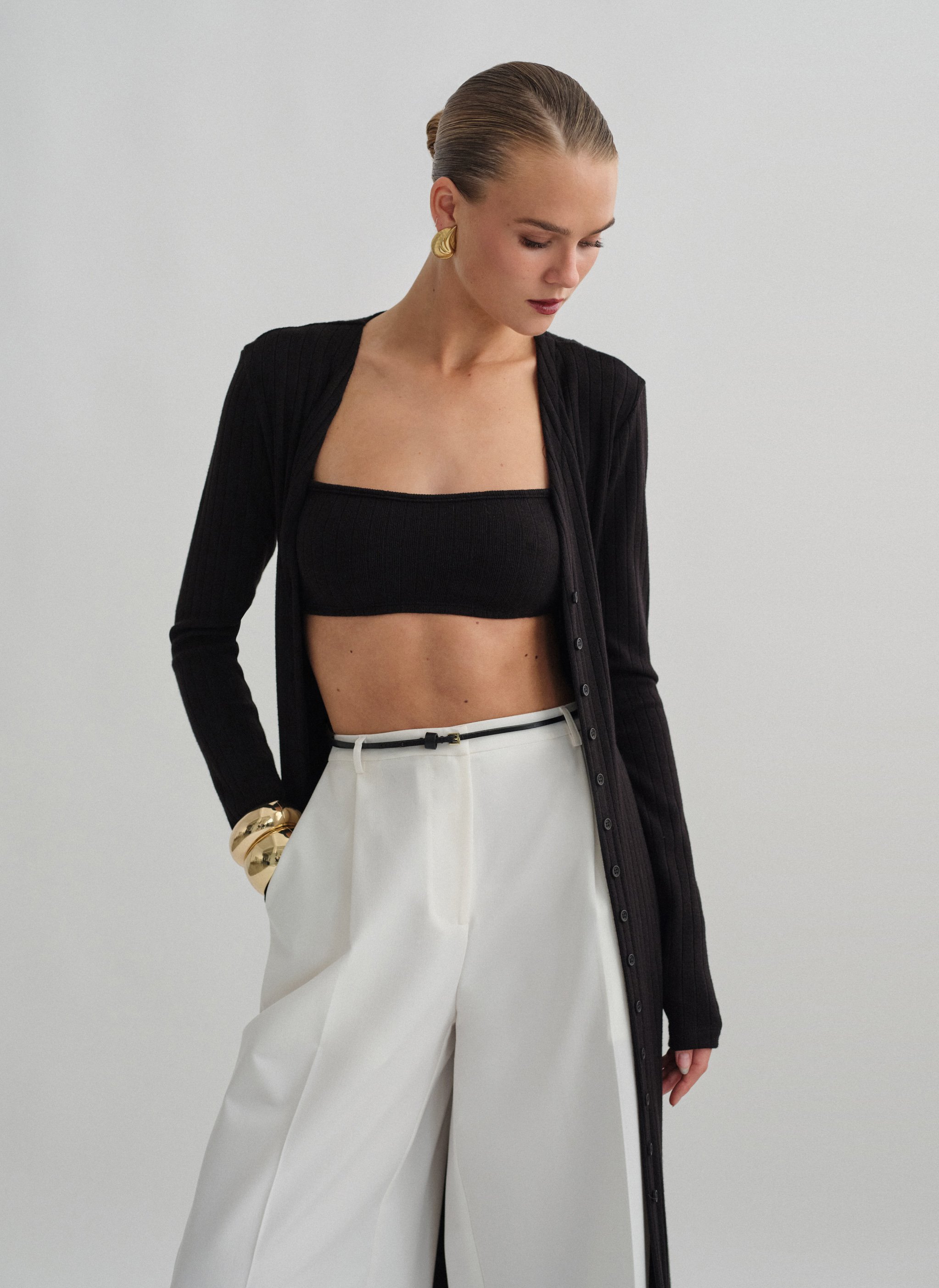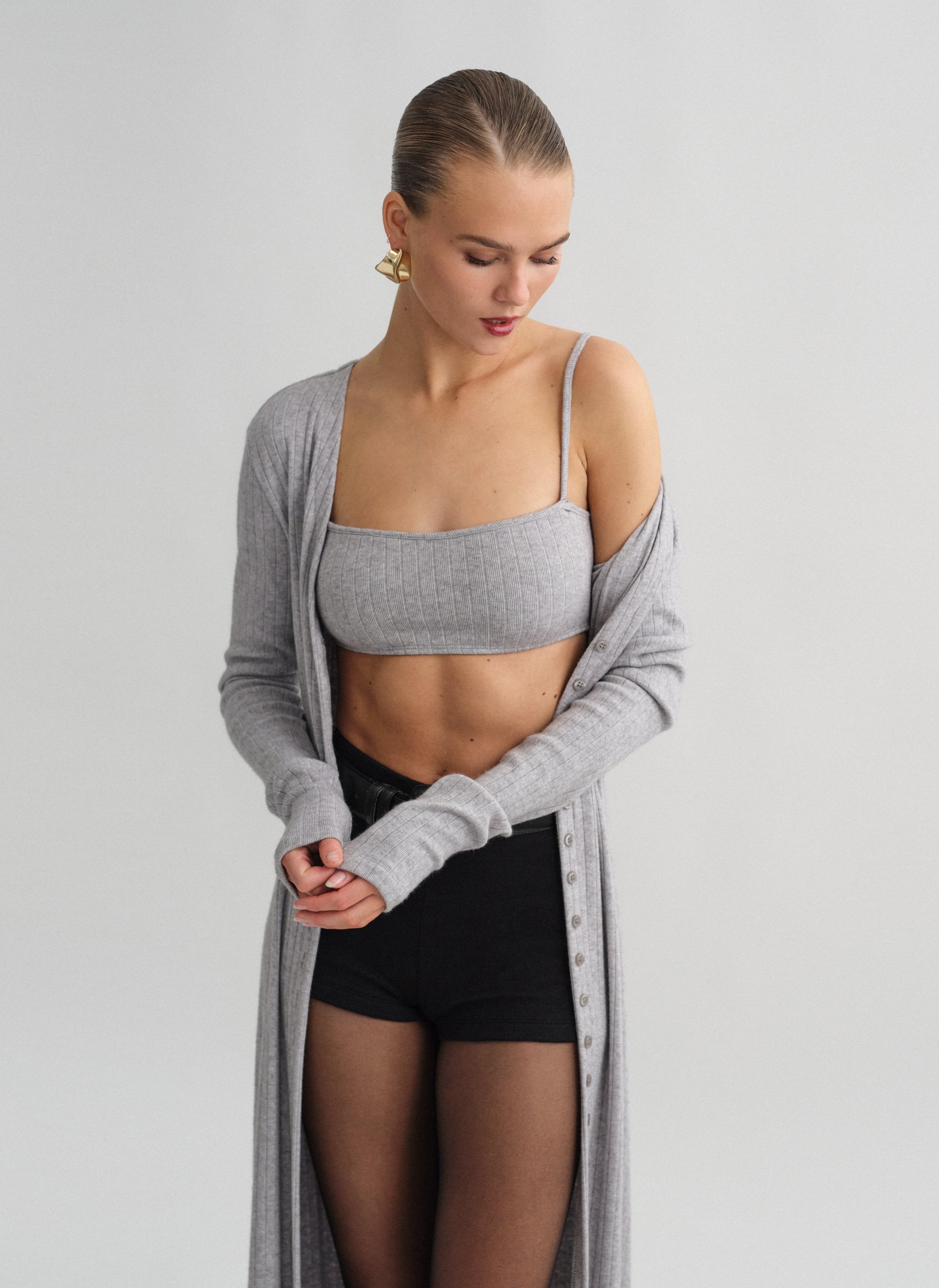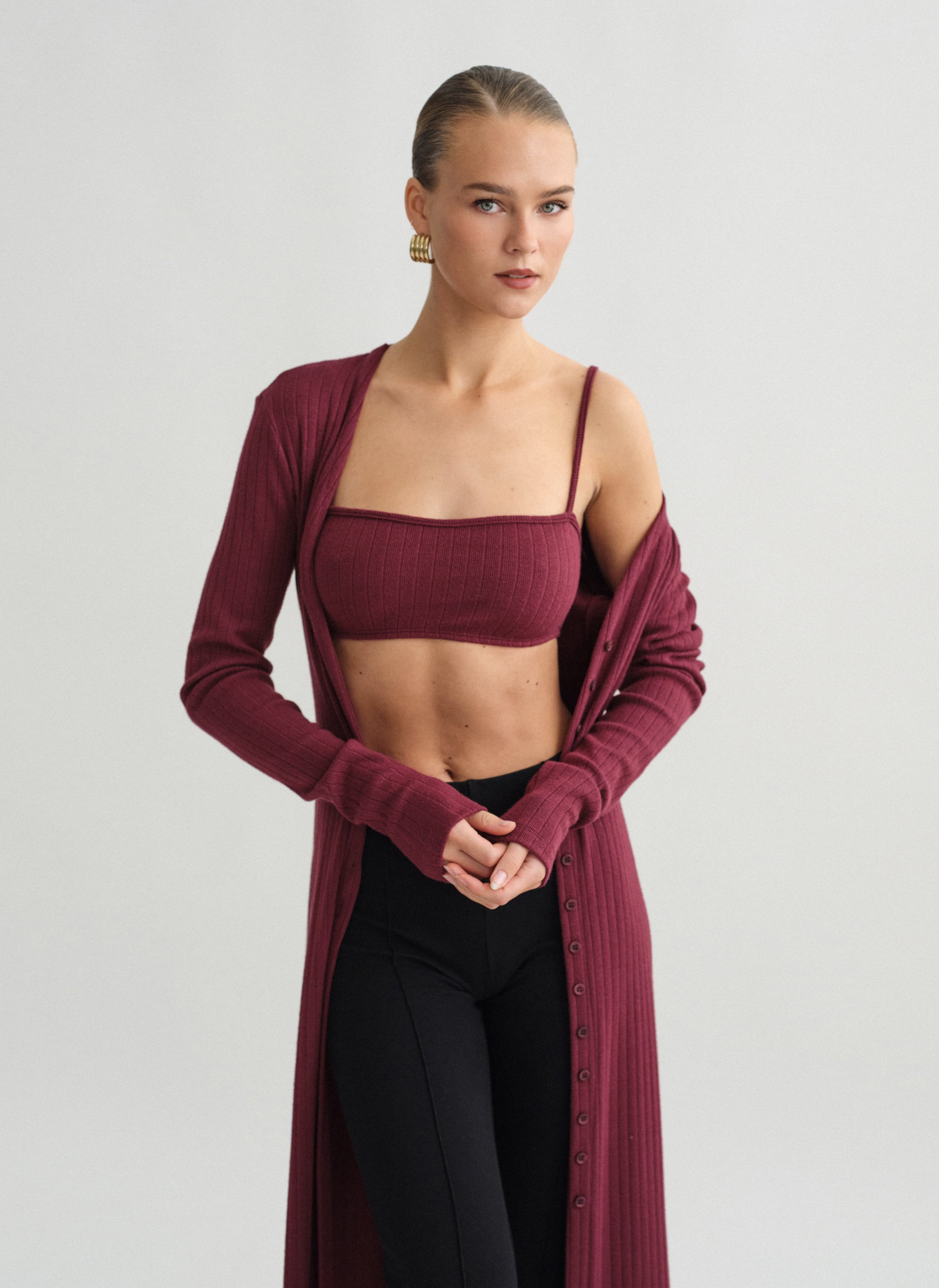 Ελαστικό πλεκτό ριπ crop τοπ με λεπτά τιραντάκια.