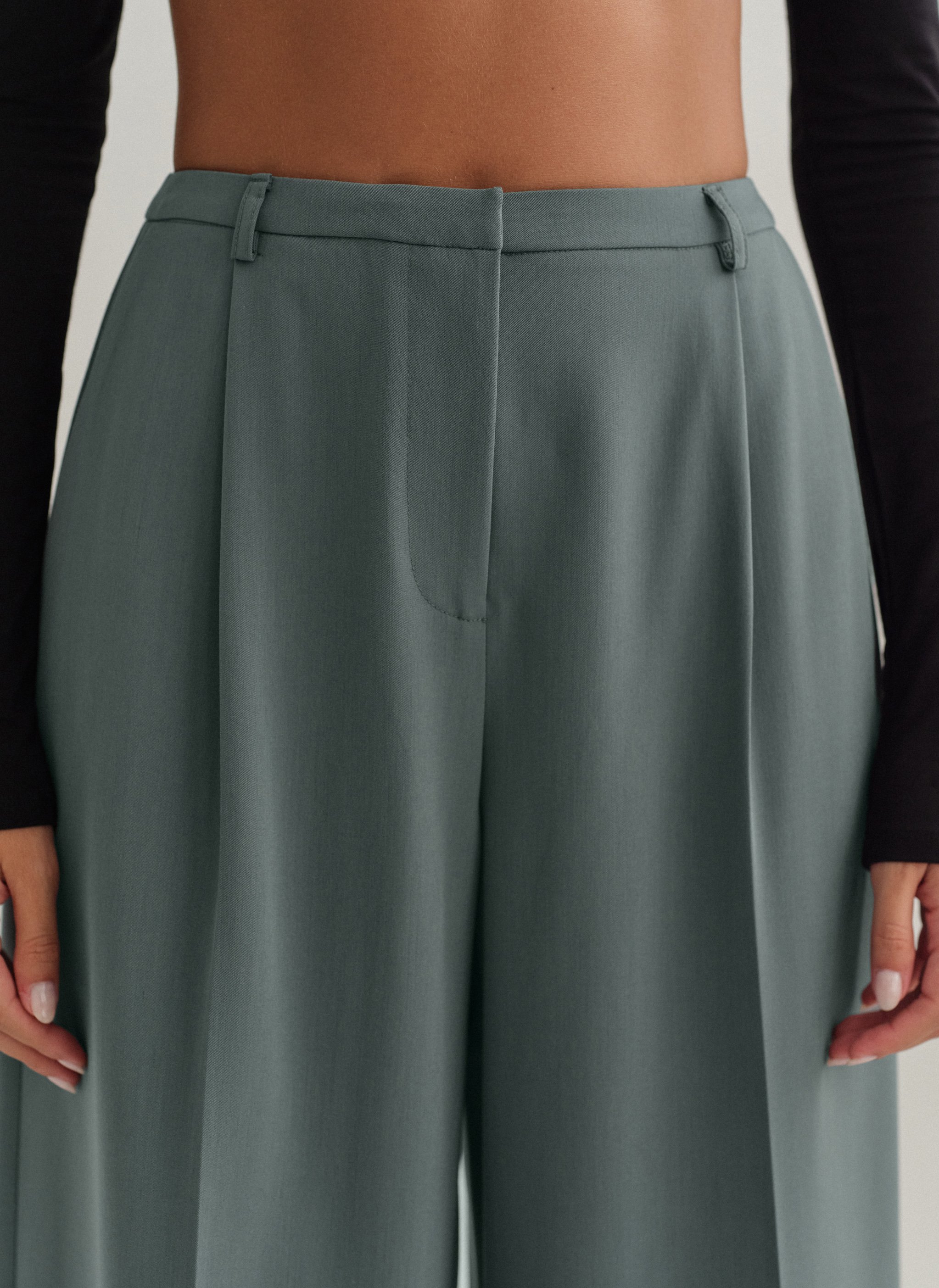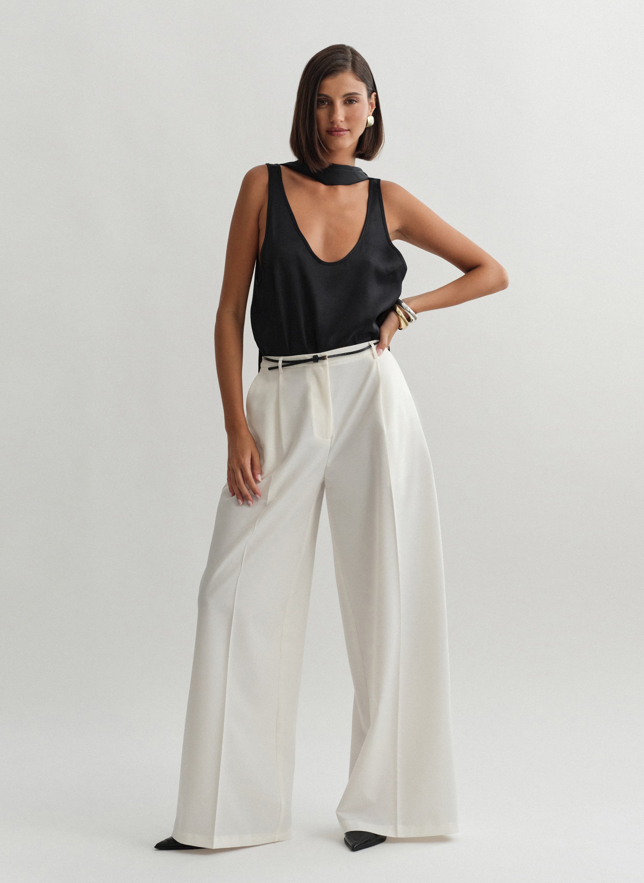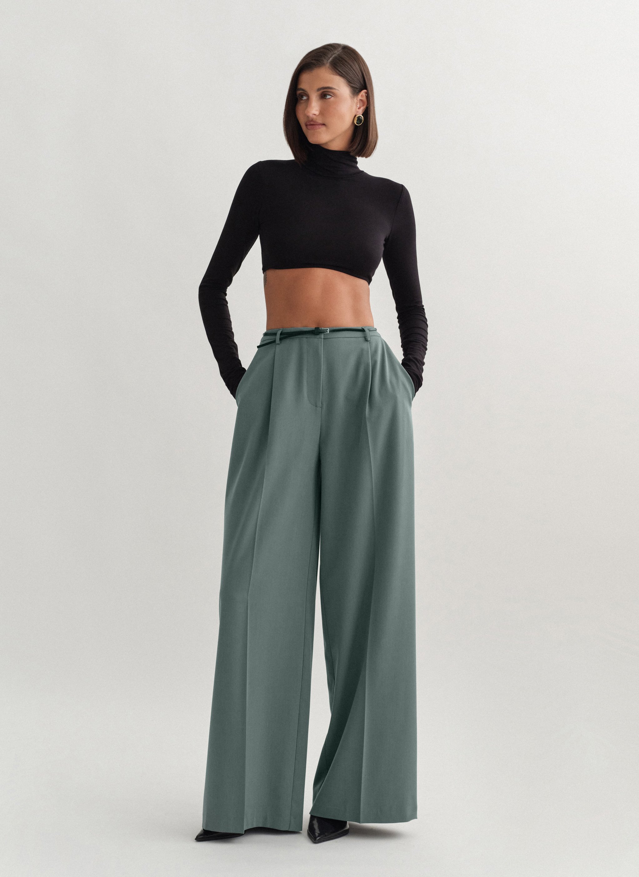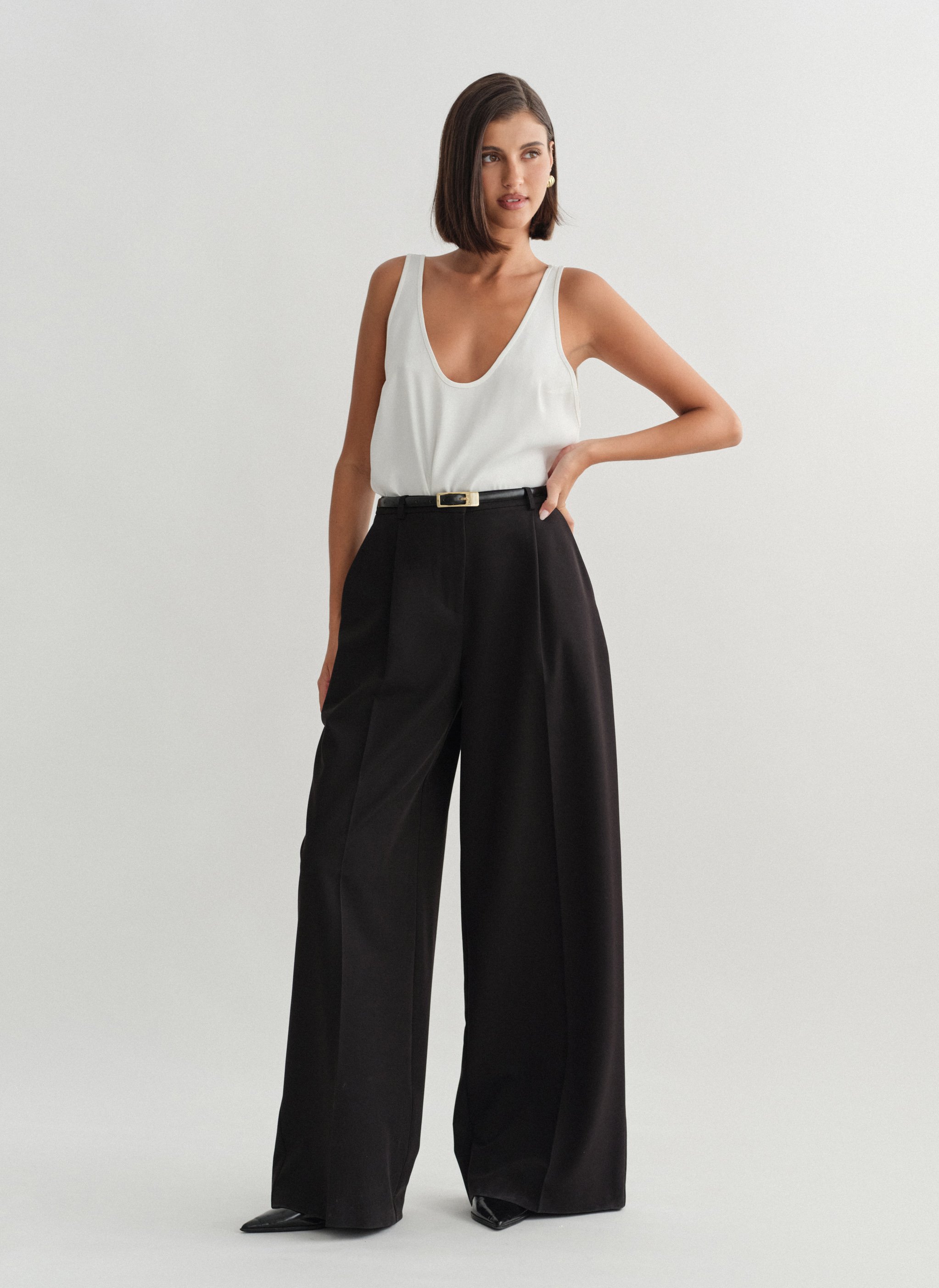 Ψηλόμεσο υφασμάτινο παντελόνι με πιέτες και λεπτό ζωνάκι.