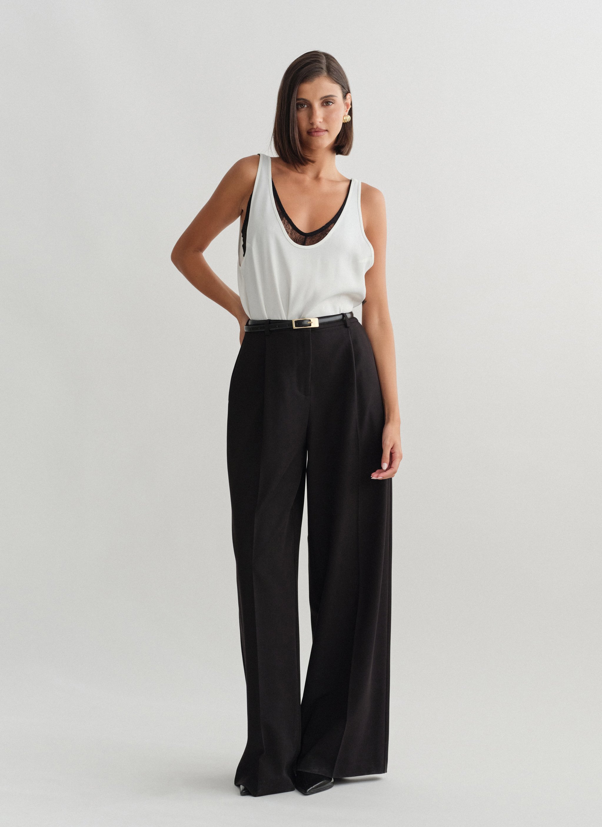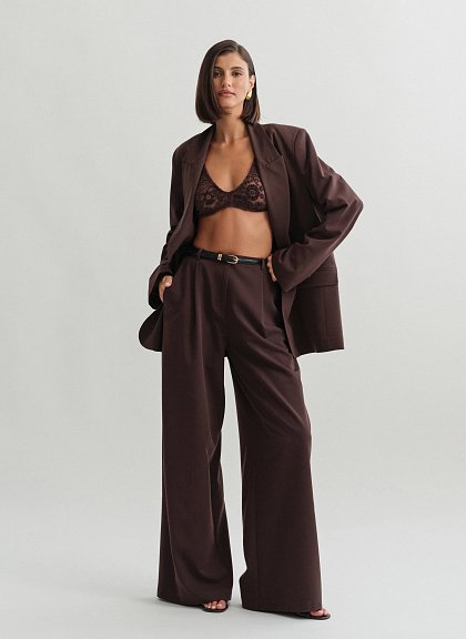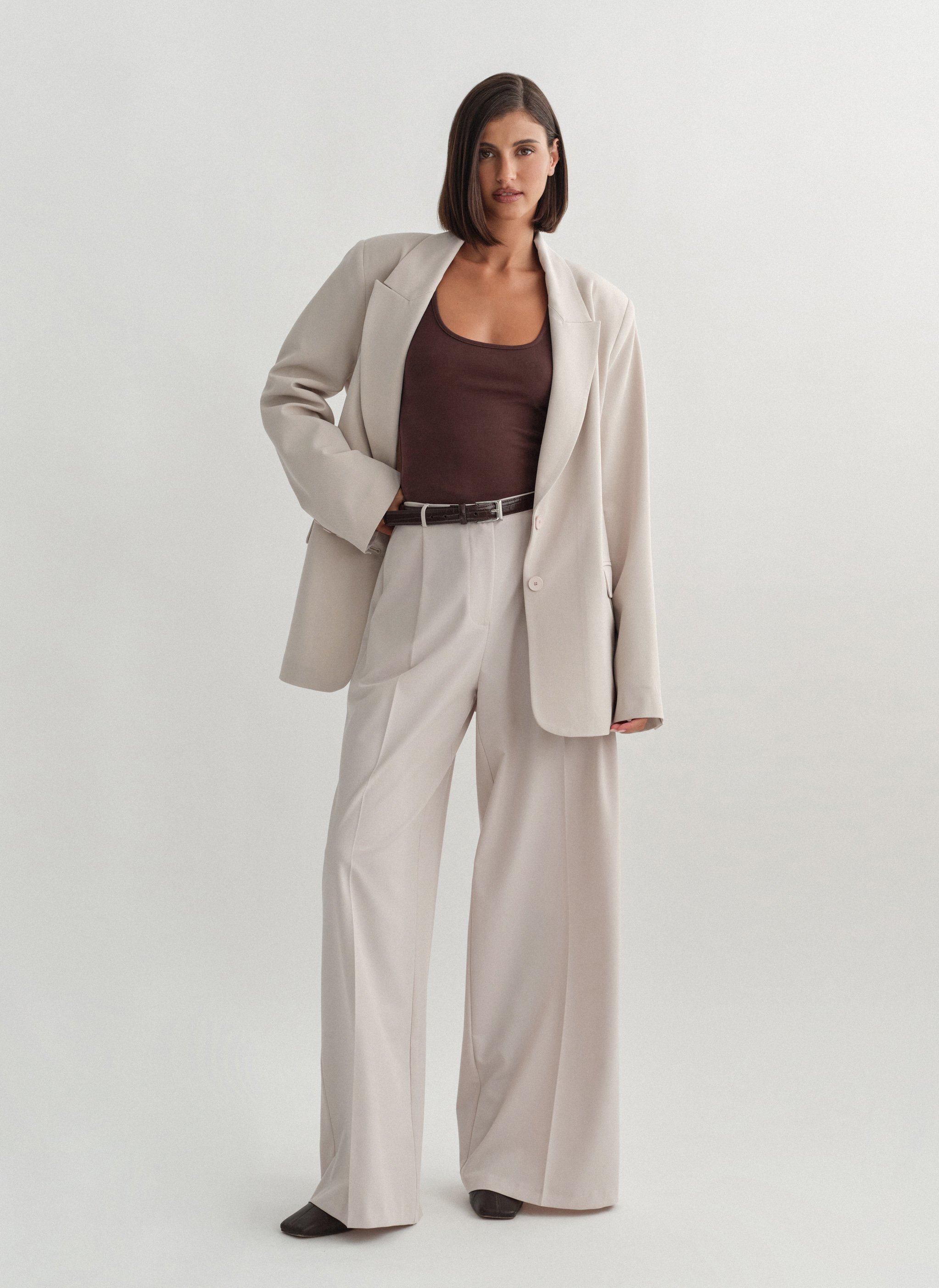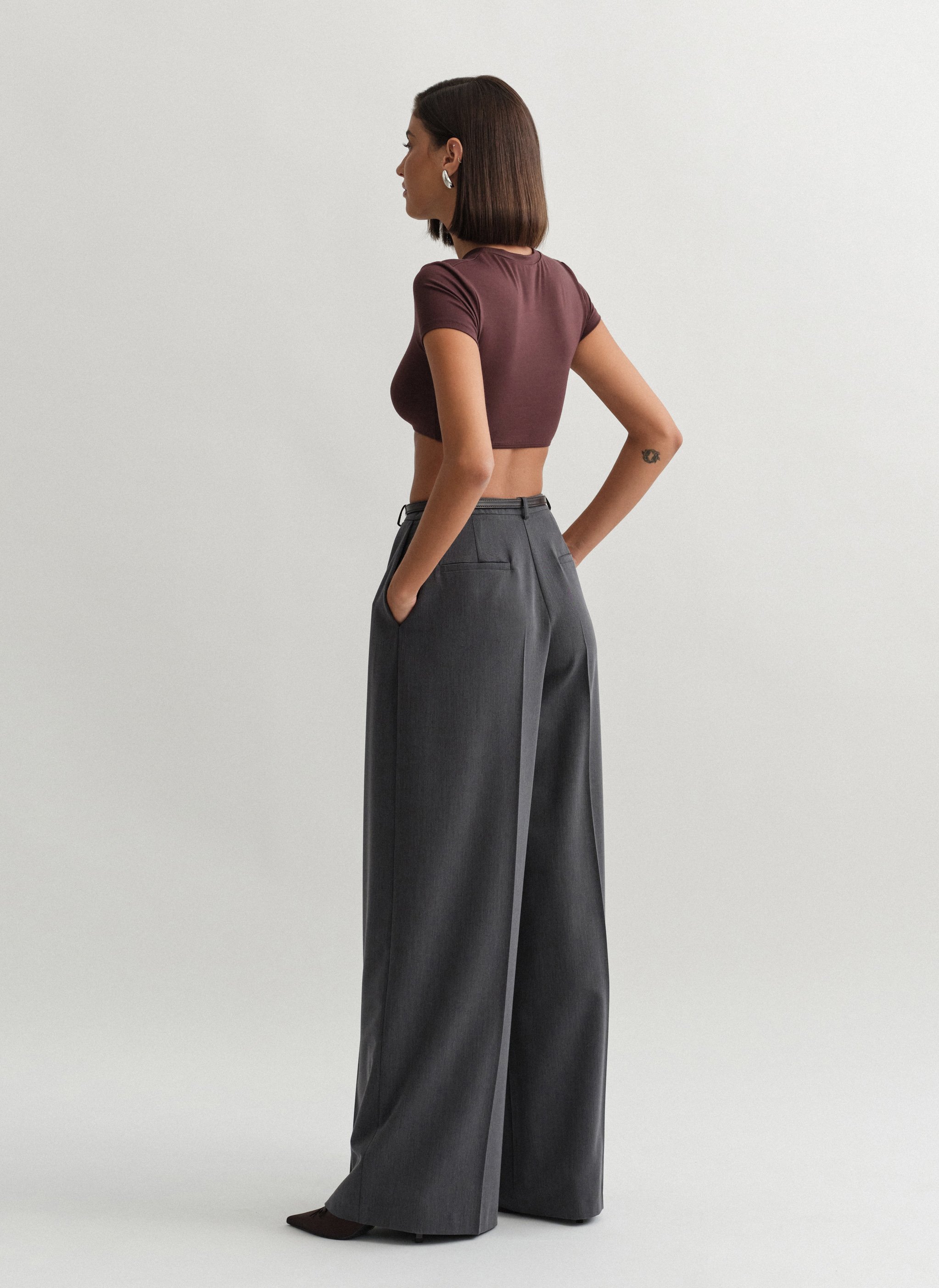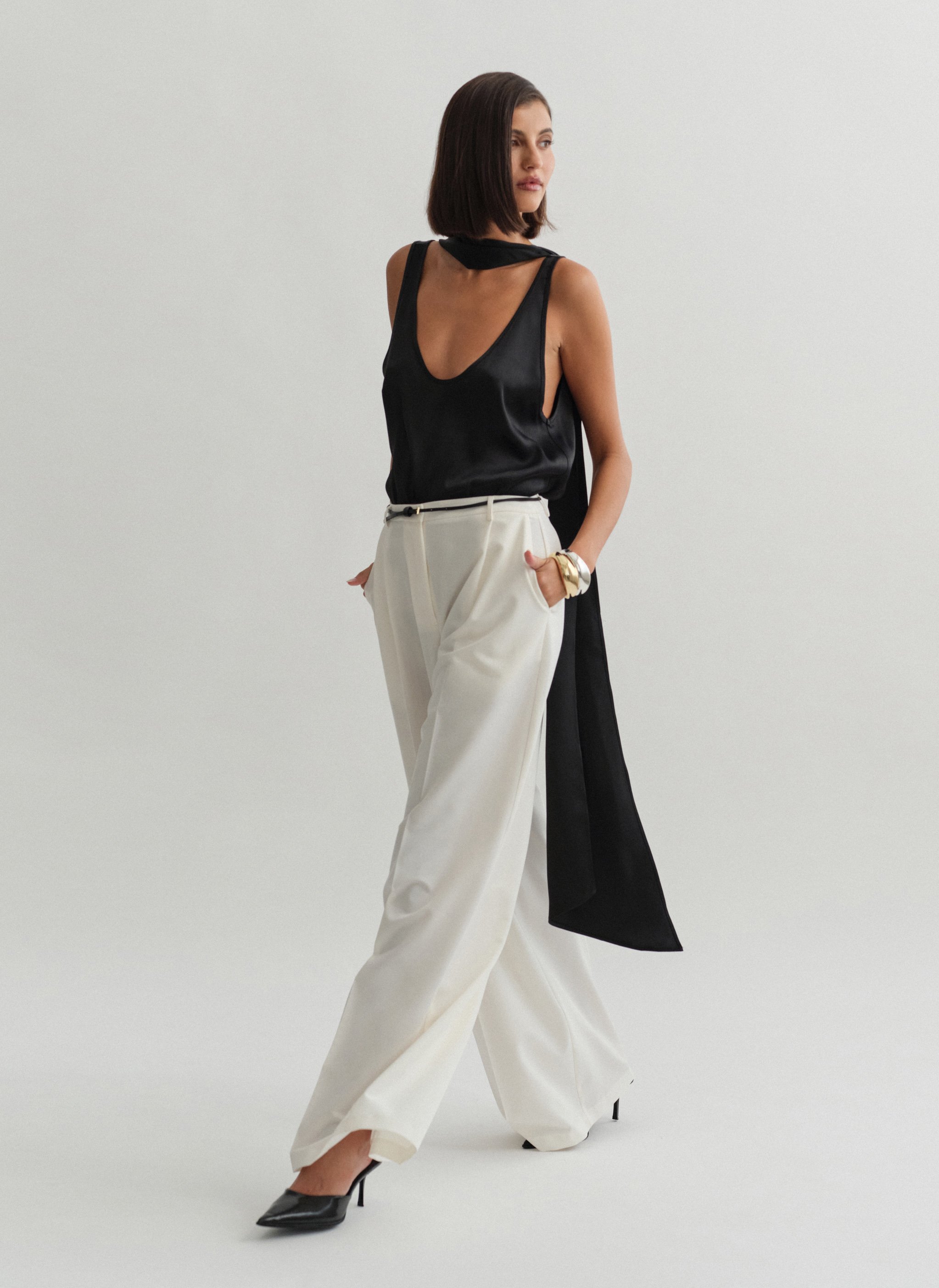 Ψηλόμεσο υφασμάτινο παντελόνι με πιέτες και λεπτό ζωνάκι.