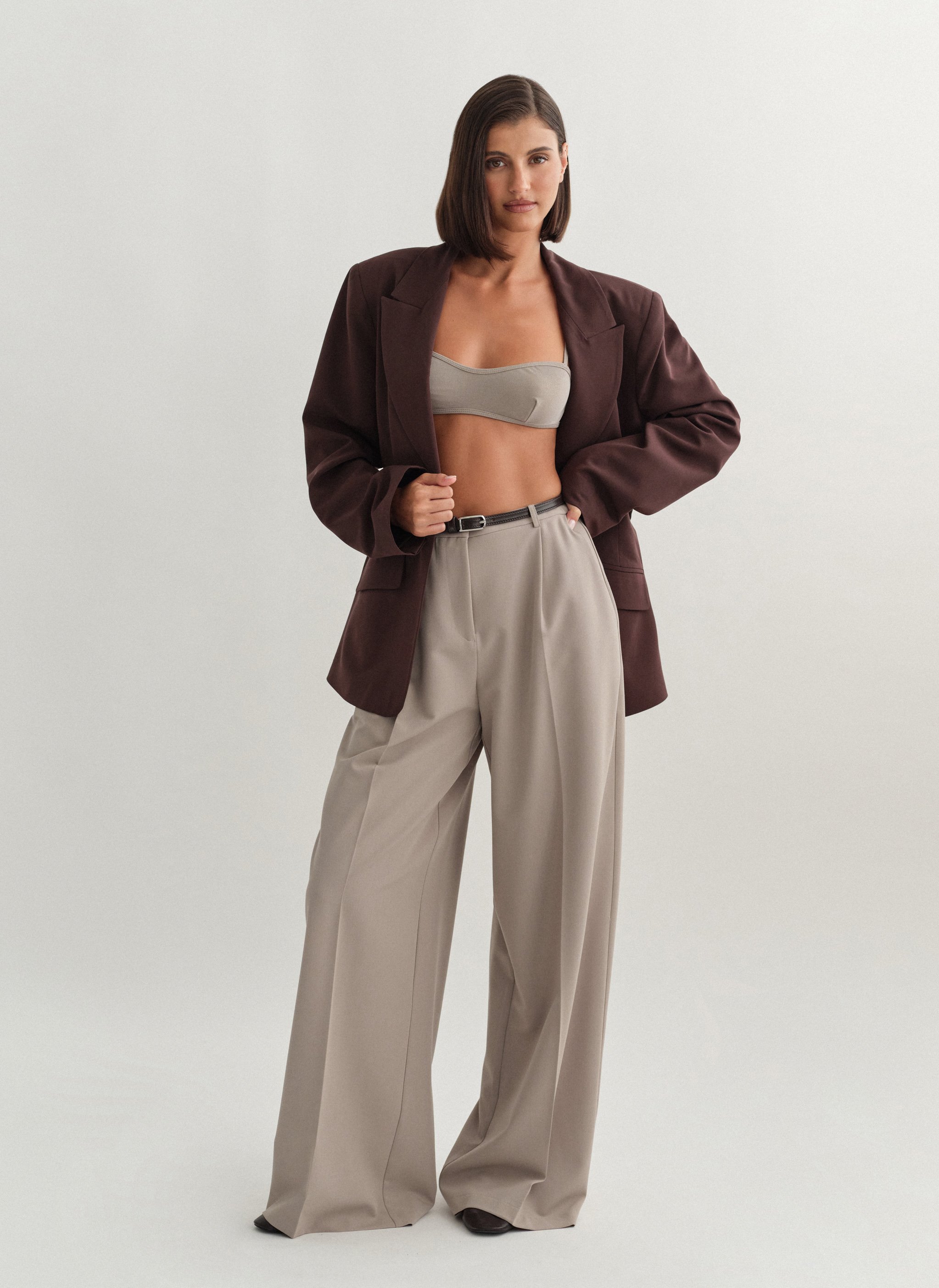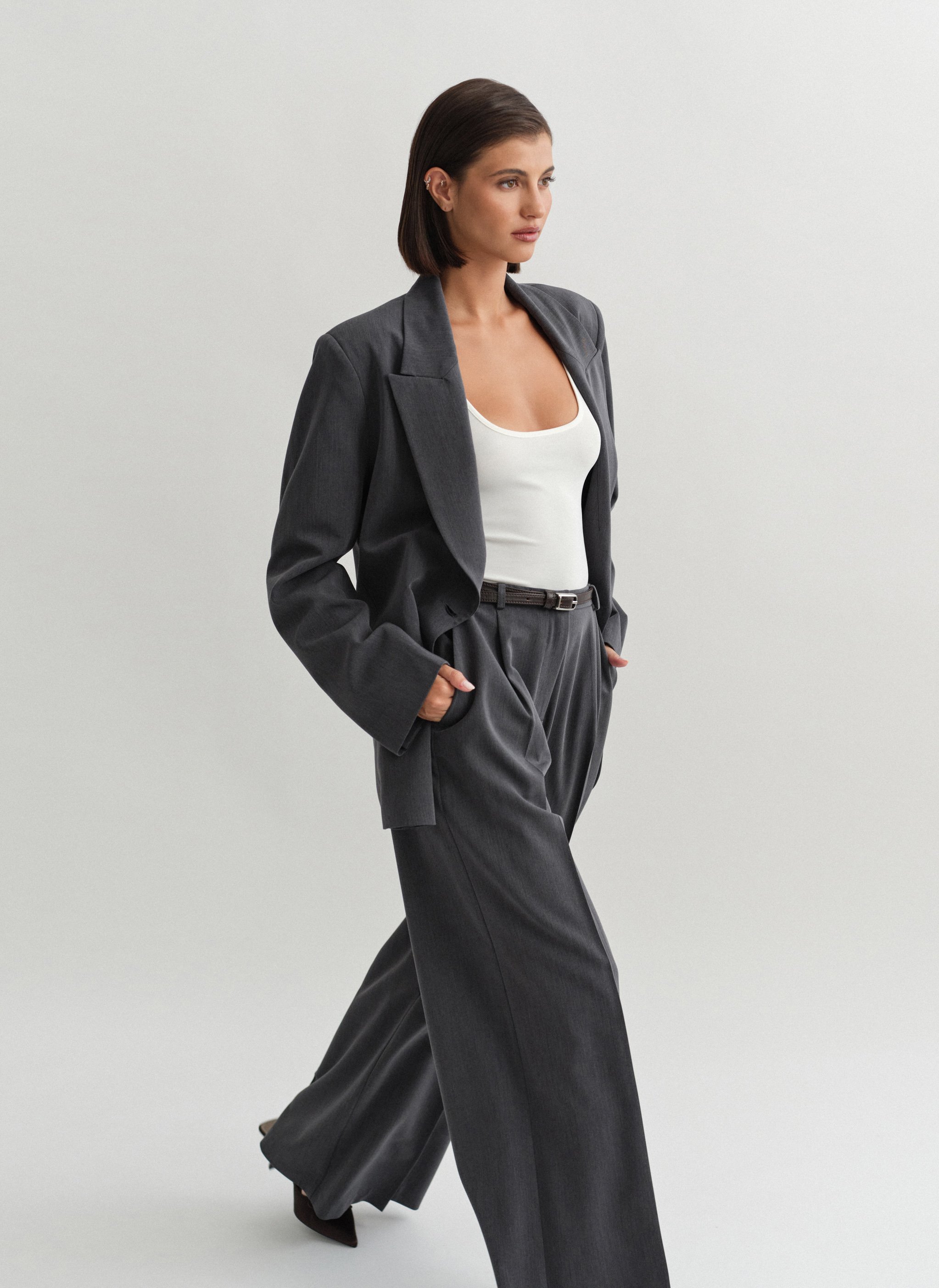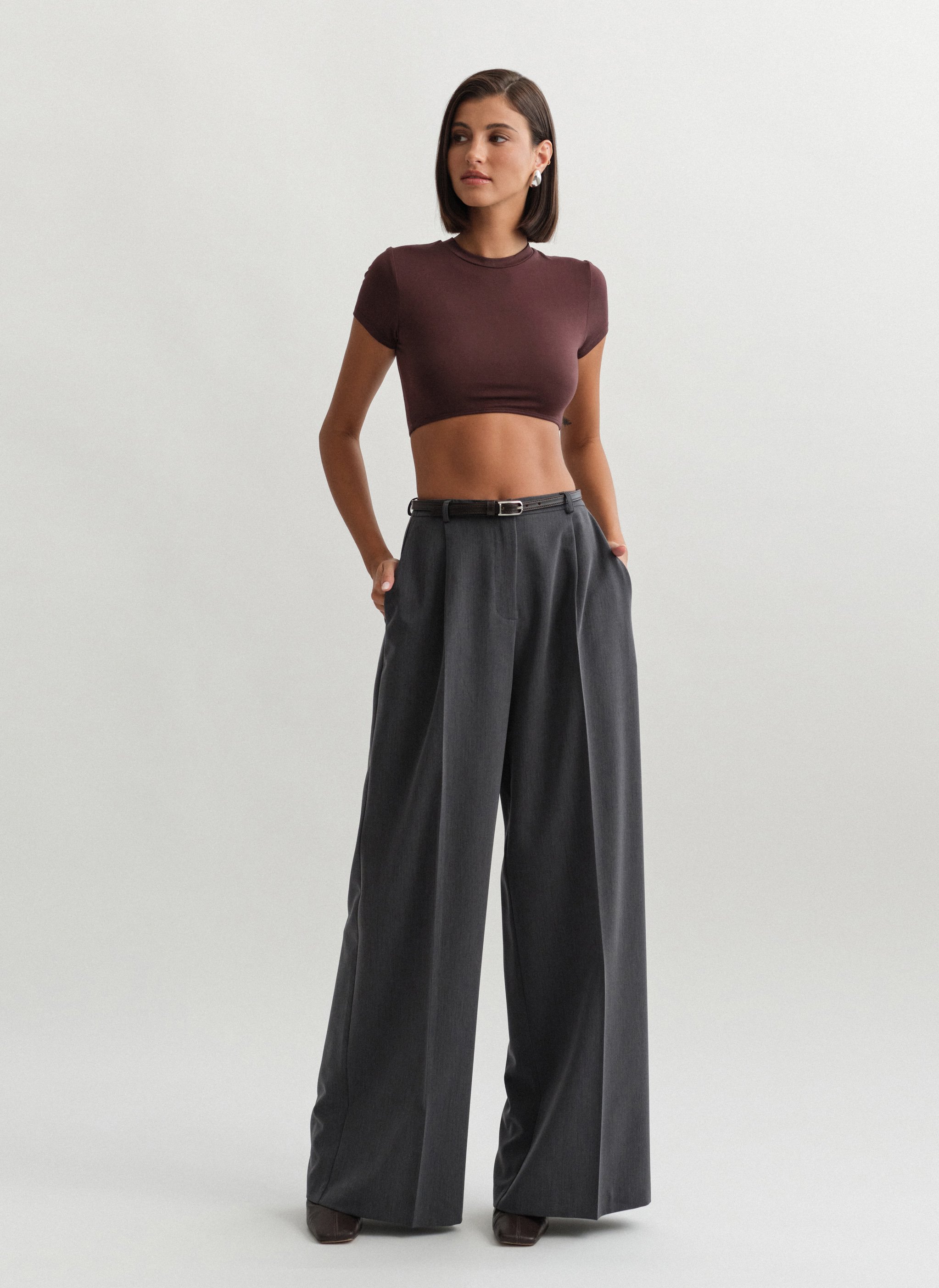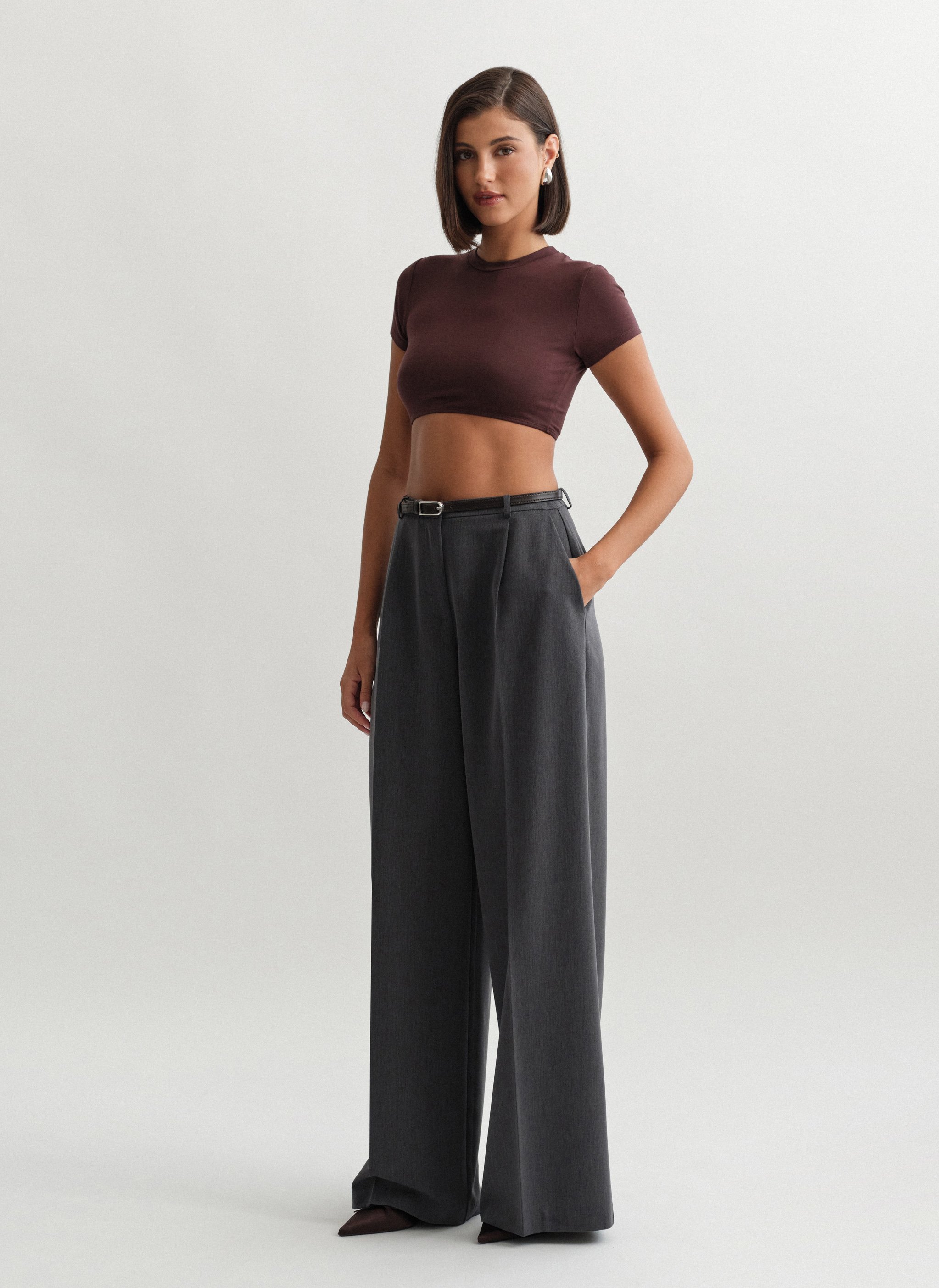 Ψηλόμεσο υφασμάτινο παντελόνι με πιέτες και λεπτό ζωνάκι.
