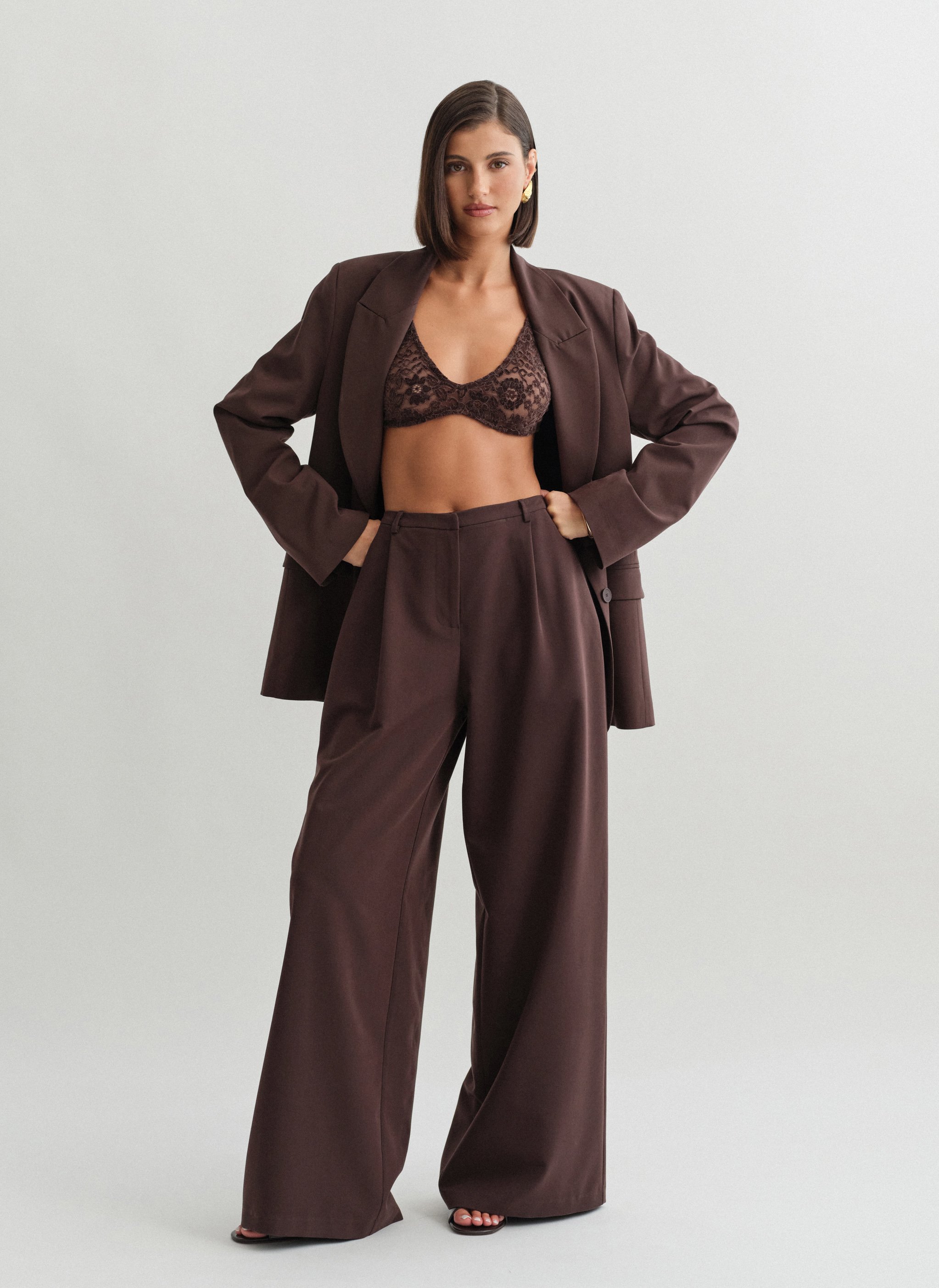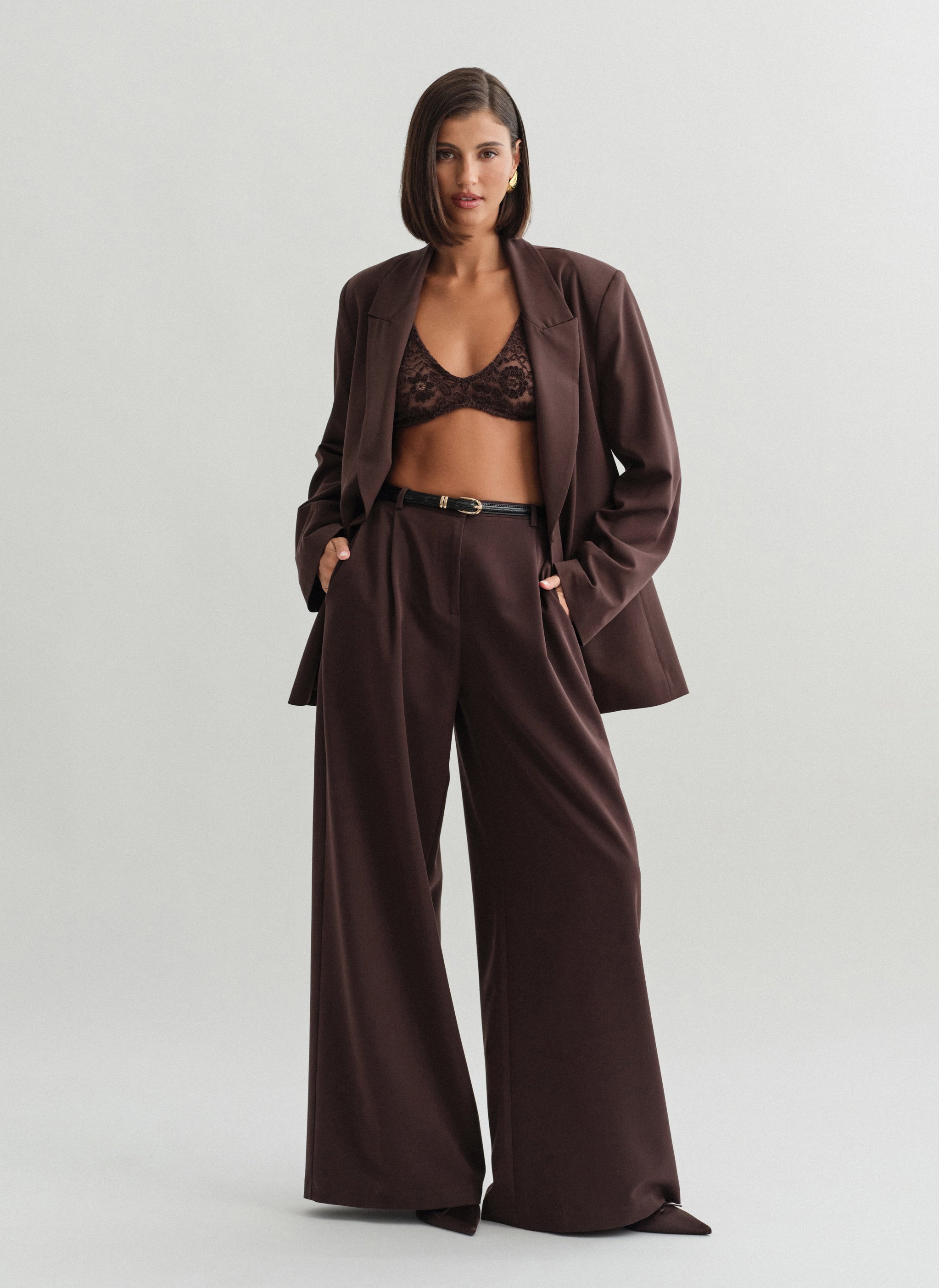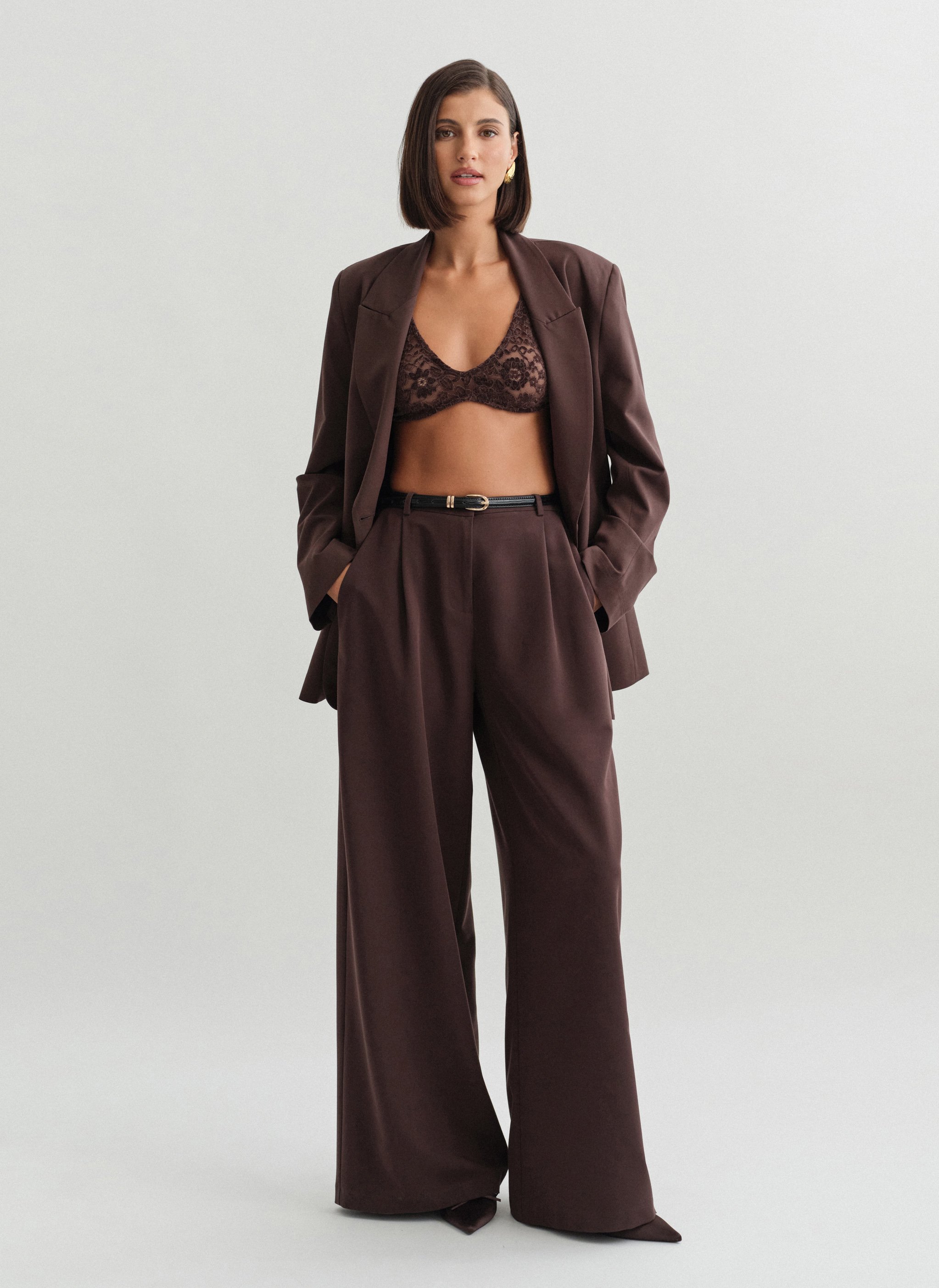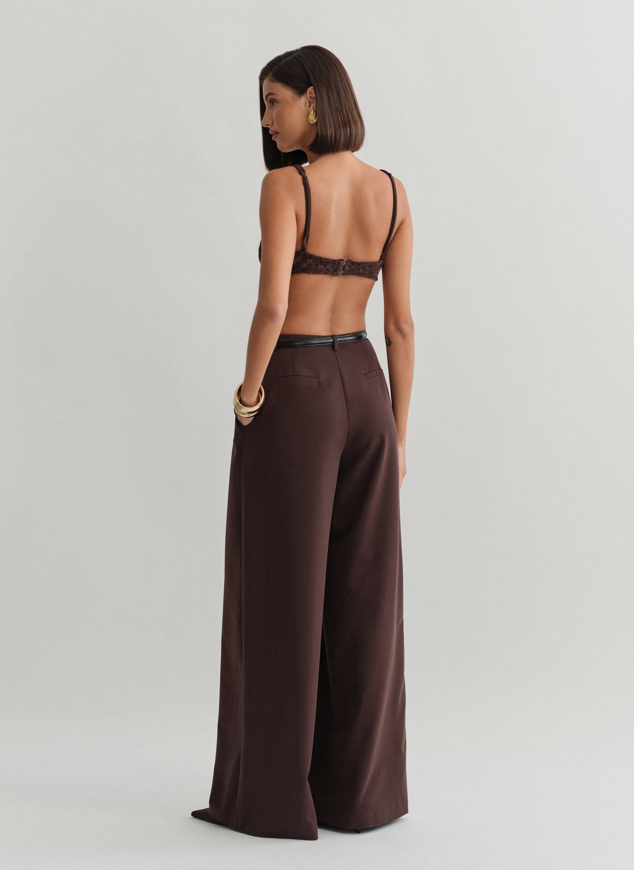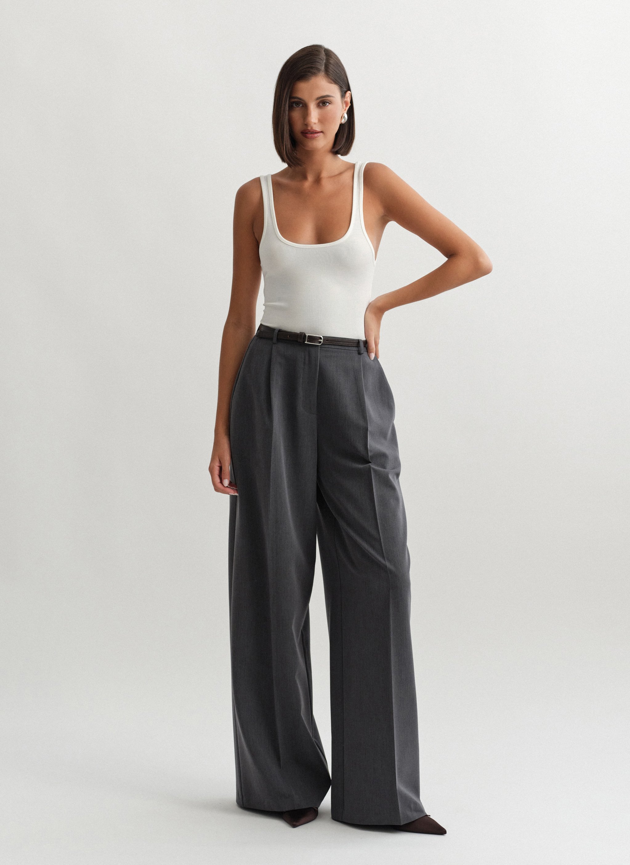 Ψηλόμεσο υφασμάτινο παντελόνι με πιέτες και λεπτό ζωνάκι.