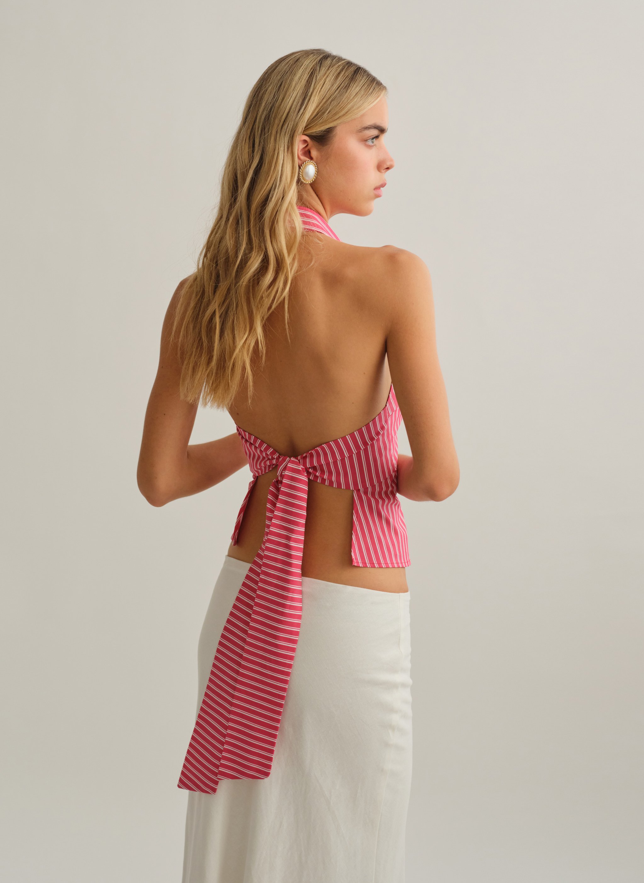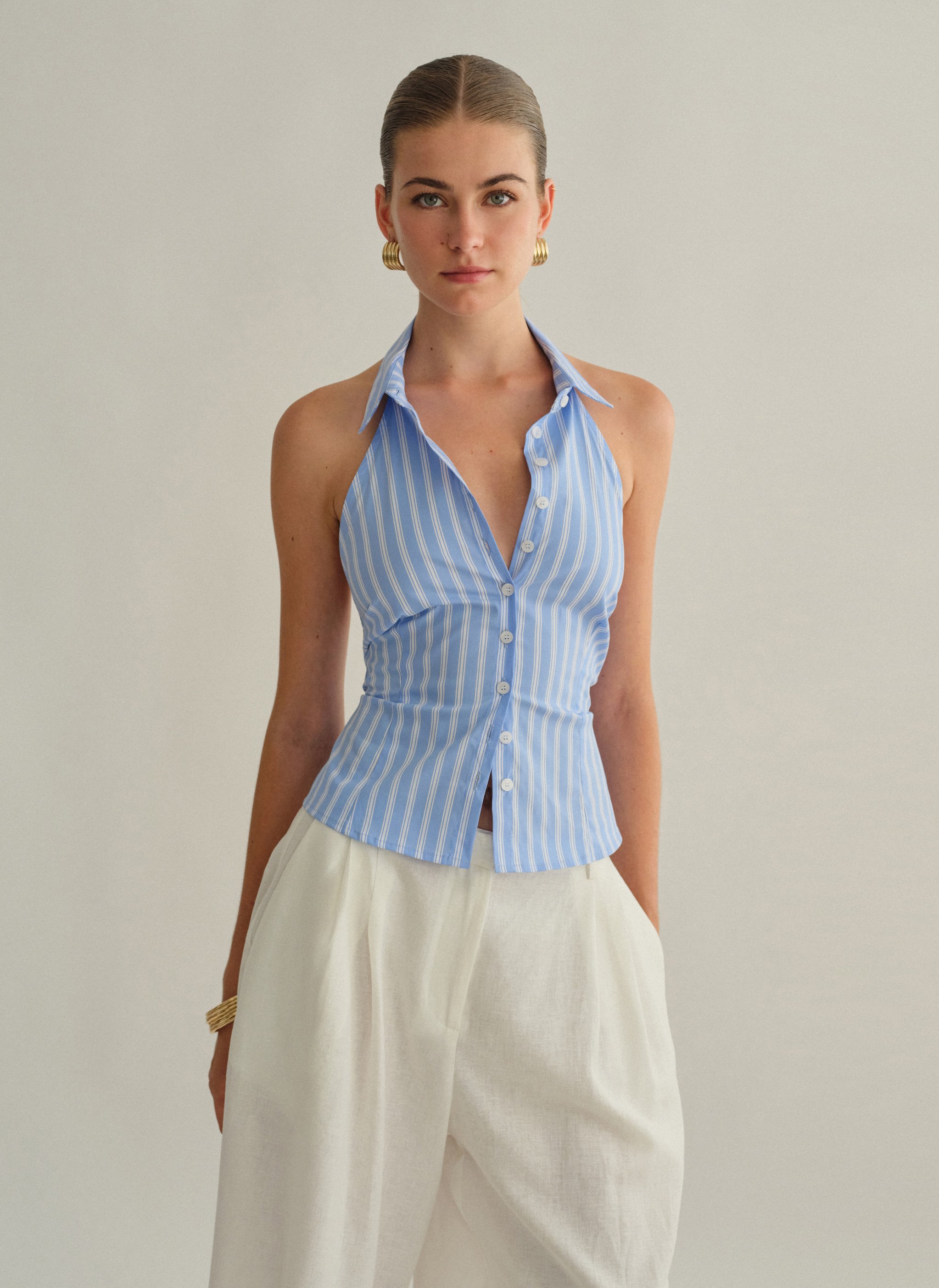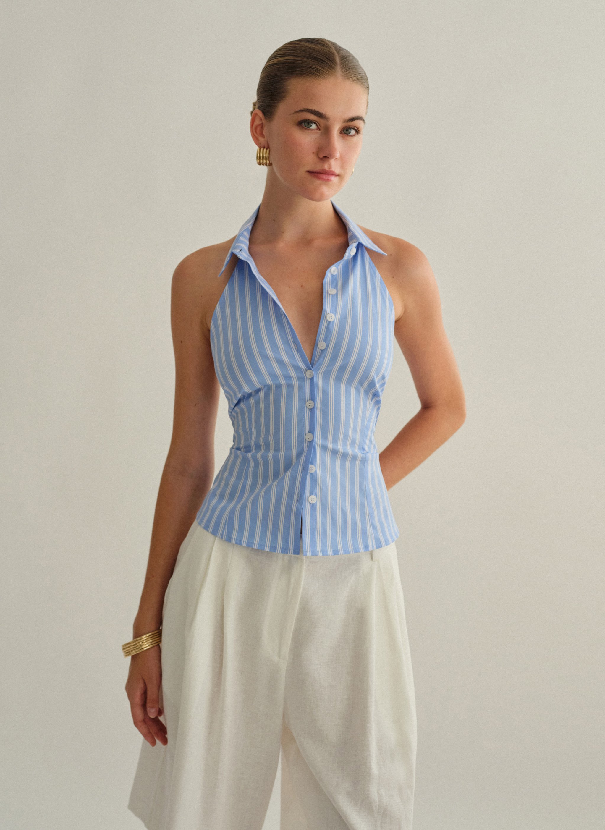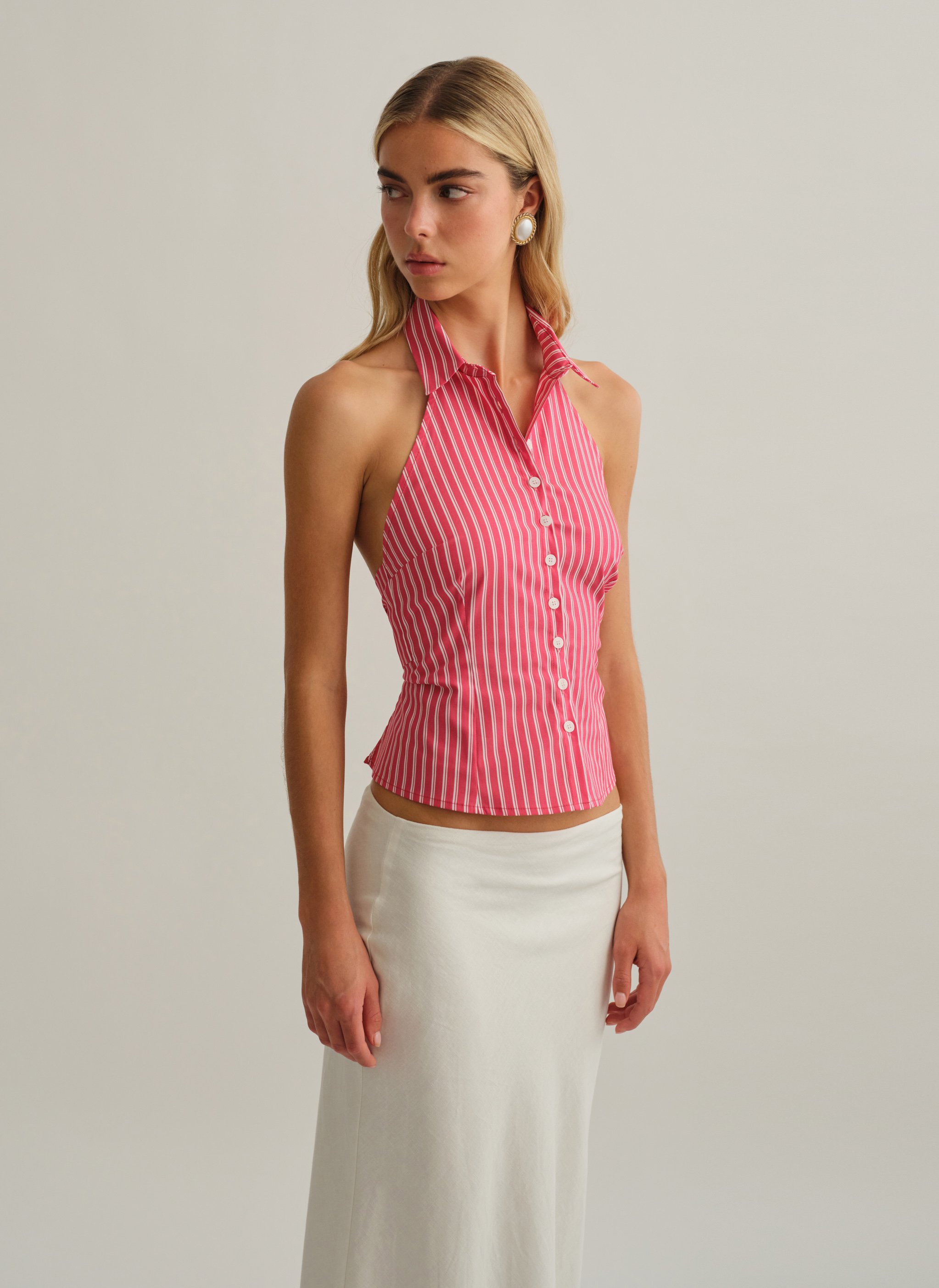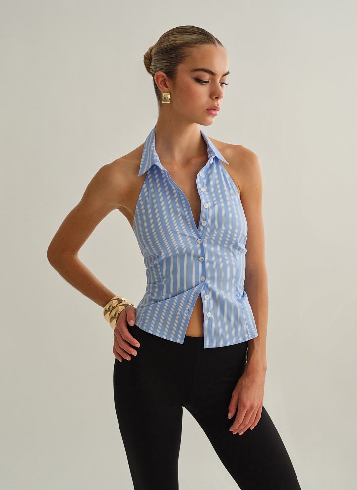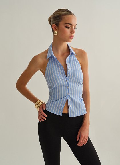 Ριγέ halter γιλέκο με γιακά.