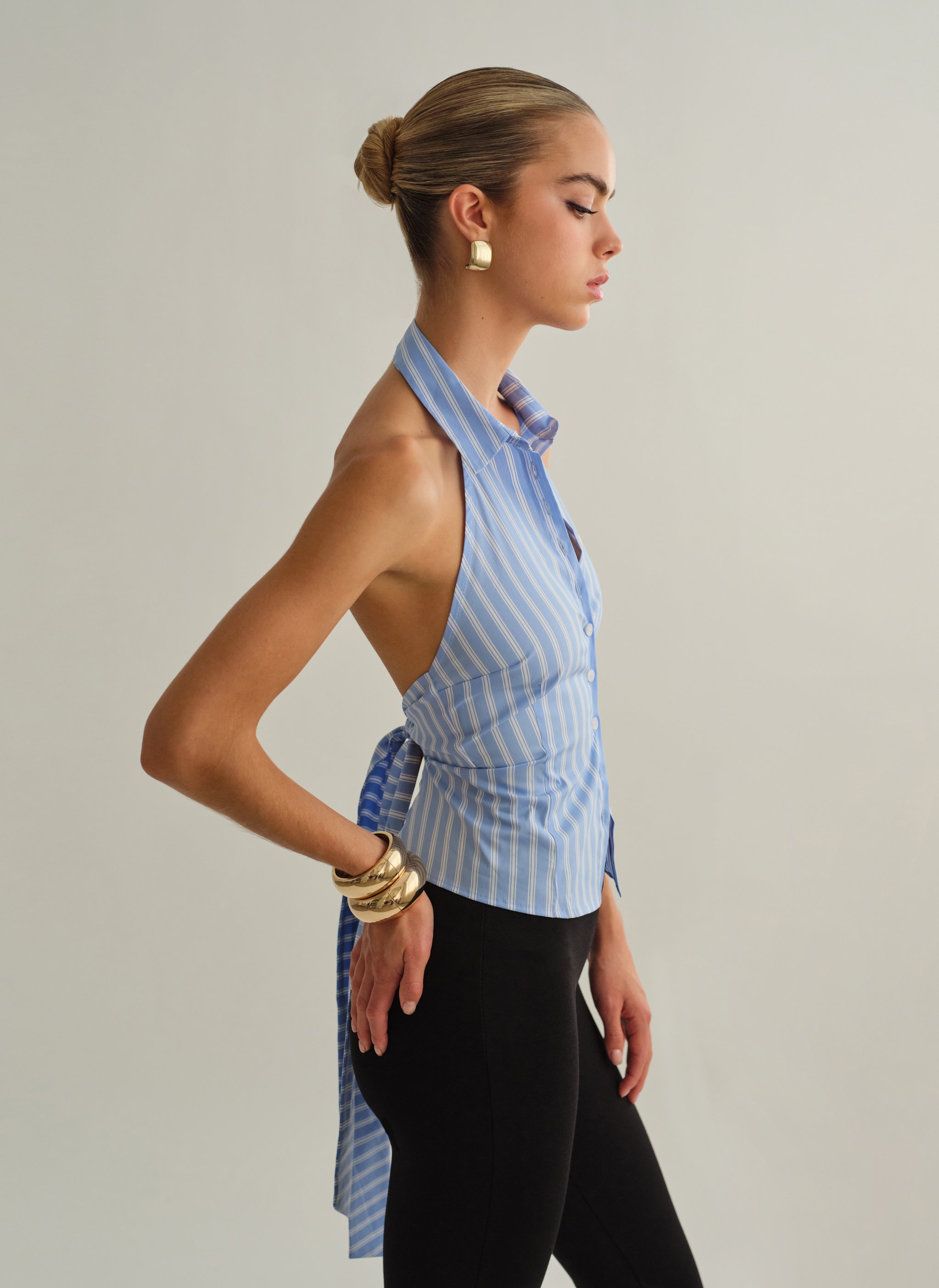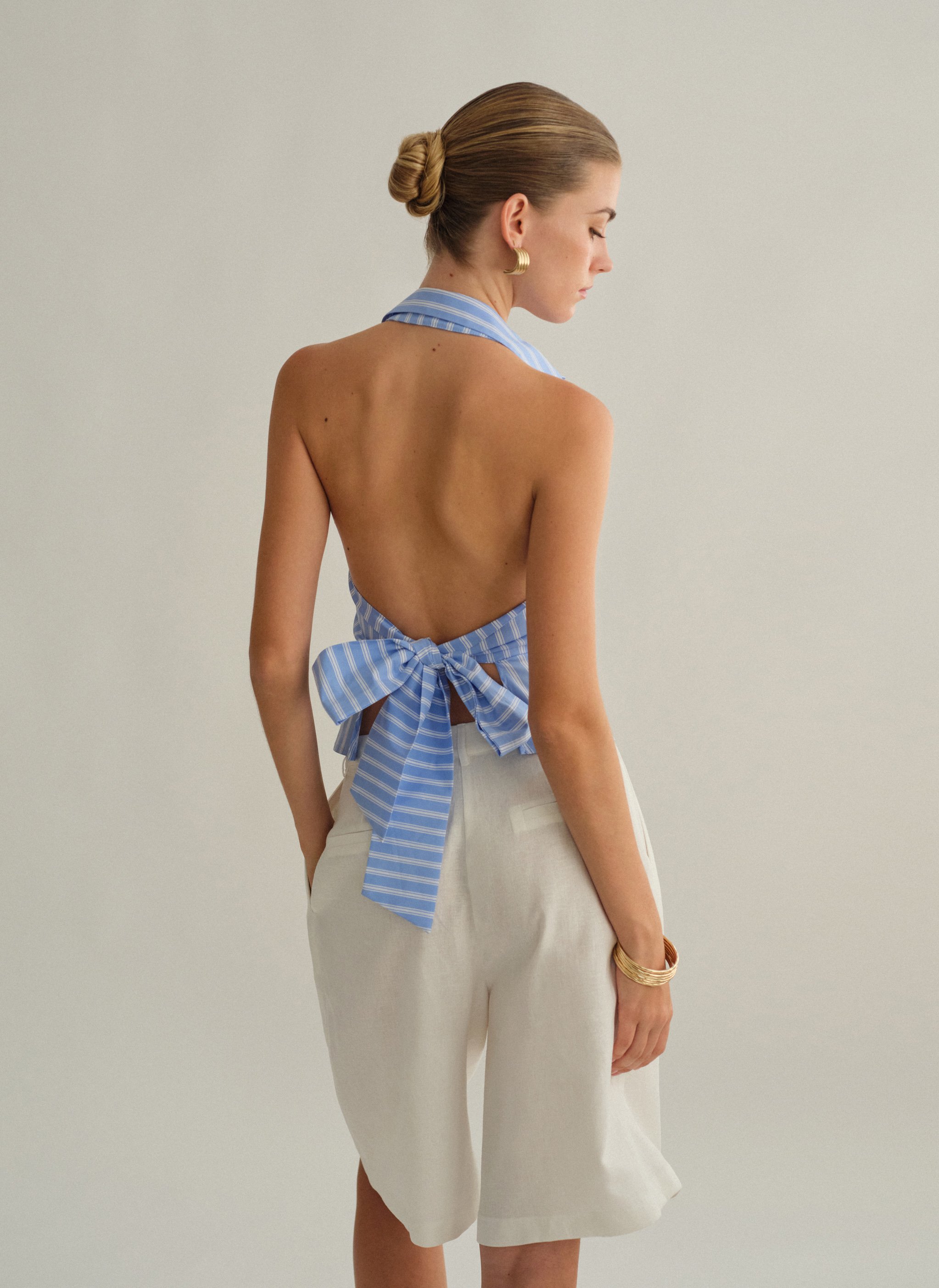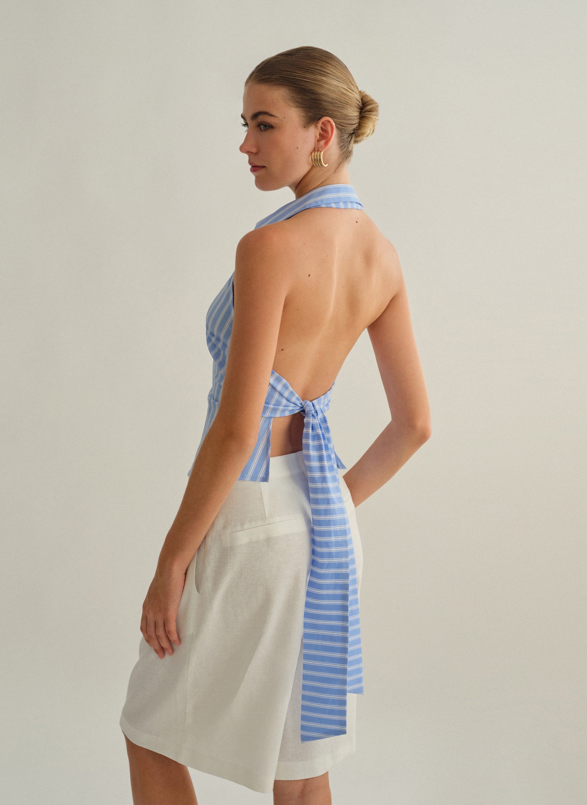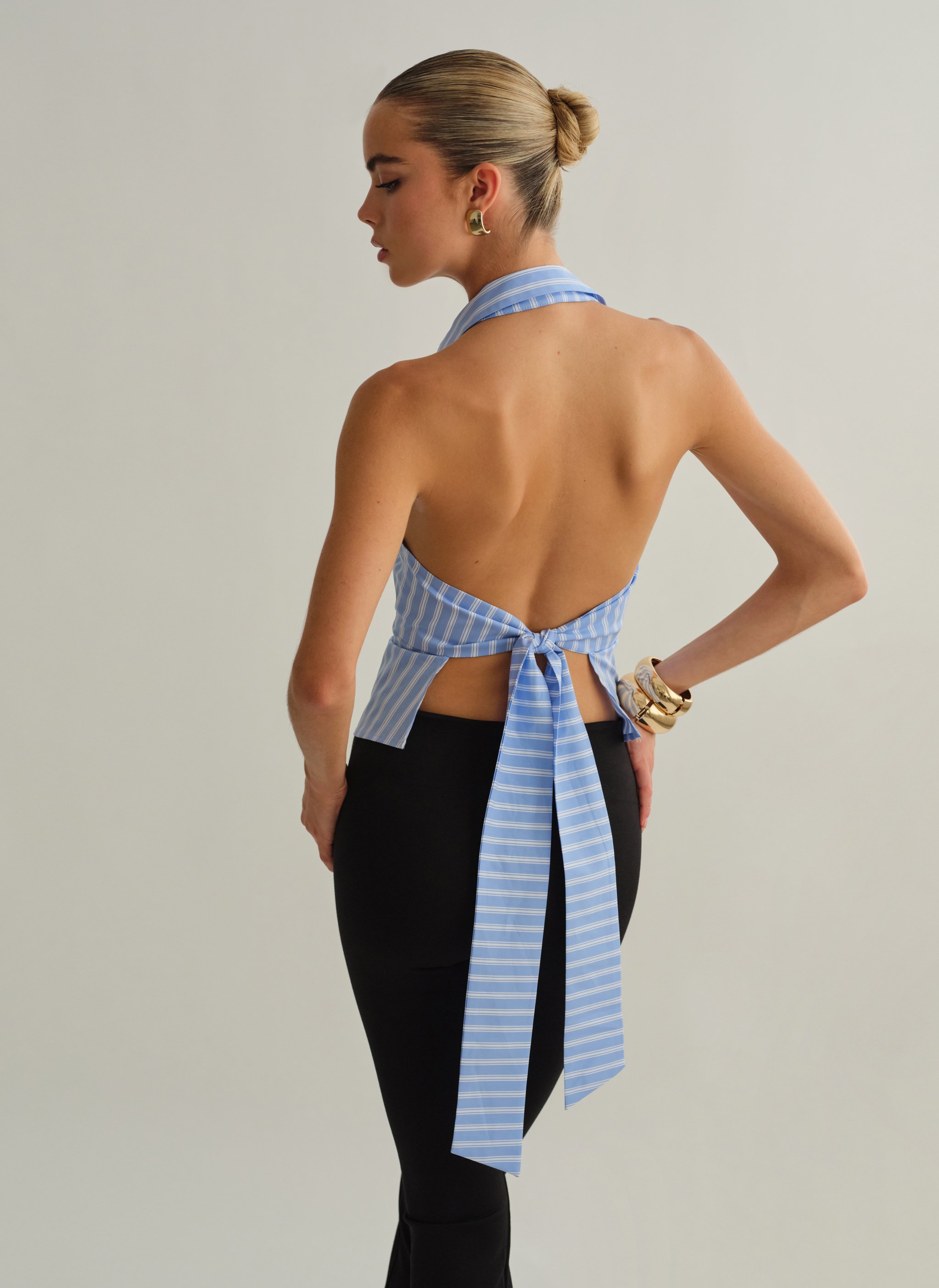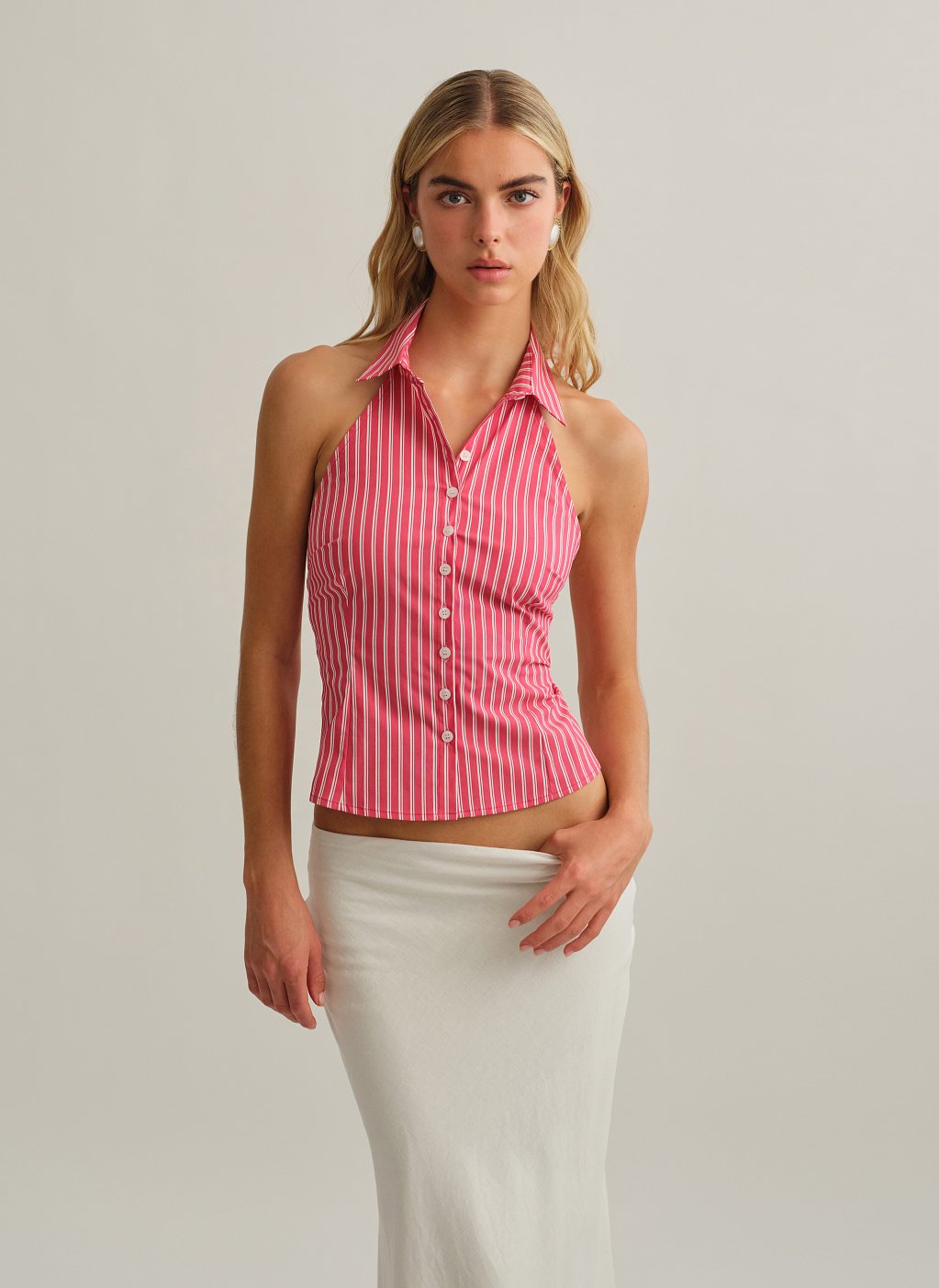 Ριγέ halter γιλέκο με γιακά.