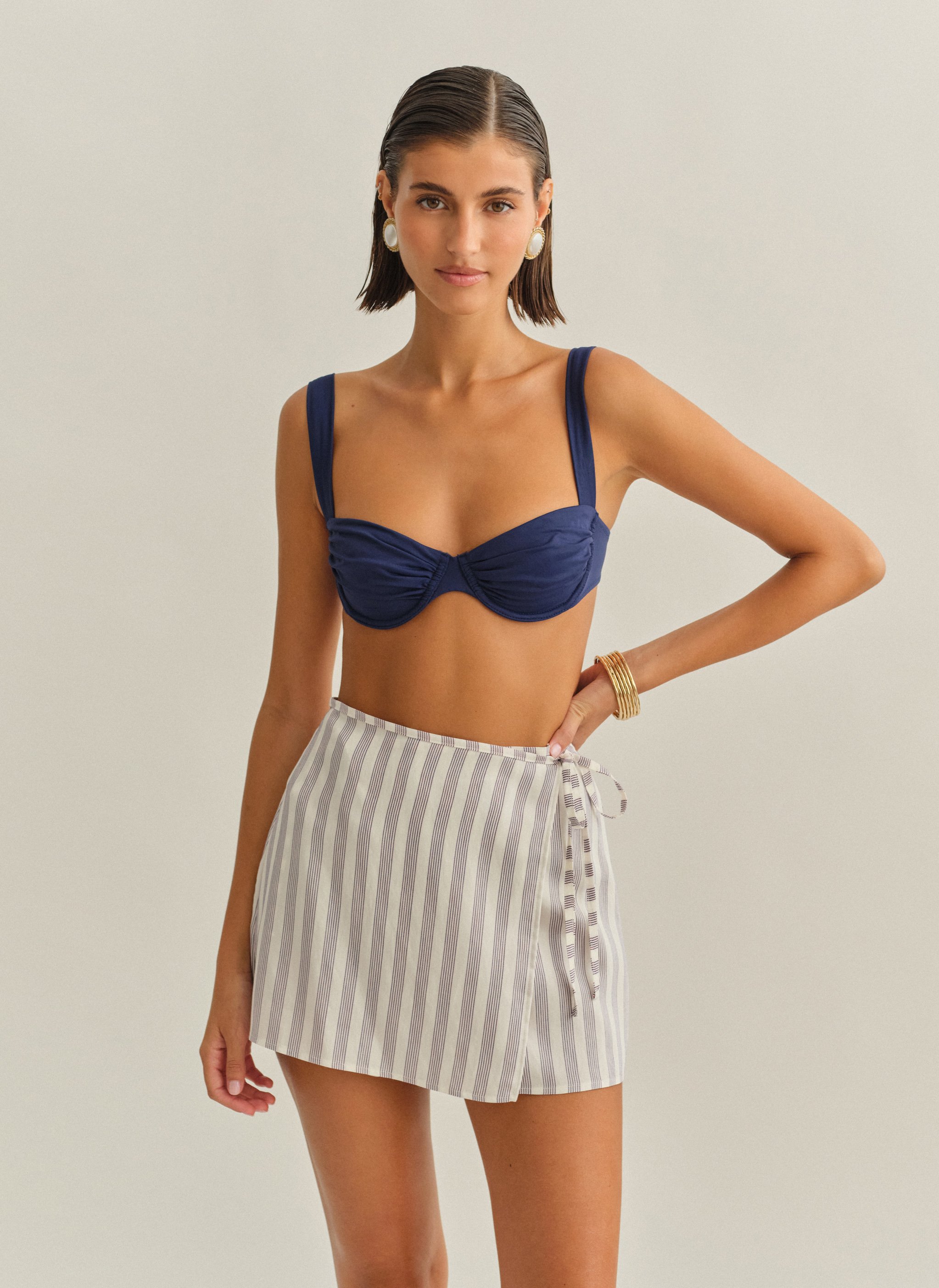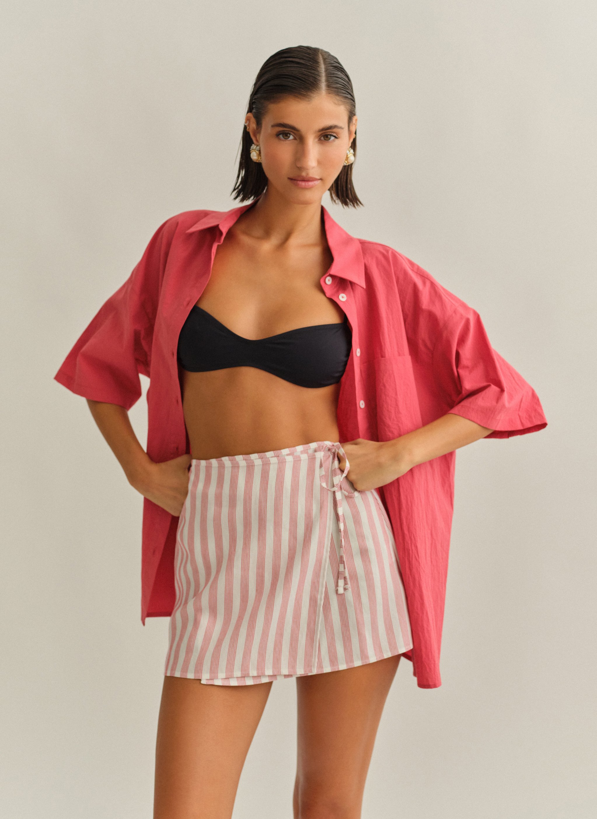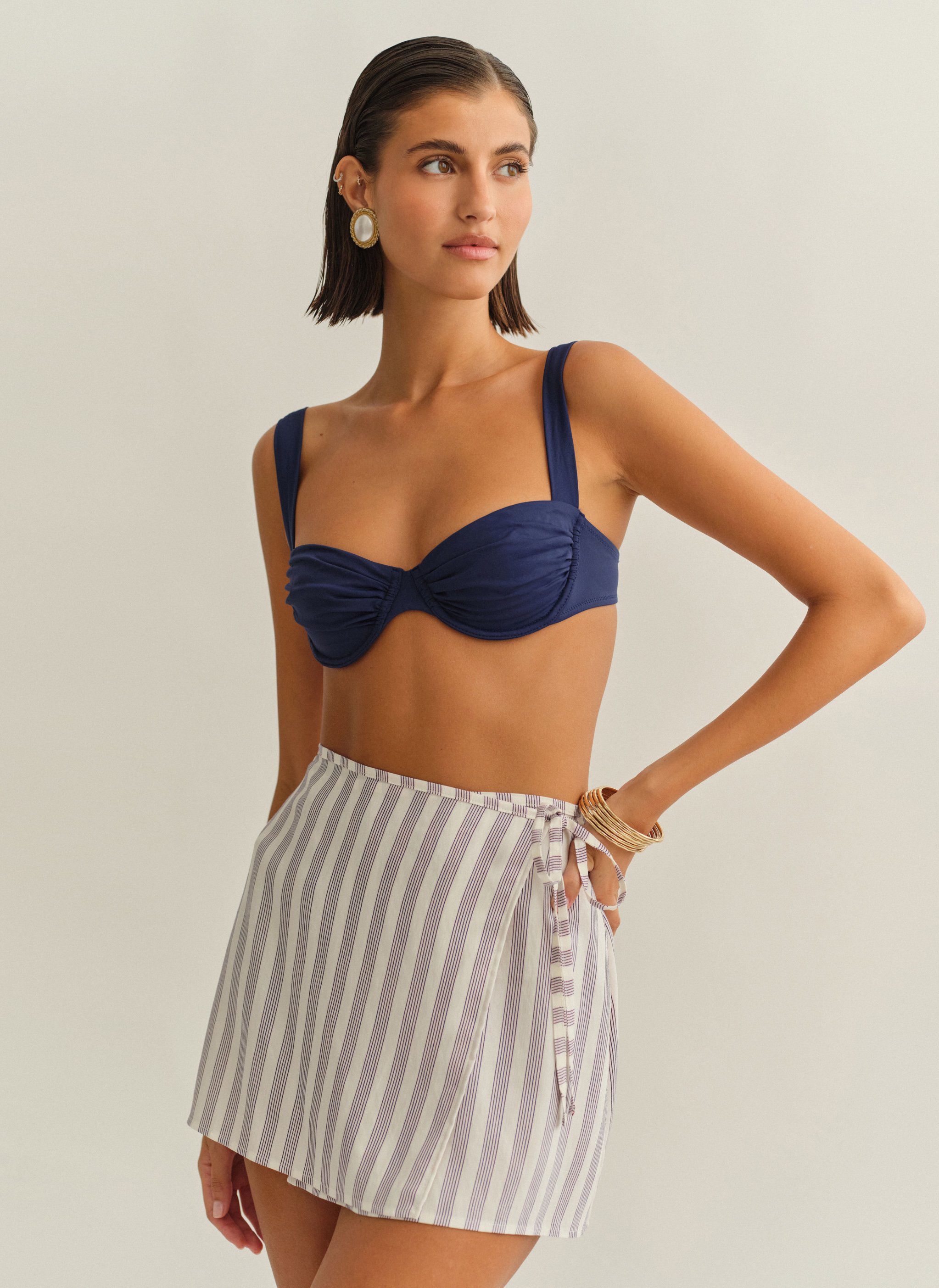 Ριγέ παρεό με δέσιμο και εσωτερική χρωματική αντίθεση.
