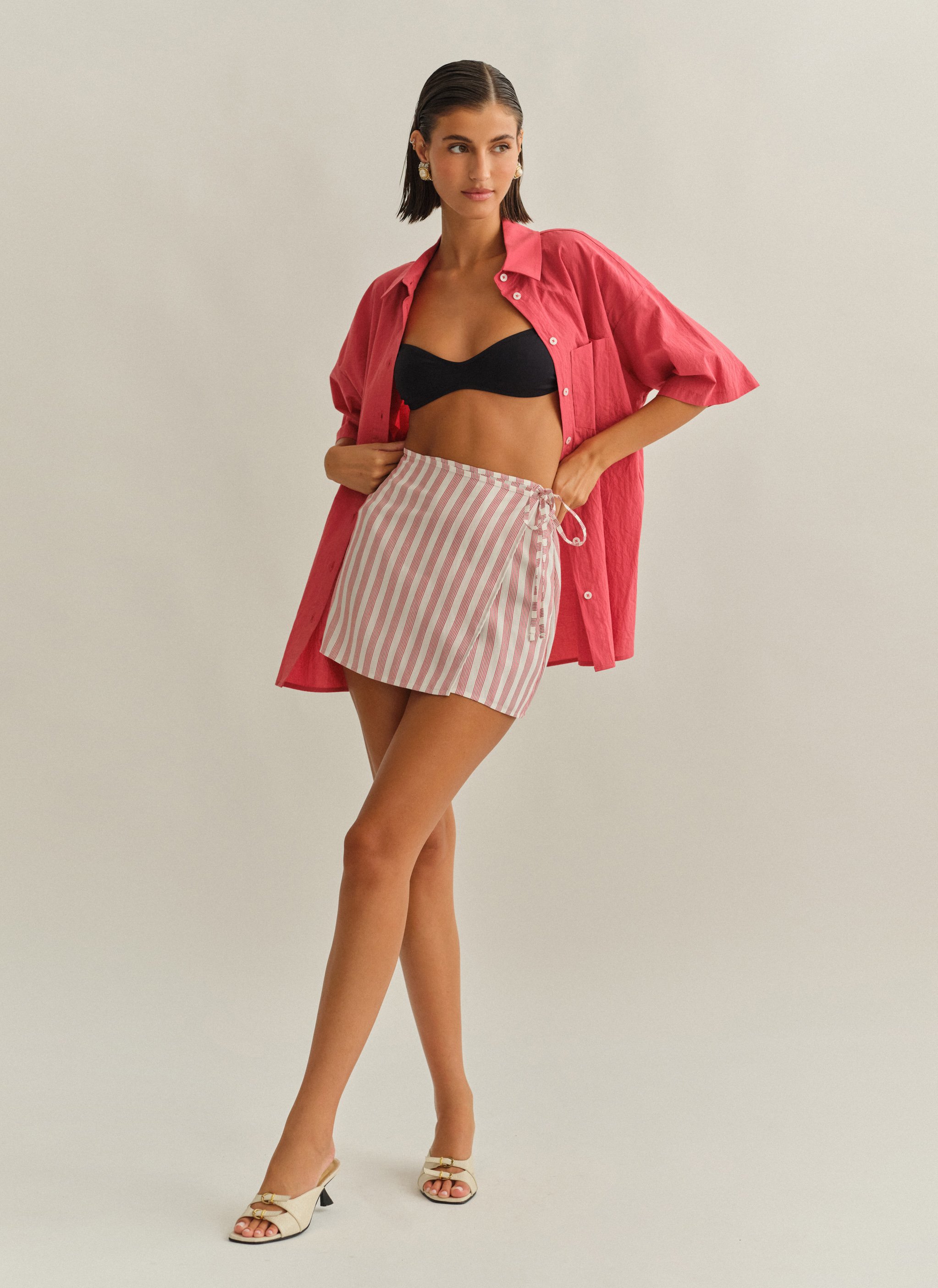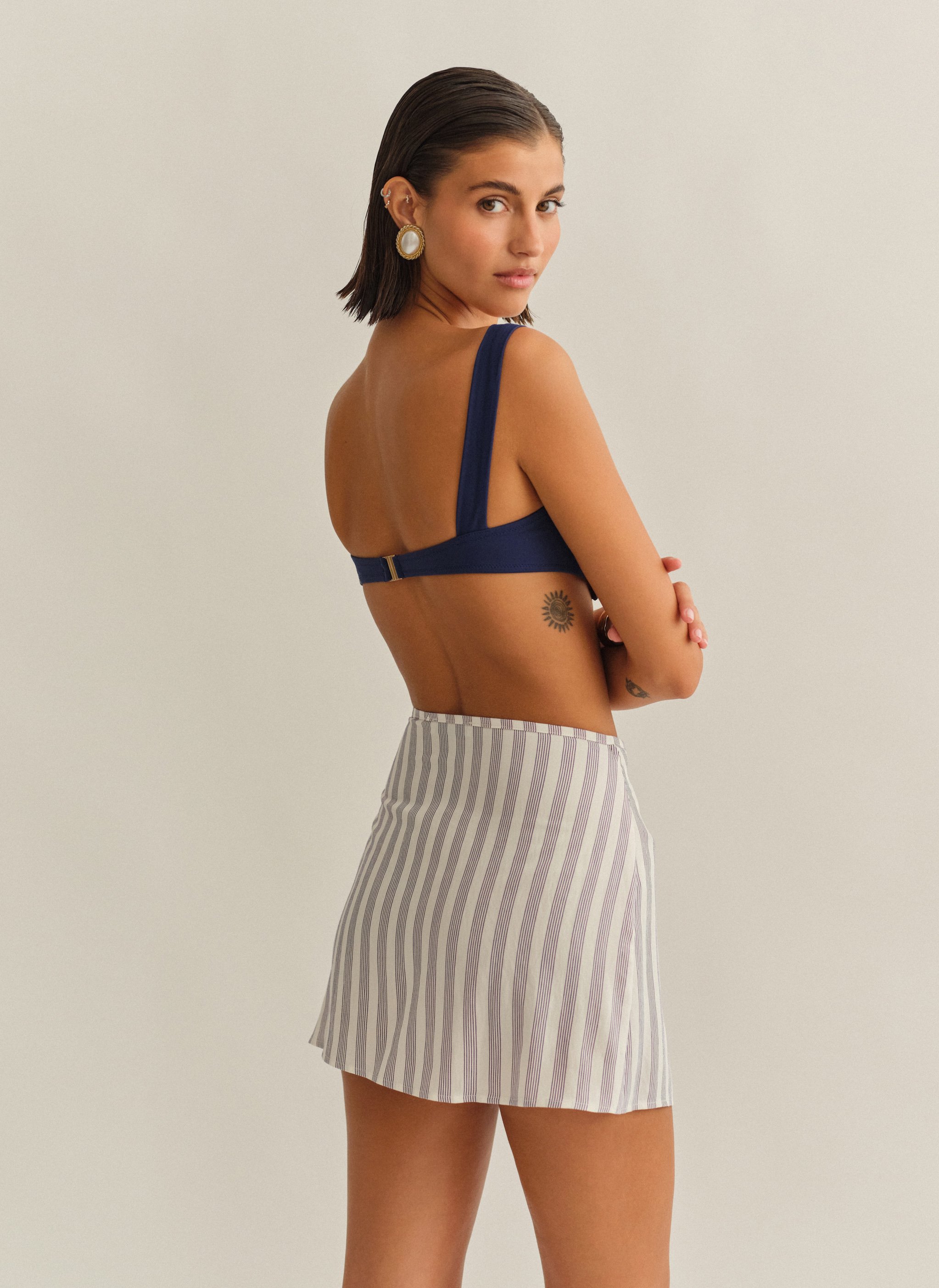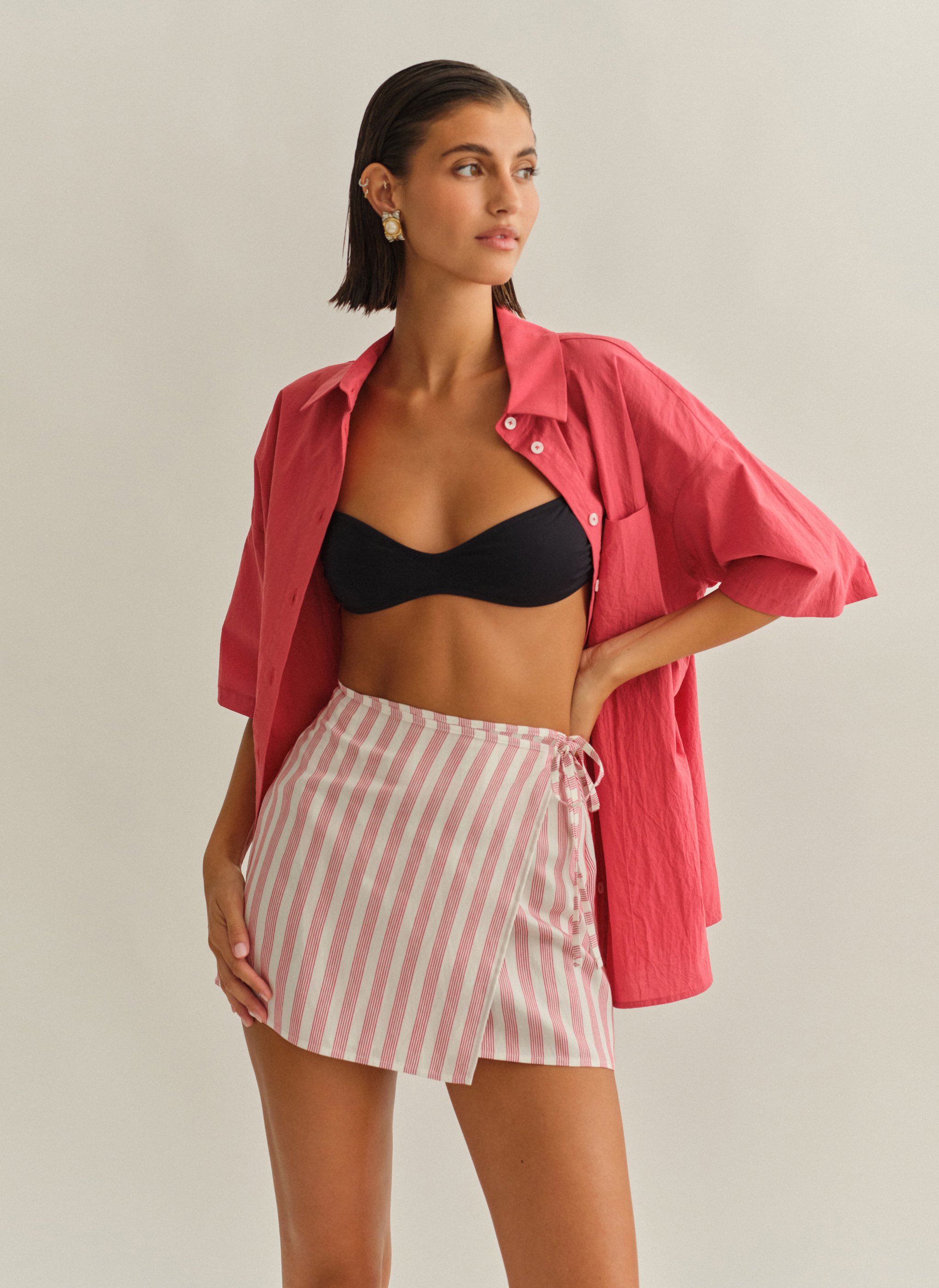 Ριγέ παρεό με δέσιμο και εσωτερική χρωματική αντίθεση.