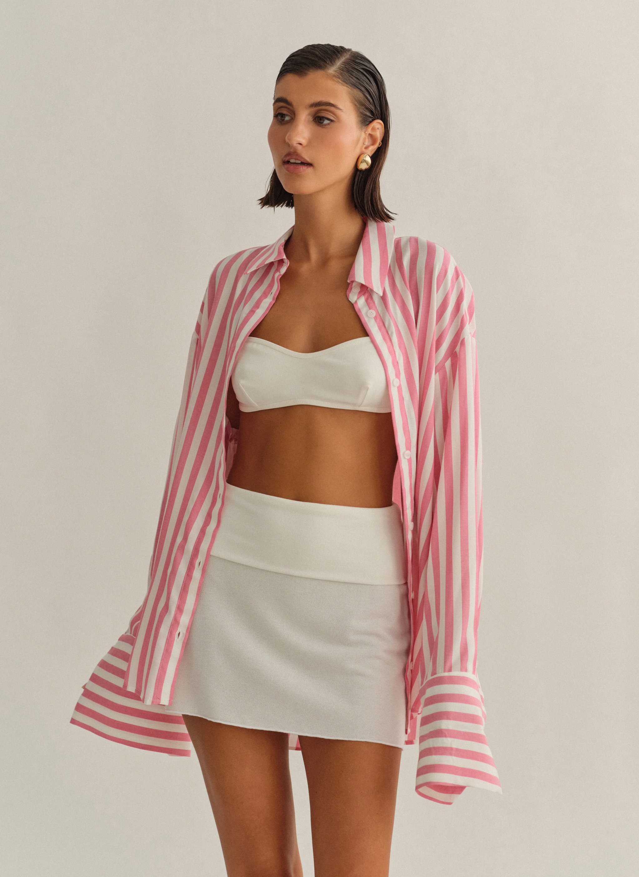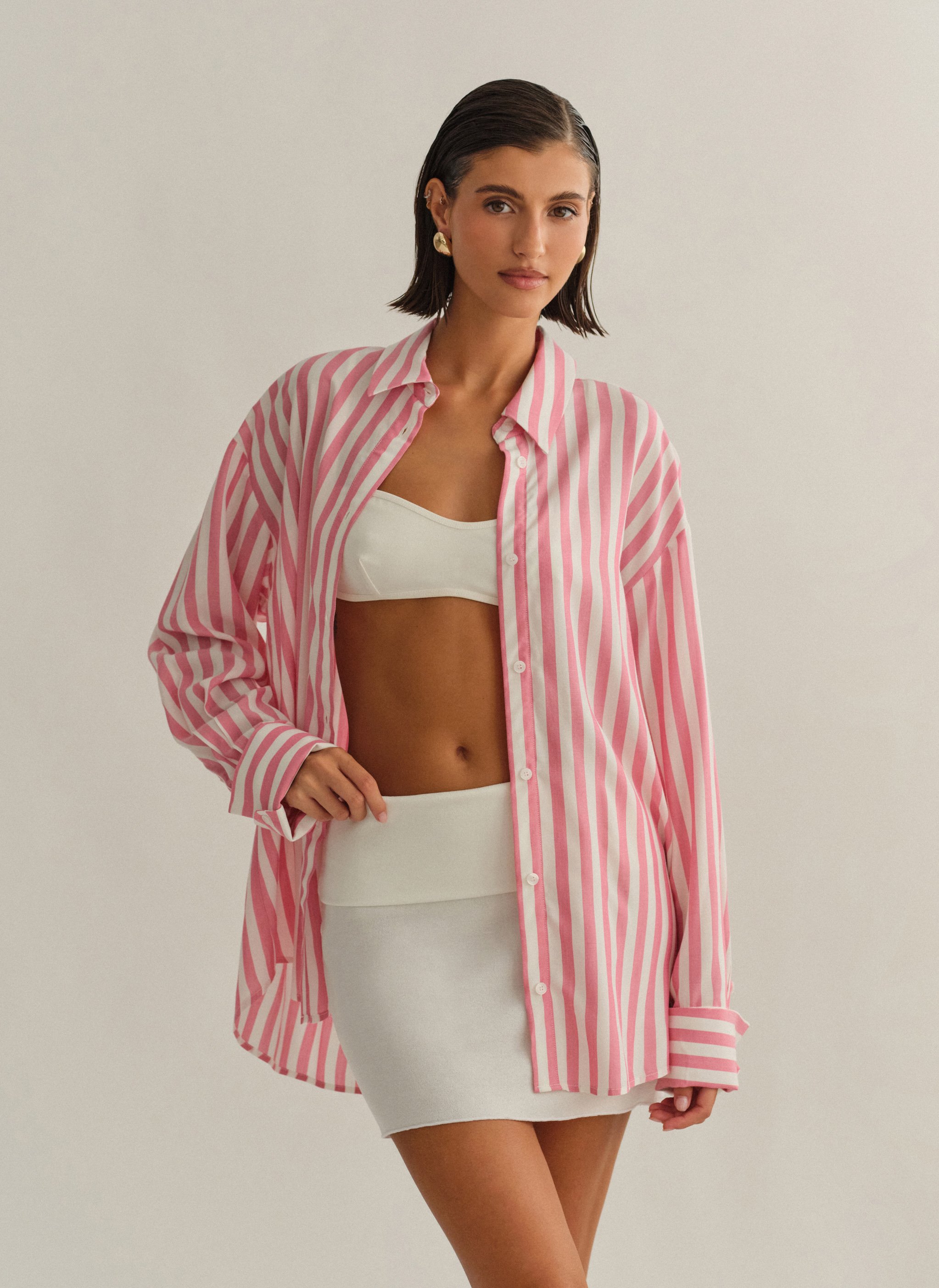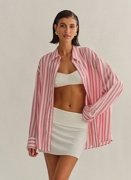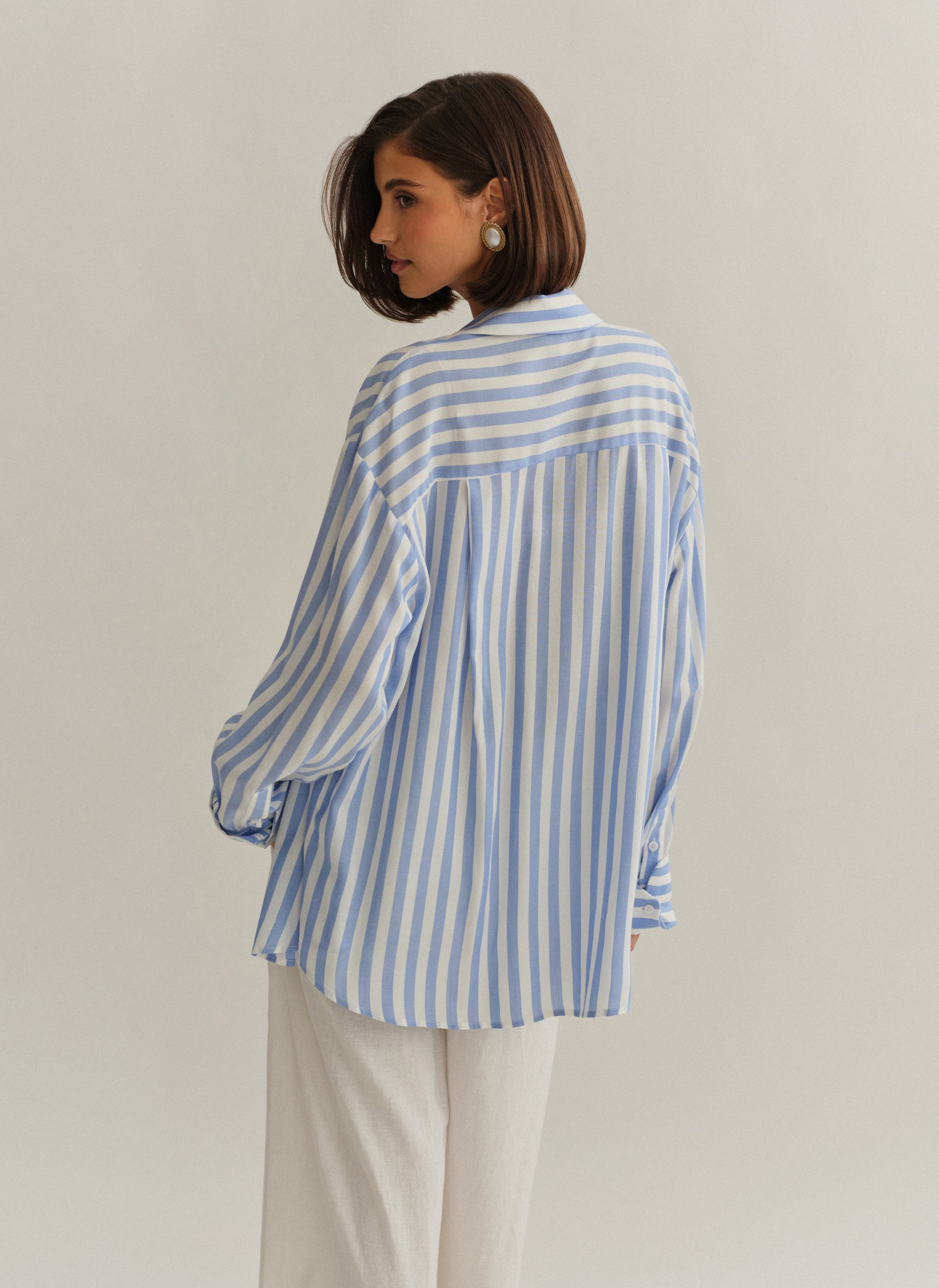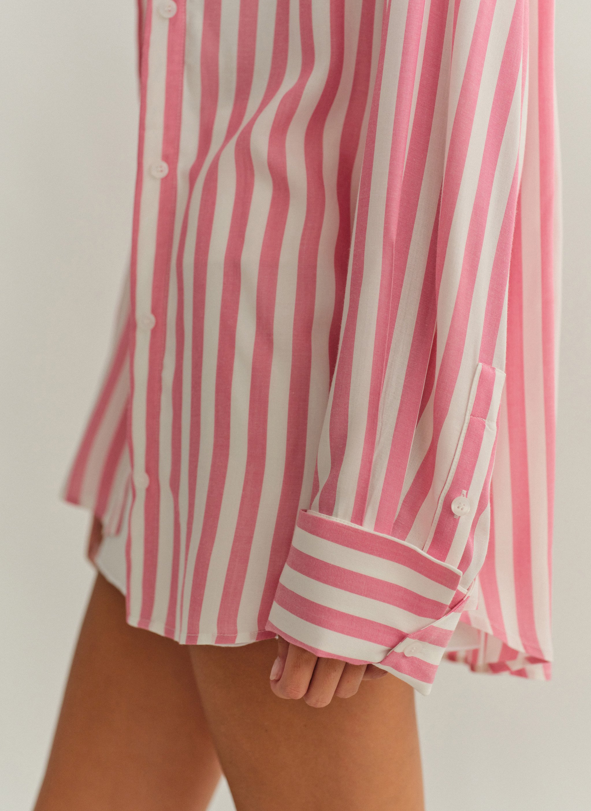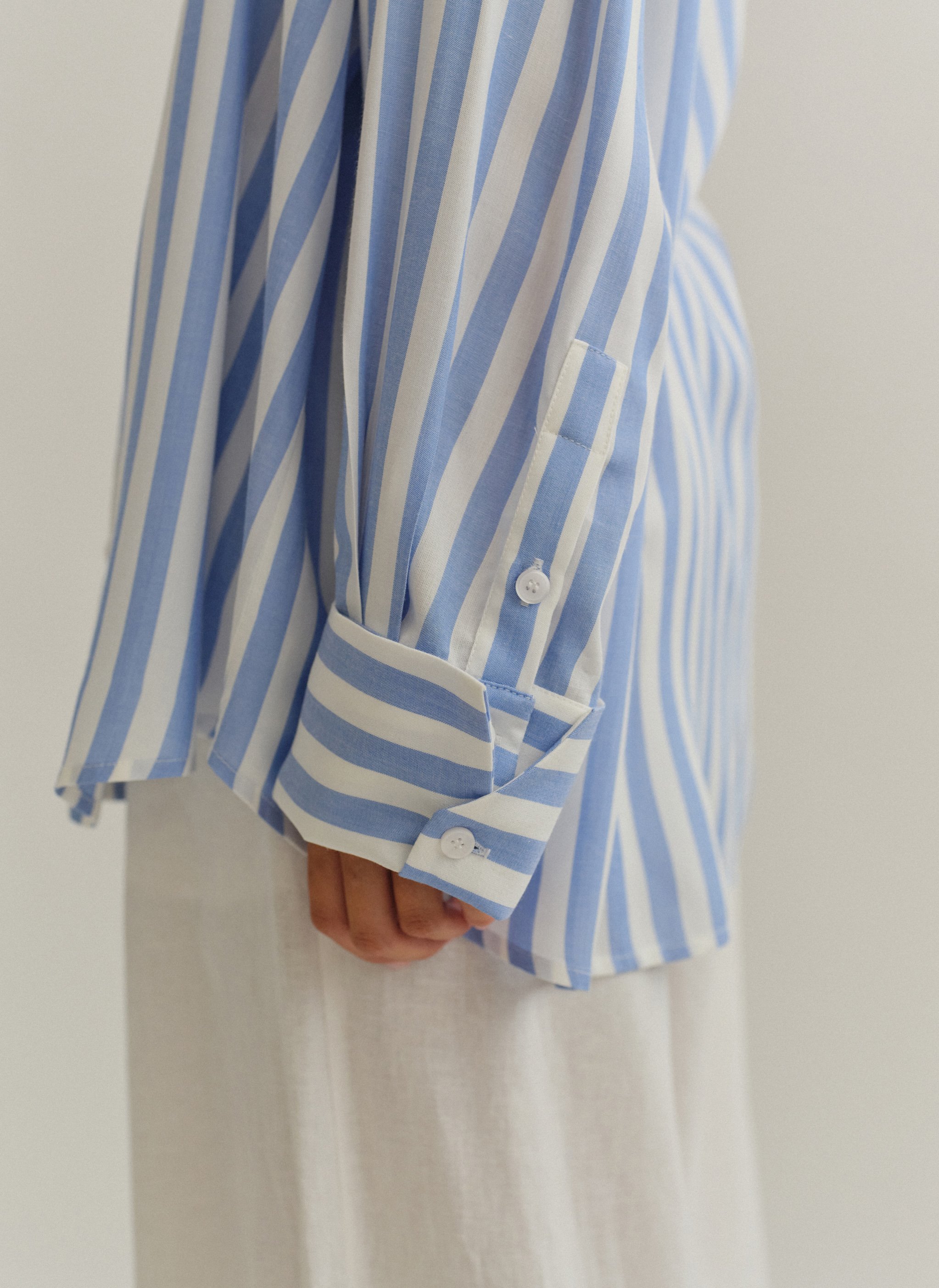 Oversized ριγέ πουκάμισο ποπλίνα με λεπτομέρεια δίπλωμα στη μανσέτα.