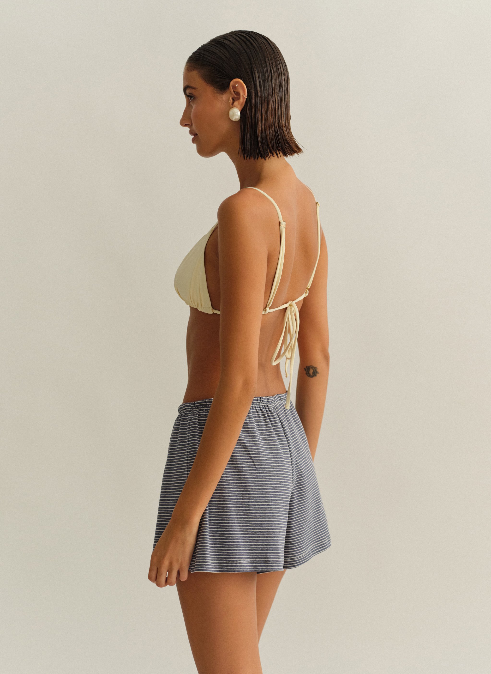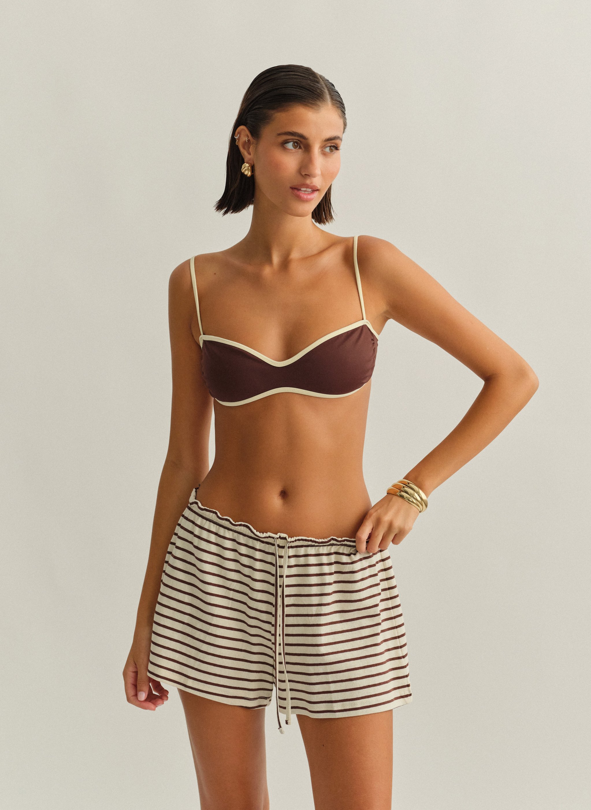 Βαμβακερό ριγέ σορτς με κορδόνι και λάστιχο στην μέση.