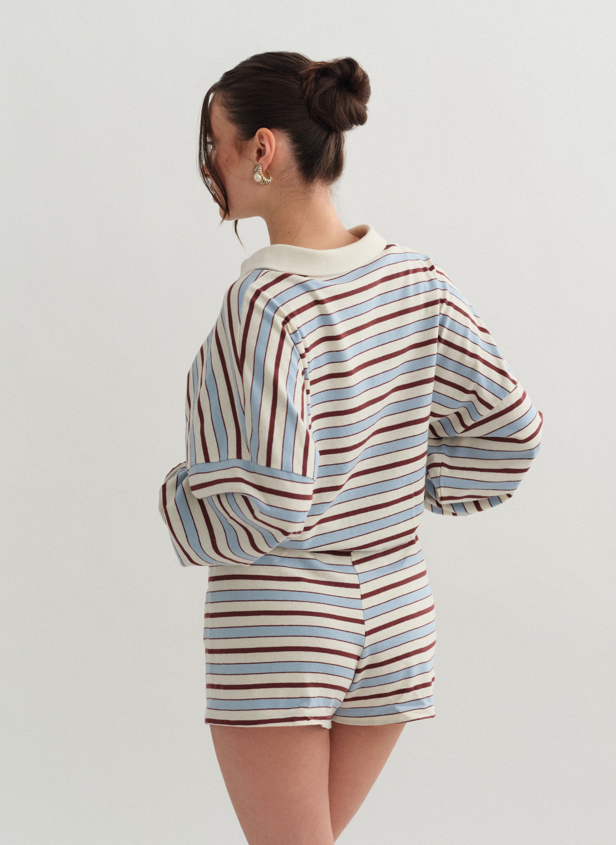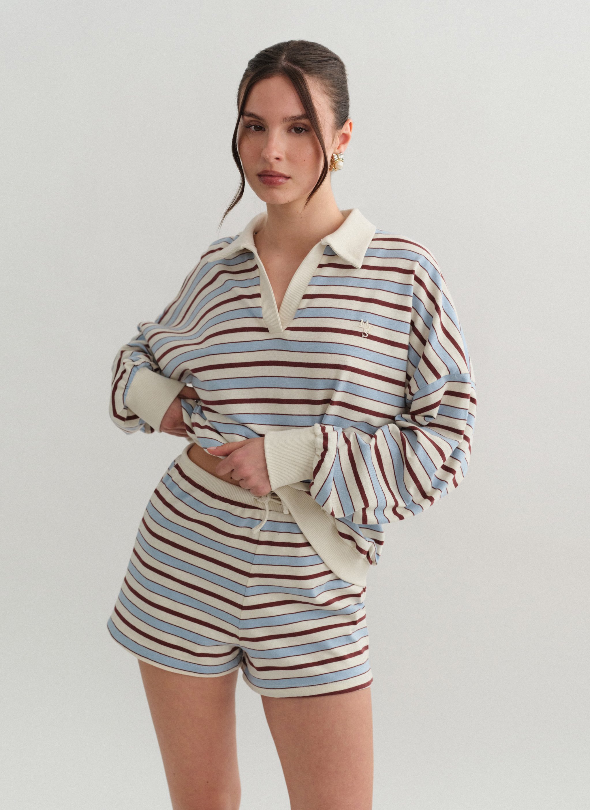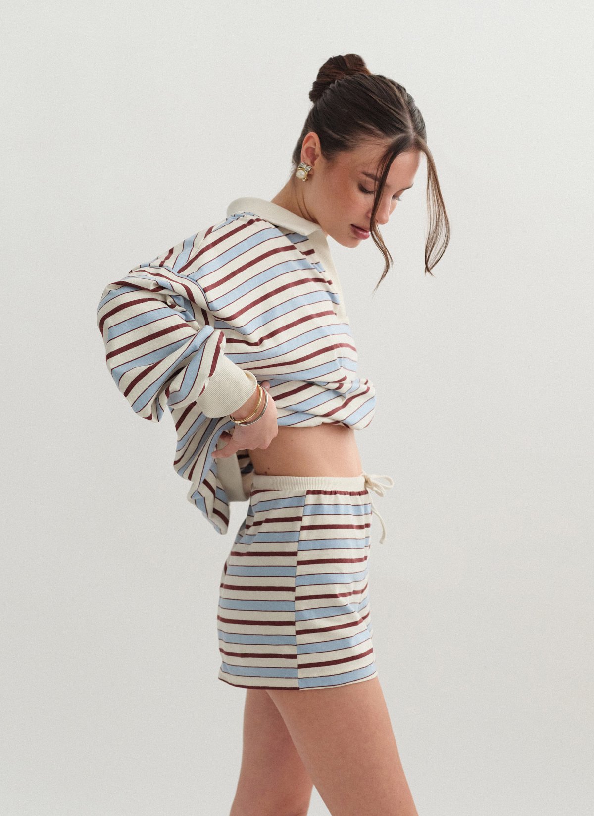 Βαμβακερό ριγέ σορτς με κορδόνι και ριπ λάστιχο στην μέση.