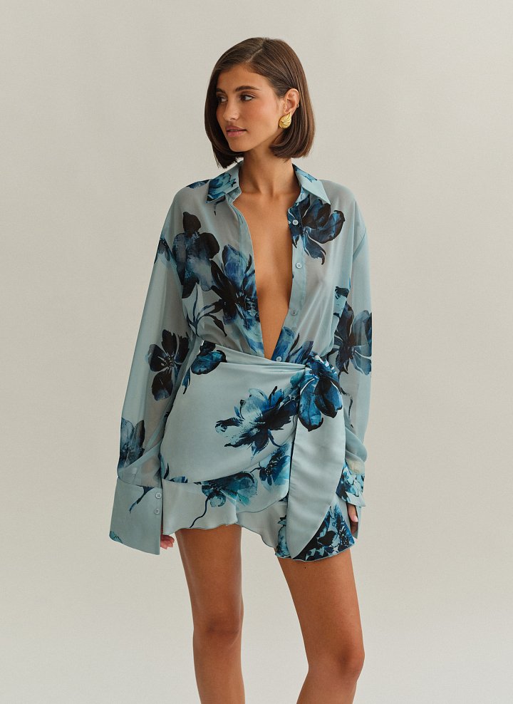 Σατέν εμπριμέ μίνι φούστα φάκελος με δέσιμο στο πλάι