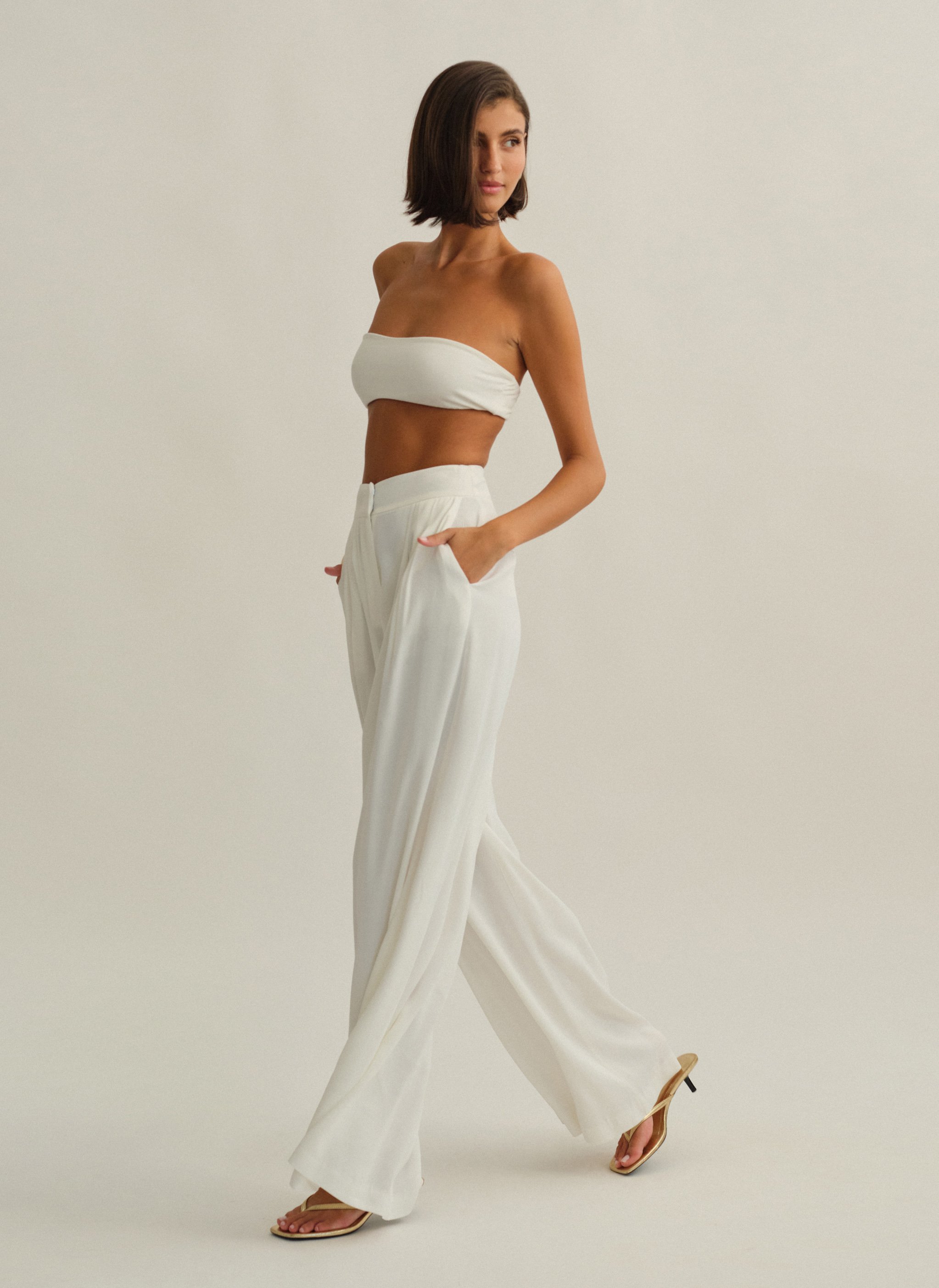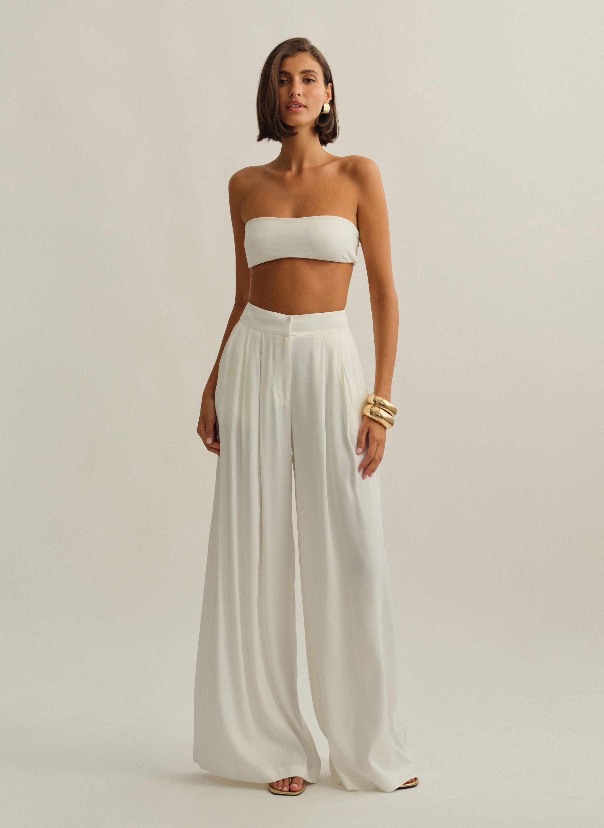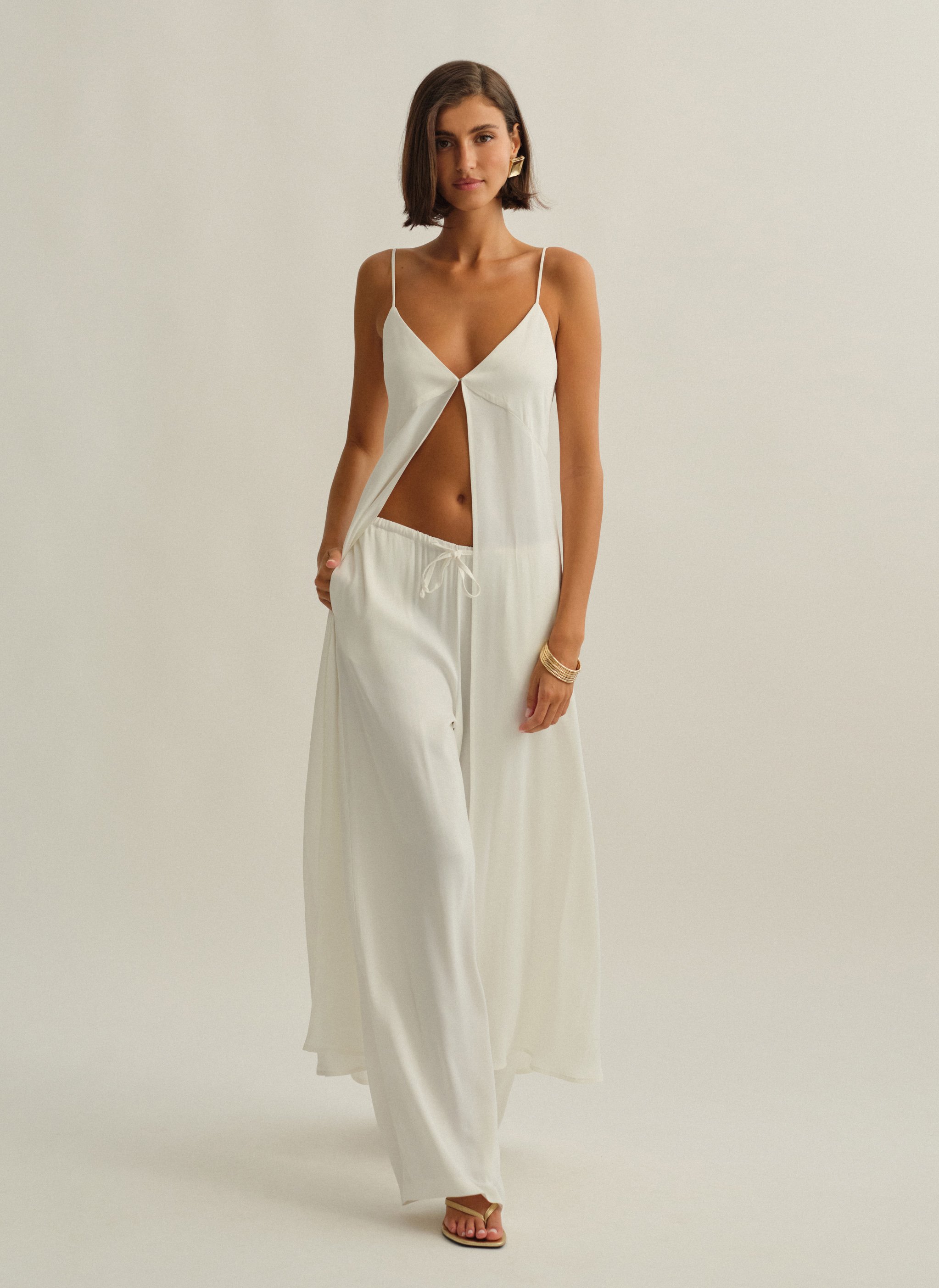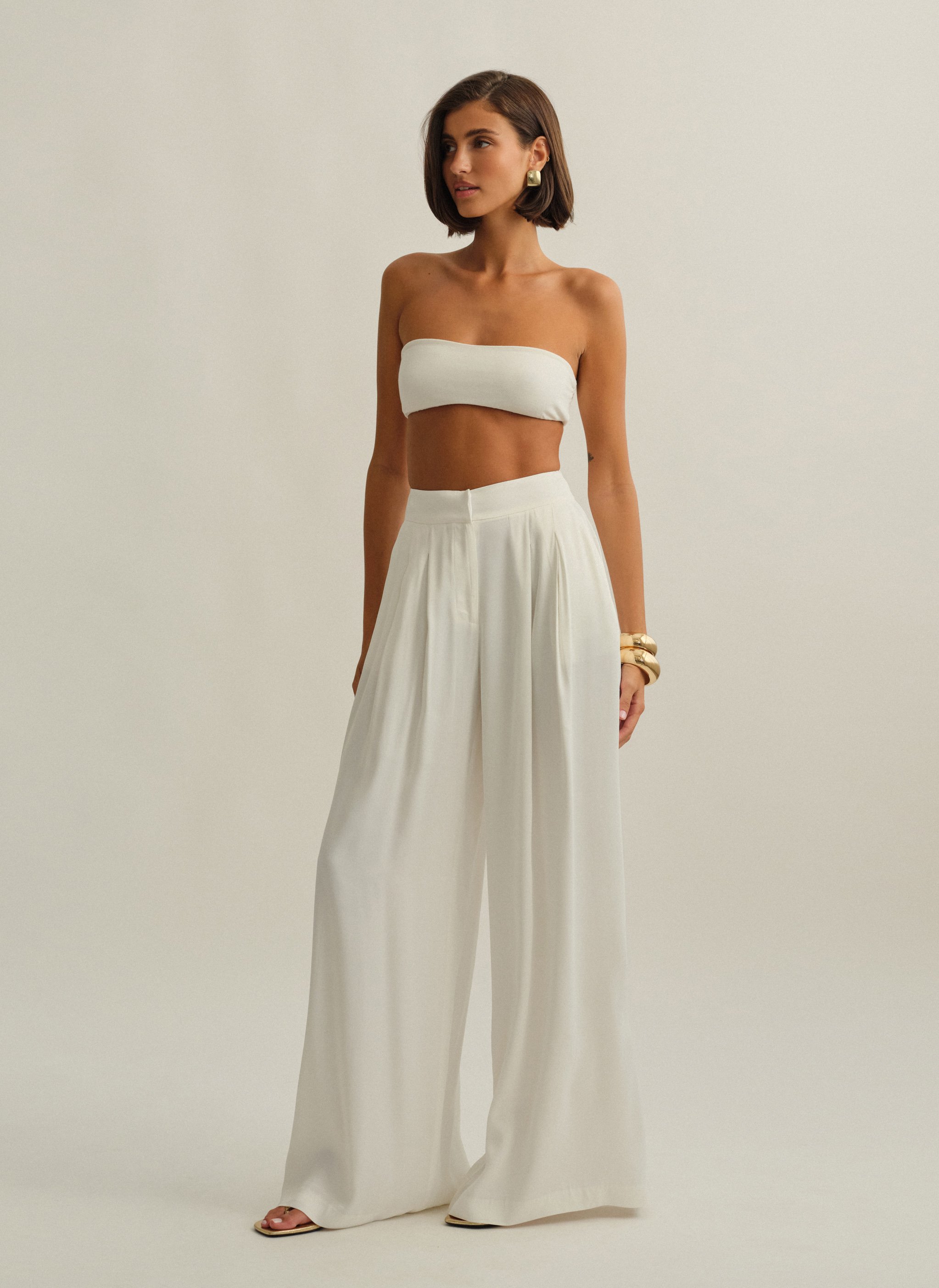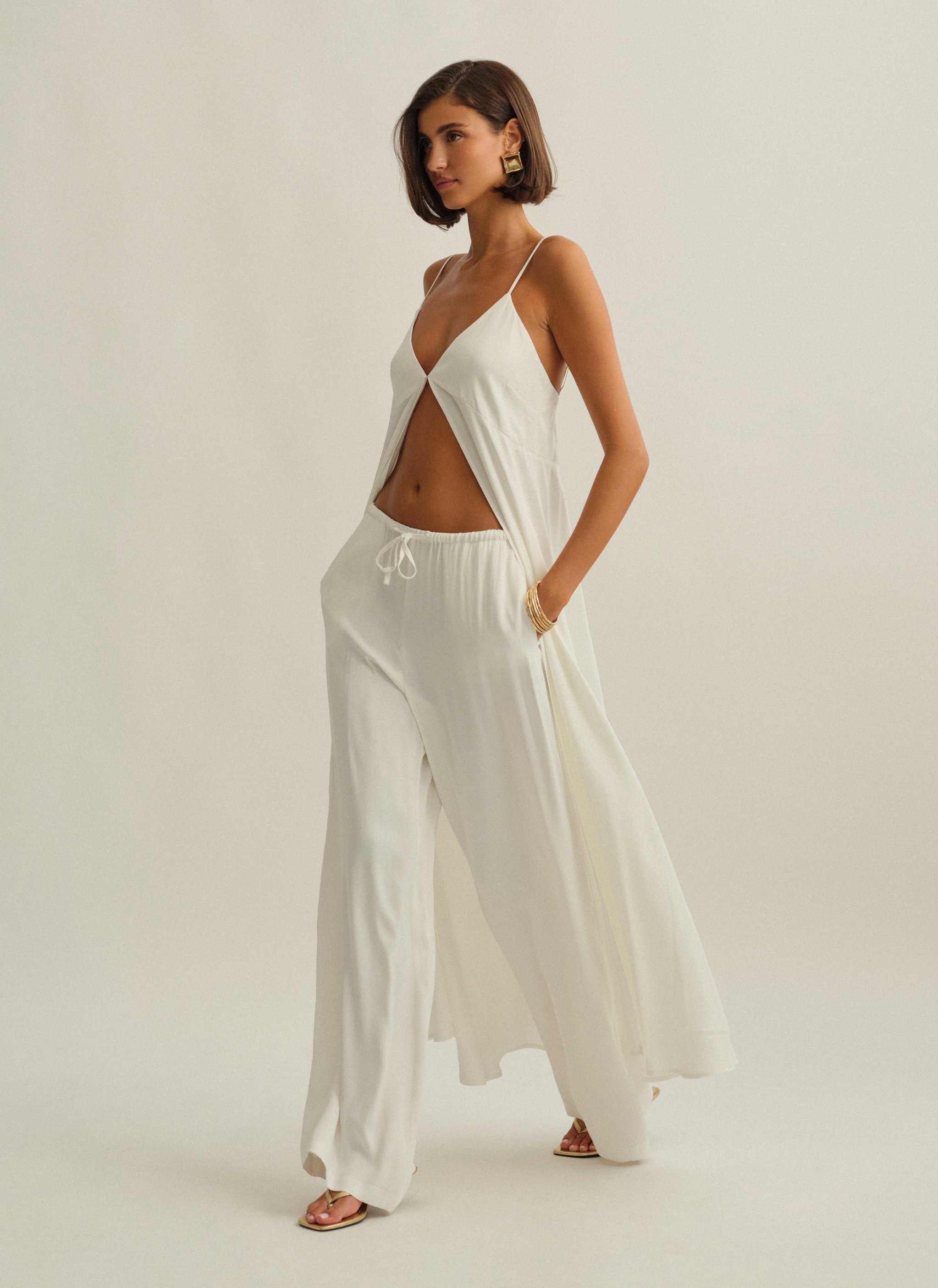 Σατέν παντελόνι με λάστιχο και δέσιμο στη μέση με κορδόνι.
