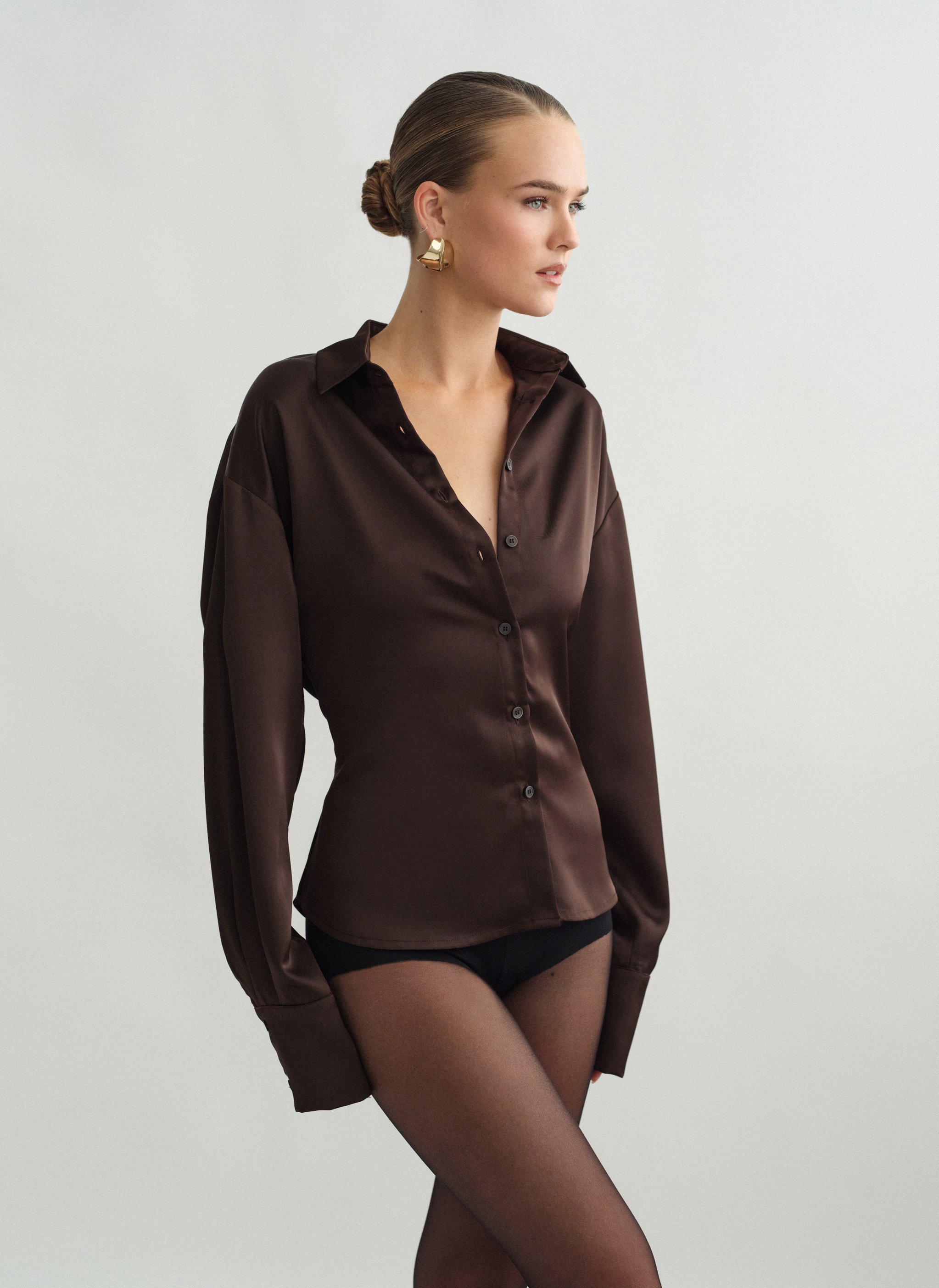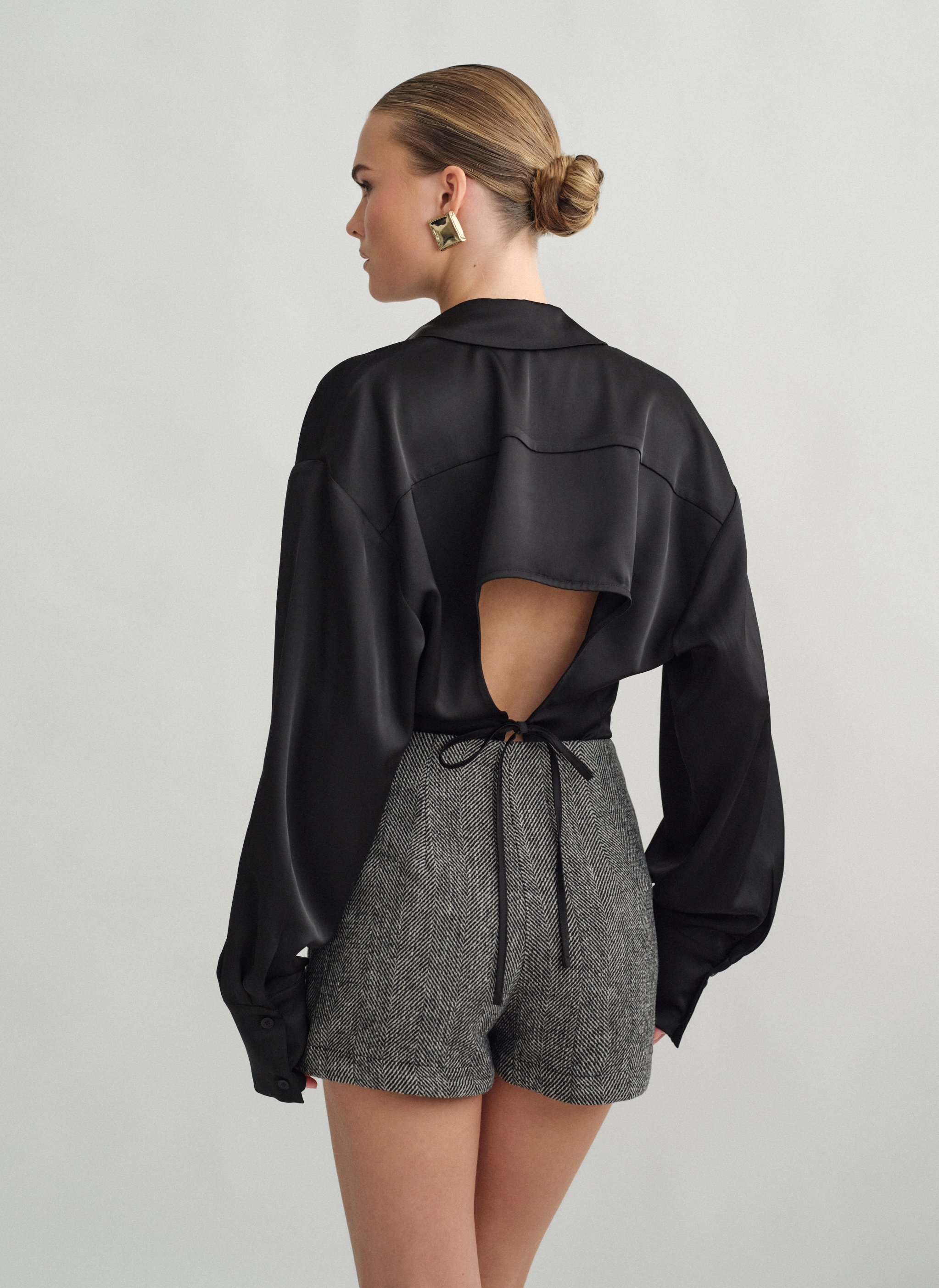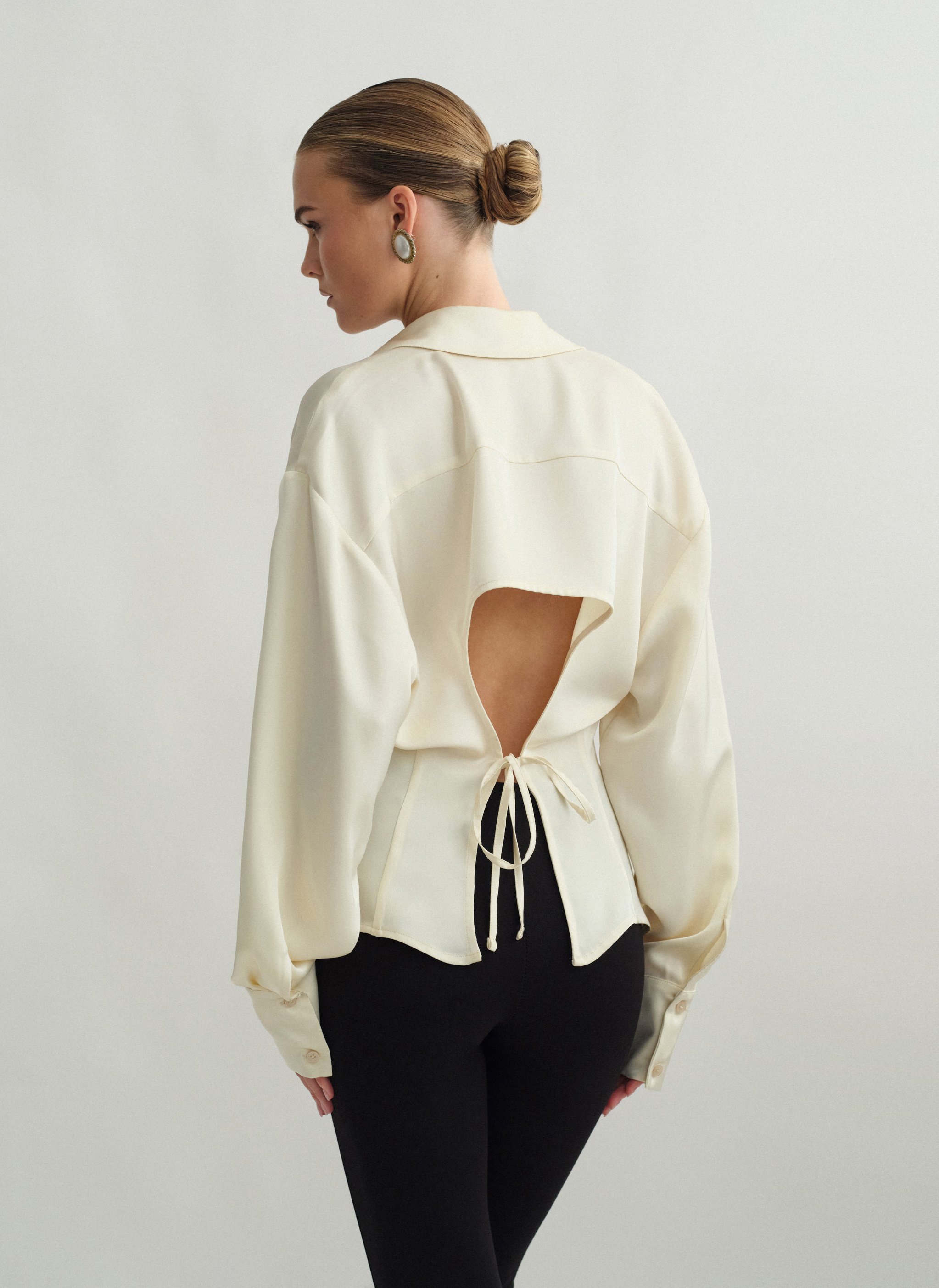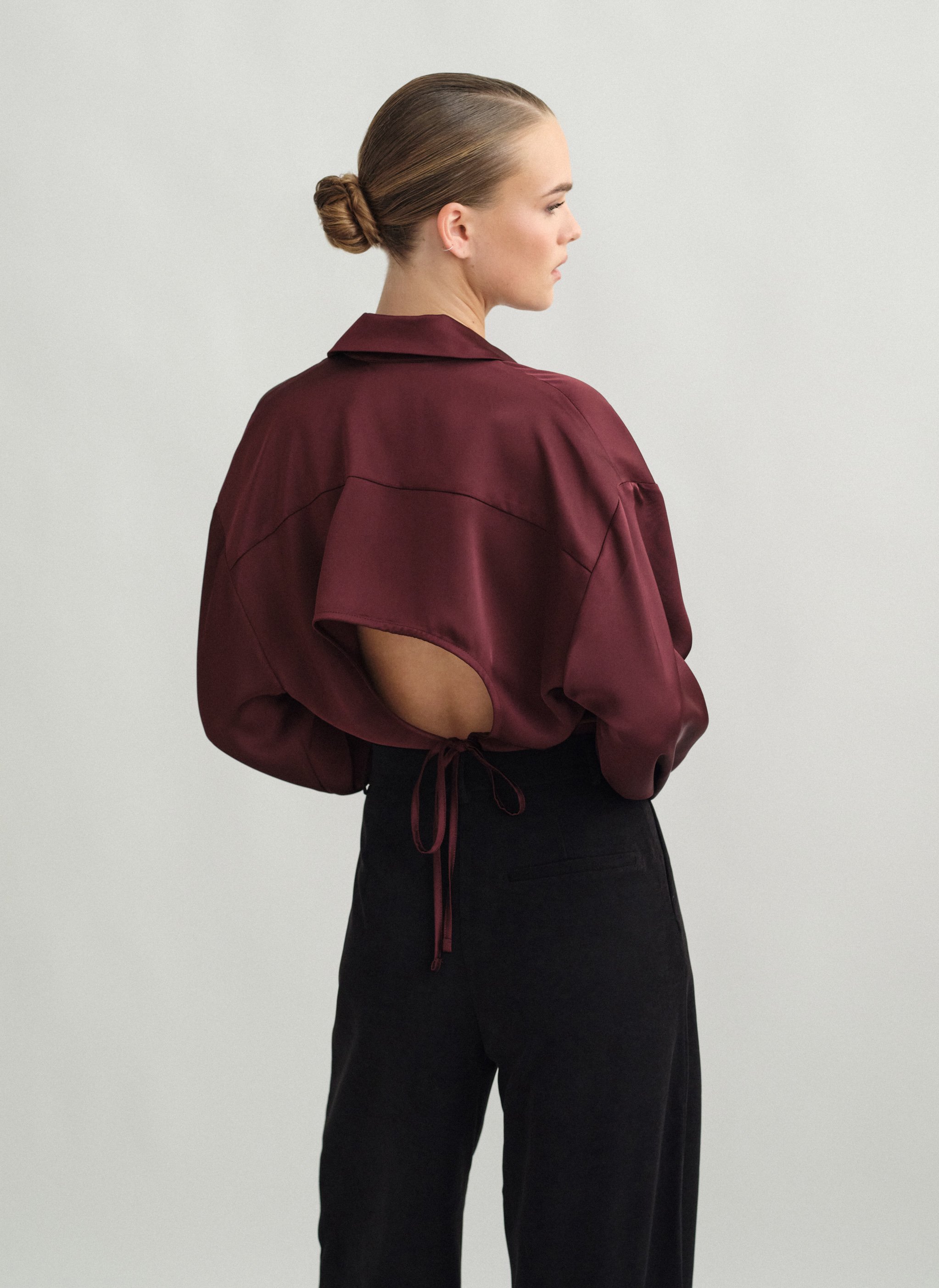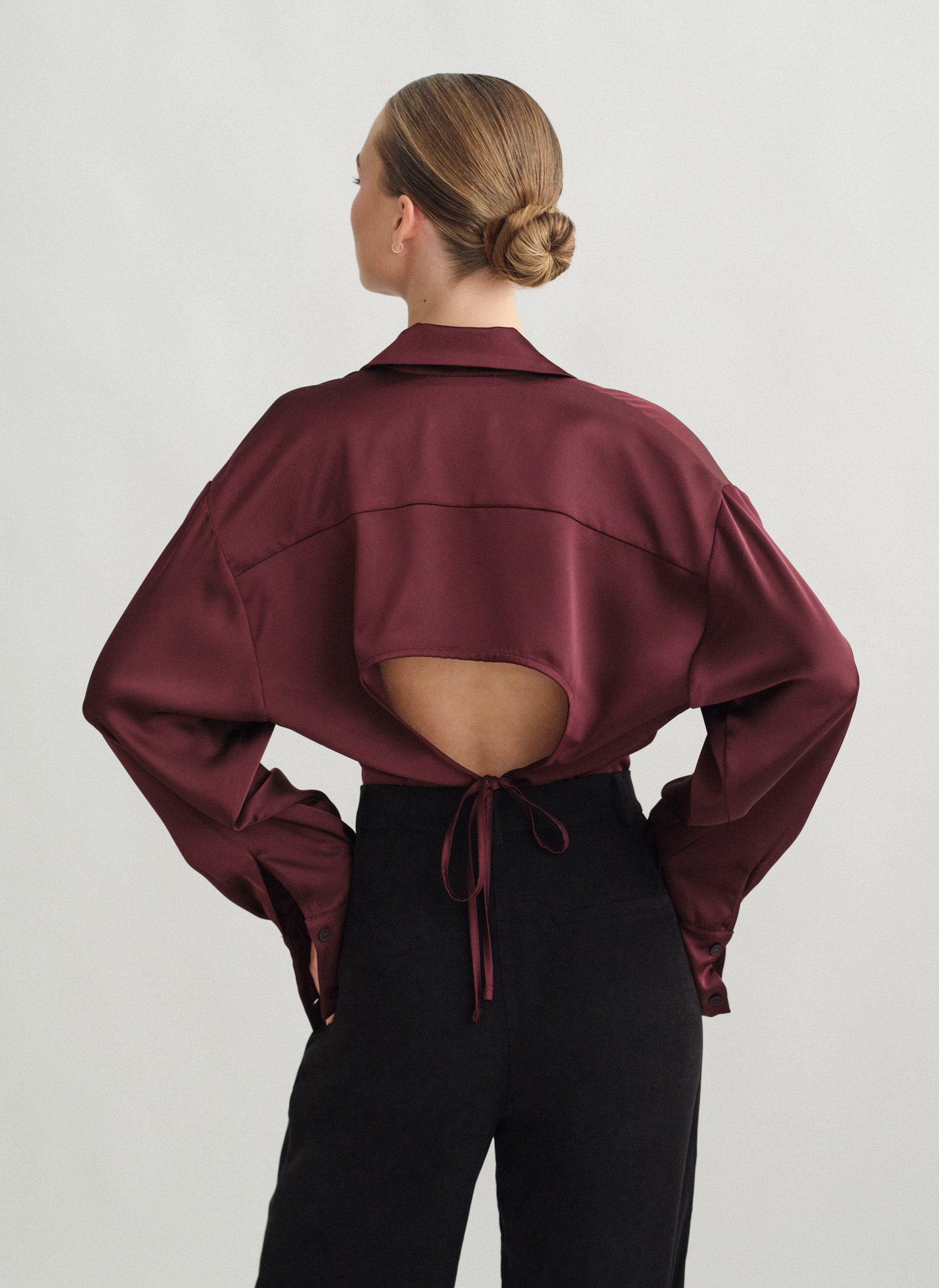 Σατέν πουκάμισο με ανοιχτή πλάτη και δέσιμο.