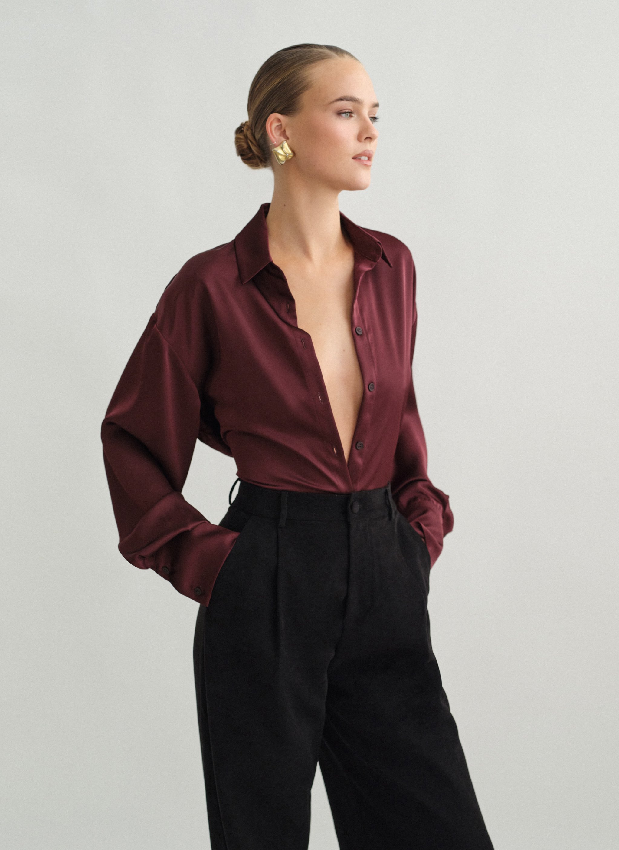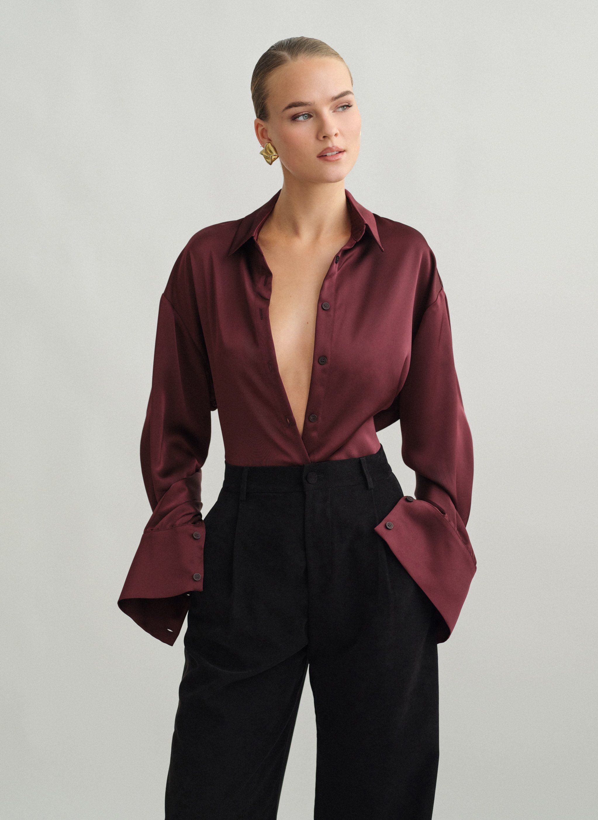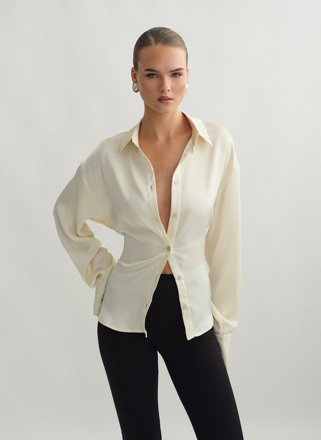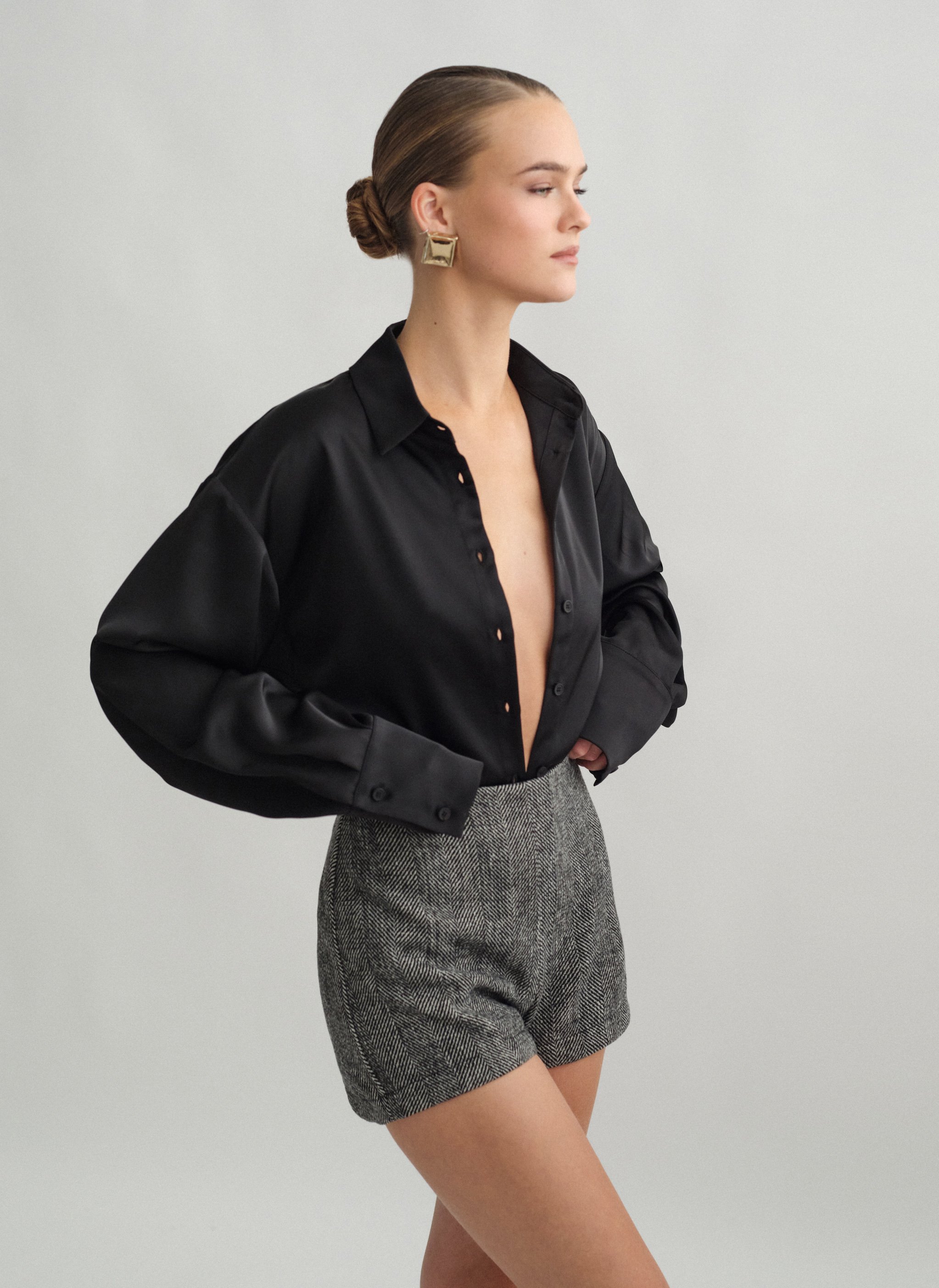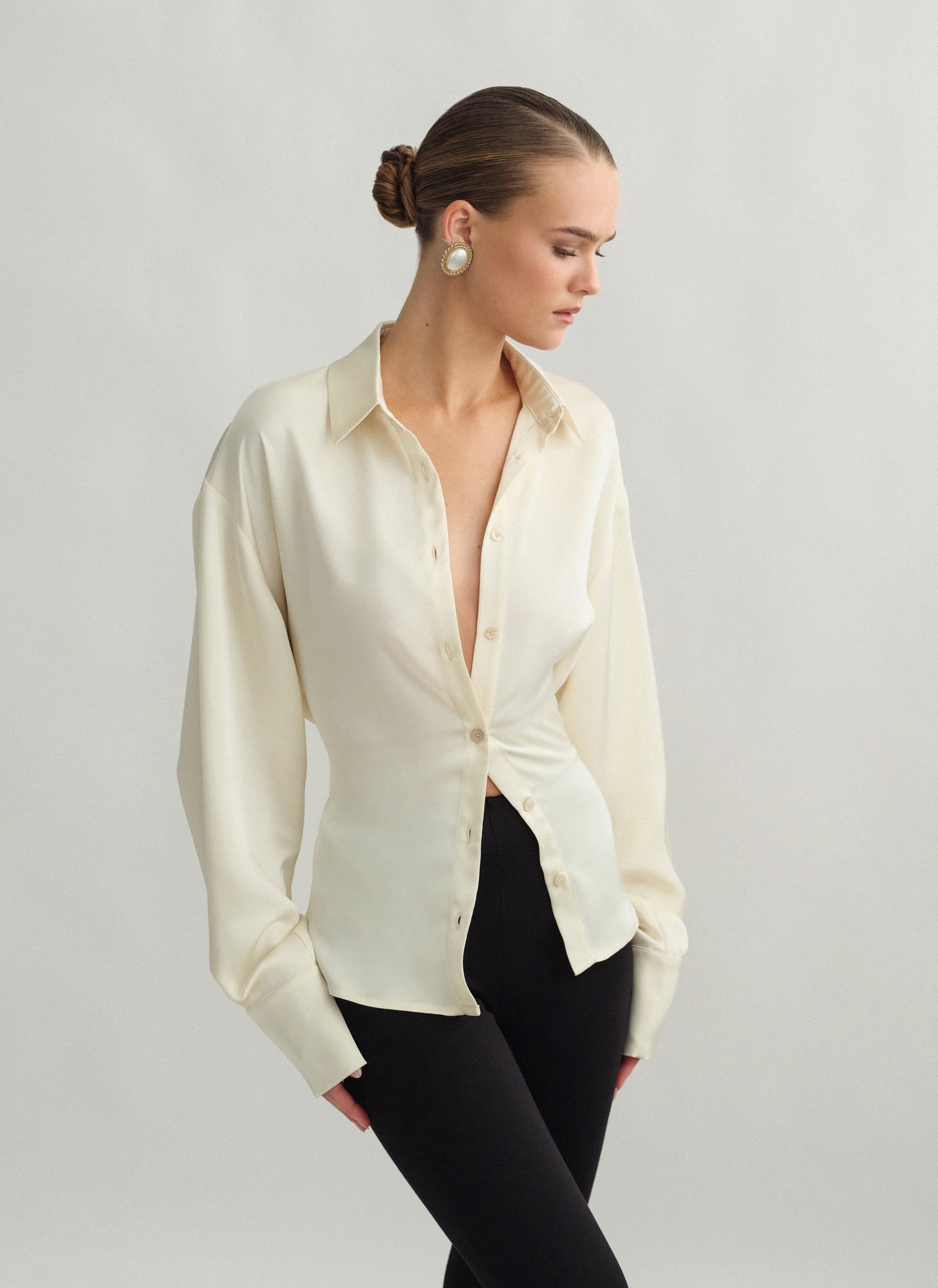 Σατέν πουκάμισο με ανοιχτή πλάτη και δέσιμο.