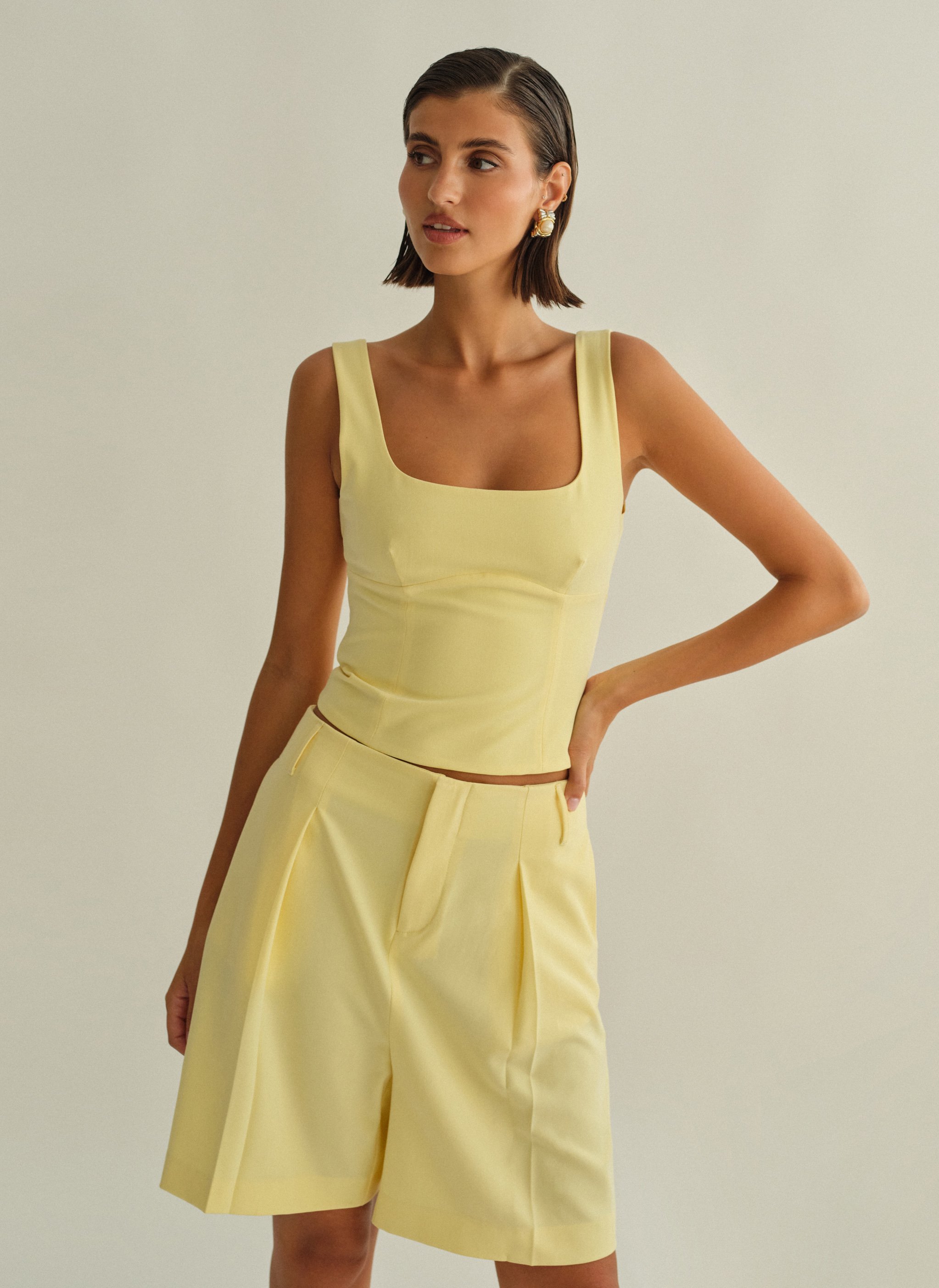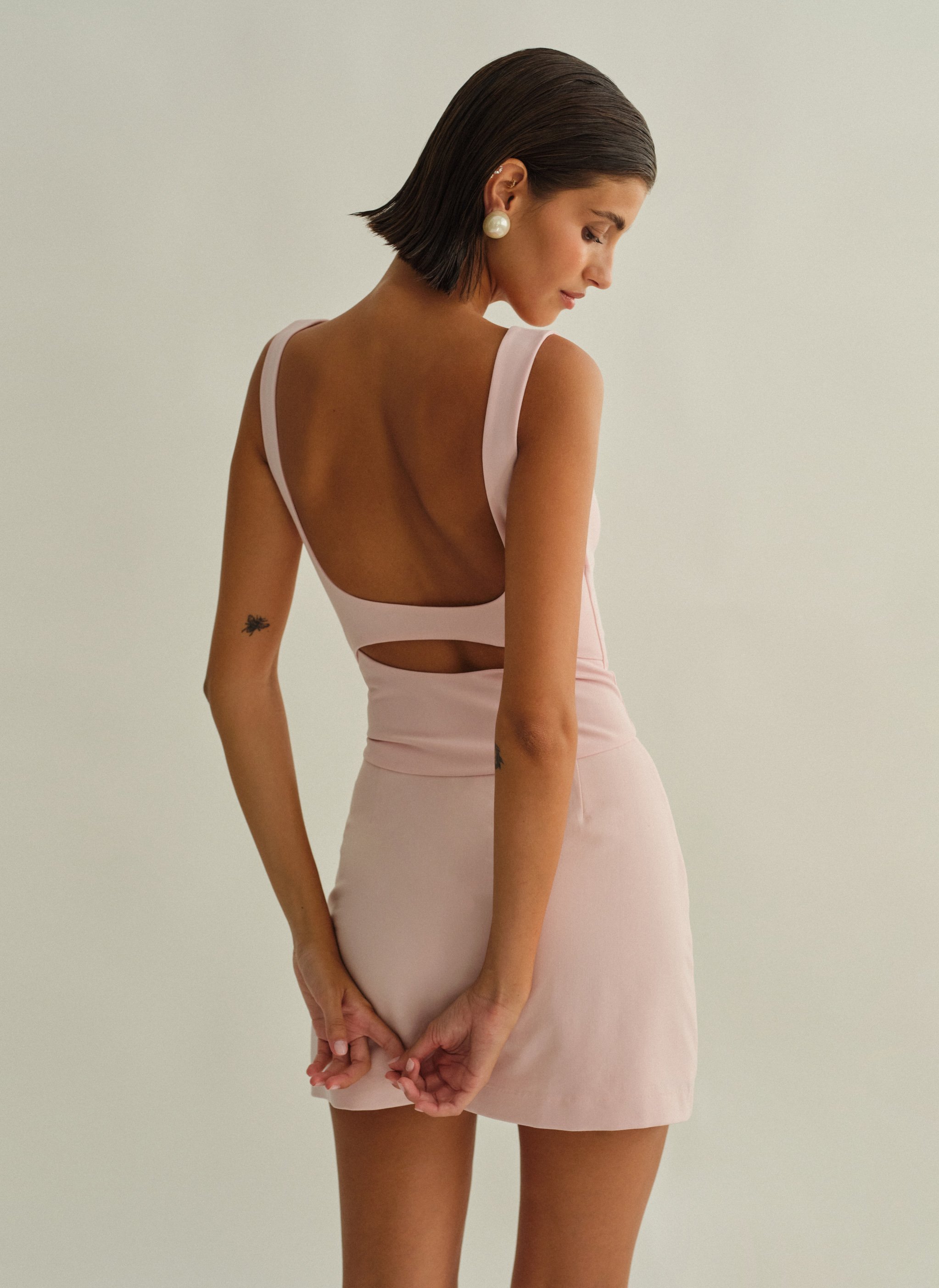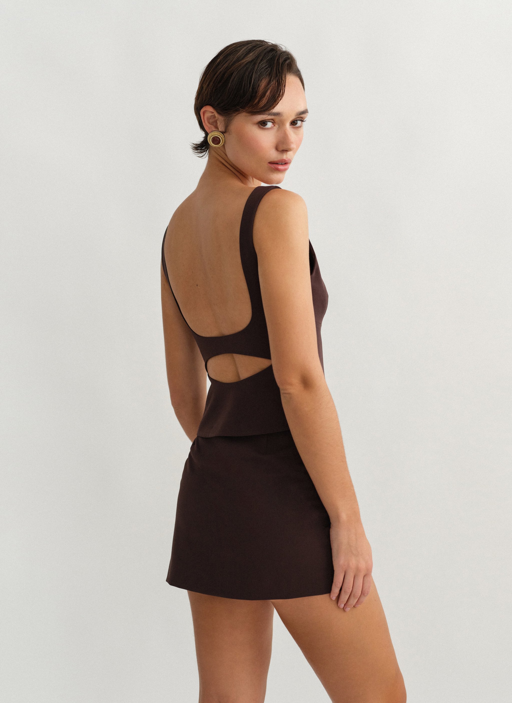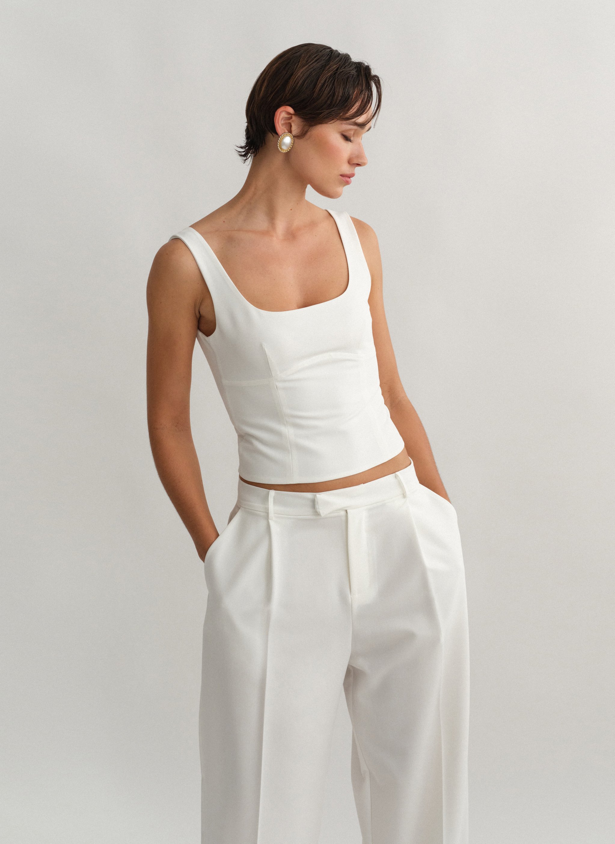 Τοπ με άνοιγμα στην πλάτη, φαρδιές τιράντες και κλείσιμο στο πλάι με κρυφό φερμουάρ.